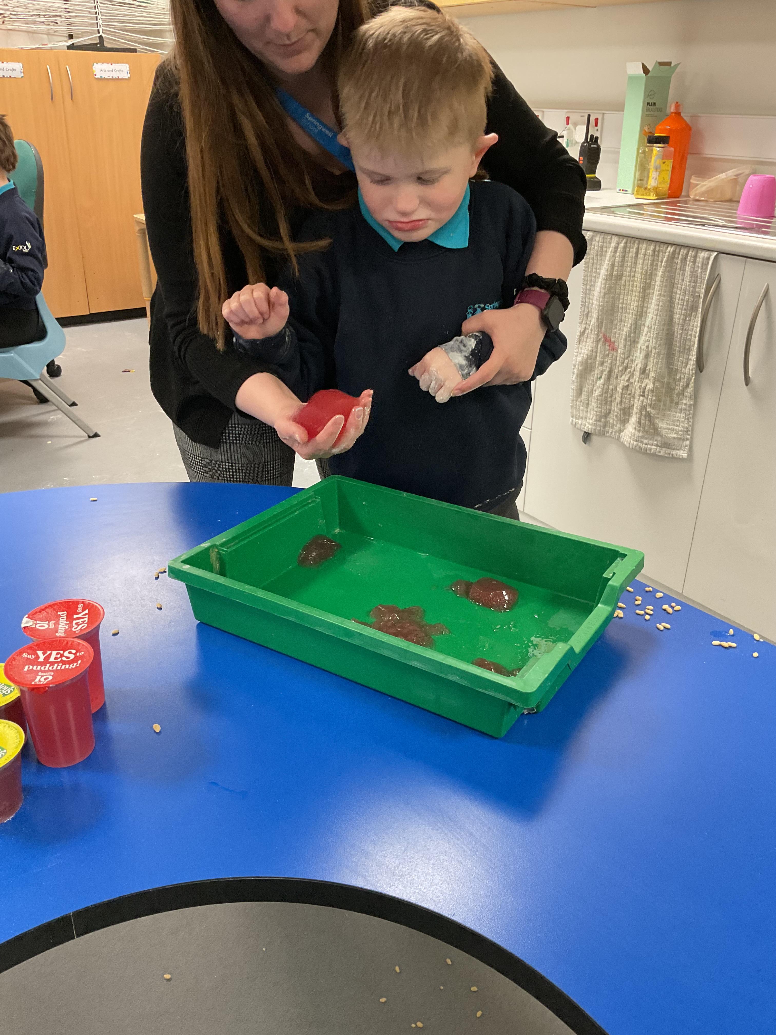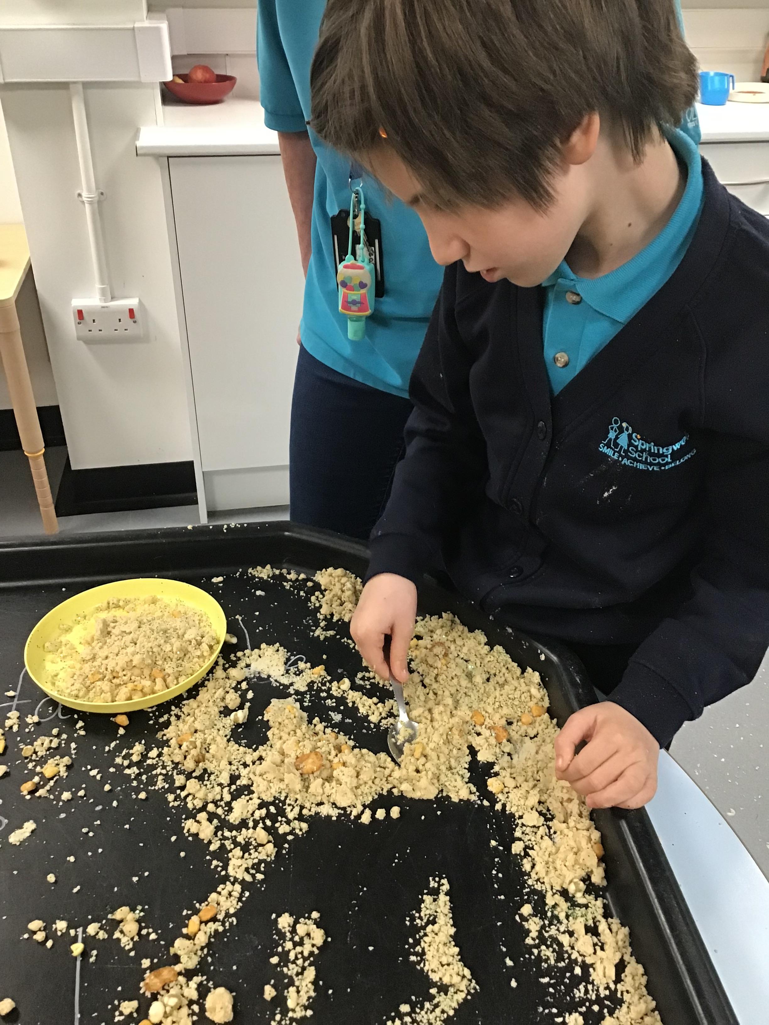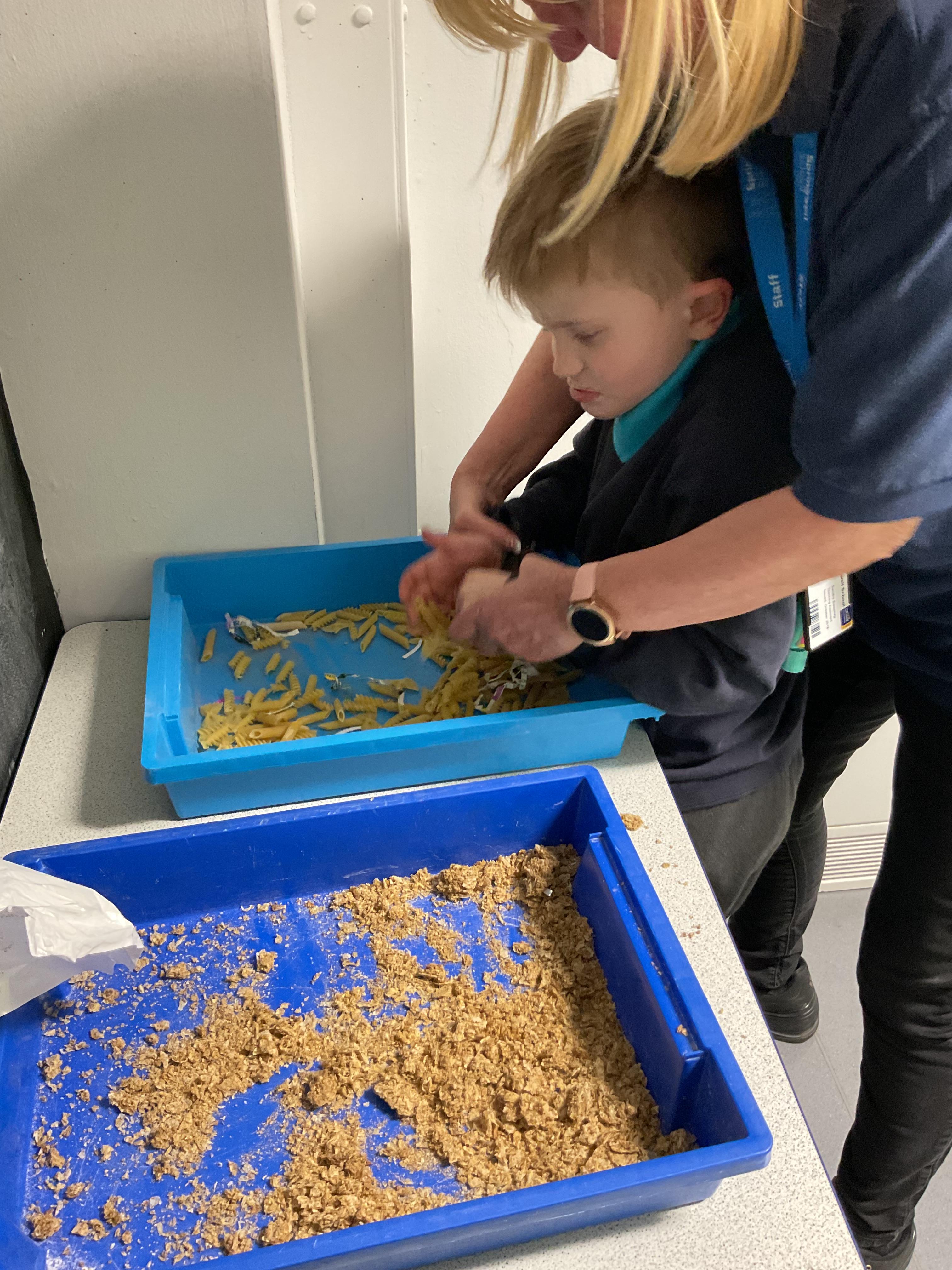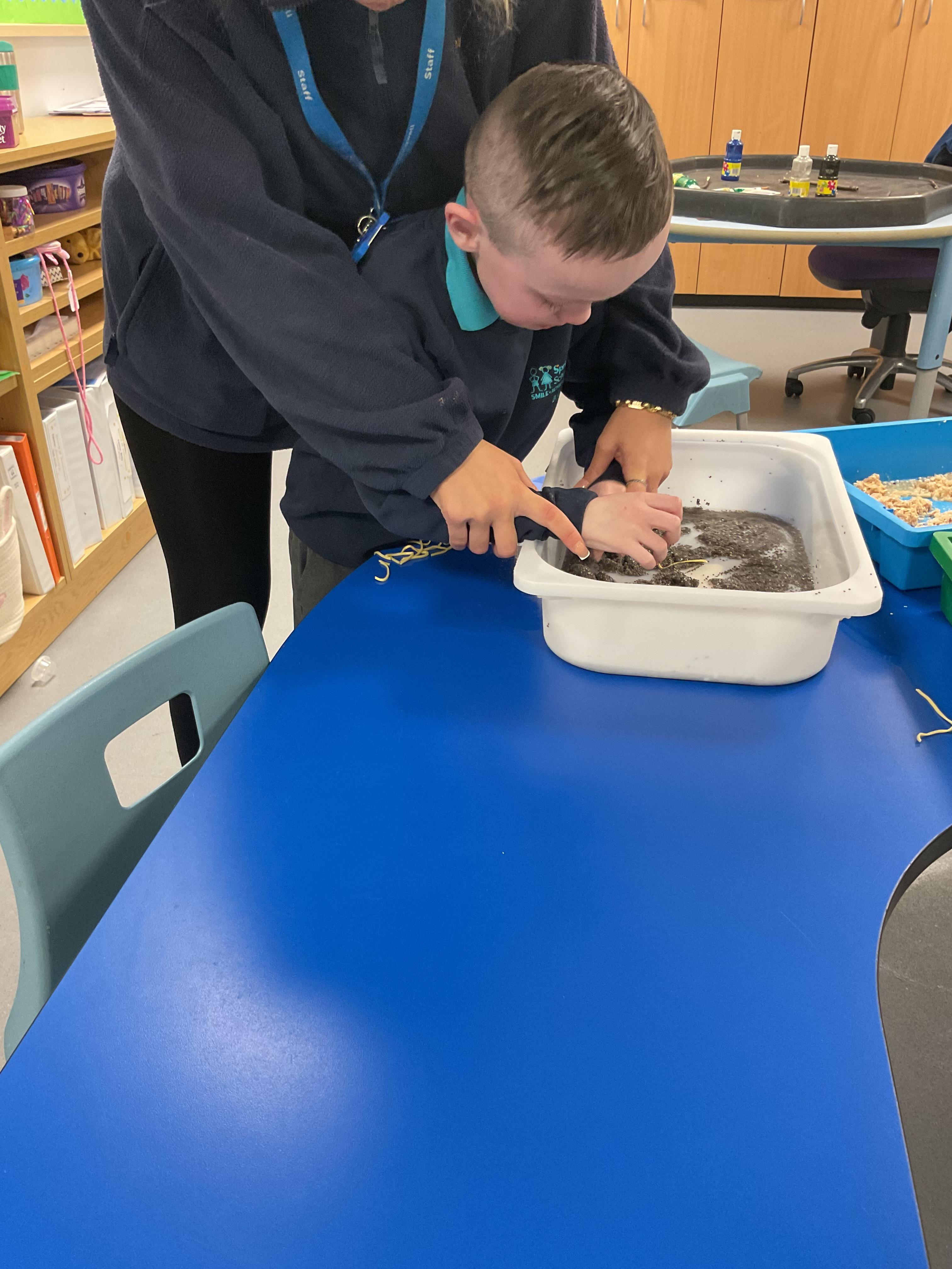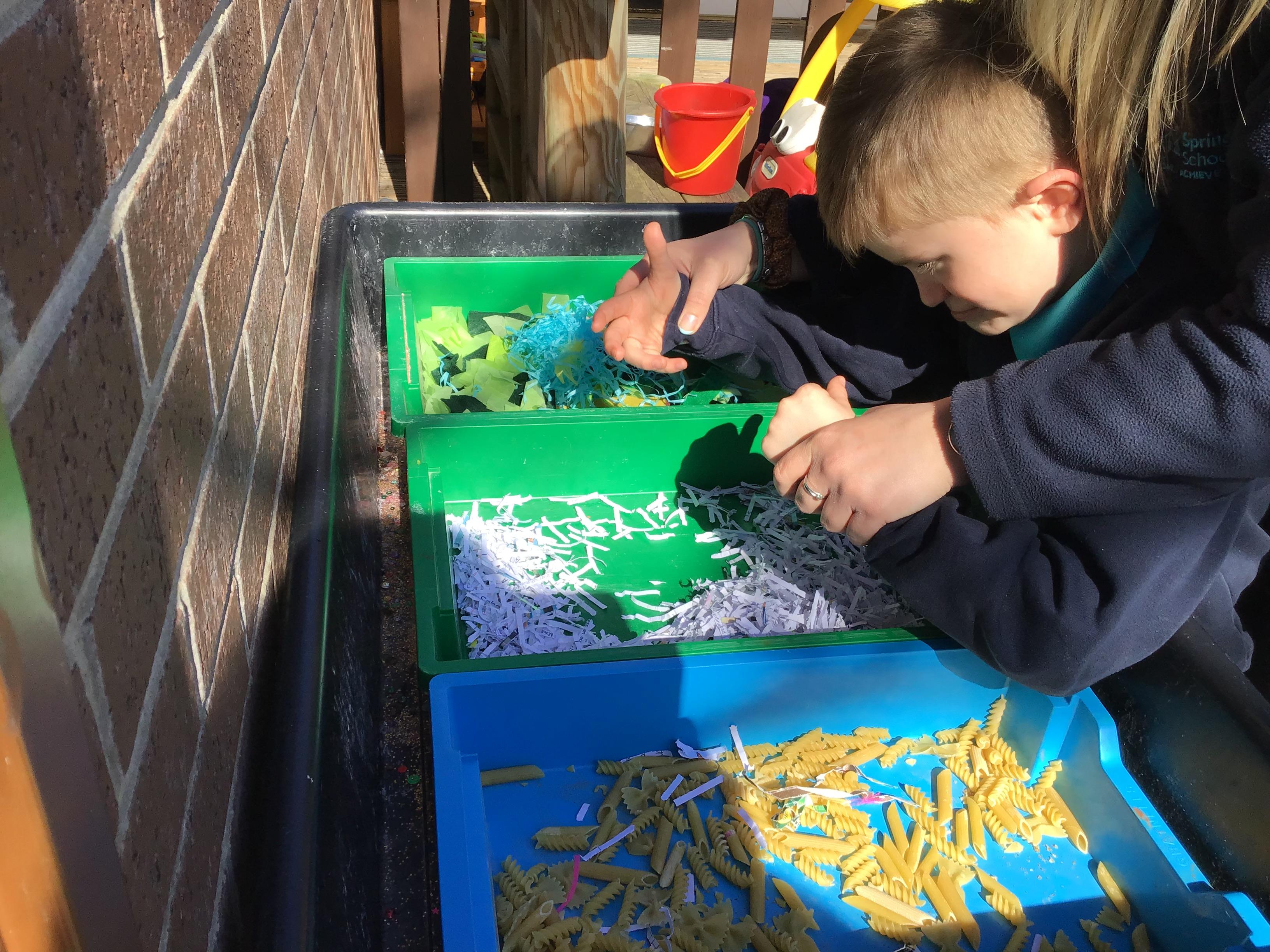 Over the last two weeks of term we enjoyed exploring our story of the week in an interactive way. All of the children enjoyed using their senses as they explored the 'Gruffalo Crumble' alongside a variety of textures objects and food sources.