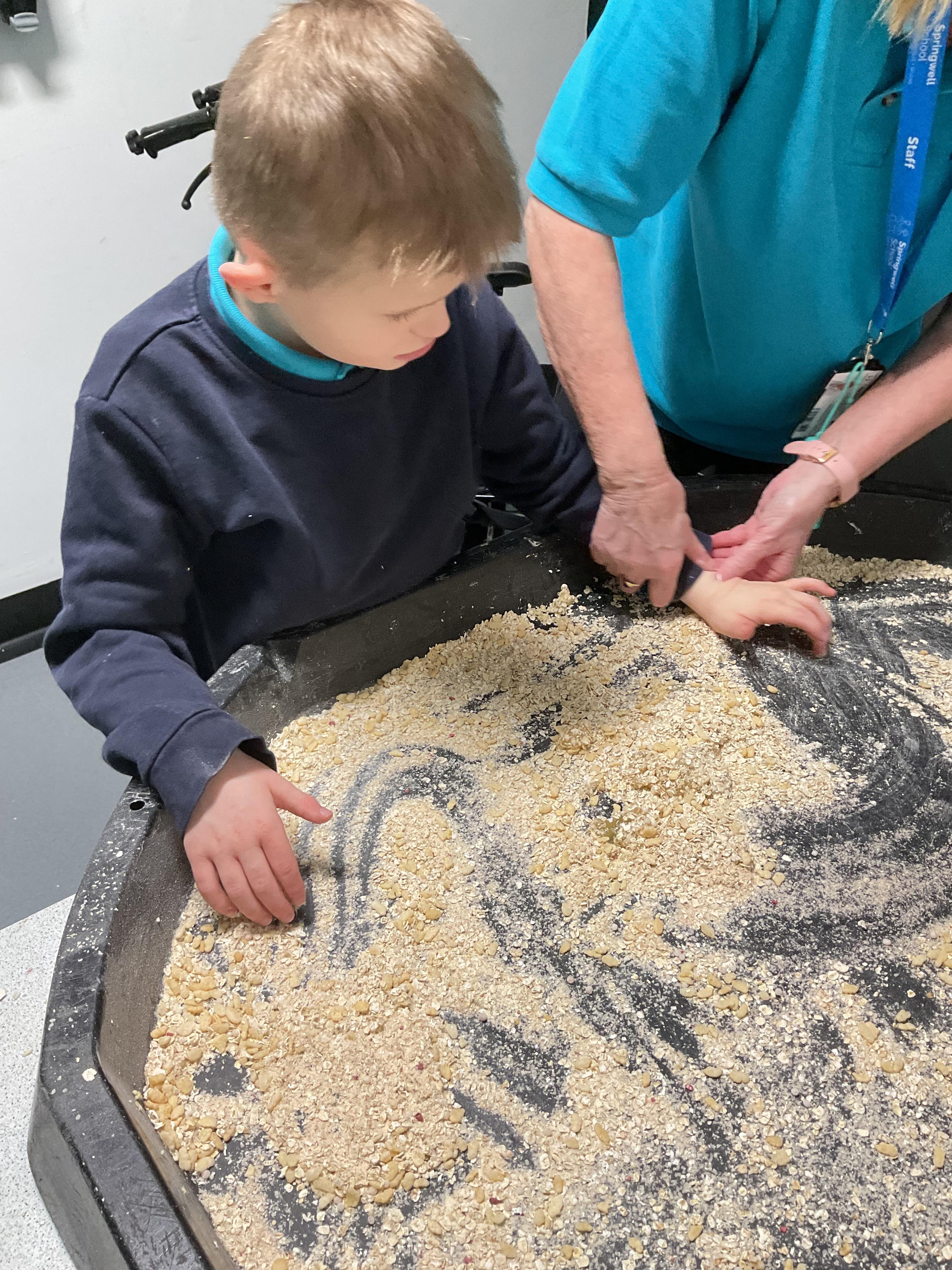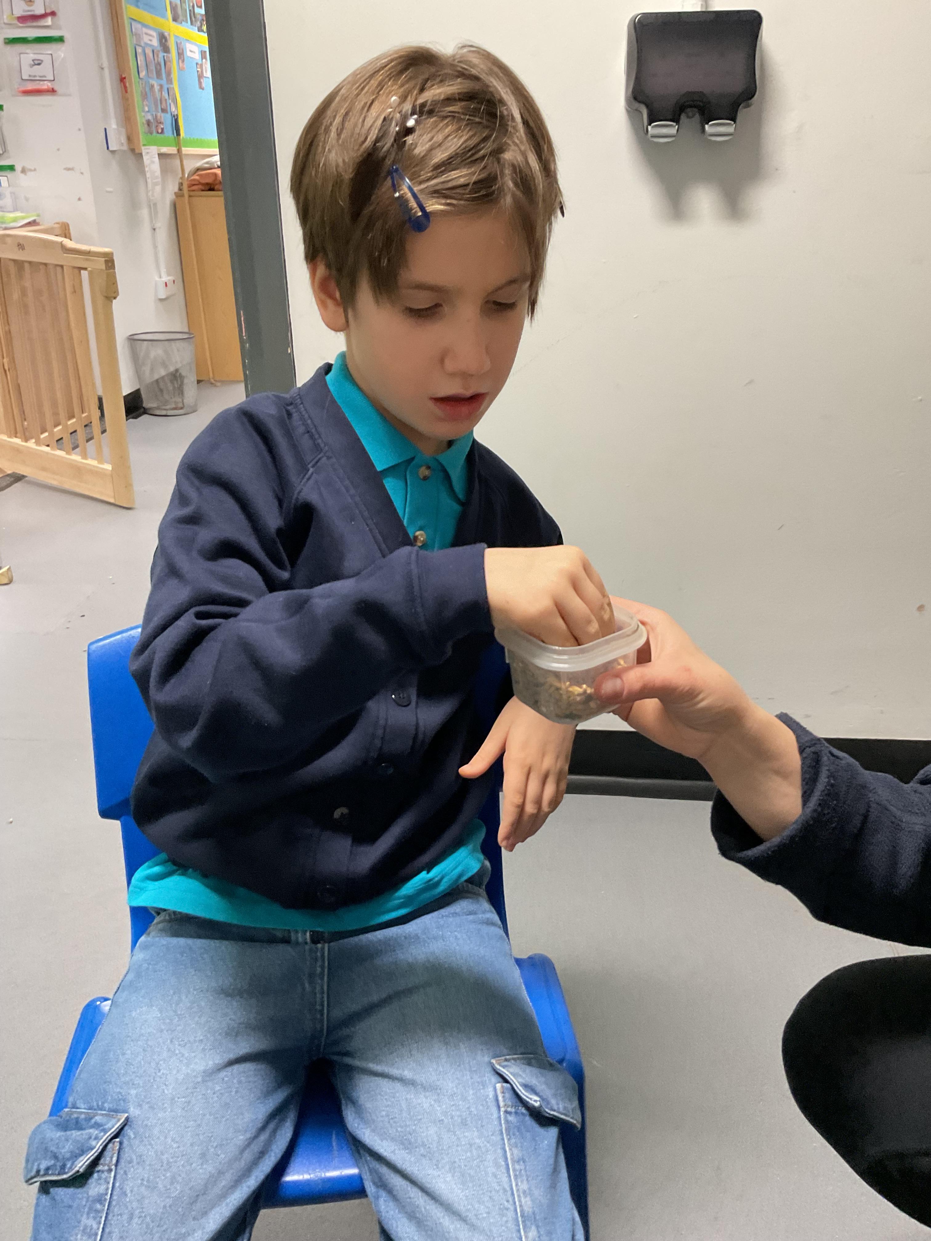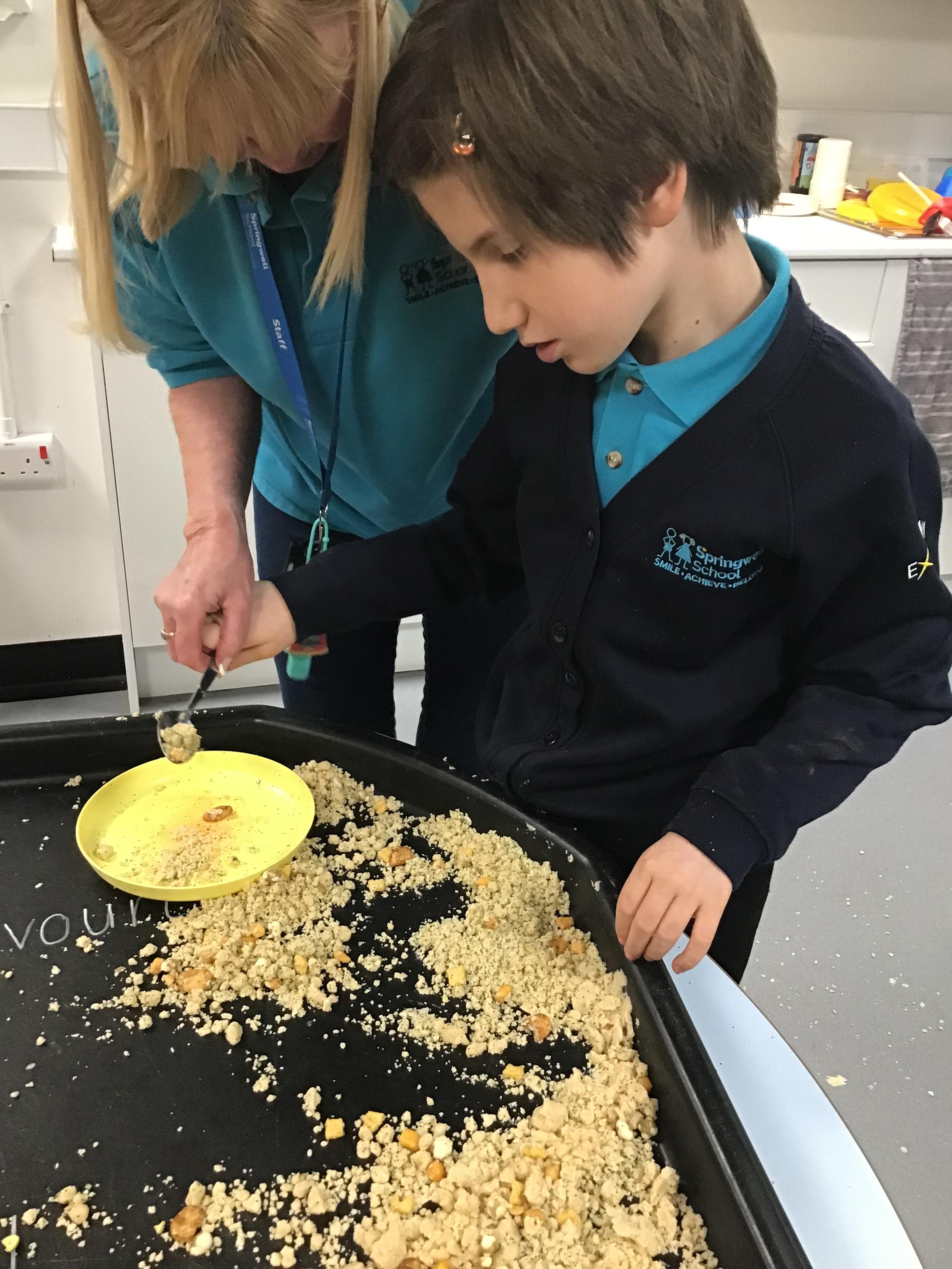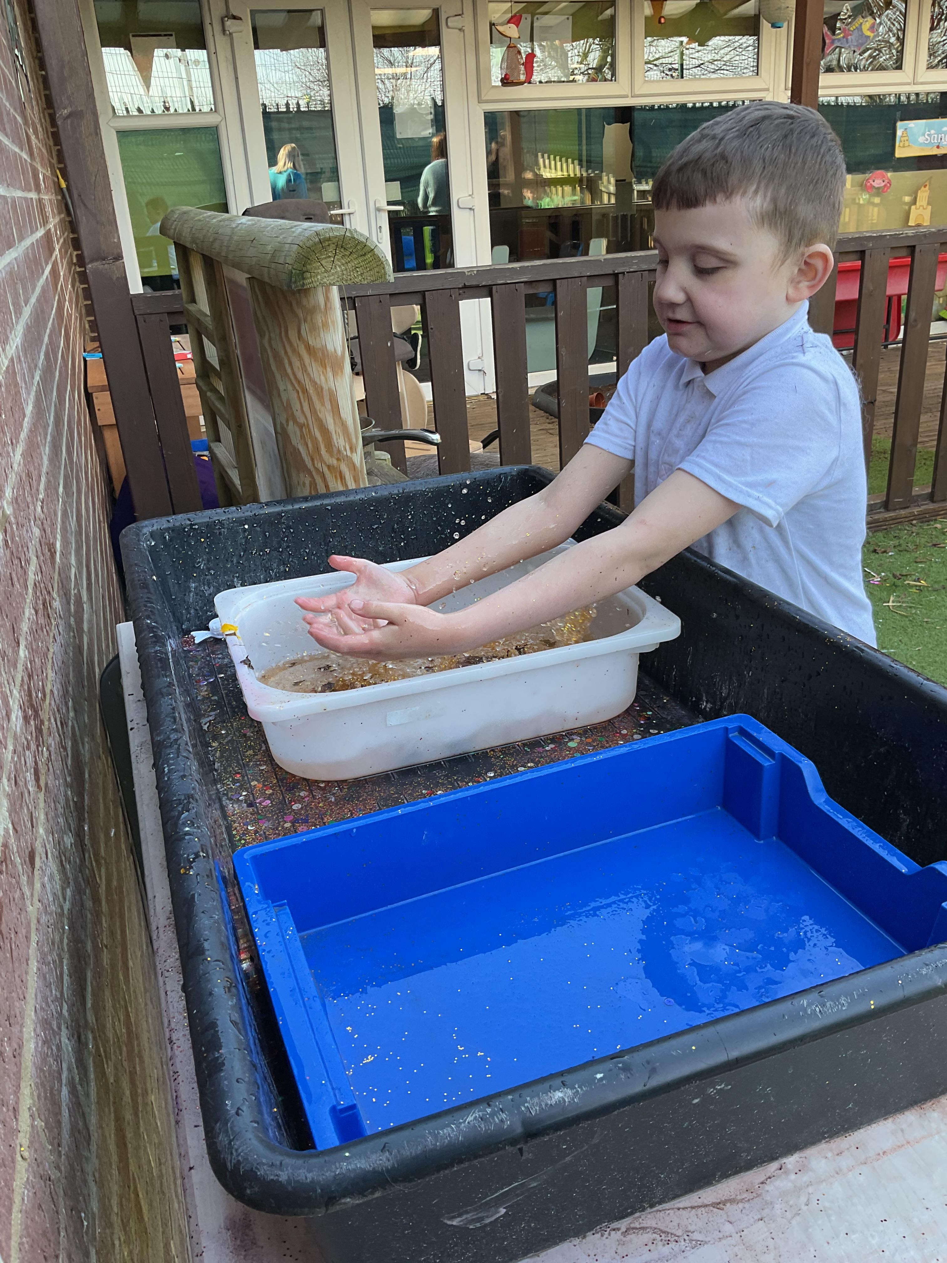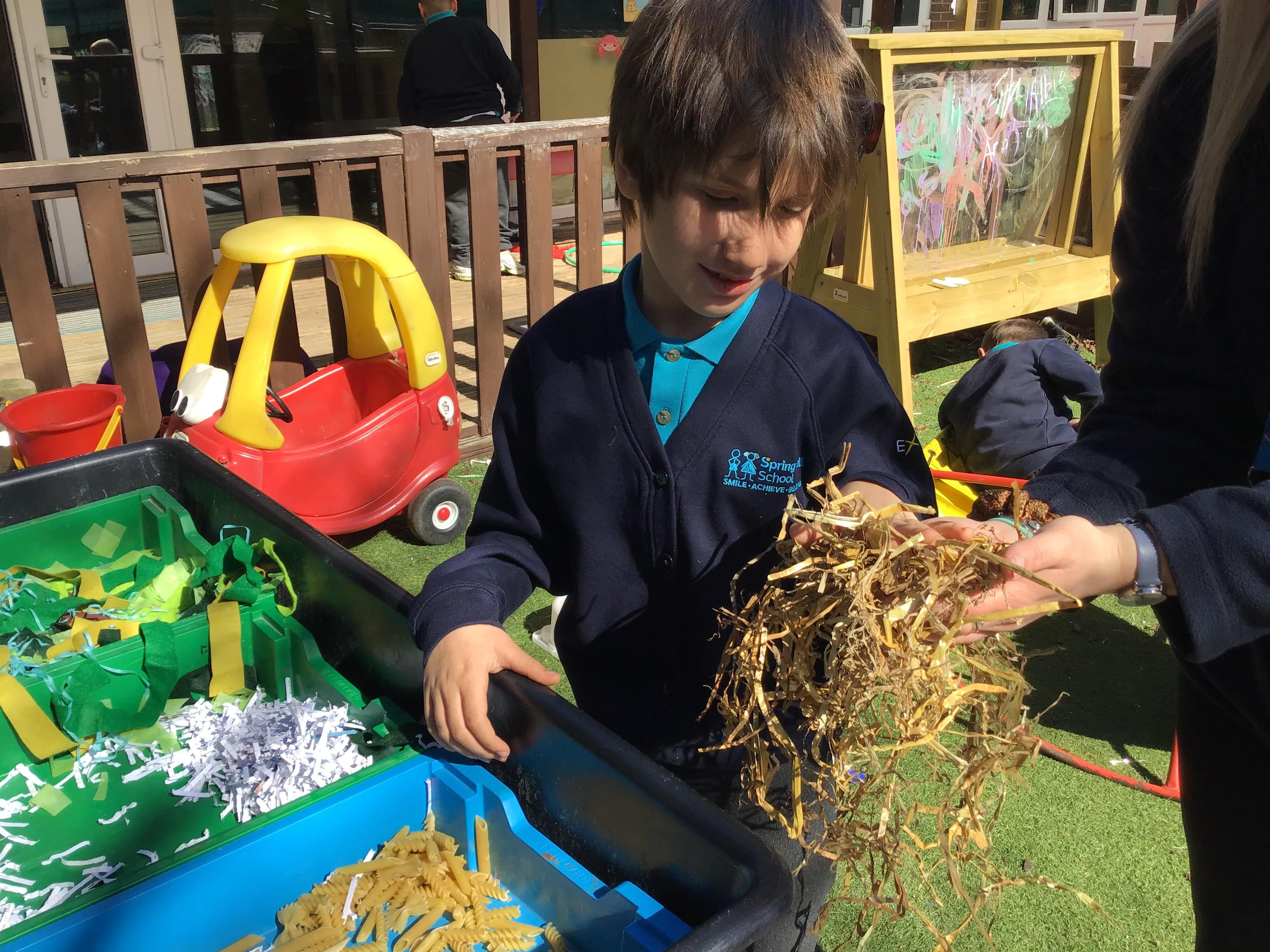 Over the last two weeks of term we enjoyed exploring our story of the week in an interactive way. All of the children enjoyed using their senses as they explored the 'Gruffalo Crumble' alongside a variety of textures objects and food sources.