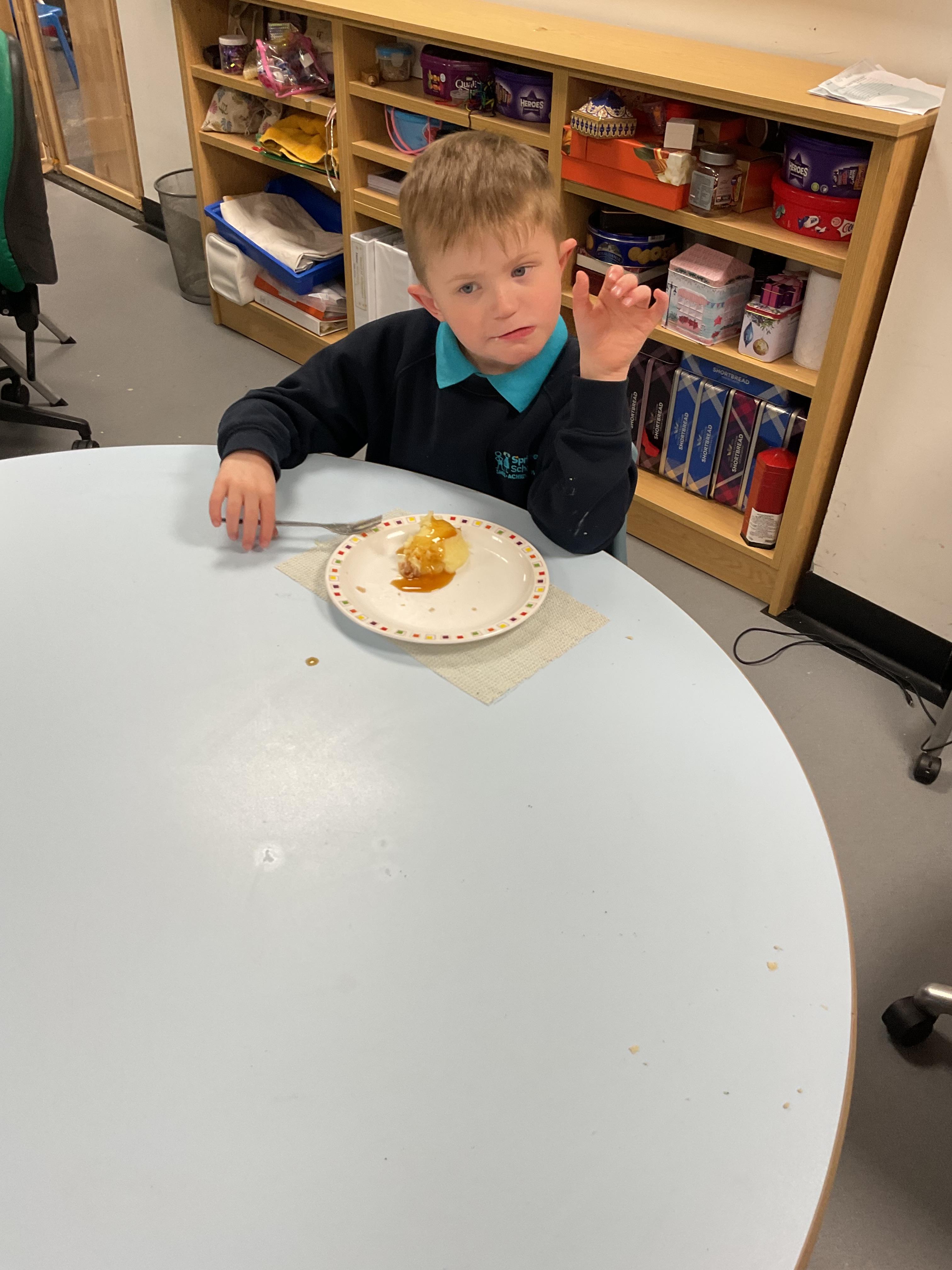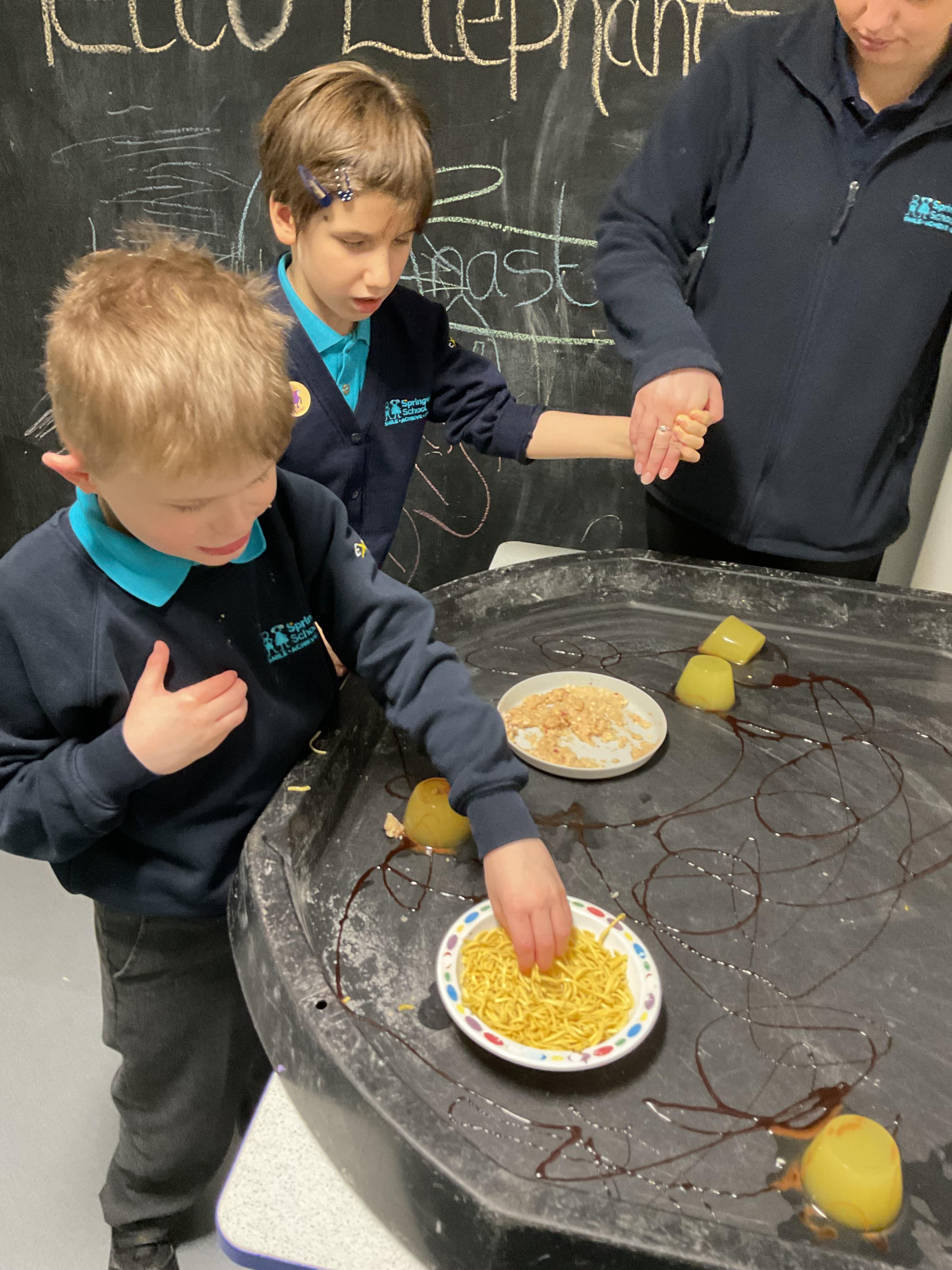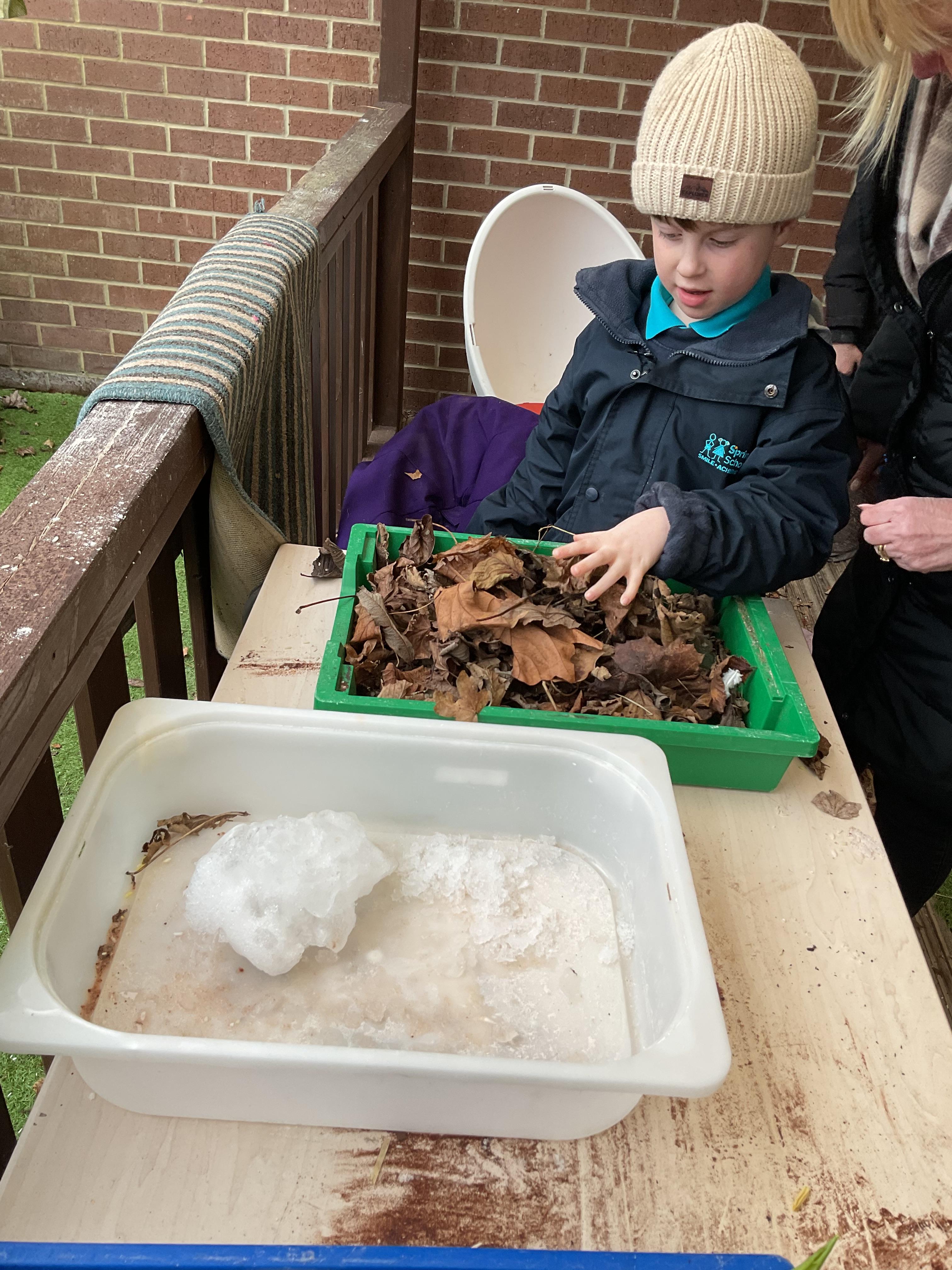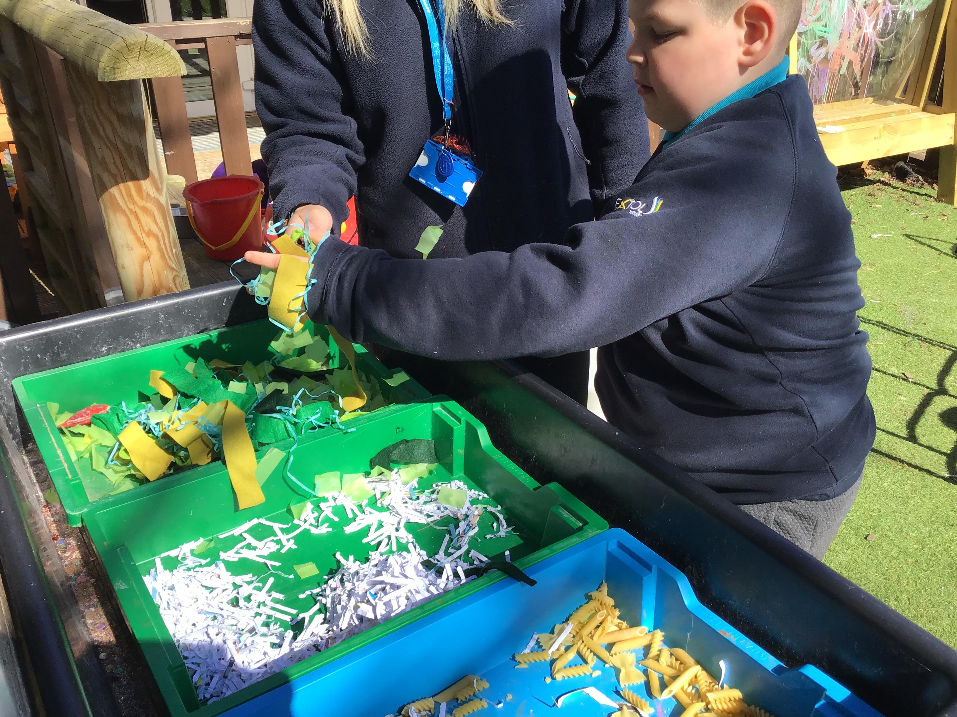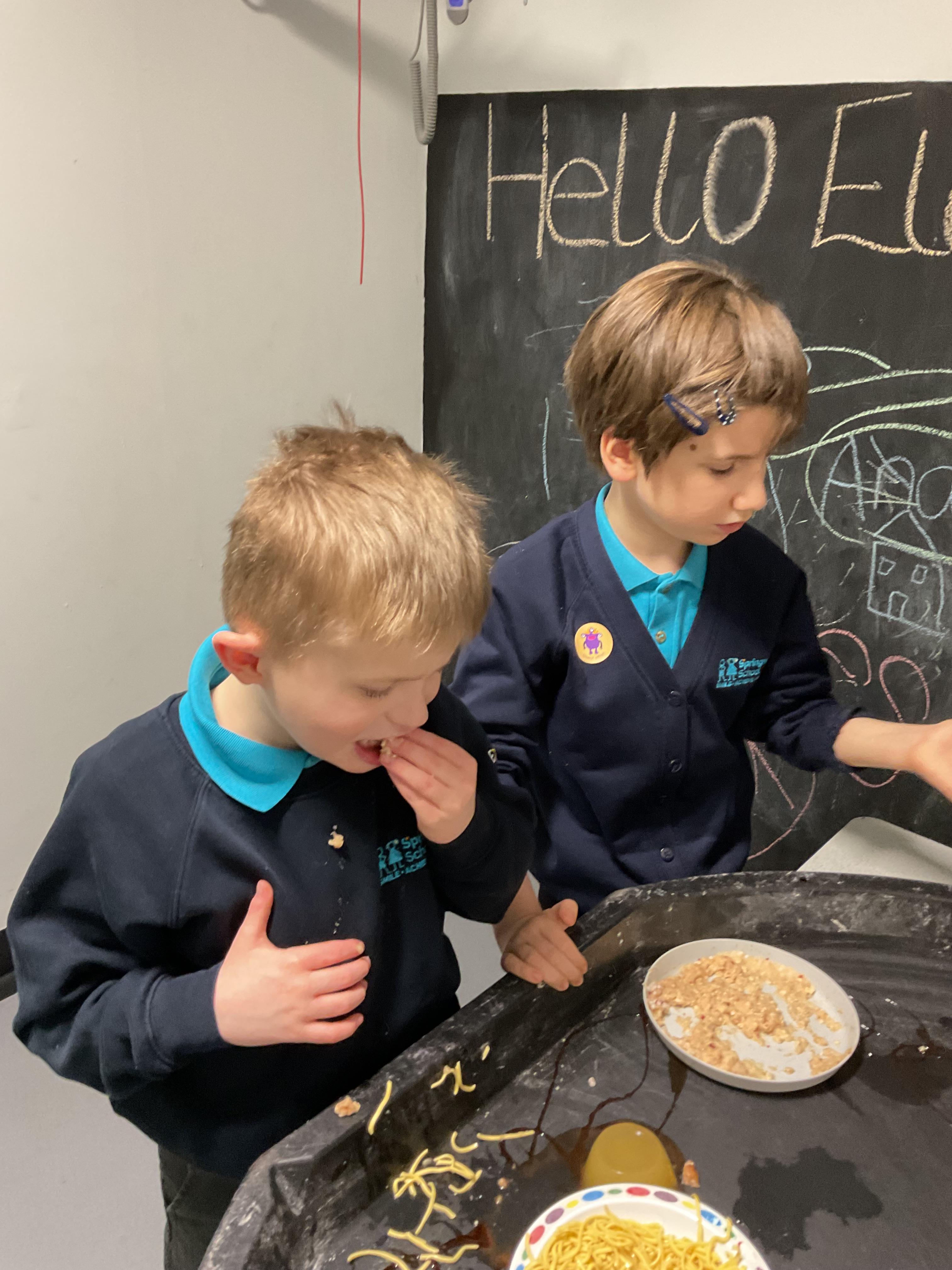 Over the last two weeks of term we enjoyed exploring our story of the week in an interactive way. All of the children enjoyed using their senses as they explored the 'Gruffalo Crumble' alongside a variety of textures objects and food sources.