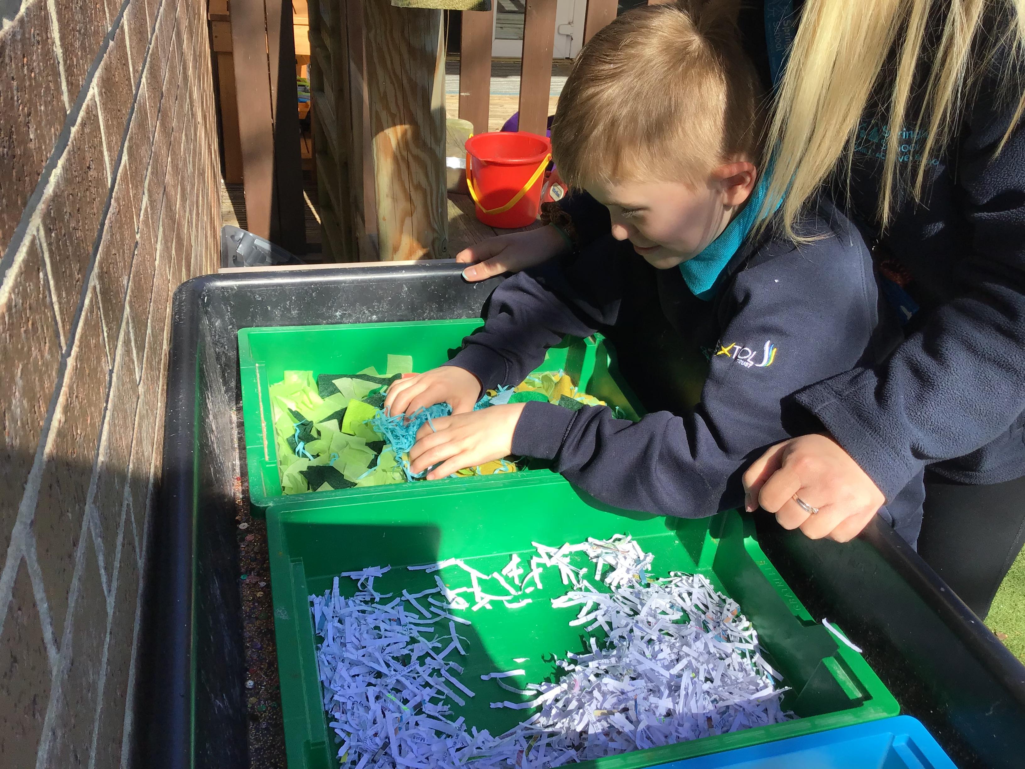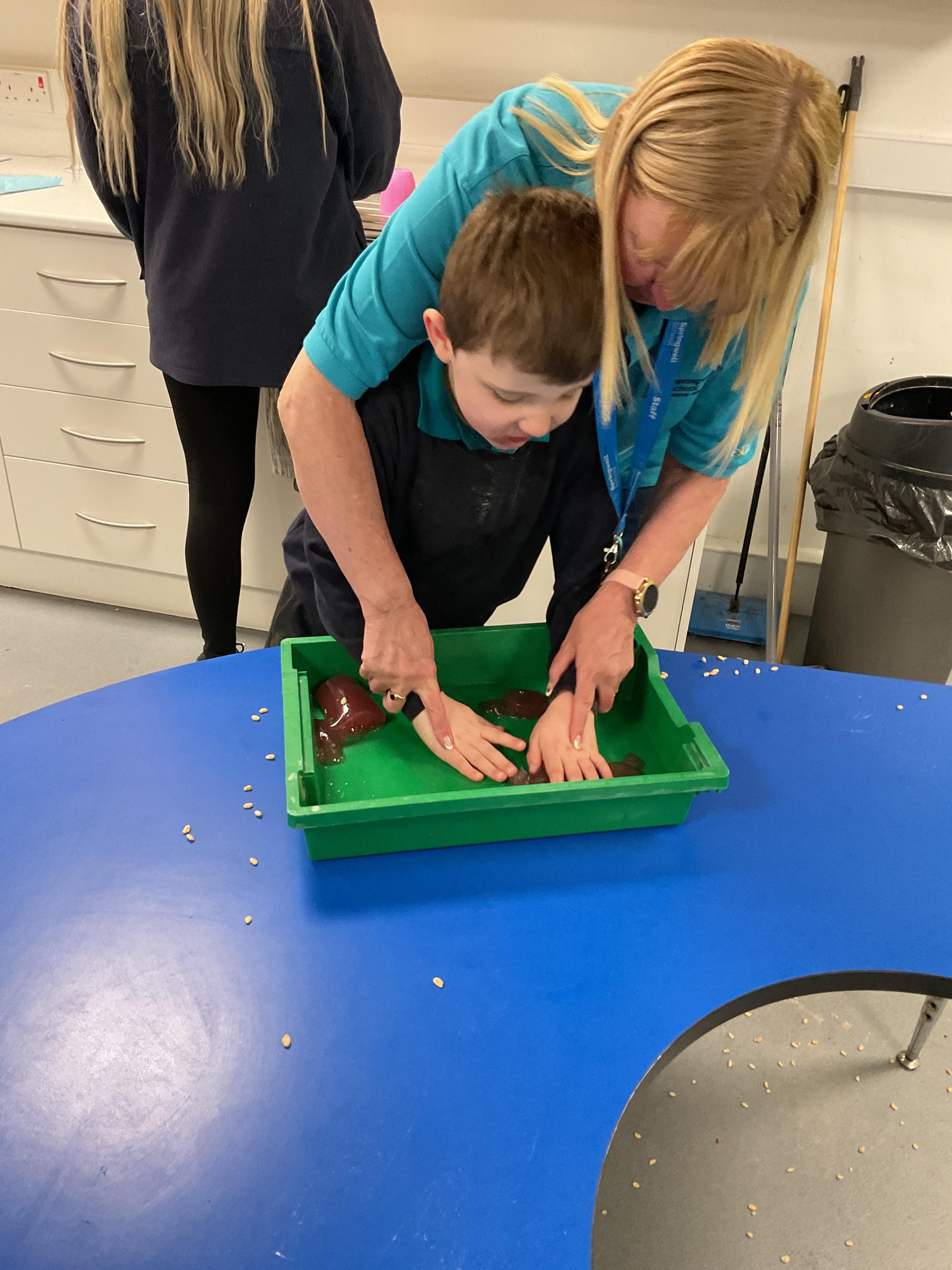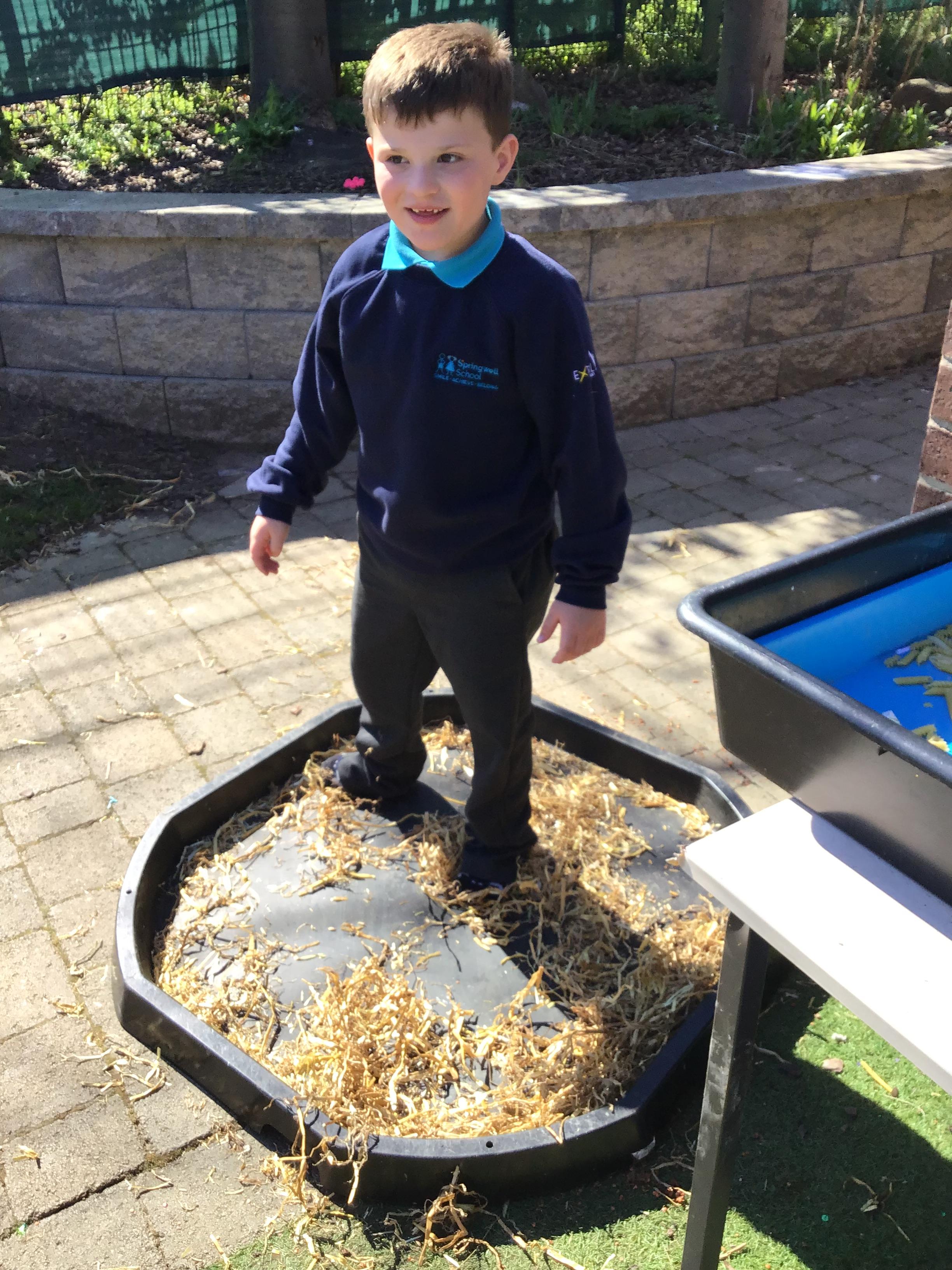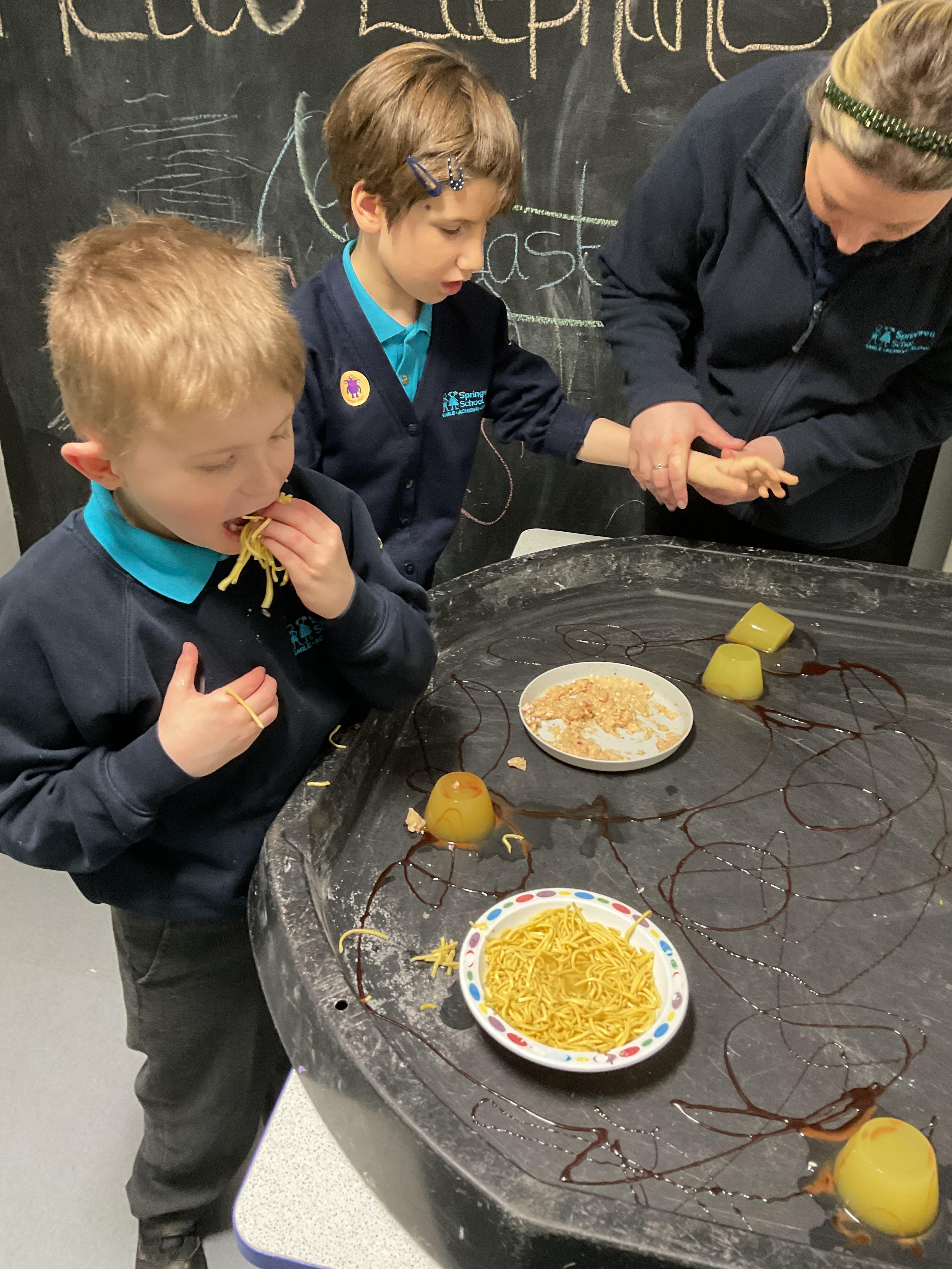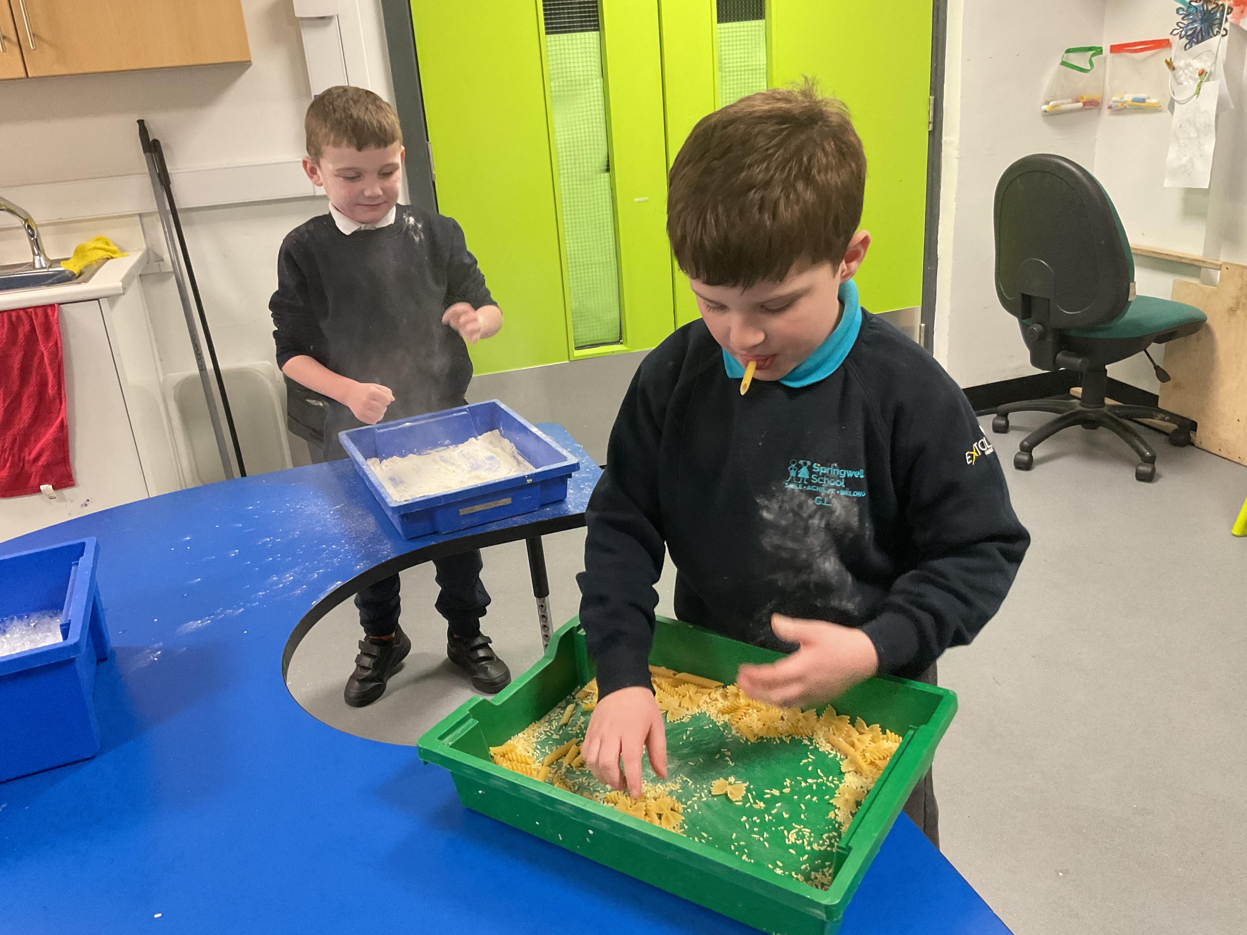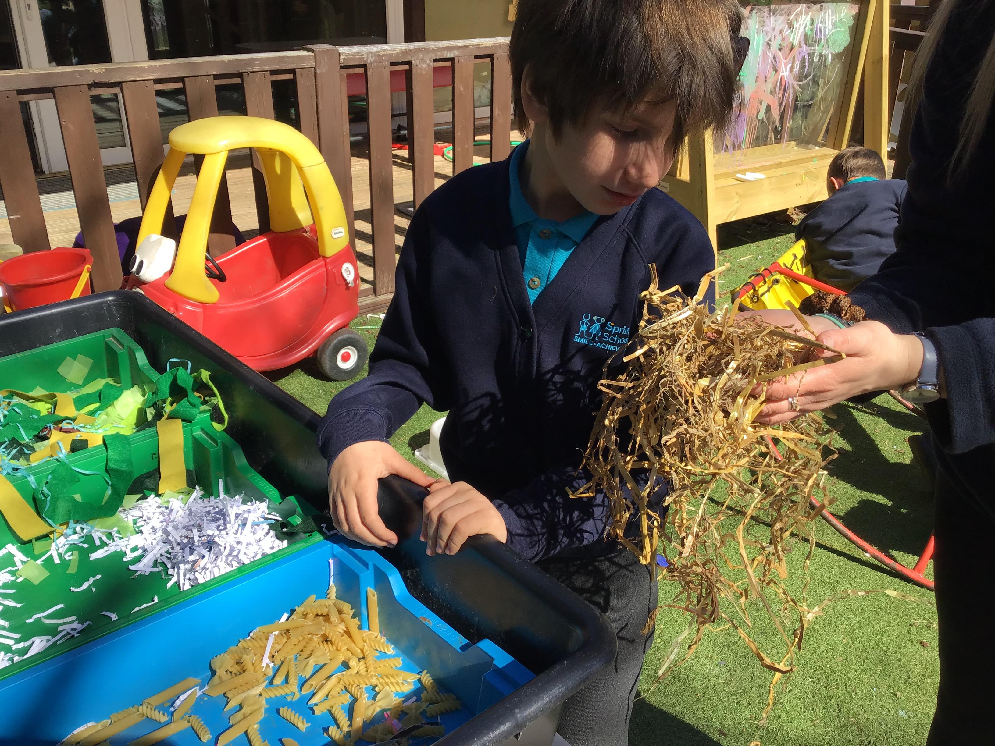 Over the last two weeks of term we enjoyed exploring our story of the week in an interactive way. All of the children enjoyed using their senses as they explored the 'Gruffalo Crumble' alongside a variety of textures objects and food sources.