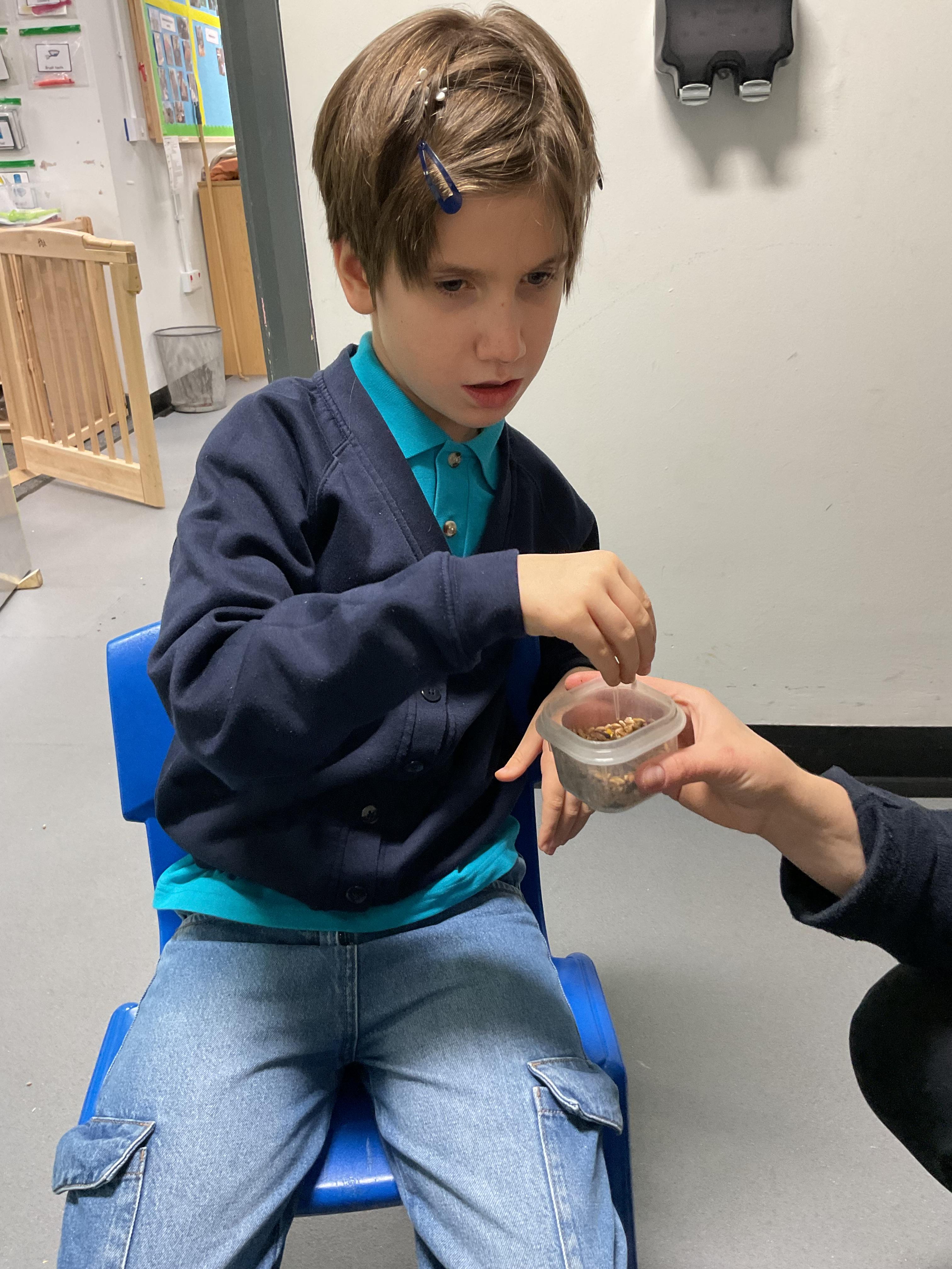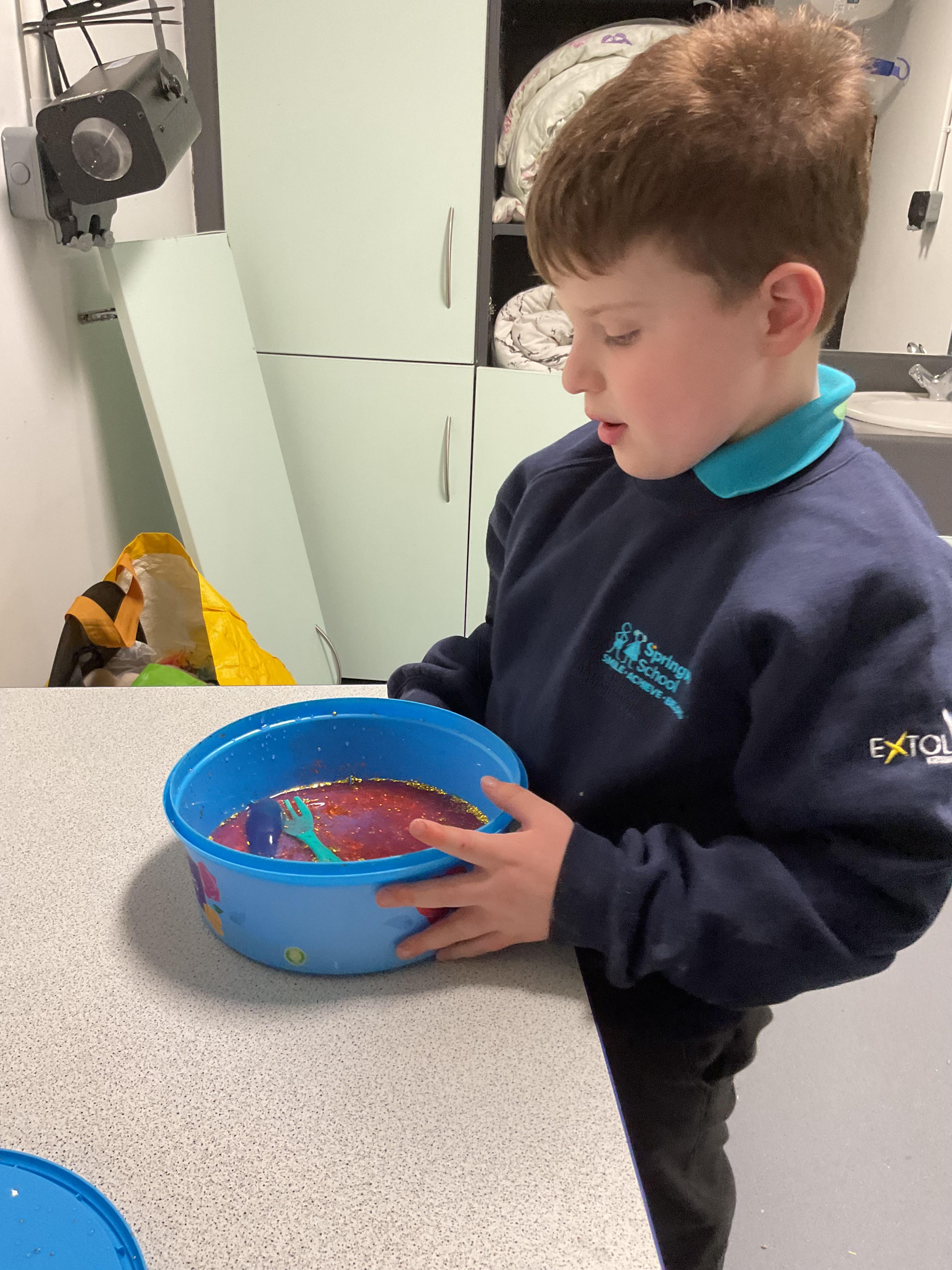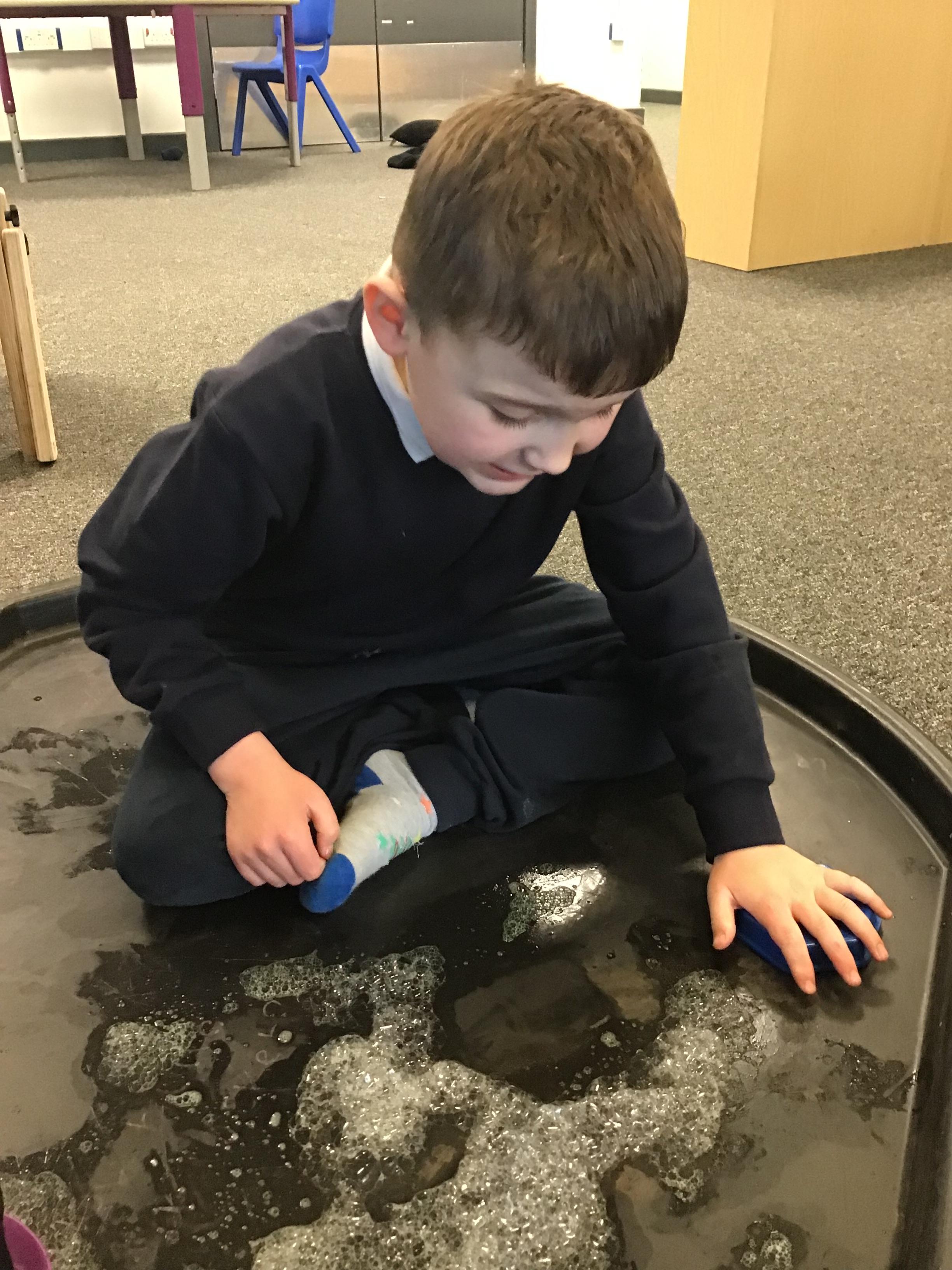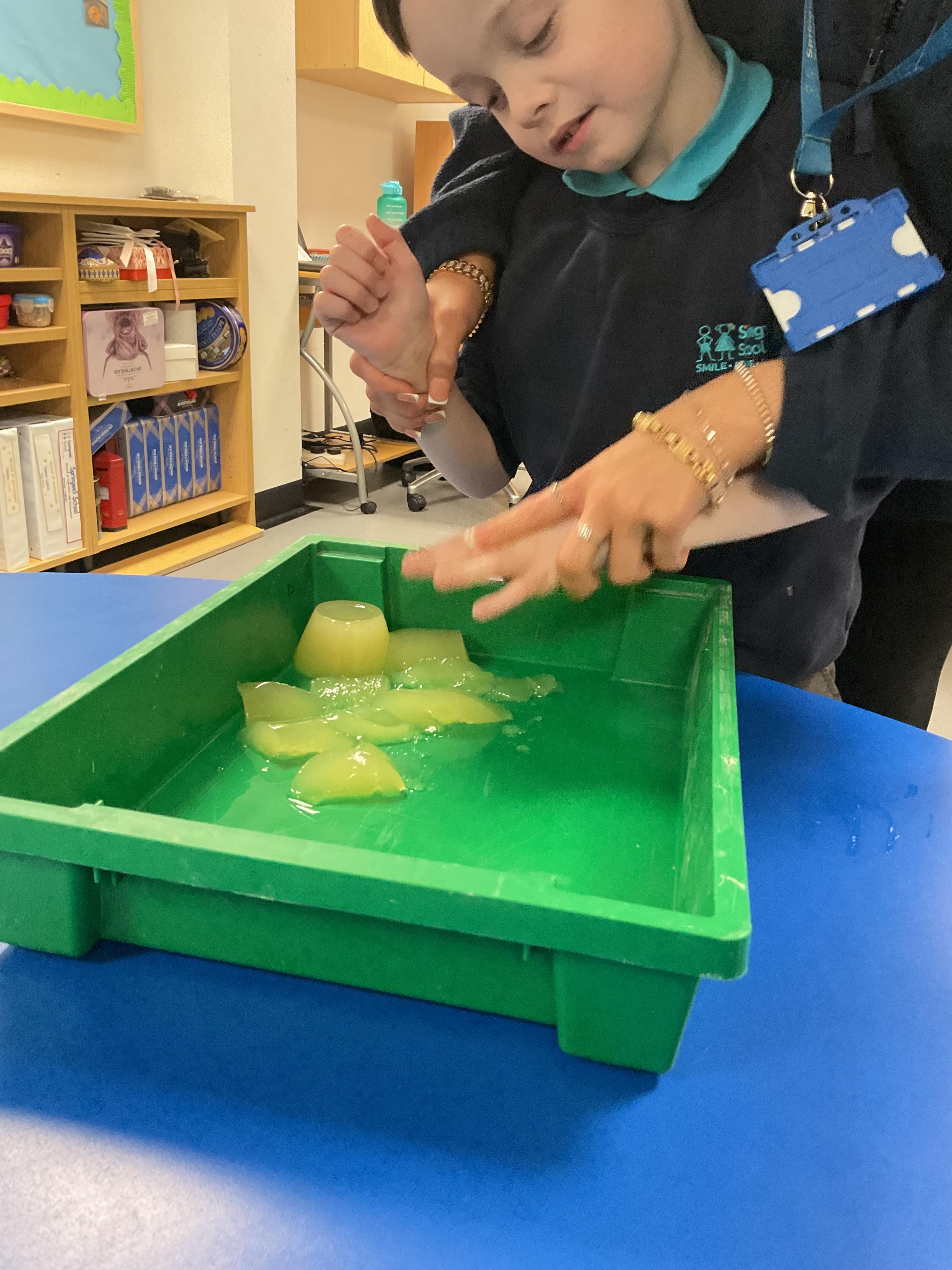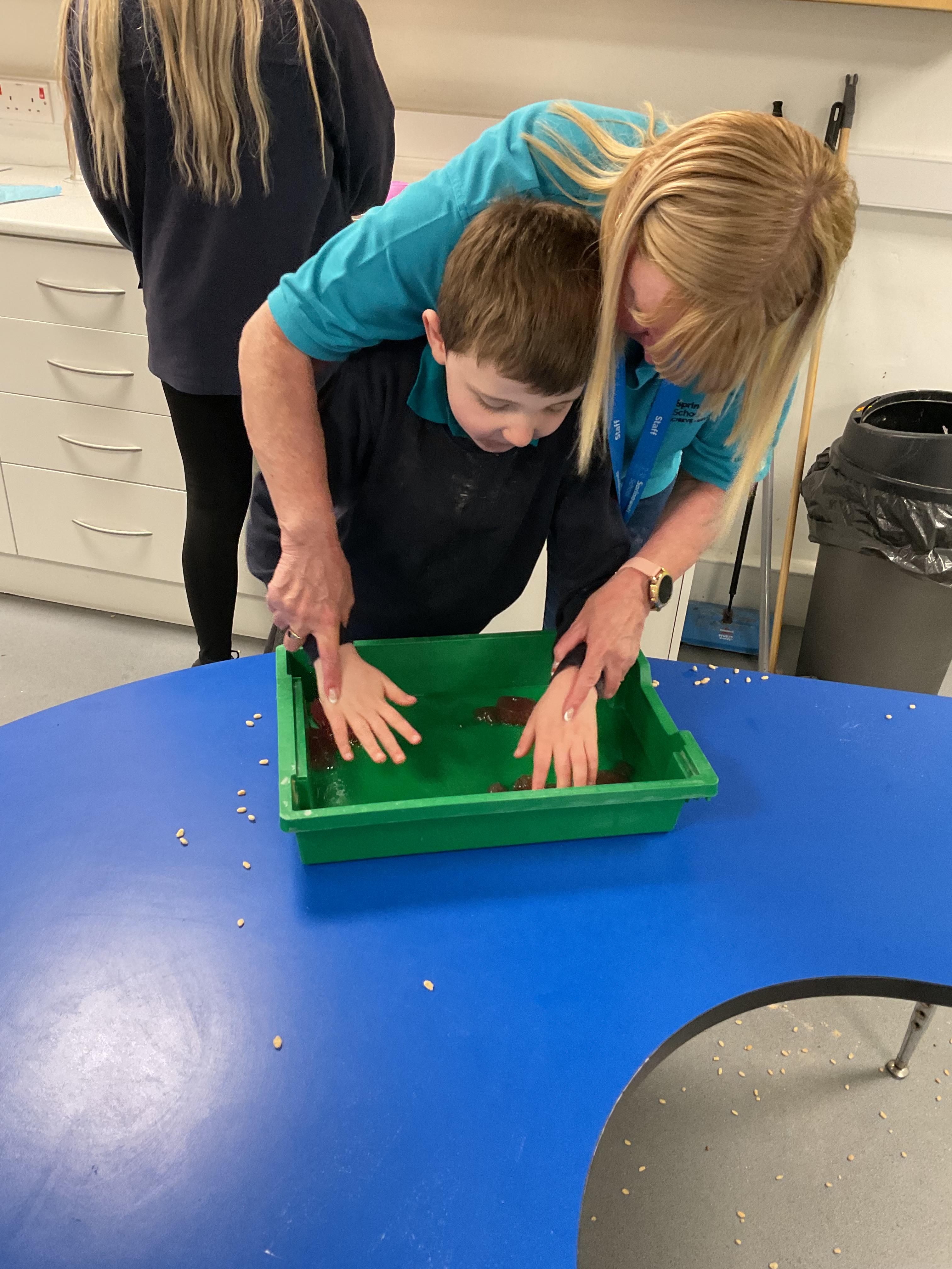 Over the last two weeks of term we enjoyed exploring our story of the week in an interactive way. All of the children enjoyed using their senses as they explored the 'Gruffalo Crumble' alongside a variety of textures objects and food sources.