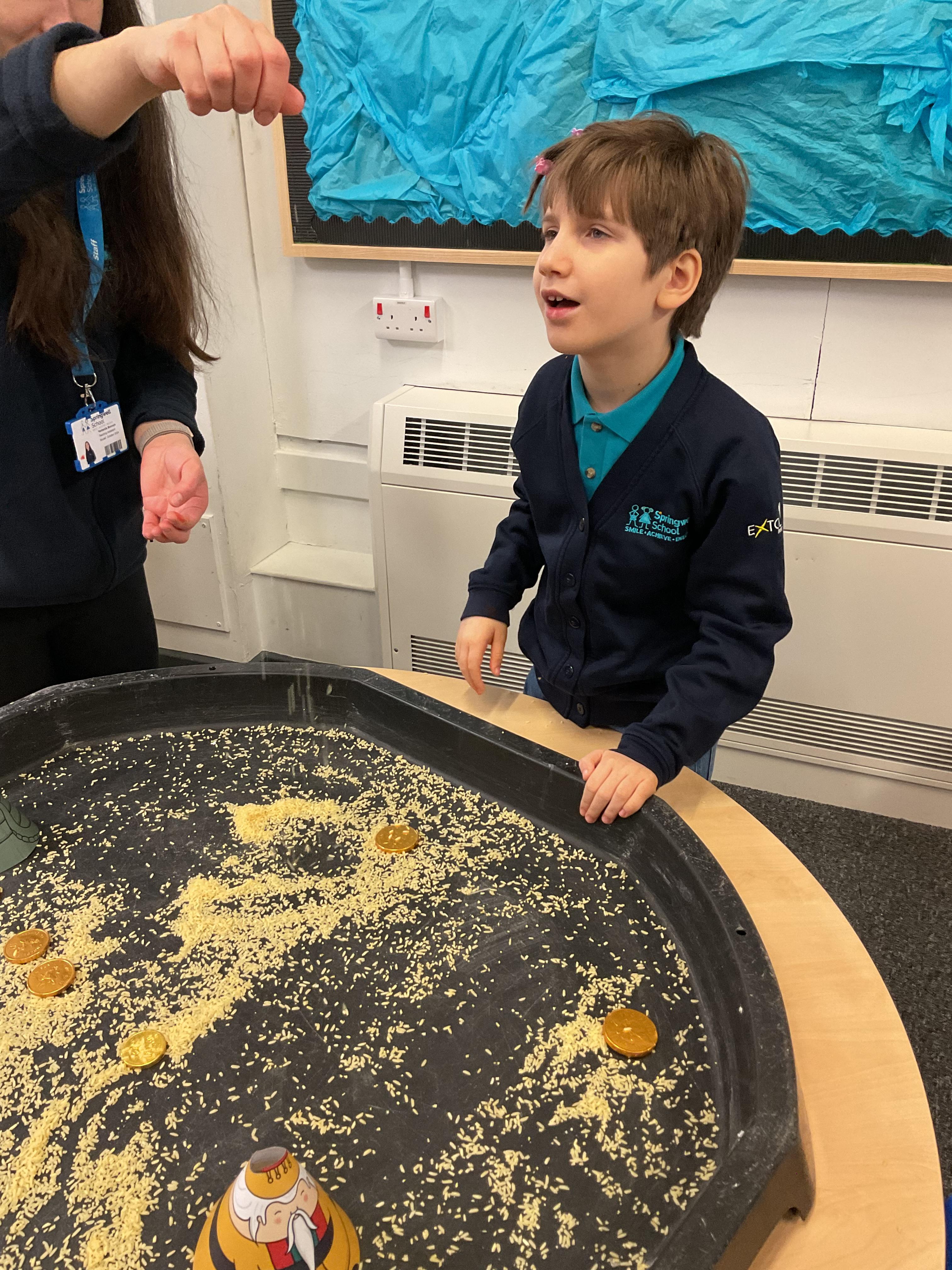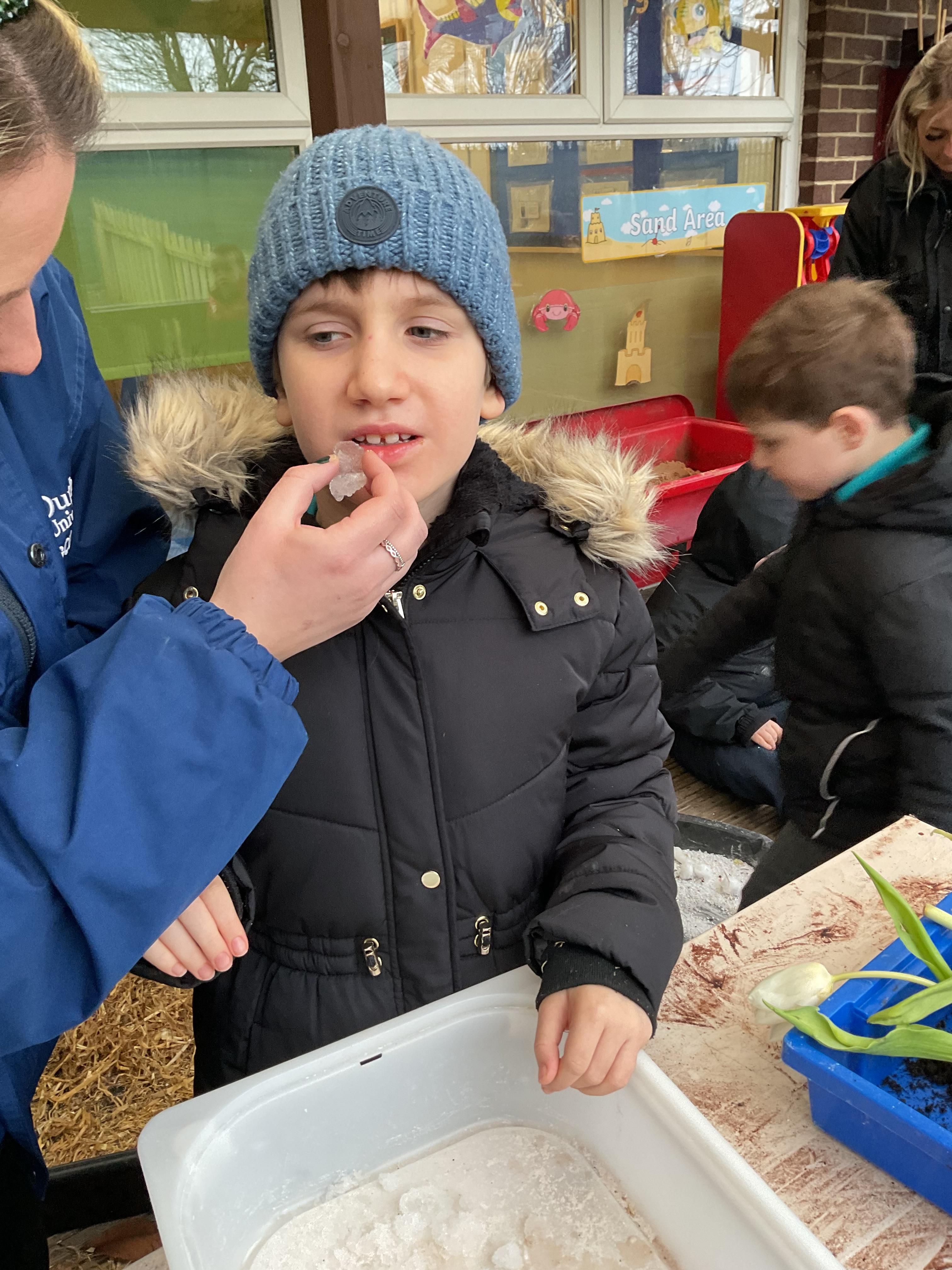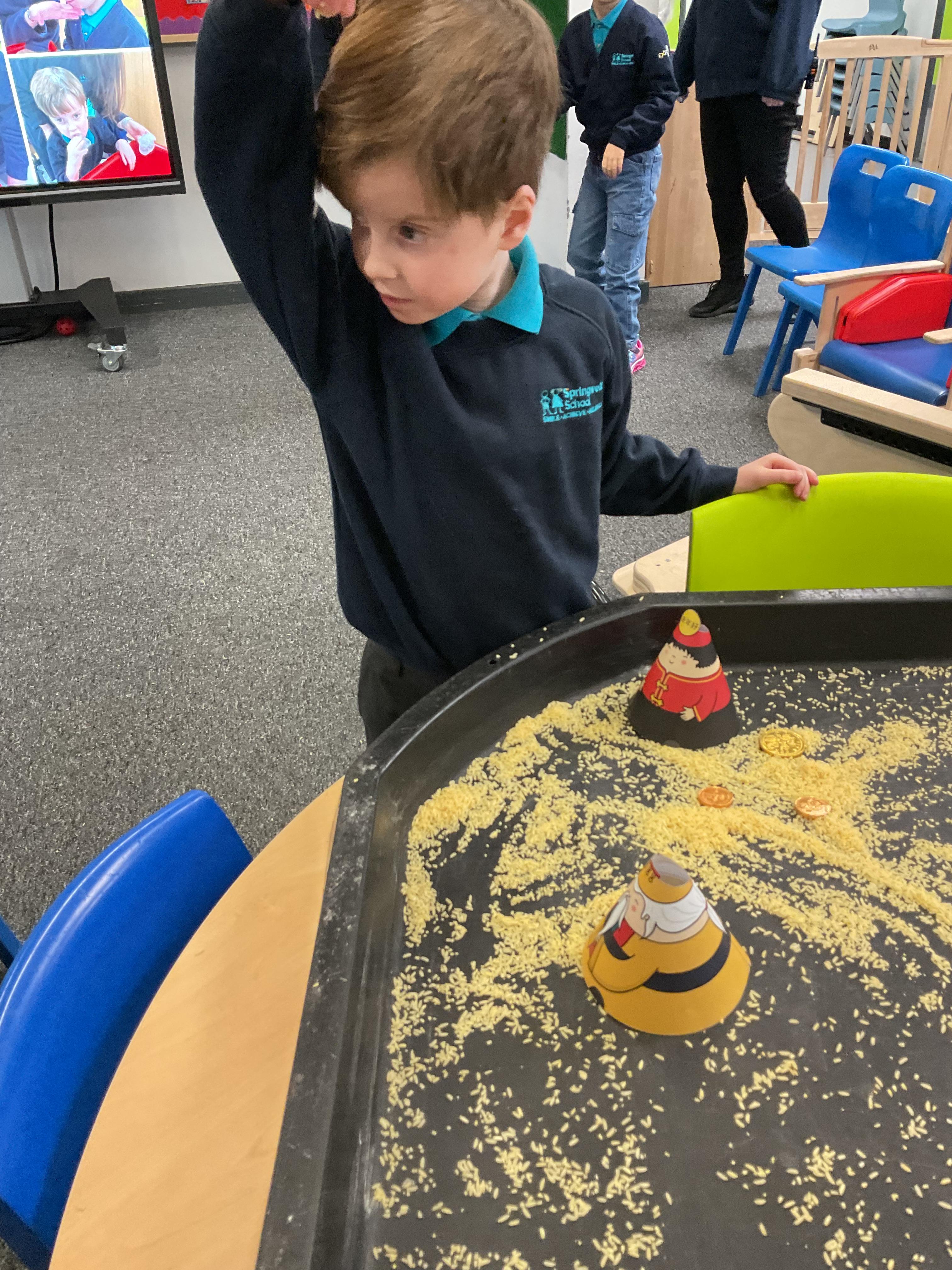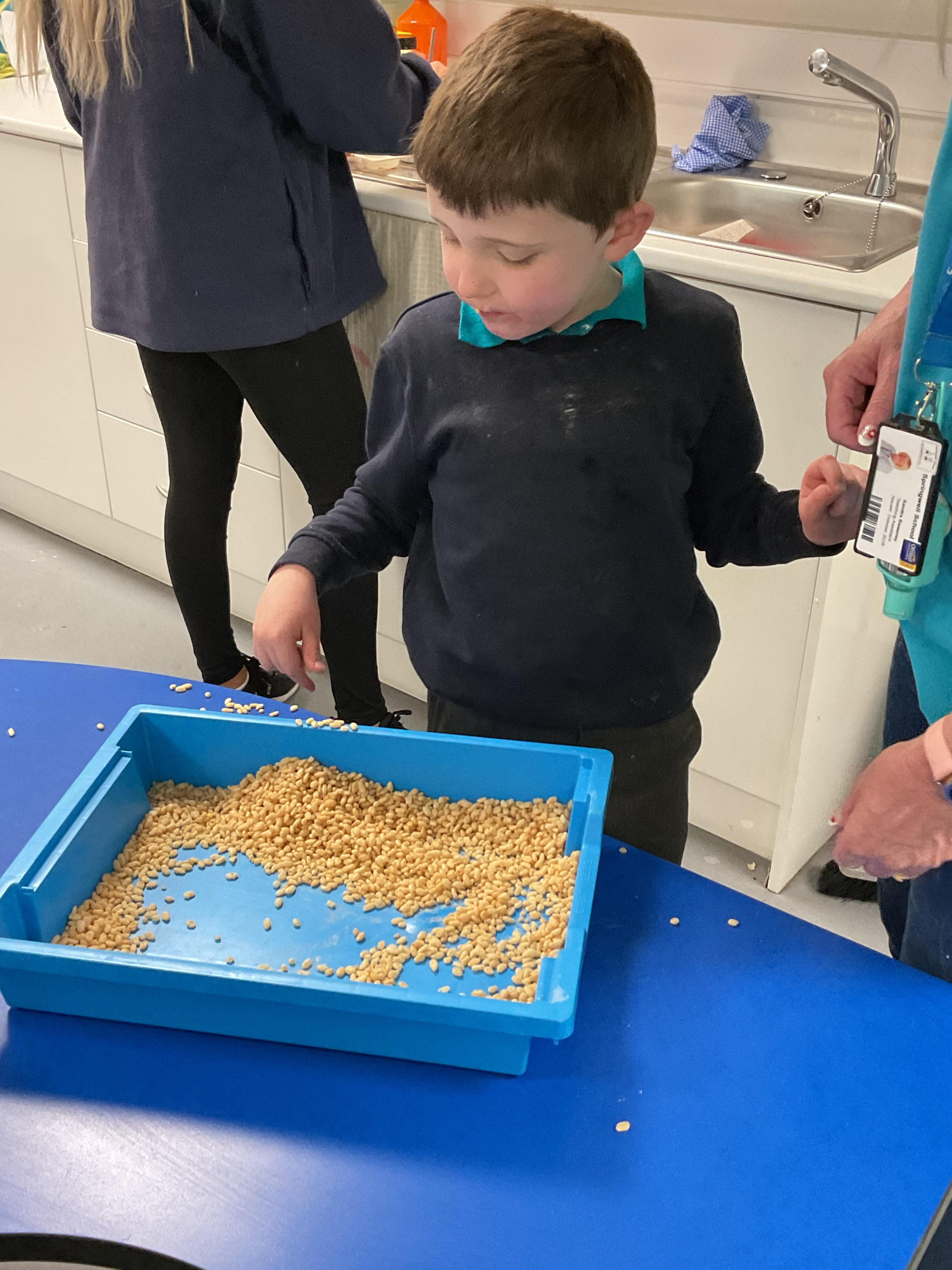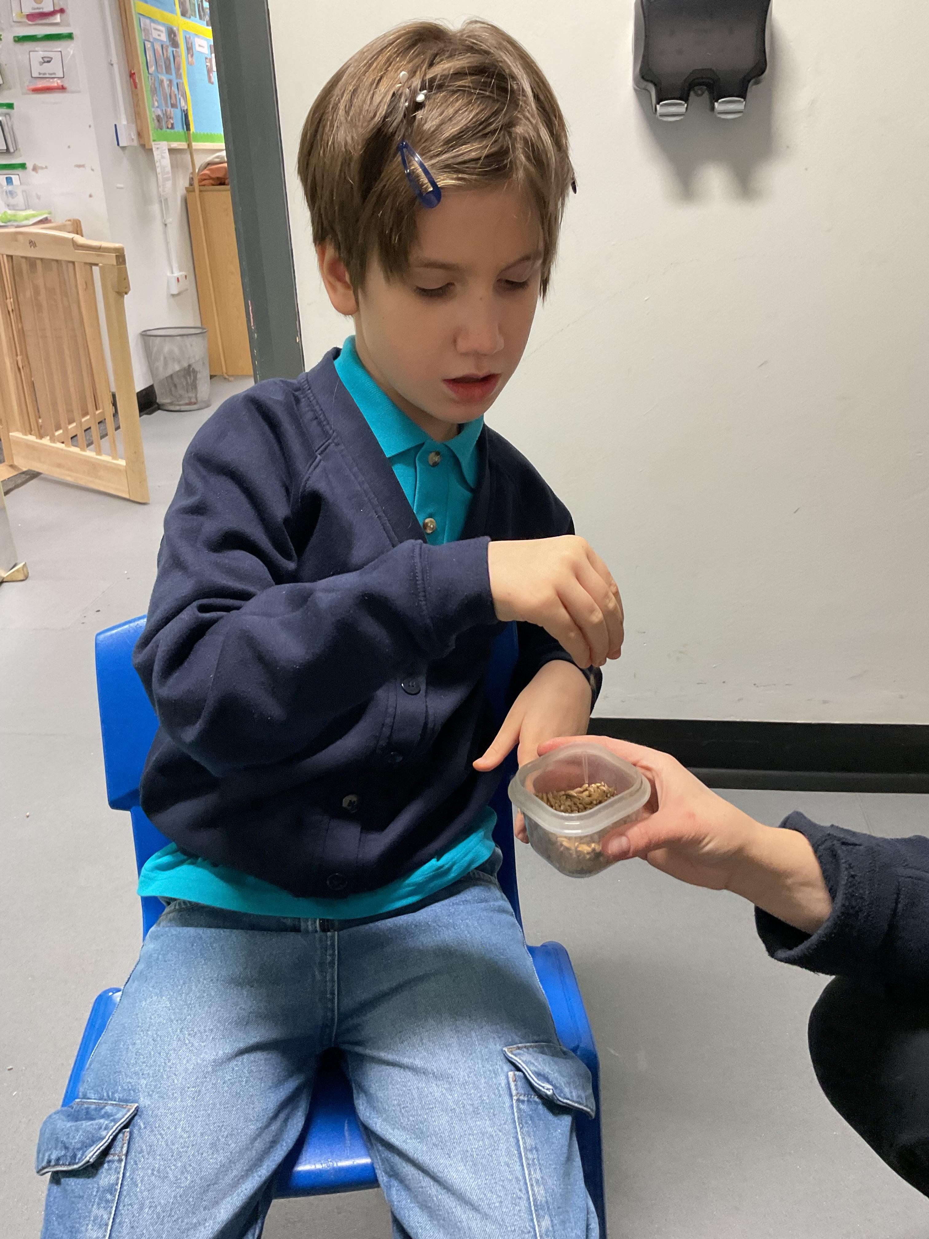 Over the last two weeks of term we enjoyed exploring our story of the week in an interactive way. All of the children enjoyed using their senses as they explored the 'Gruffalo Crumble' alongside a variety of textures objects and food sources.