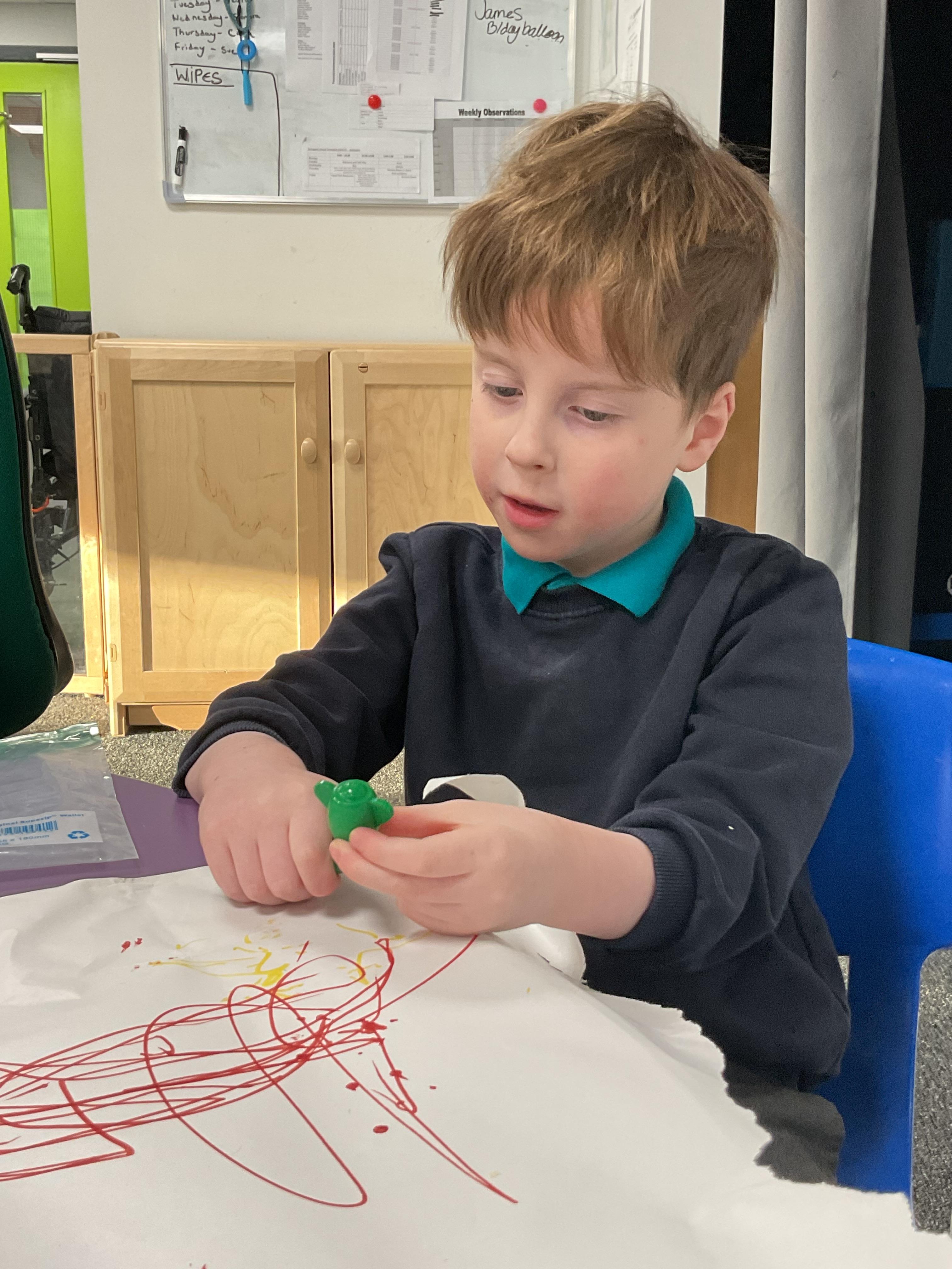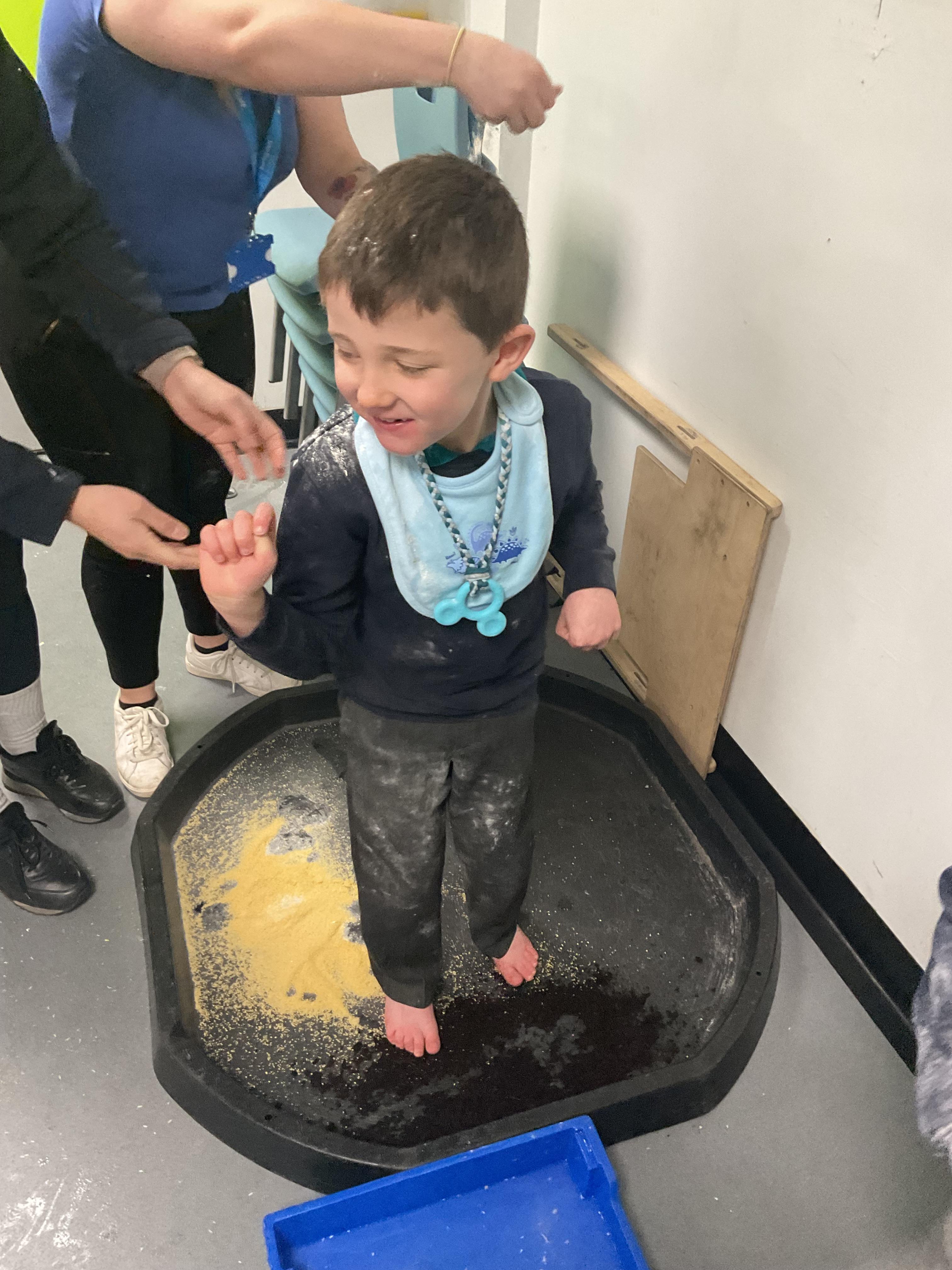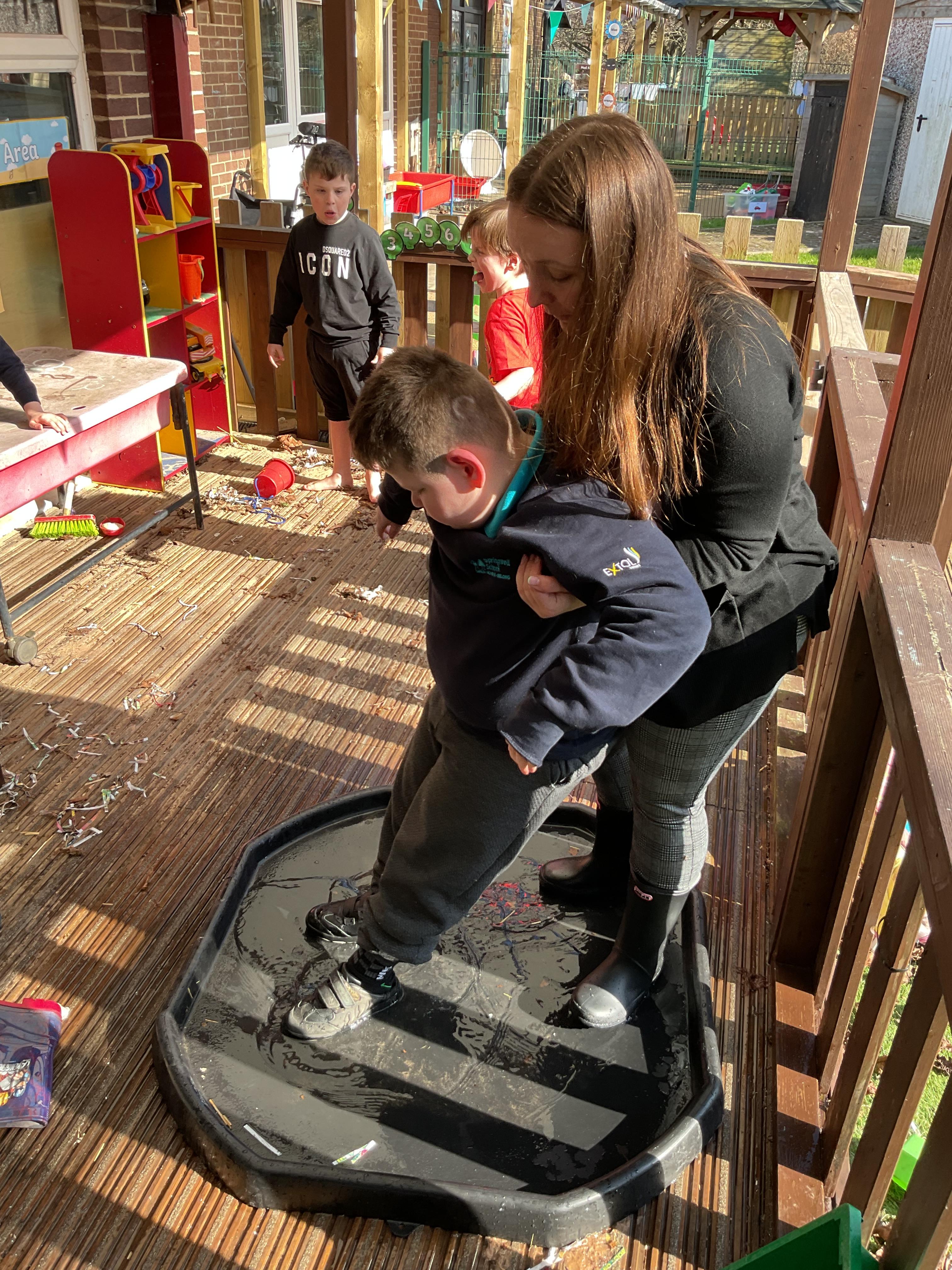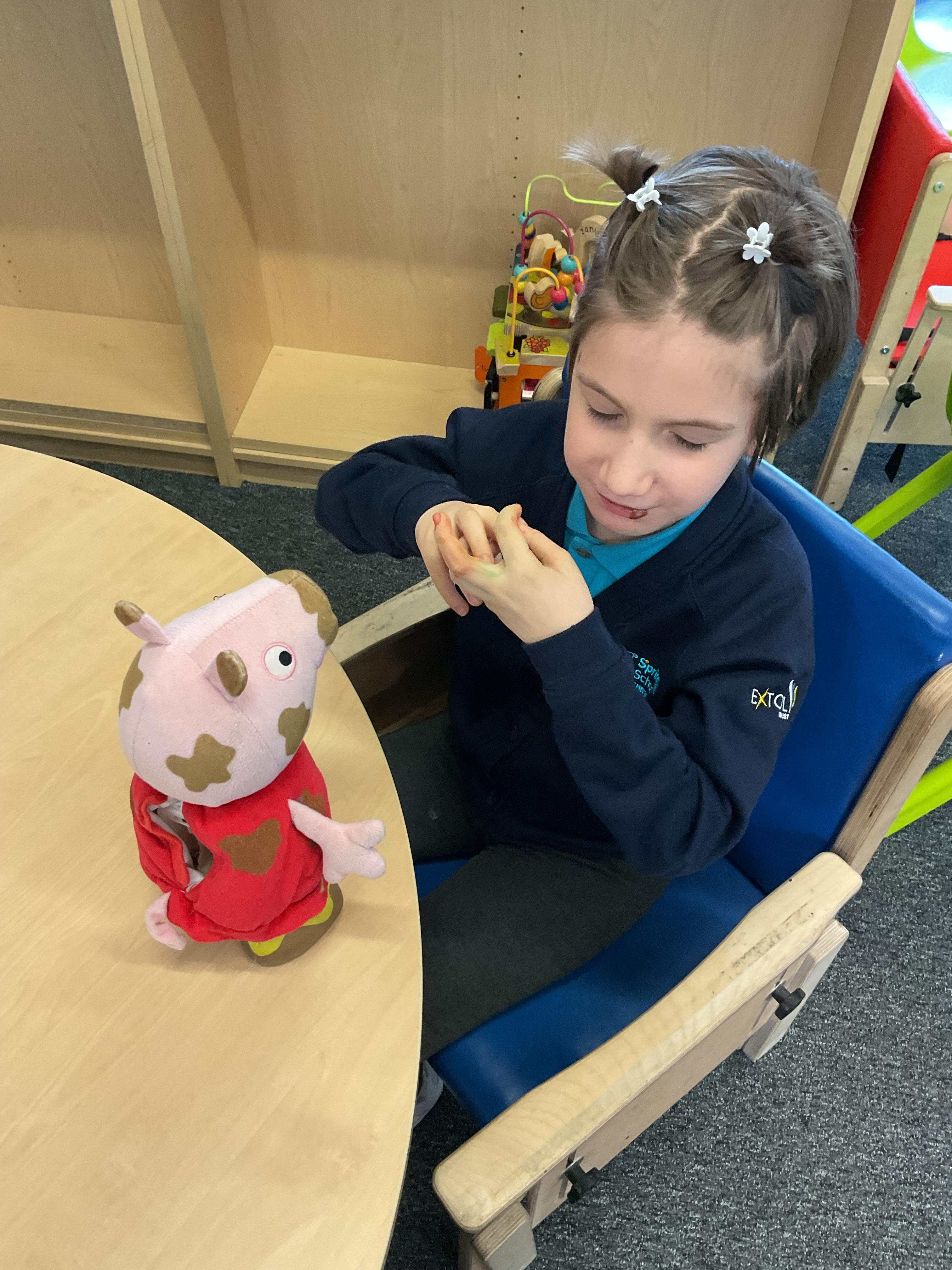 We also celebrated World Book Day by exploring our favourite books all week, encouraging a love of reading through a combination of storytelling, sensory activities and art. Attention Autism Approach was used to retell the story of 'The Very Hungry Caterpillar.' Our week has included multiple opportunities for sensory experiences where the children explored different foods from stories through touch, smell and taste. They also had the chance to jump in muddy puddles like Peppa Pig!