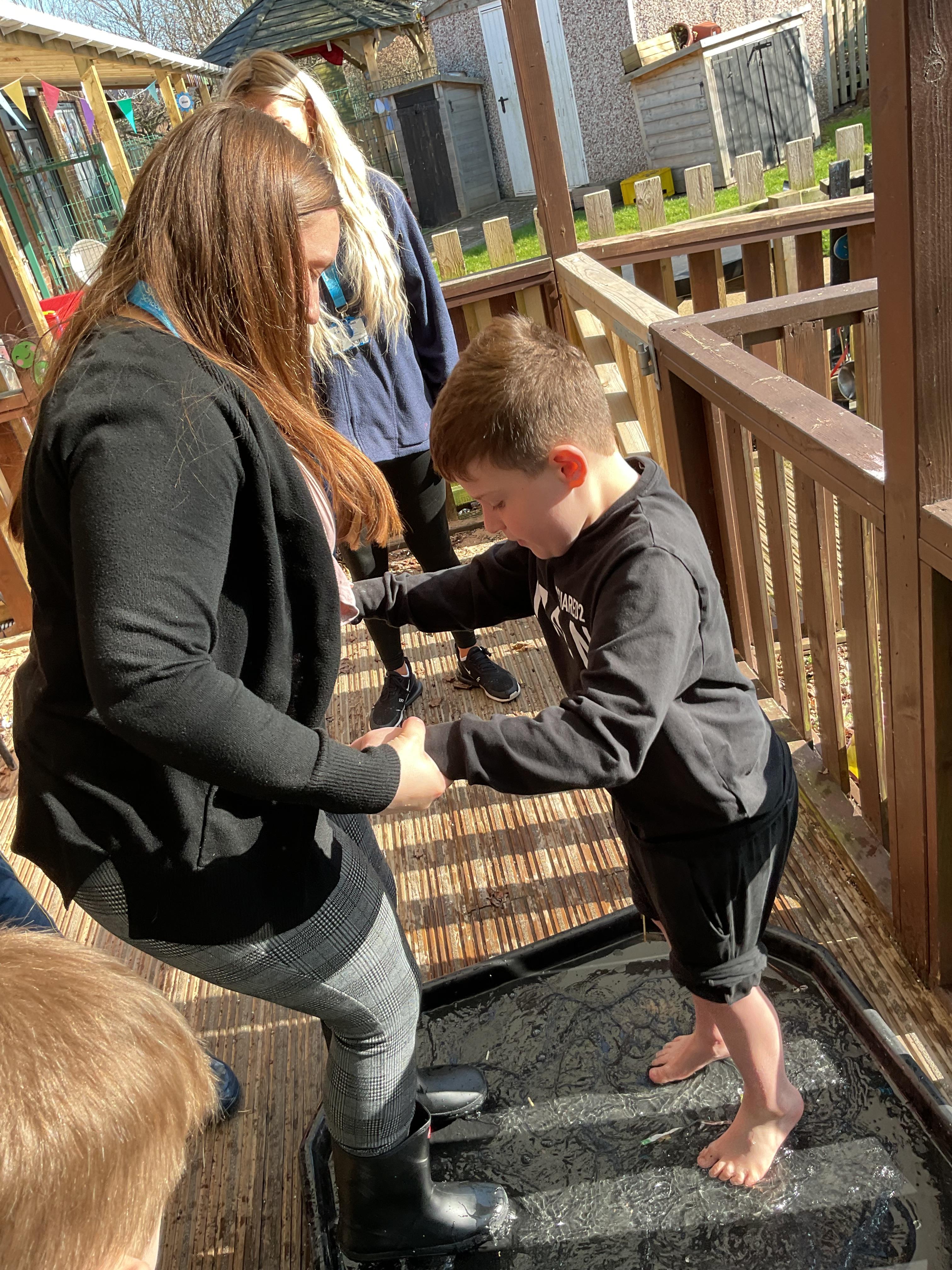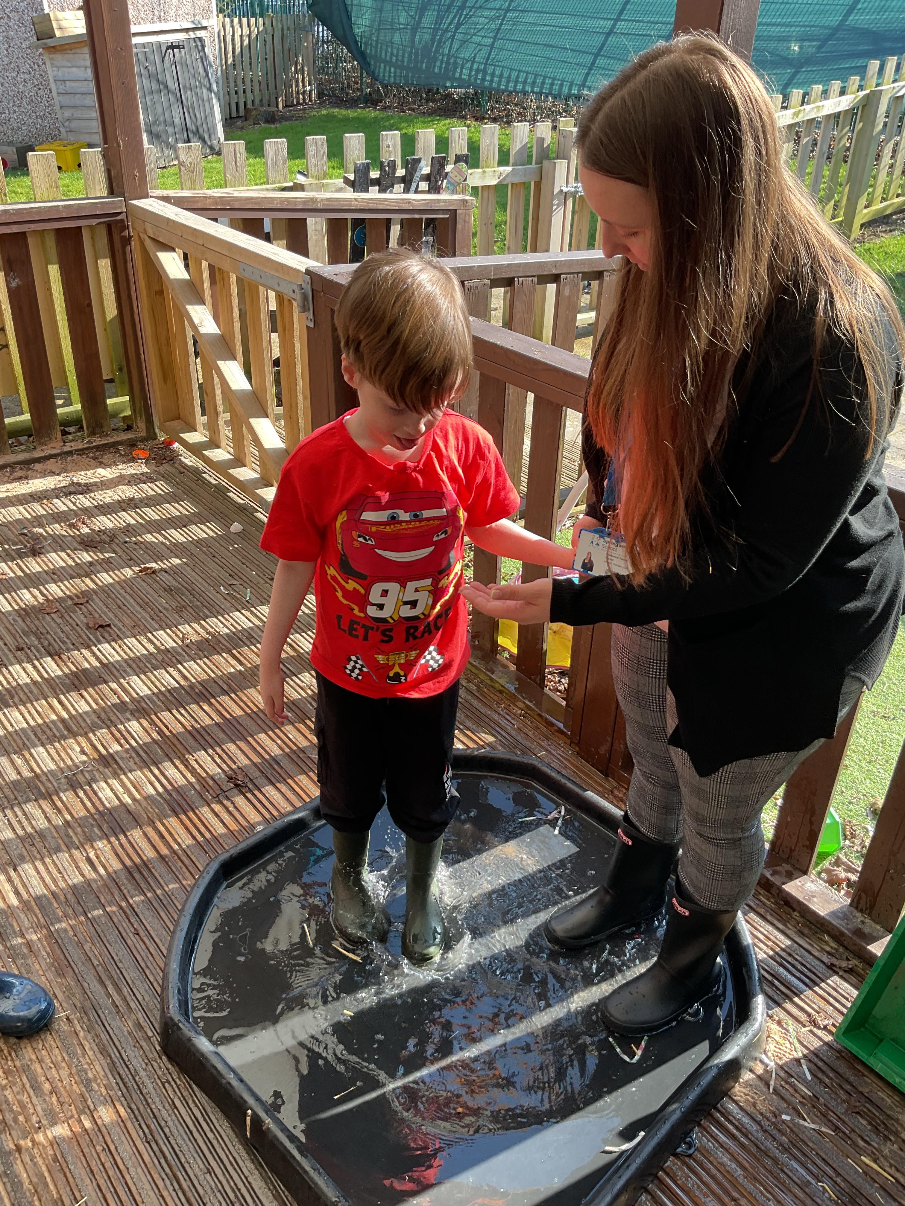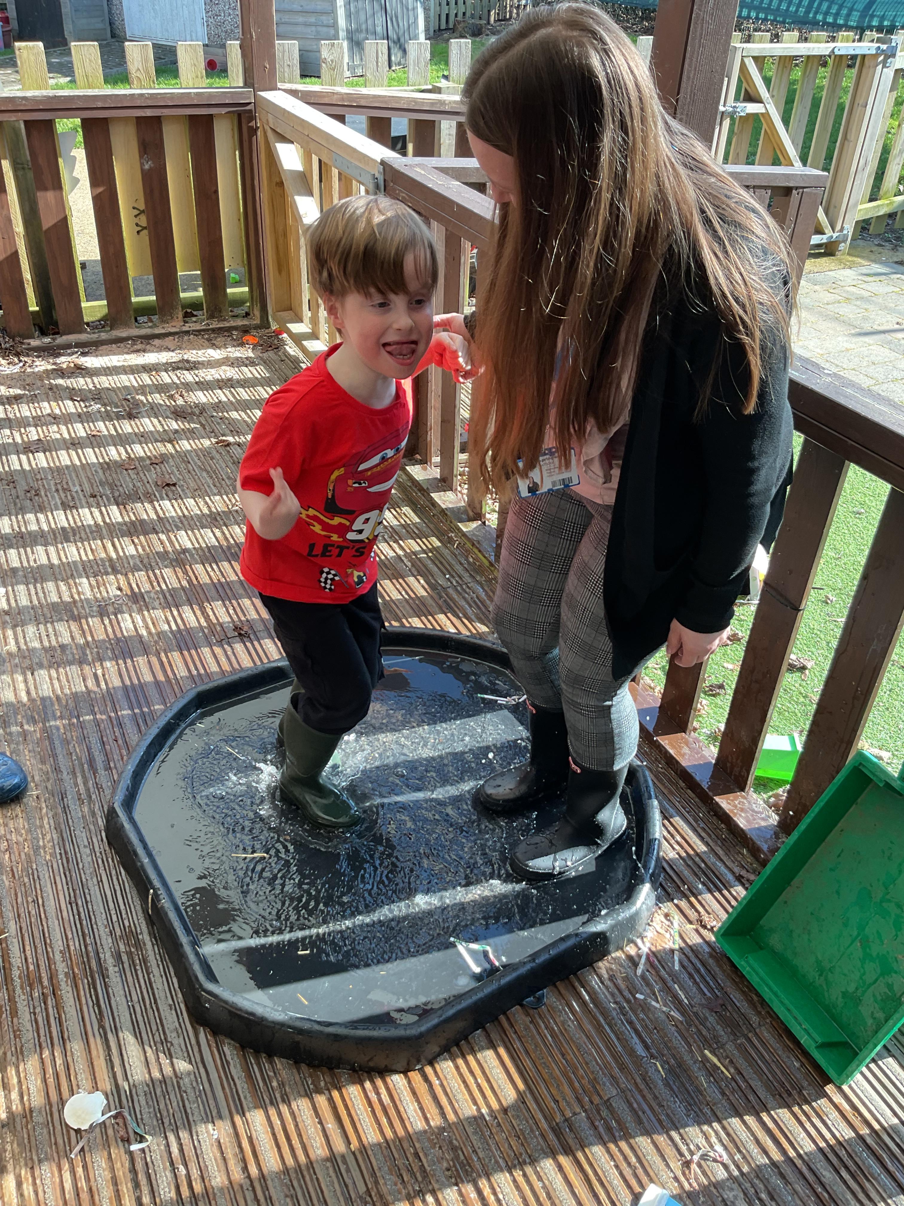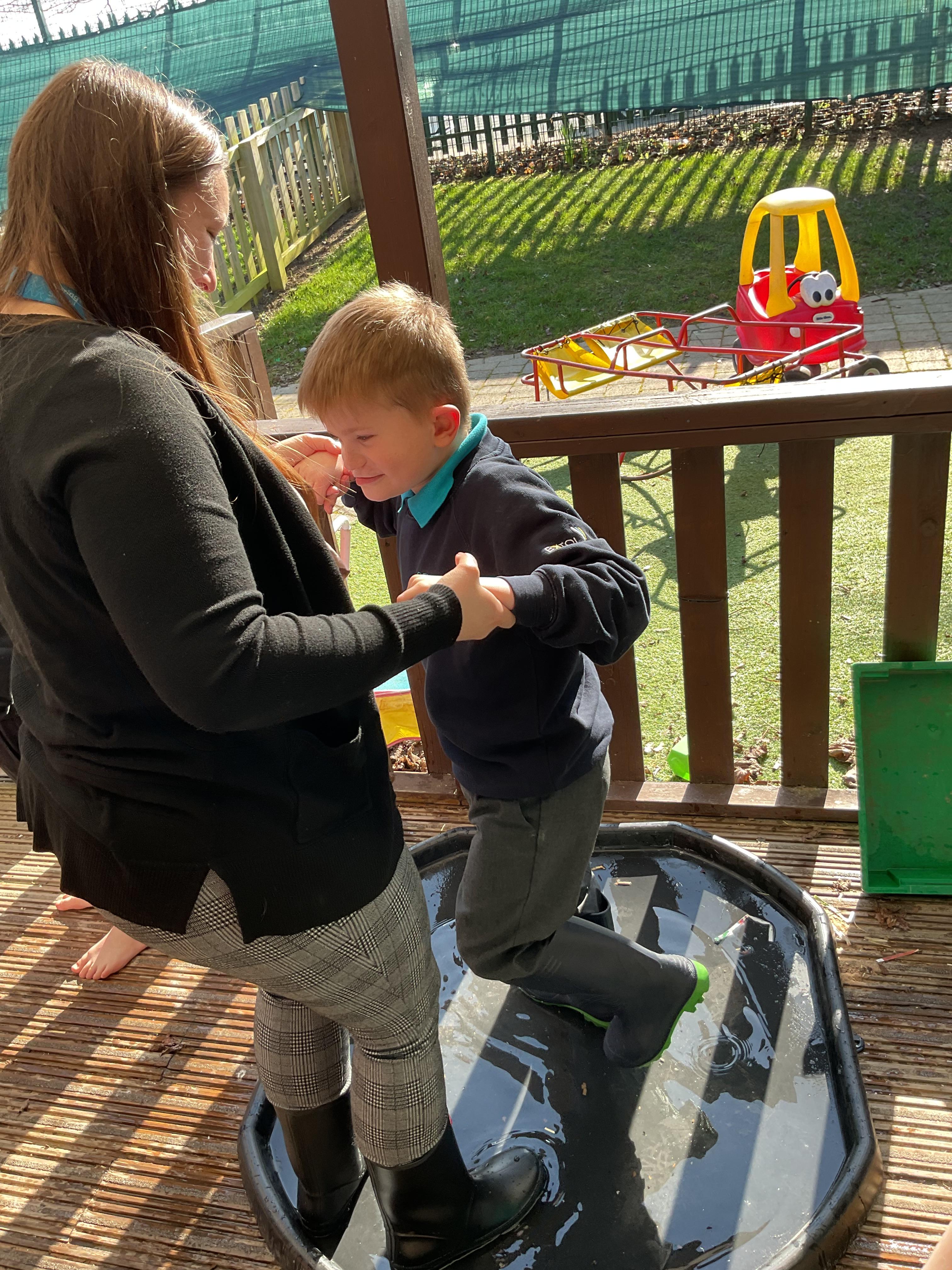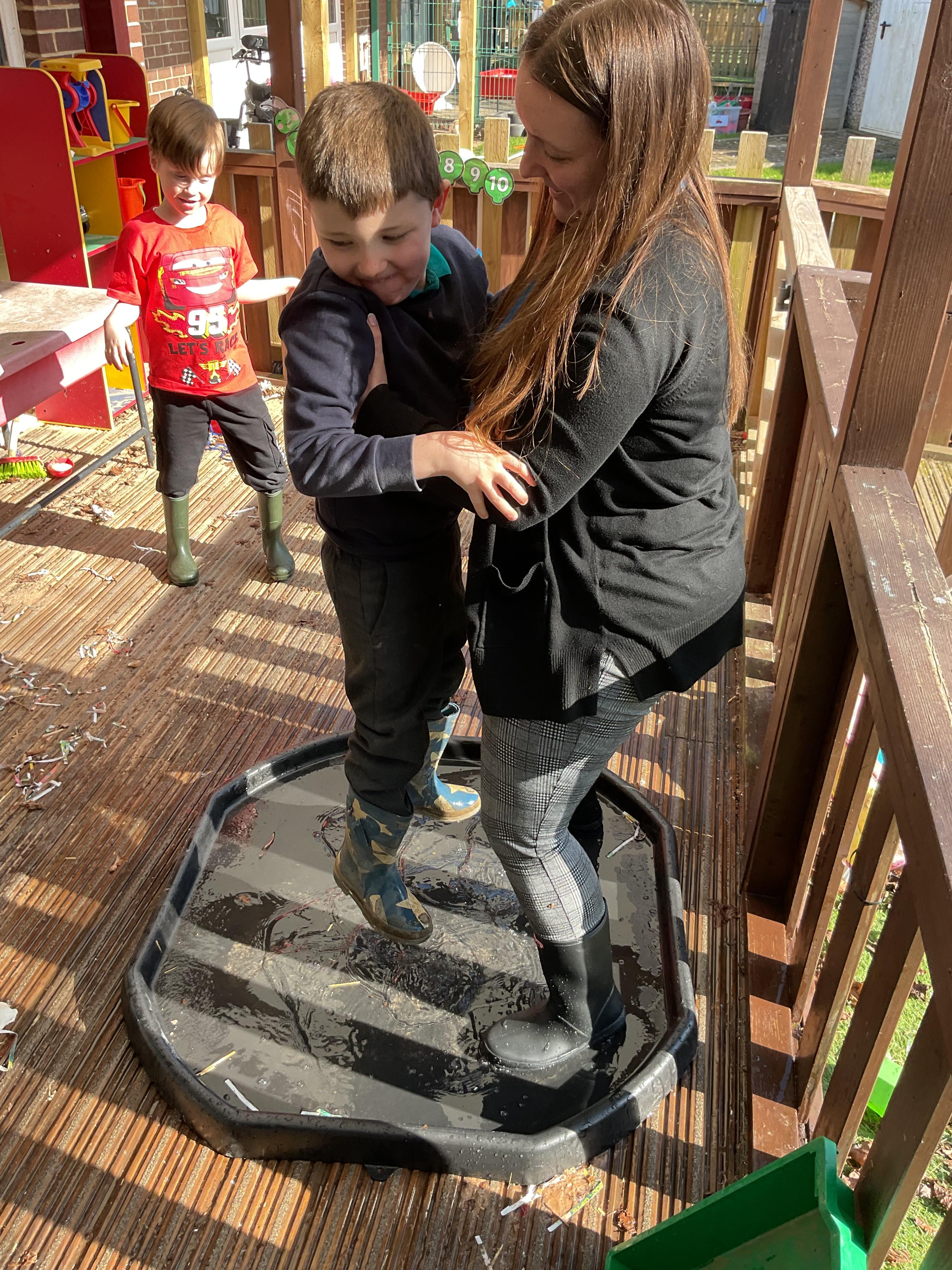 We also celebrated World Book Day by exploring our favourite books all week, encouraging a love of reading through a combination of storytelling, sensory activities and art. Attention Autism Approach was used to retell the story of 'The Very Hungry Caterpillar.' Our week has included multiple opportunities for sensory experiences where the children explored different foods from stories through touch, smell and taste. They also had the chance to jump in muddy puddles like Peppa Pig!