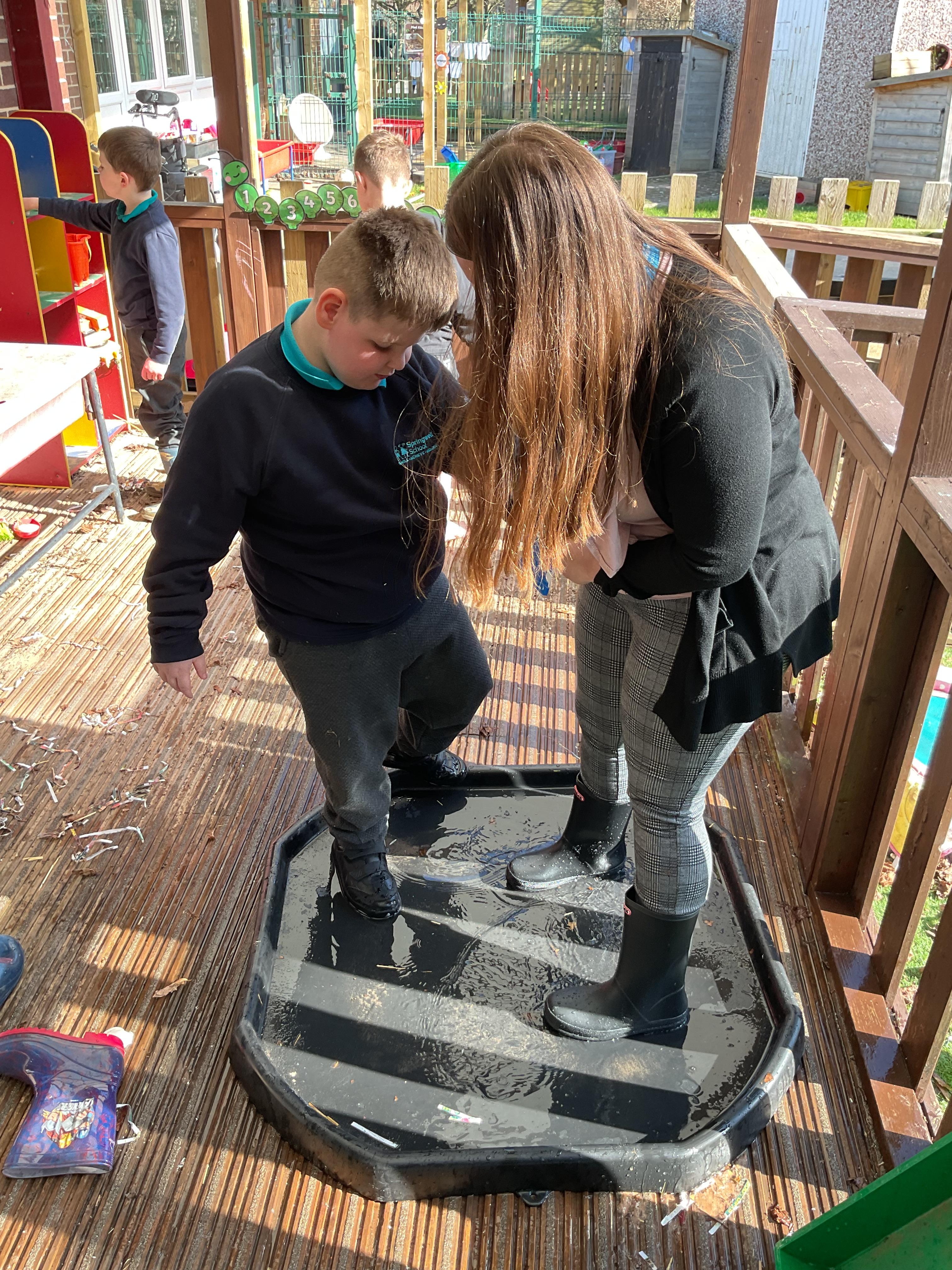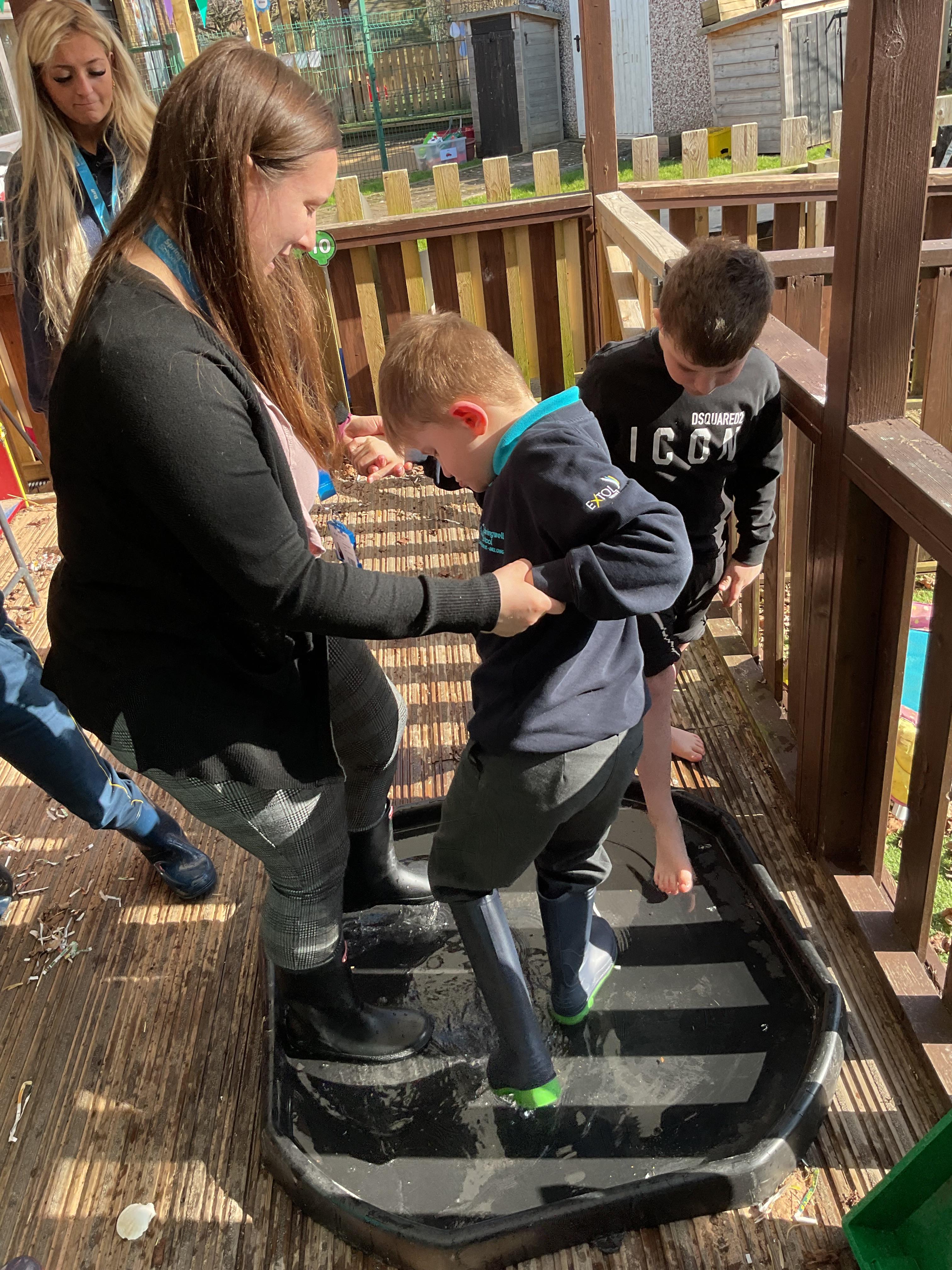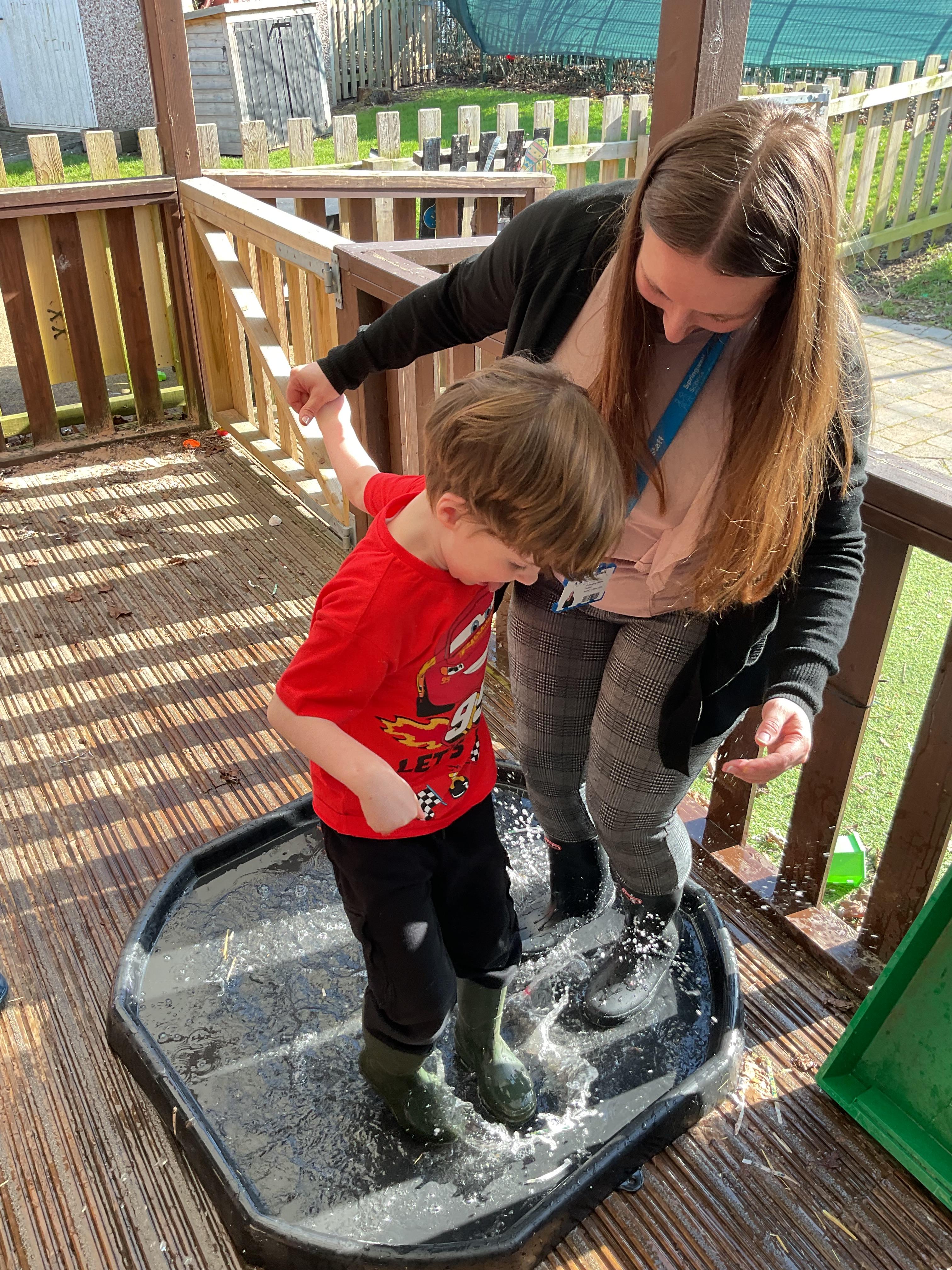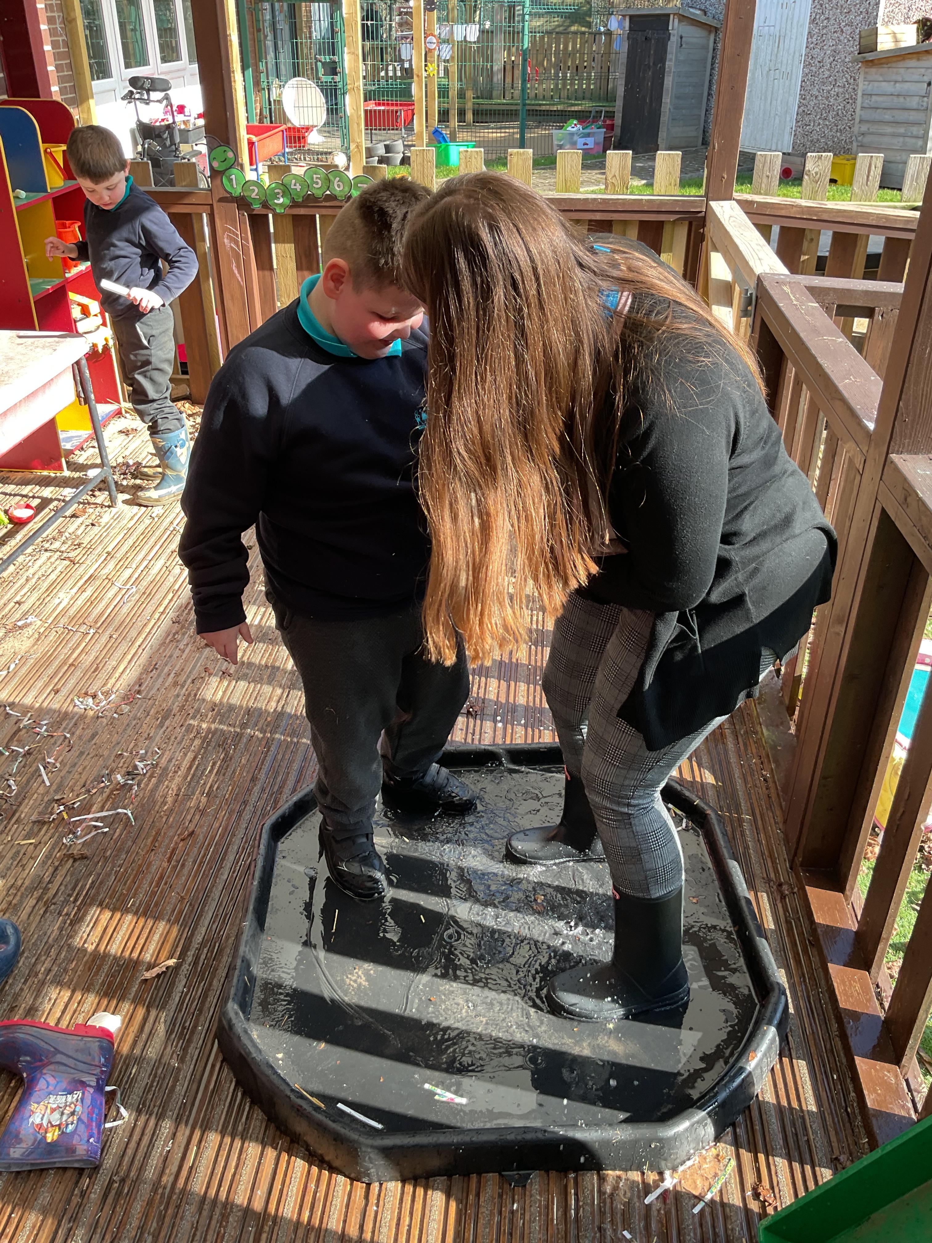 We also celebrated World Book Day by exploring our favourite books all week, encouraging a love of reading through a combination of storytelling, sensory activities and art. Attention Autism Approach was used to retell the story of 'The Very Hungry Caterpillar.' Our week has included multiple opportunities for sensory experiences where the children explored different foods from stories through touch, smell and taste. They also had the chance to jump in muddy puddles like Peppa Pig!