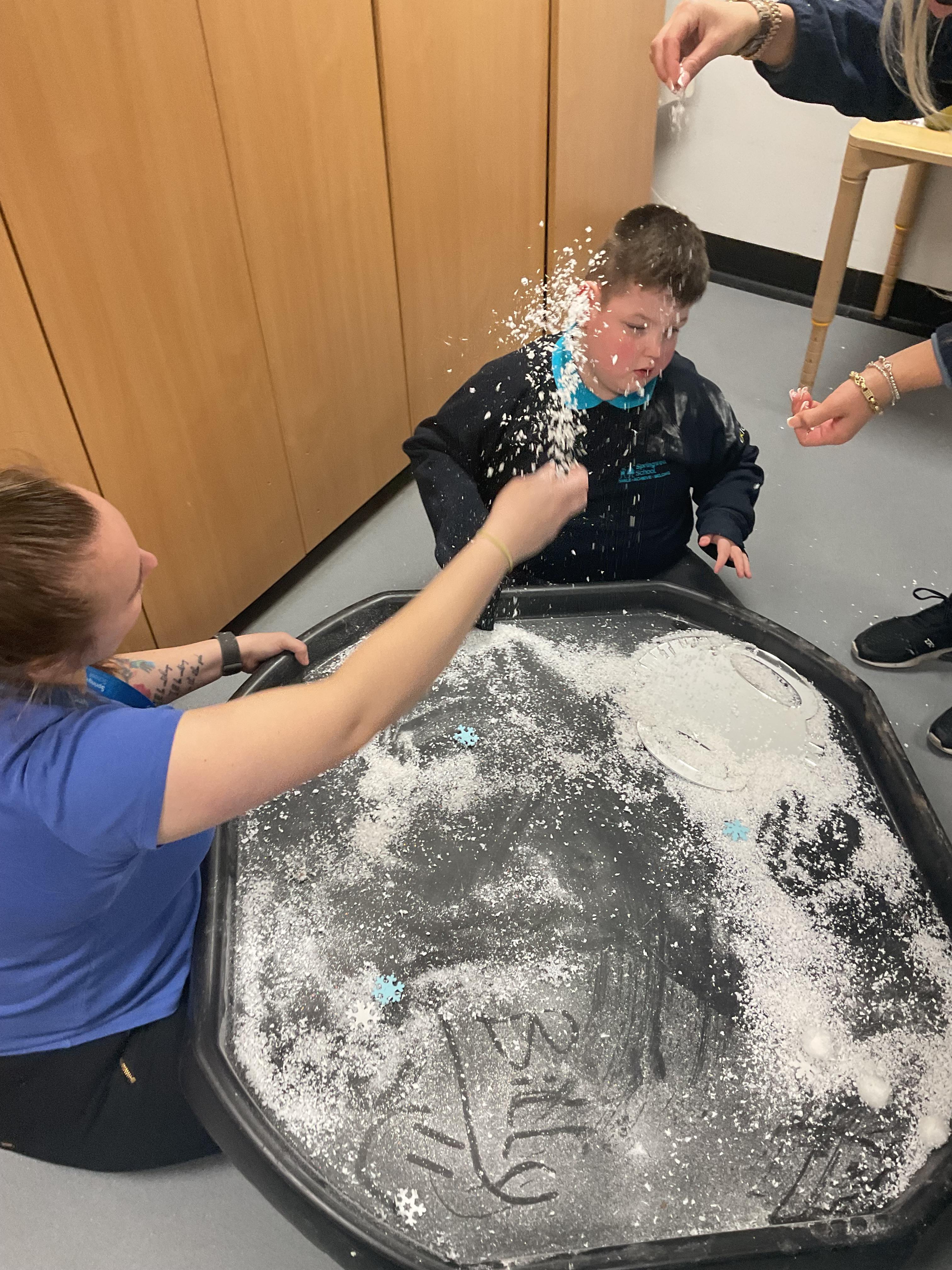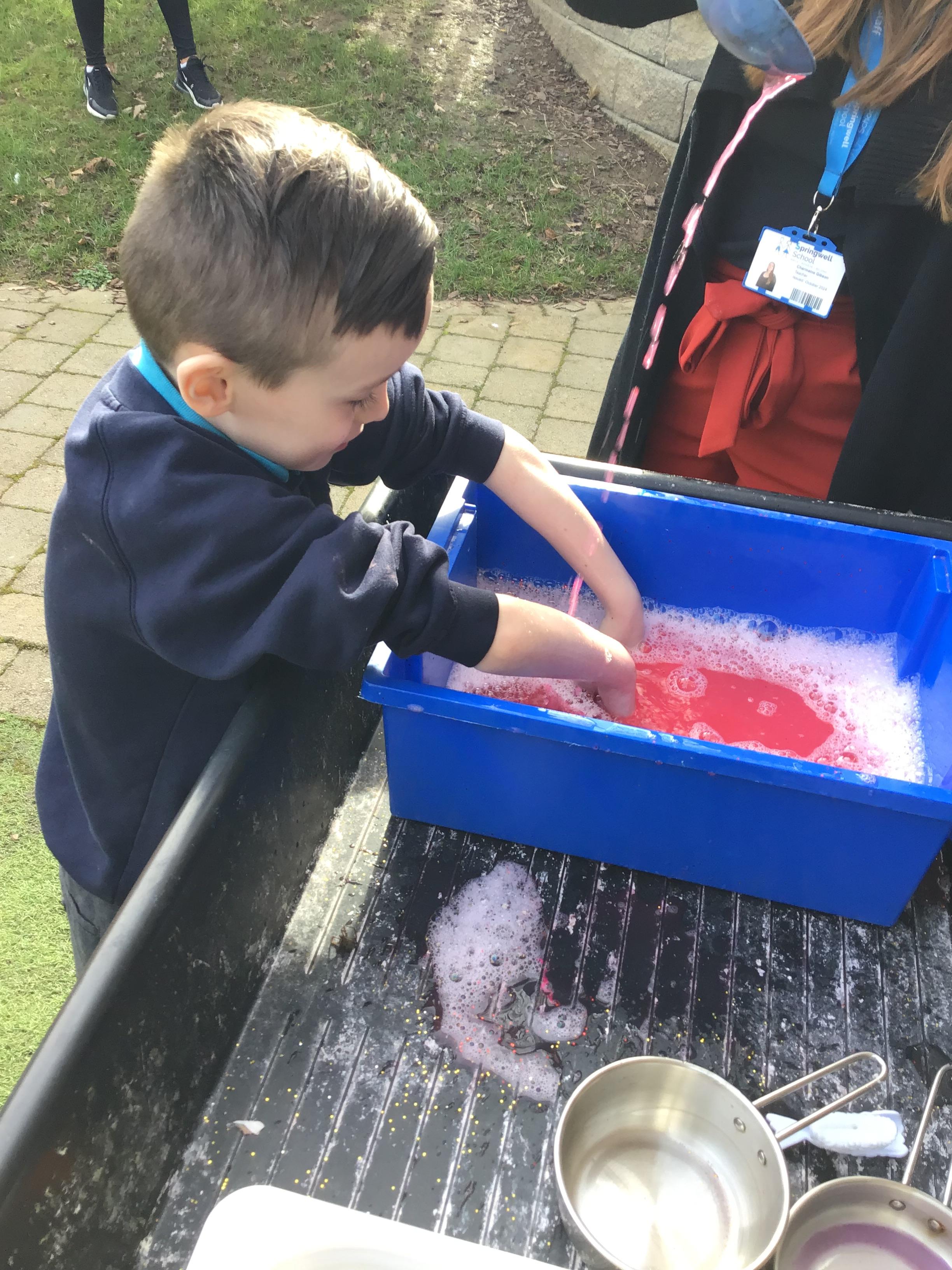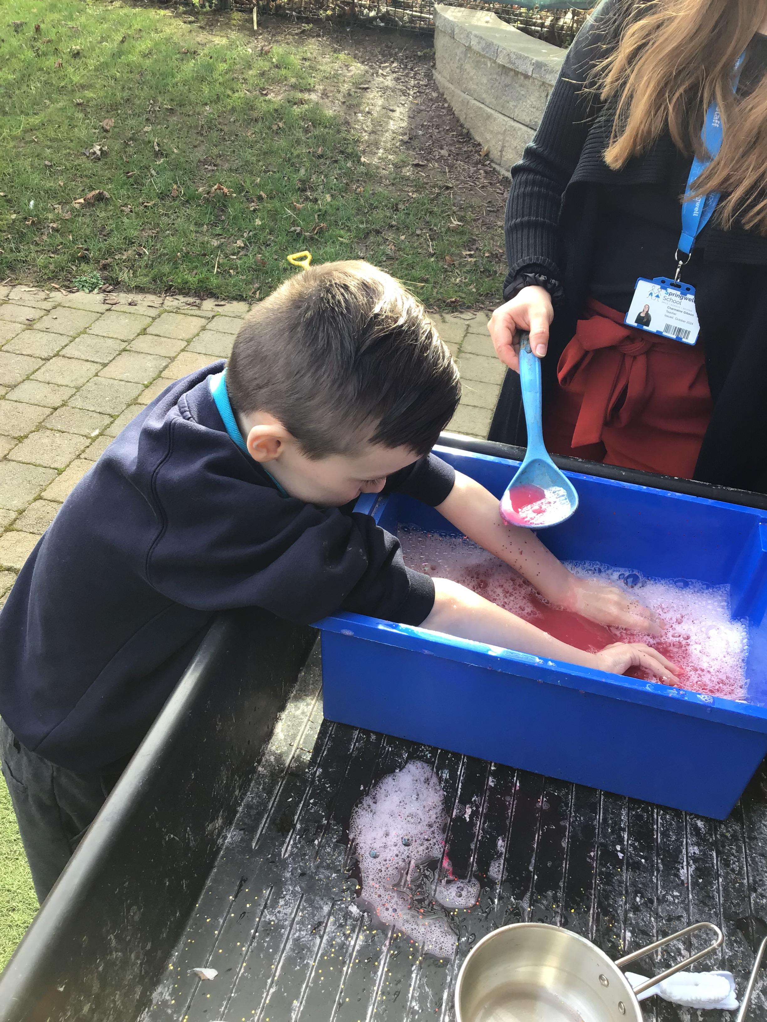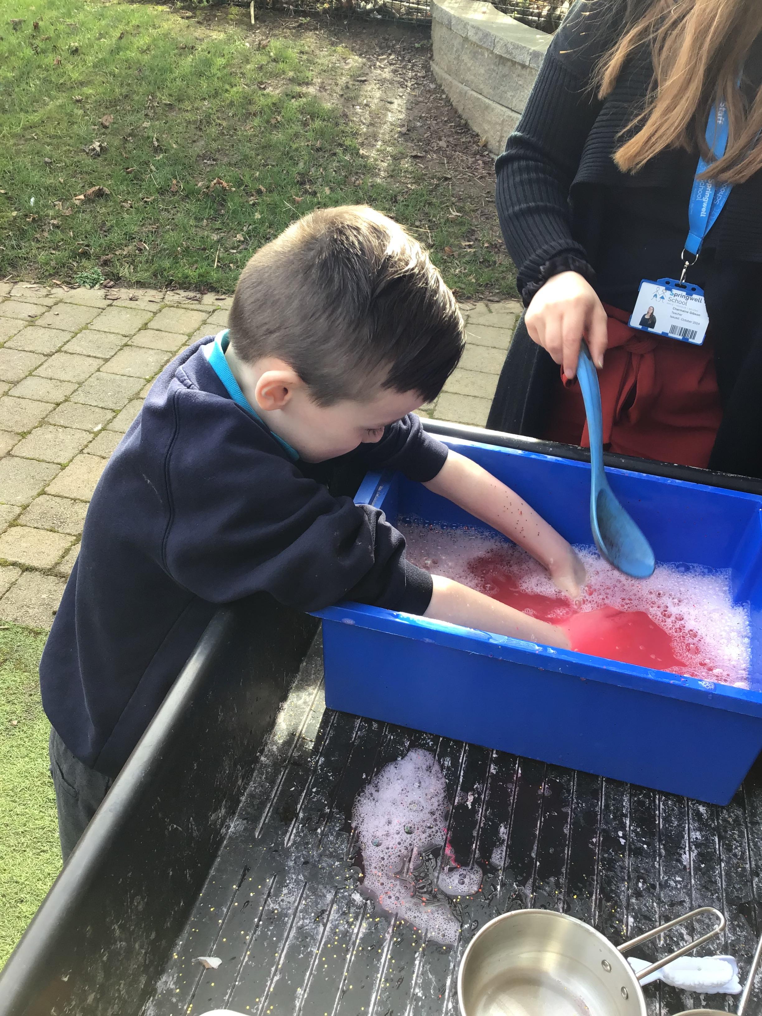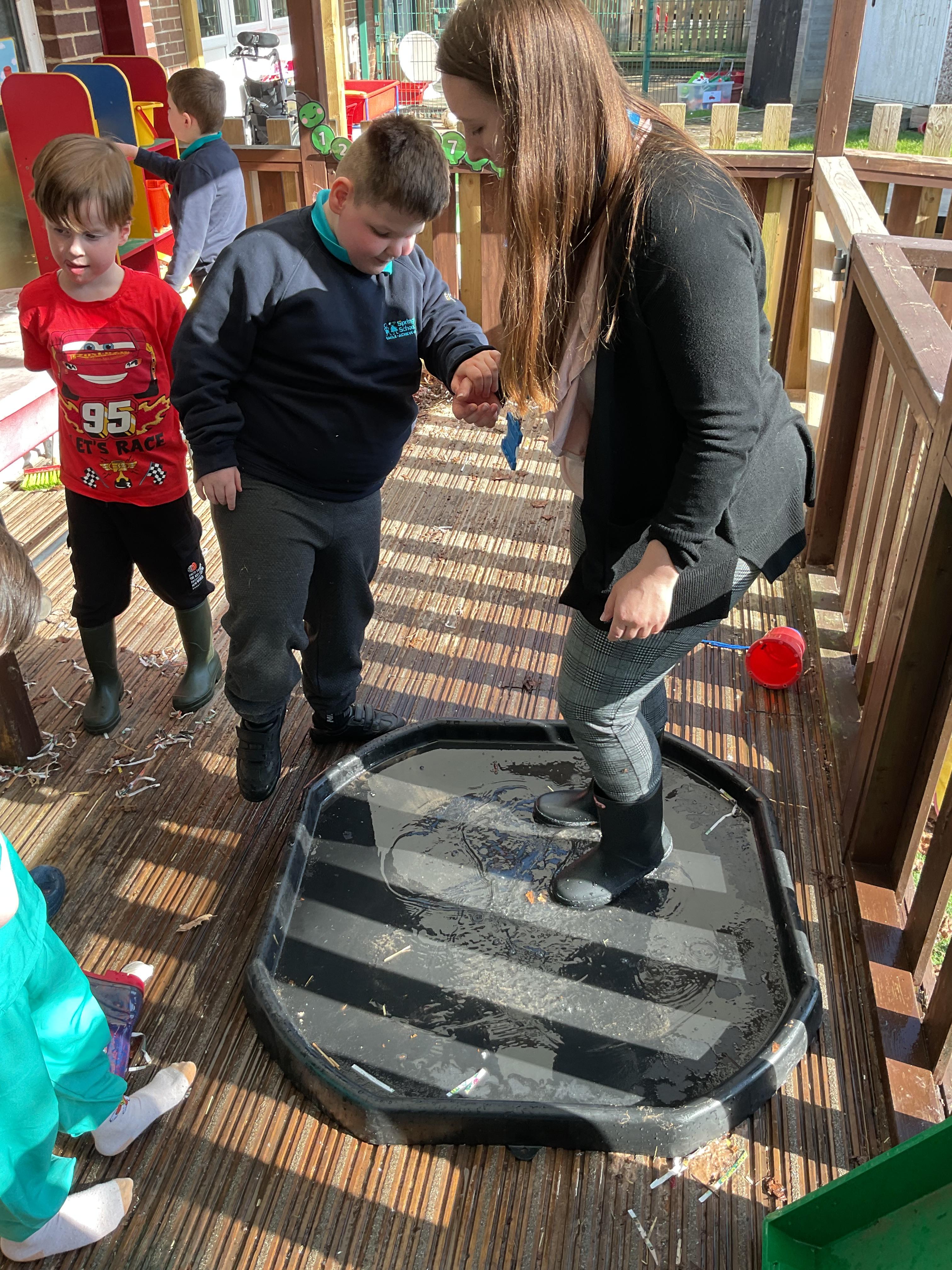 We also celebrated World Book Day by exploring our favourite books all week, encouraging a love of reading through a combination of storytelling, sensory activities and art. Attention Autism Approach was used to retell the story of 'The Very Hungry Caterpillar.' Our week has included multiple opportunities for sensory experiences where the children explored different foods from stories through touch, smell and taste. They also had the chance to jump in muddy puddles like Peppa Pig!