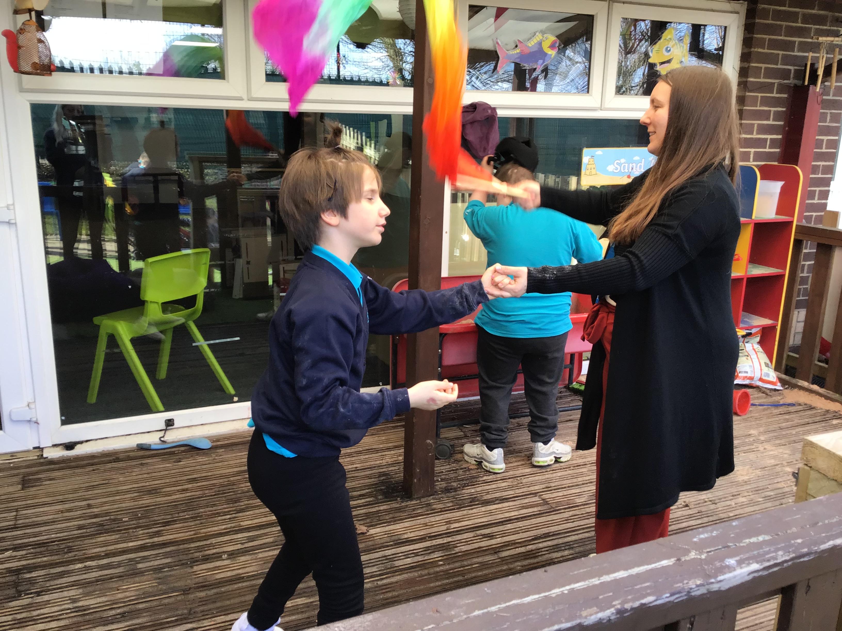 This activity allowed them to express themselves creatively while enhancing their motor skills and coordination. The vibrant and energetic nature of the rainbow dance captured their attention and made learning enjoyable, reinforcing the skills we've been developing in a playful way.