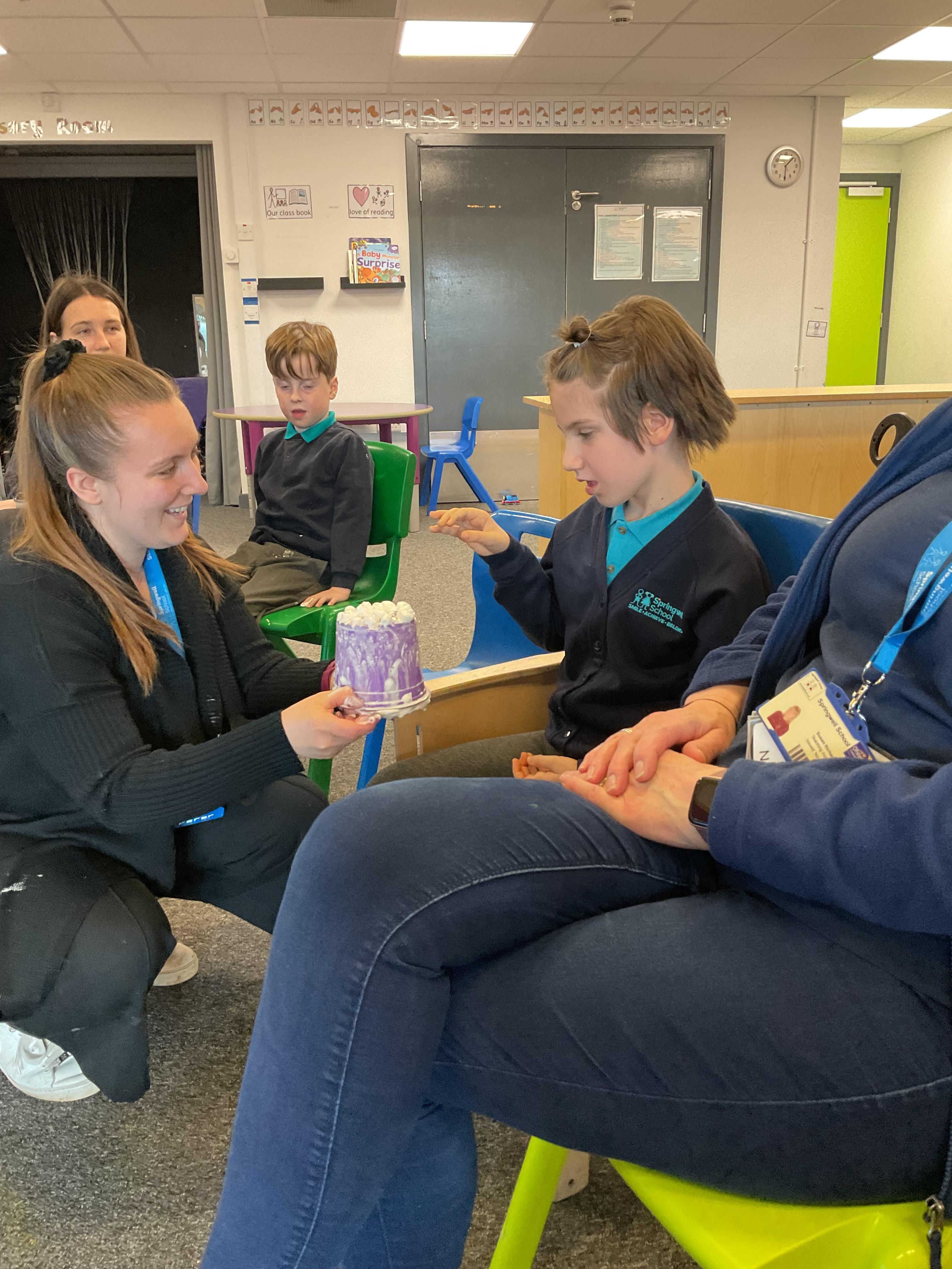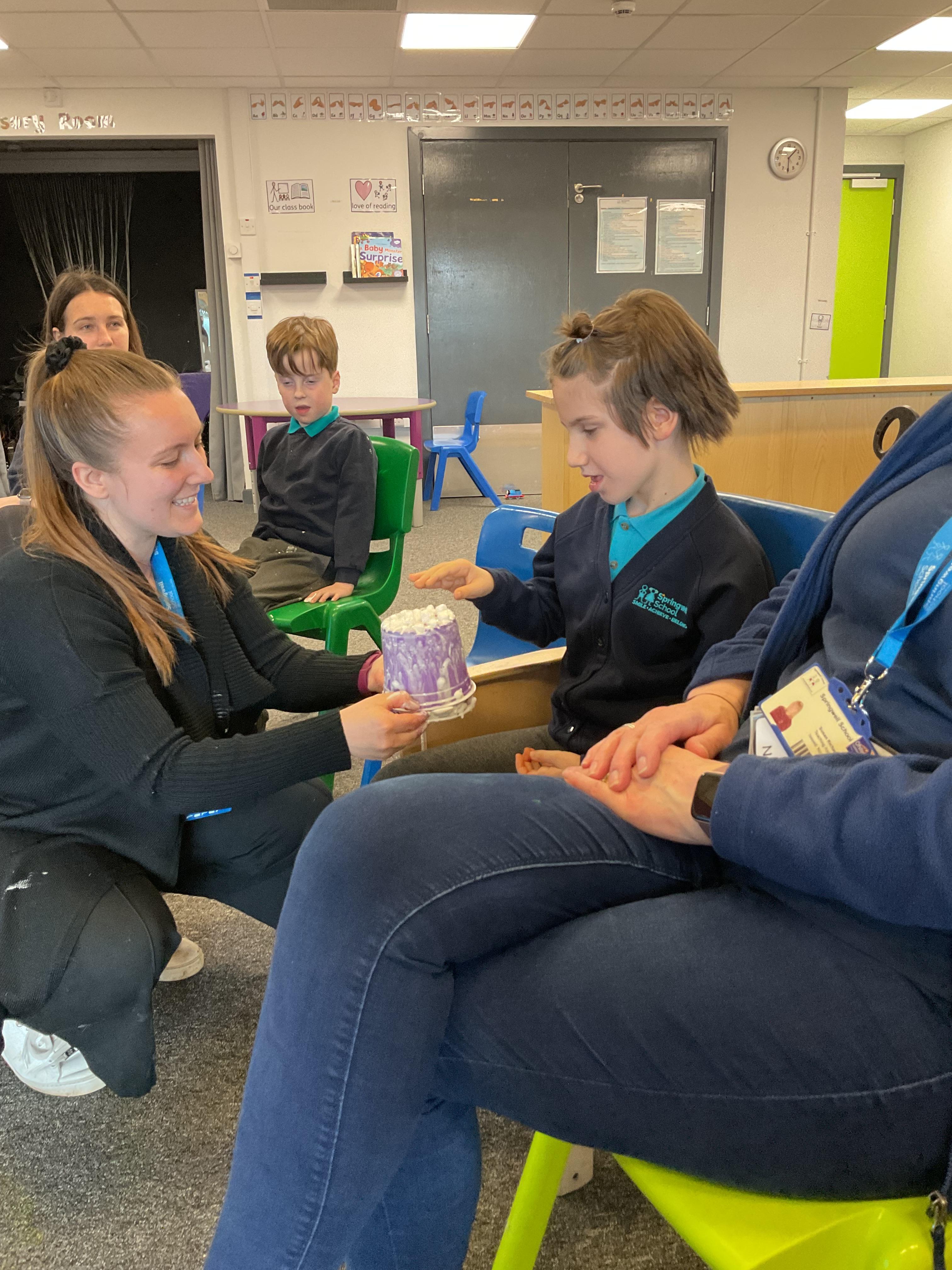 During Attention Autism, we continued to develop joint attention and engagement. Charmaine created a beautiful 'spring tree' we were all captivated by the process!