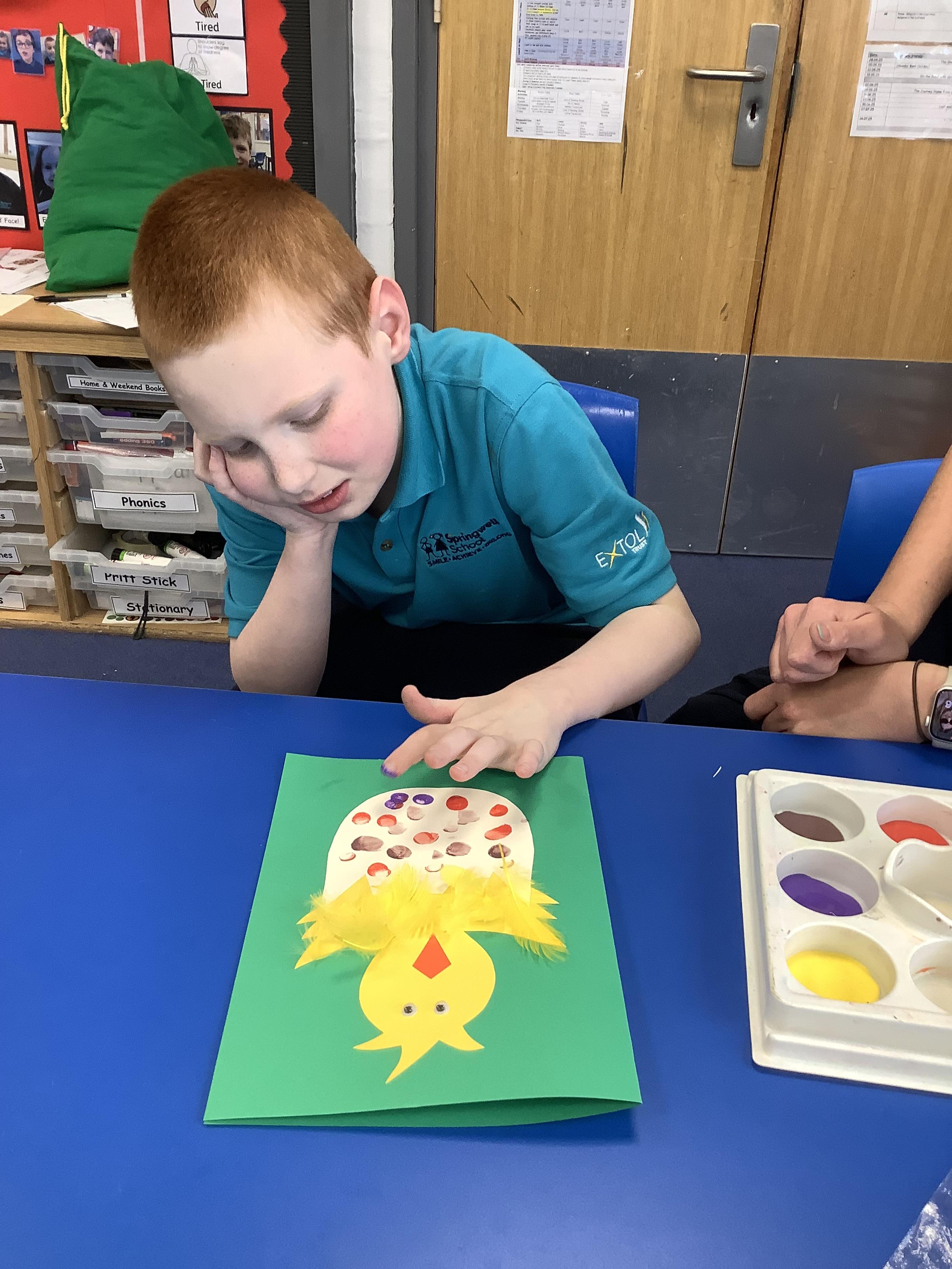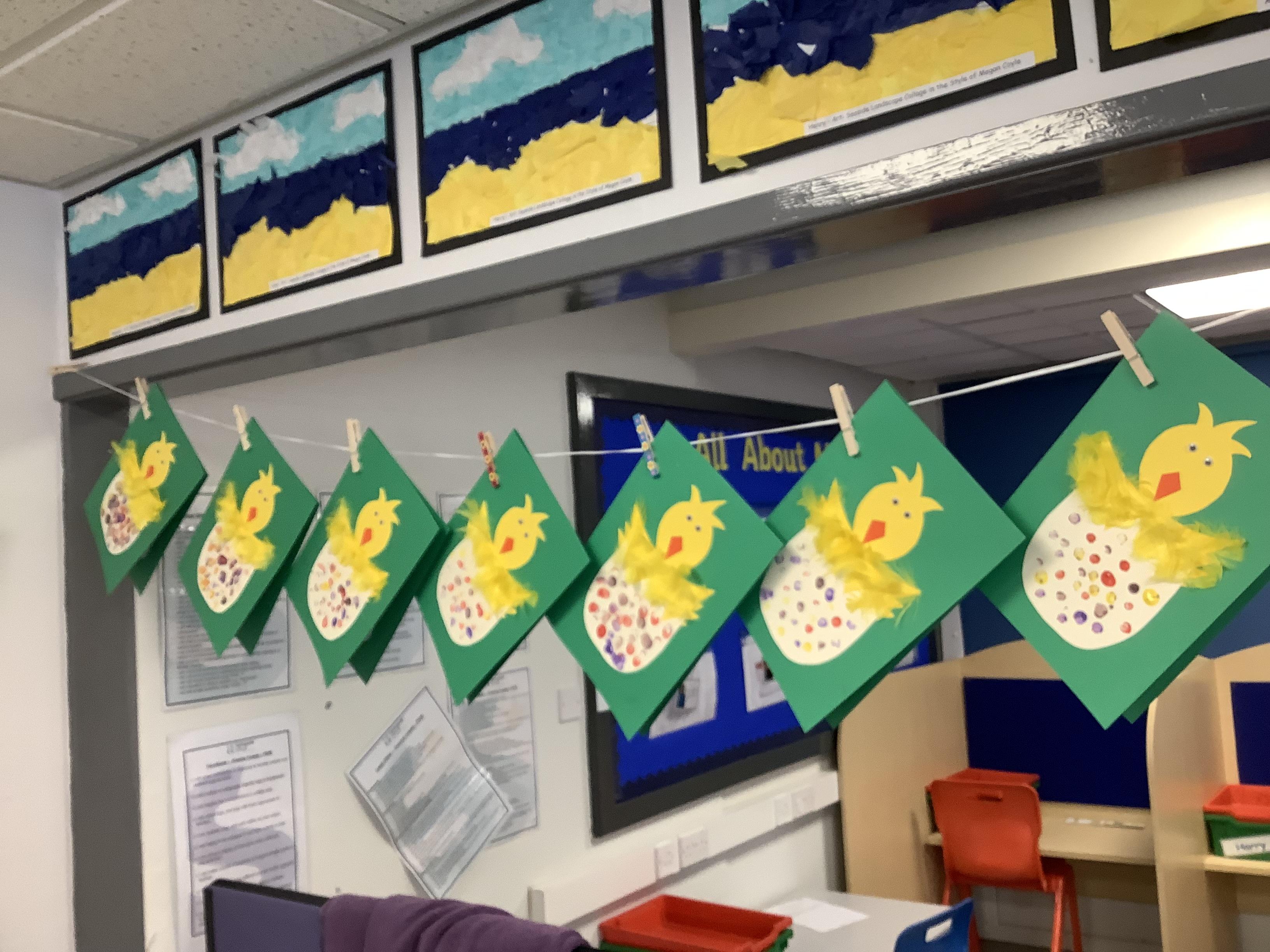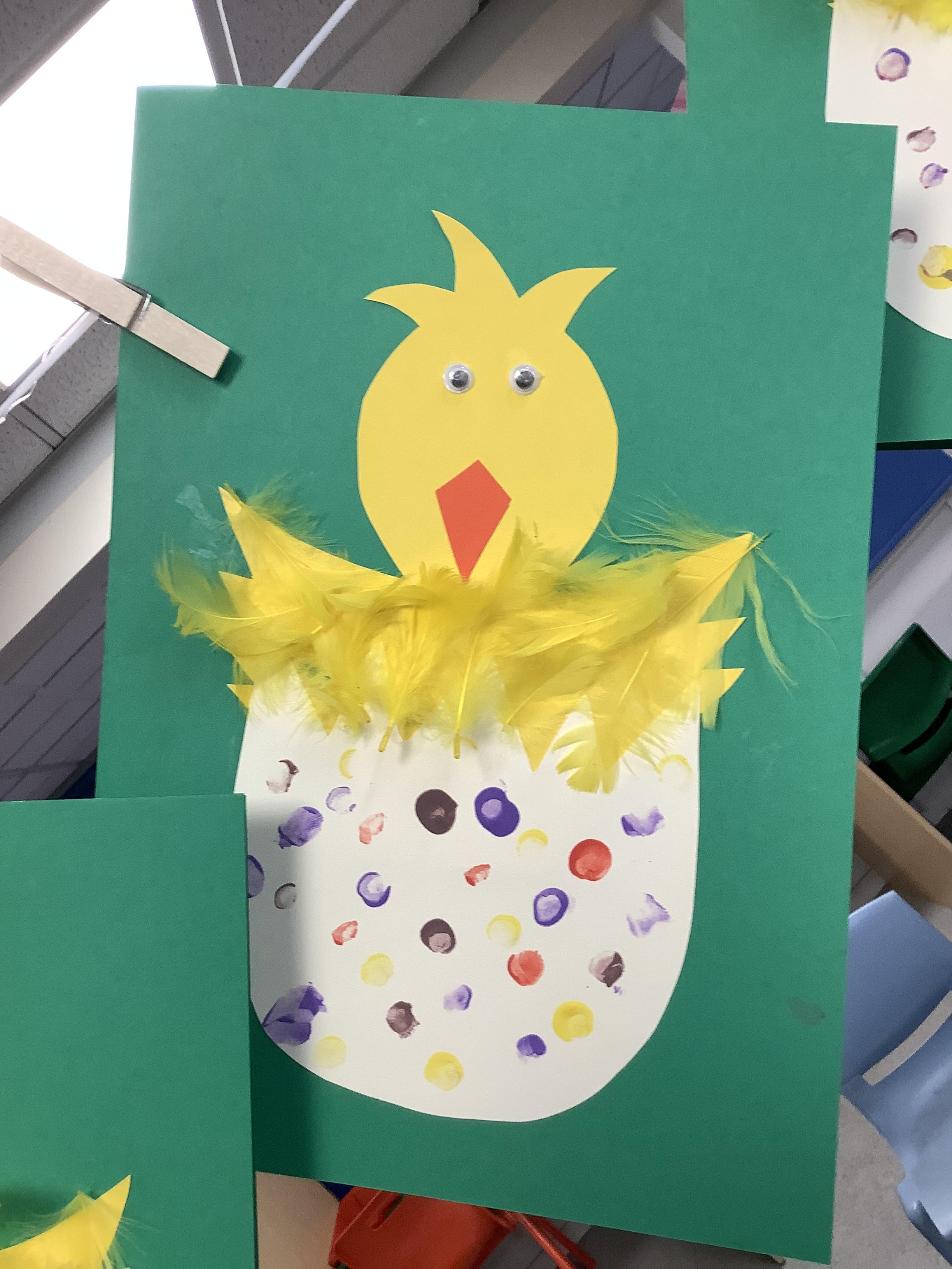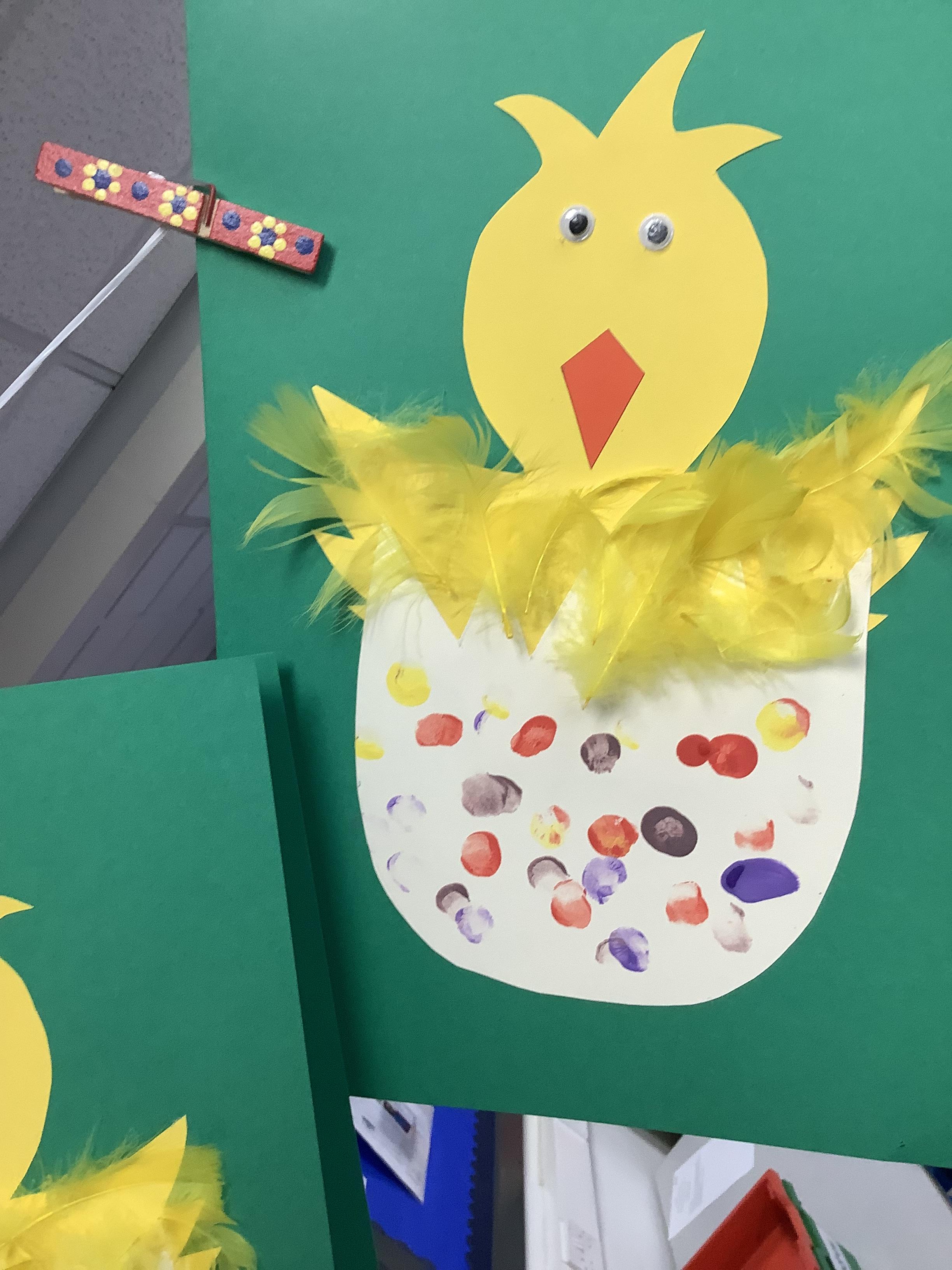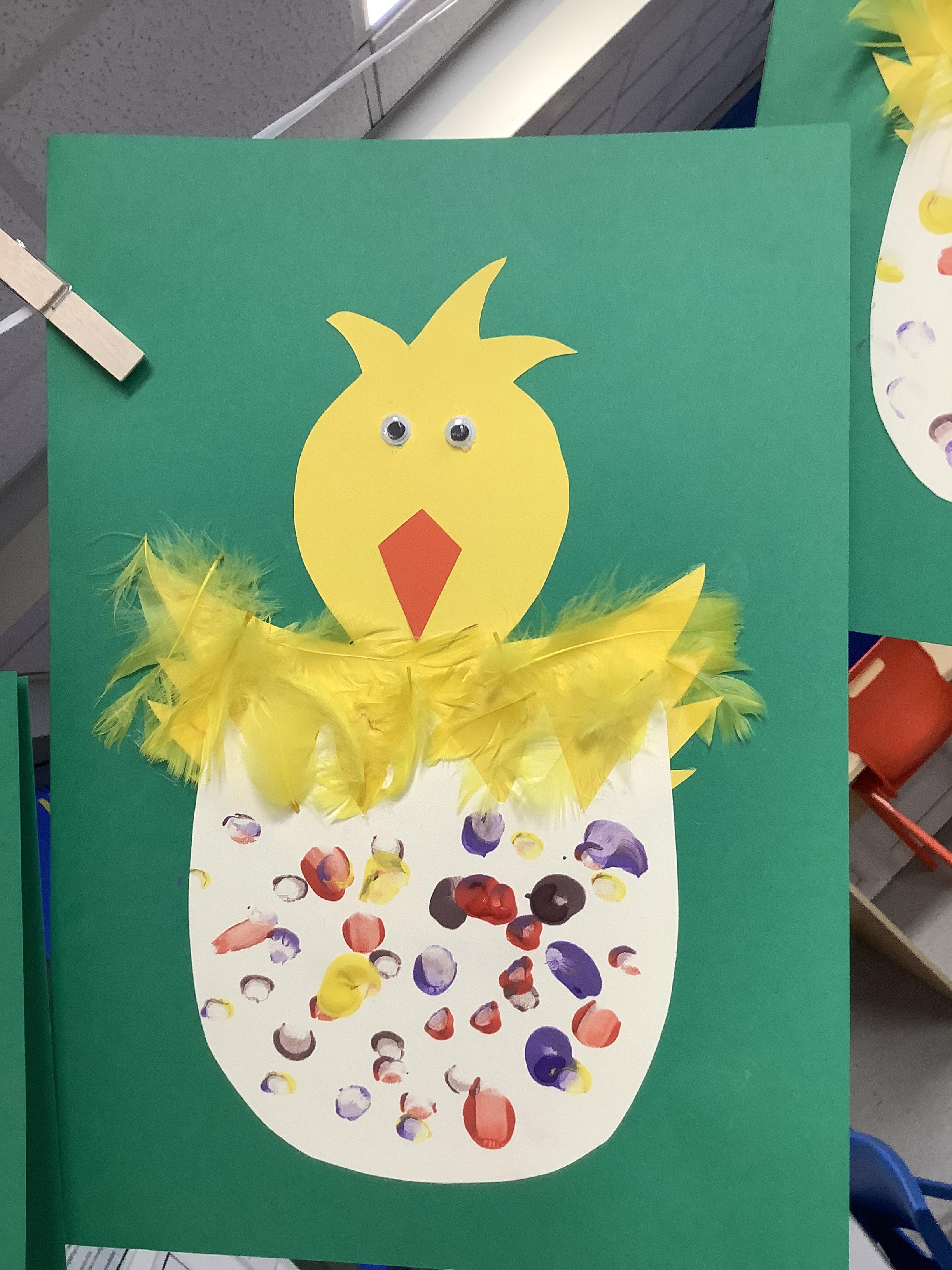 11.04.25 ART & DESIGN/RE The children have been decorating their own Easter Egg using a variety of coloured paint. EASTER PHOTO SHOOT: The children enjoyed trying on Easter glasses and bunny ear hairbands and looking at themselves in the mirror!