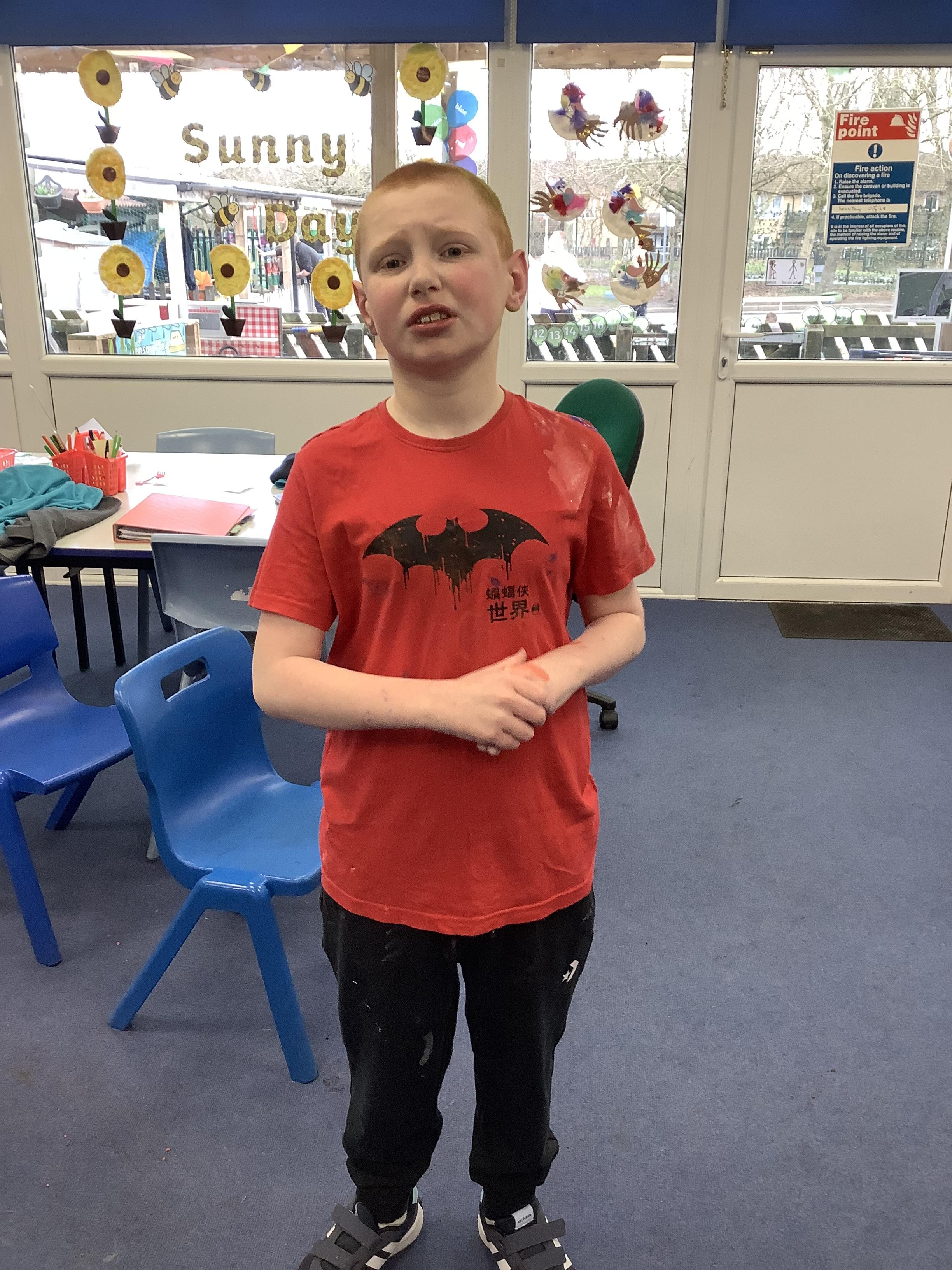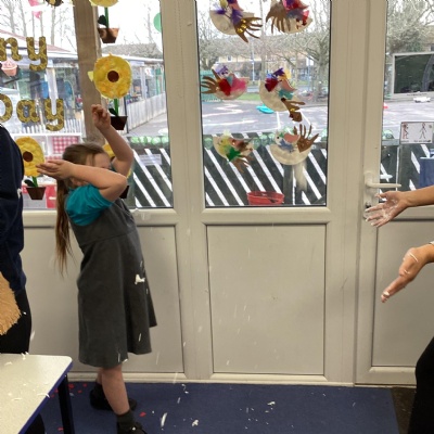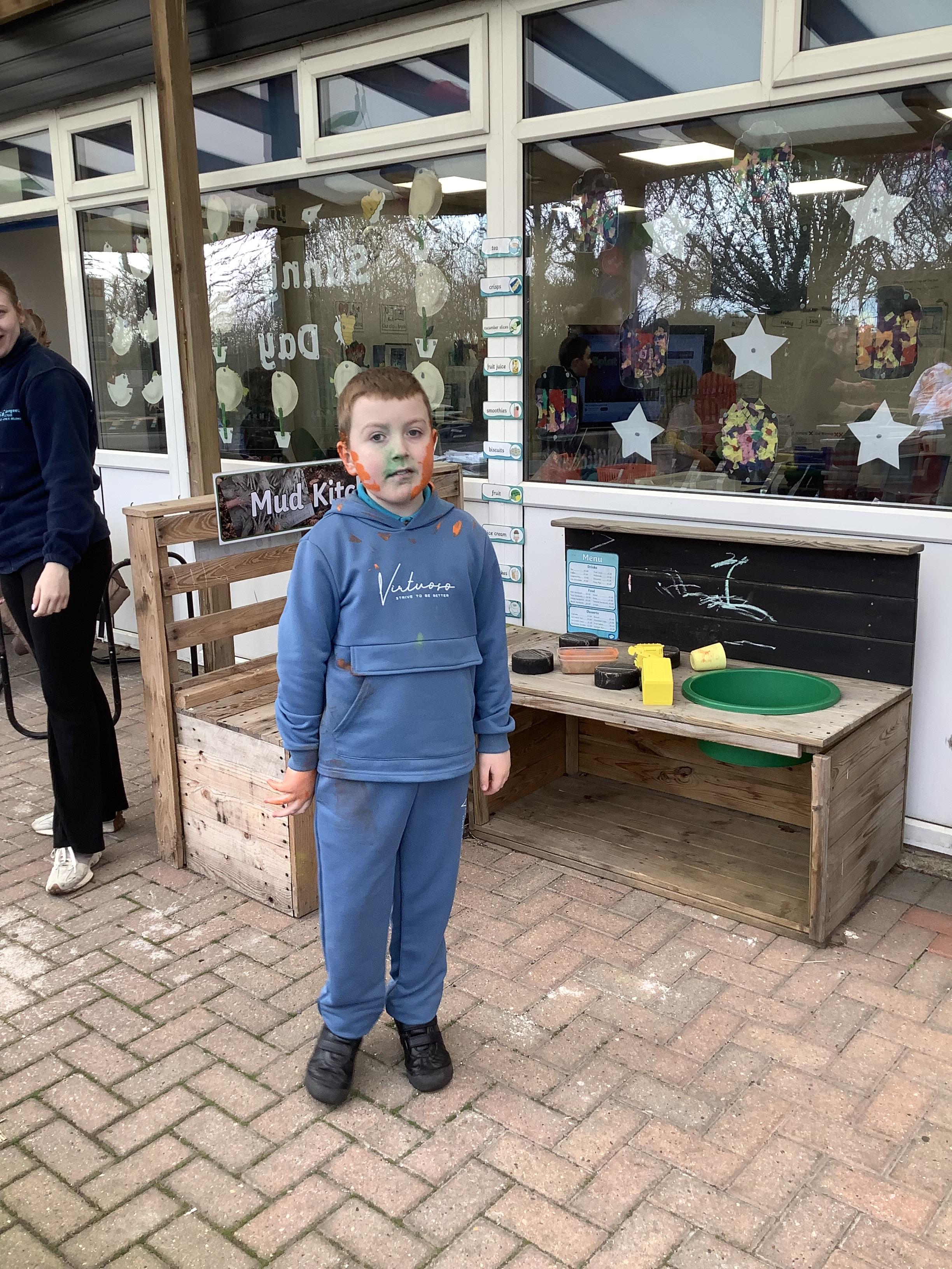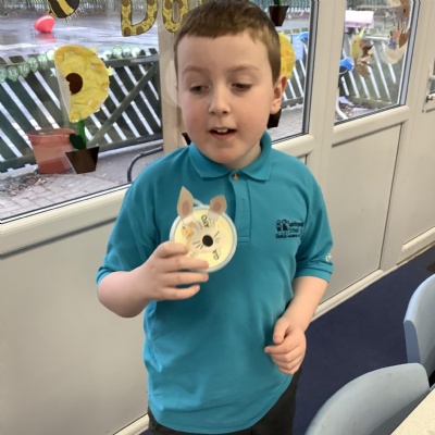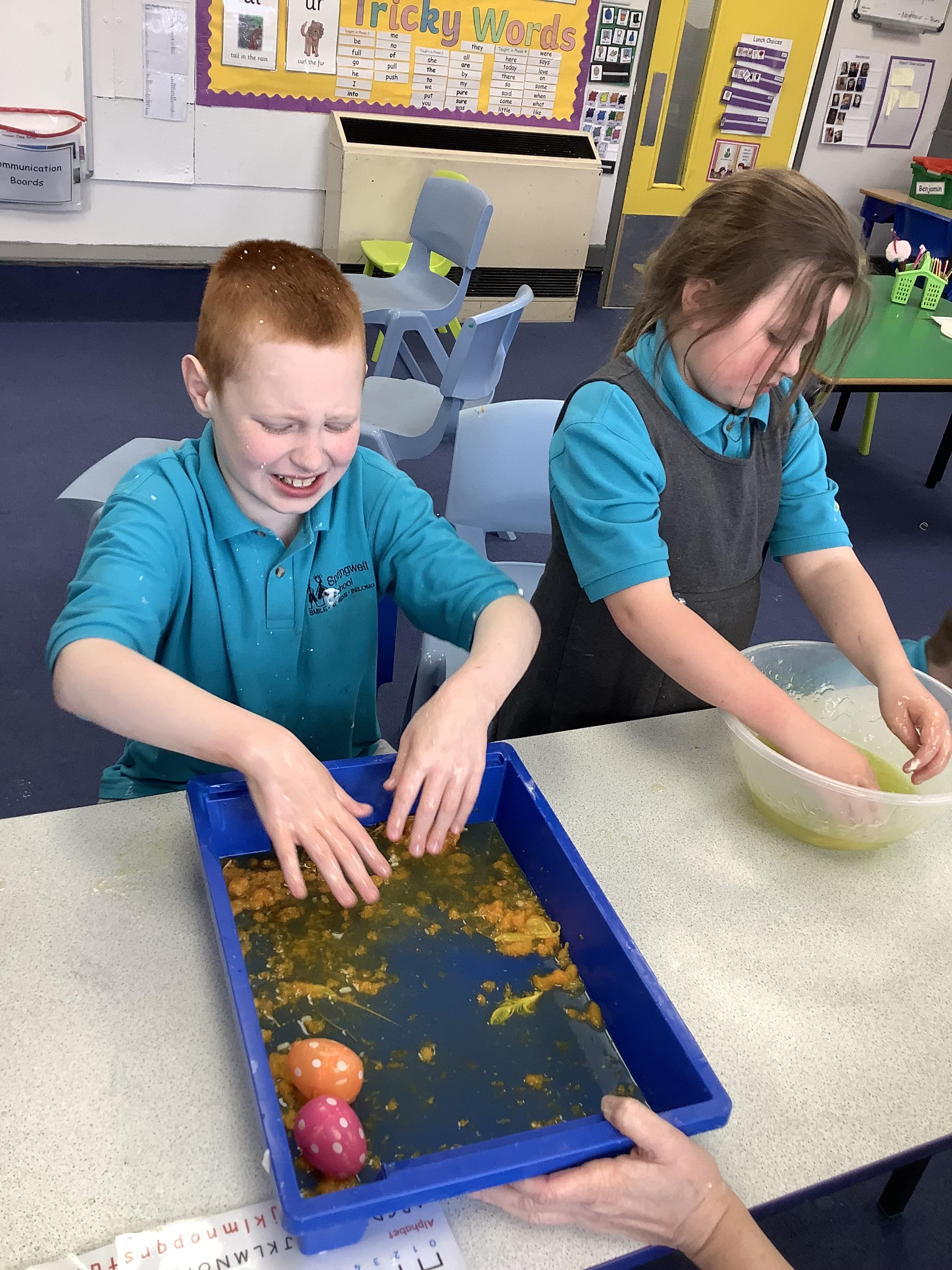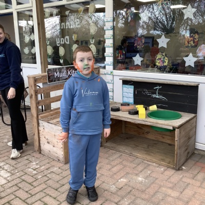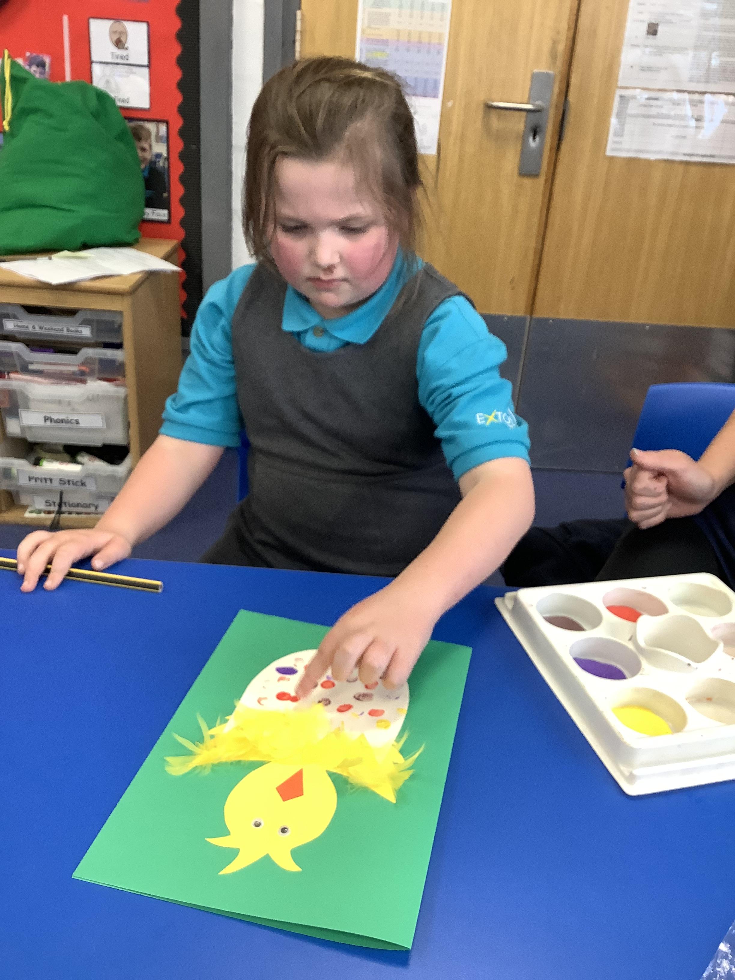 11.04.25 ART & DESIGN/RE The children have been decorating their own Easter Egg using a variety of coloured paint. EASTER PHOTO SHOOT: The children enjoyed trying on Easter glasses and bunny ear hairbands and looking at themselves in the mirror!