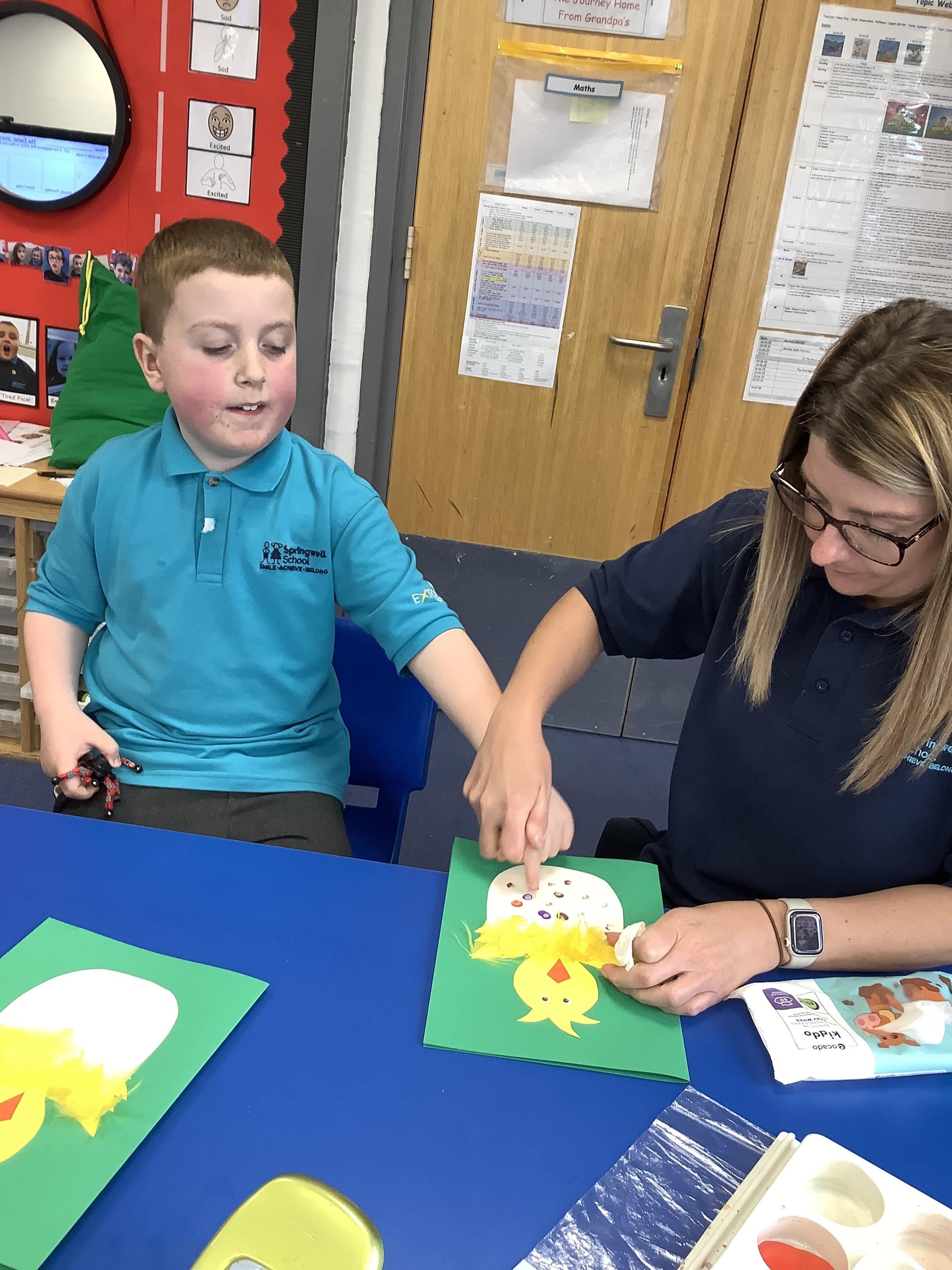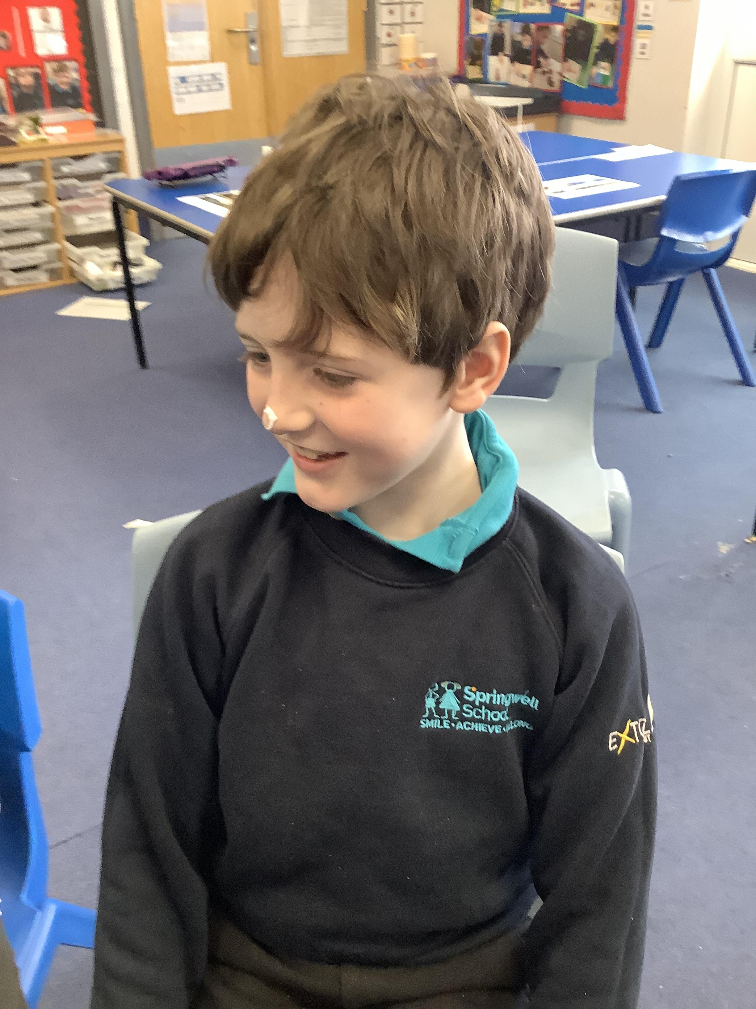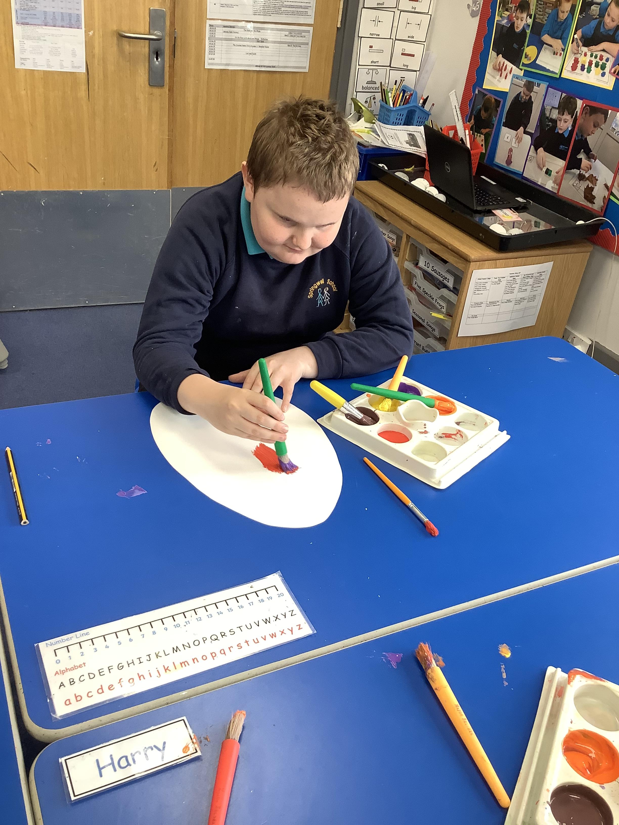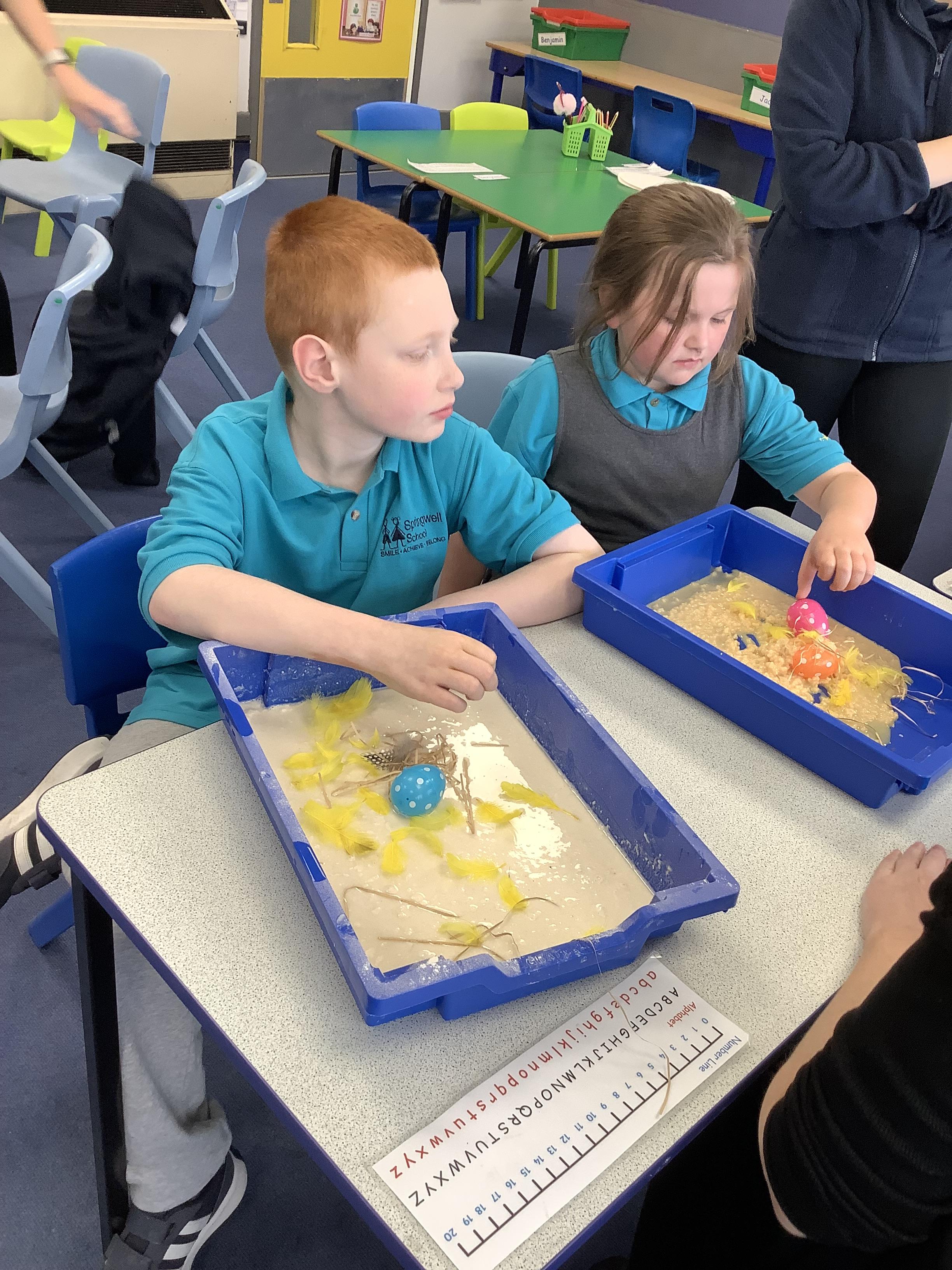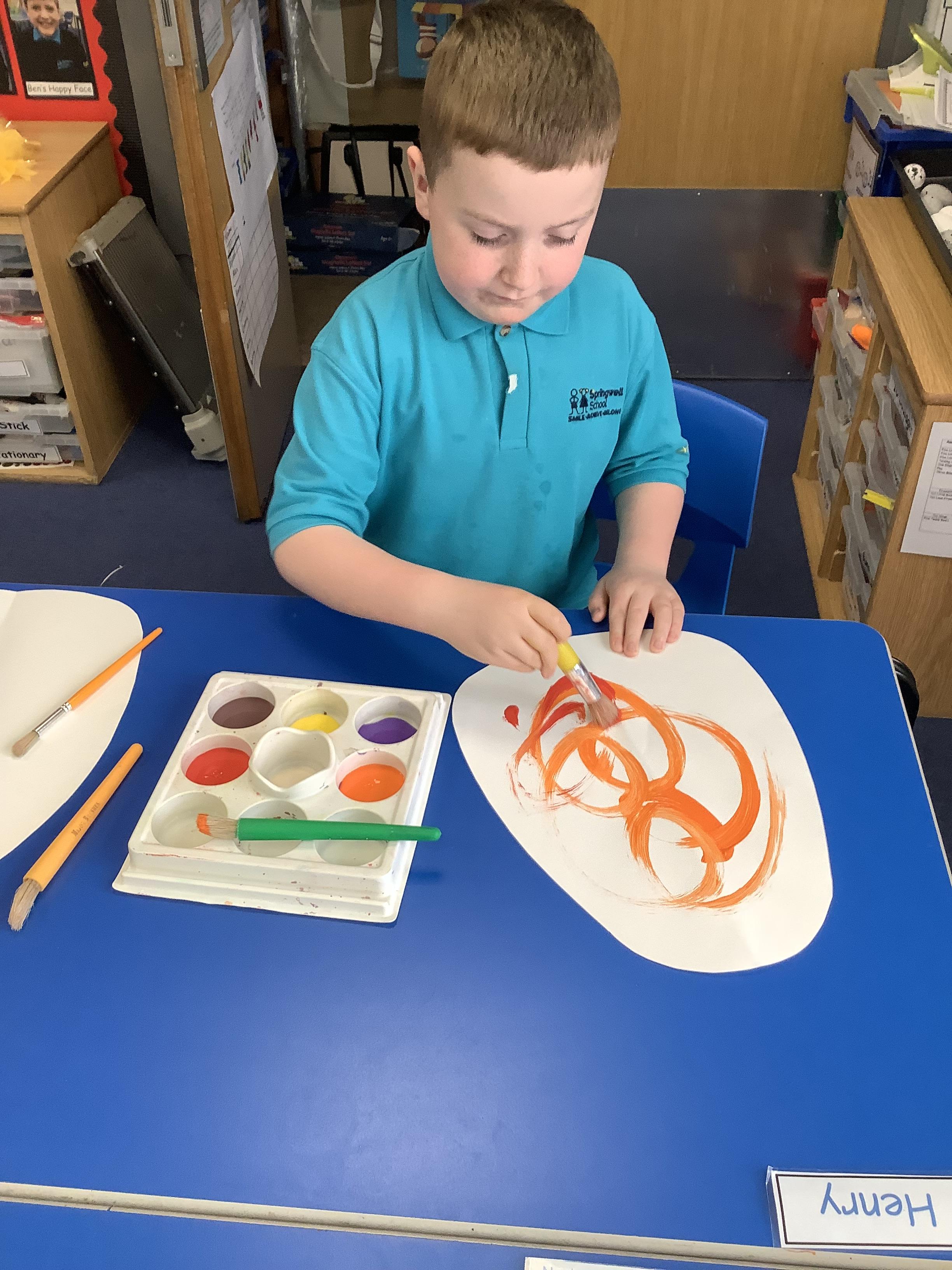 11.04.25 ART & DESIGN/RE The children have been decorating their own Easter Egg using a variety of coloured paint. EASTER PHOTO SHOOT: The children enjoyed trying on Easter glasses and bunny ear hairbands and looking at themselves in the mirror!