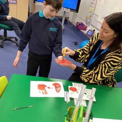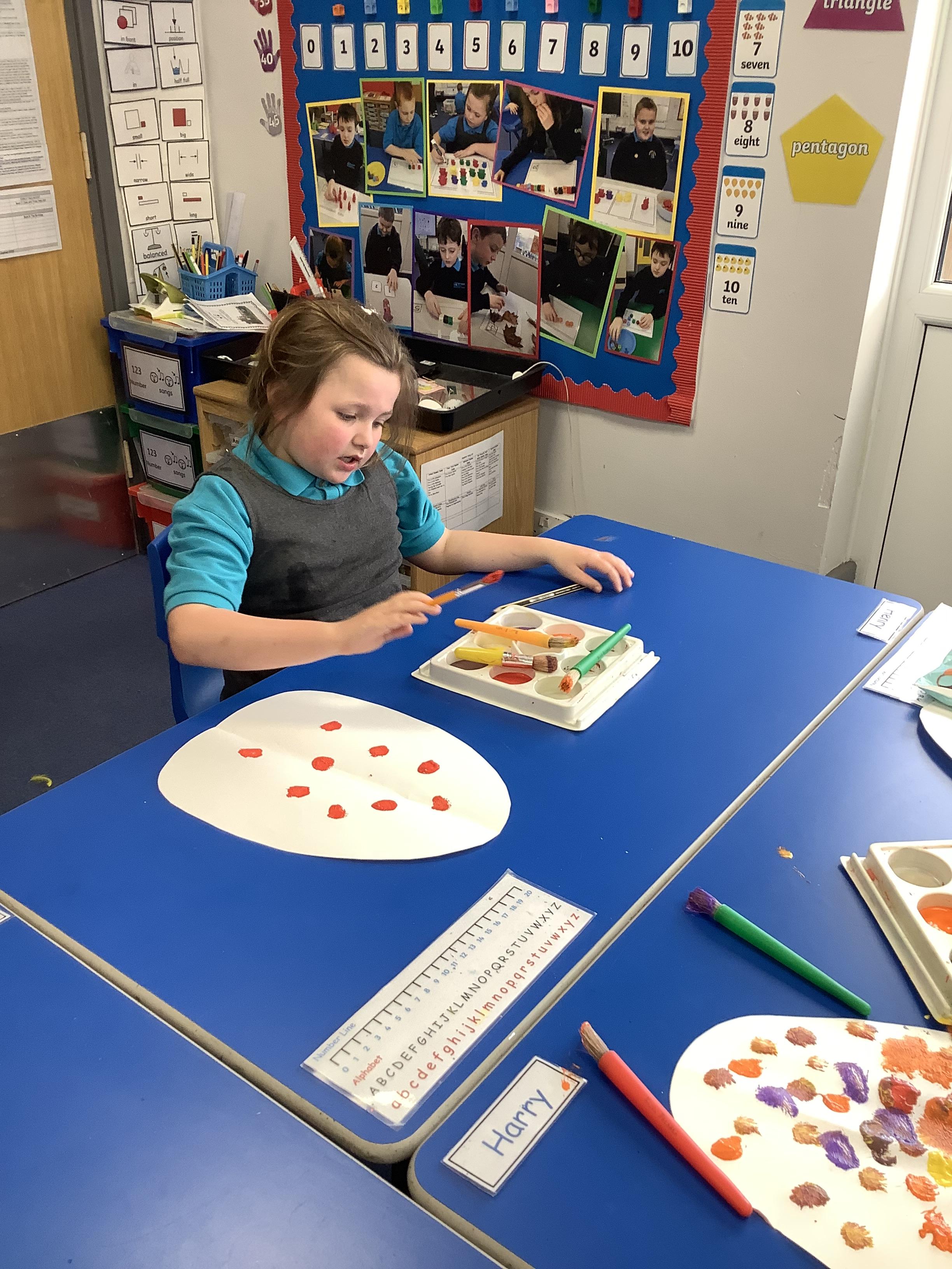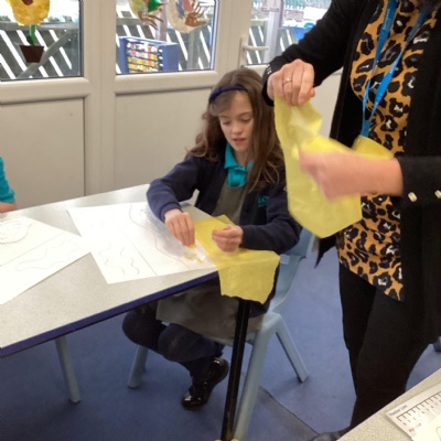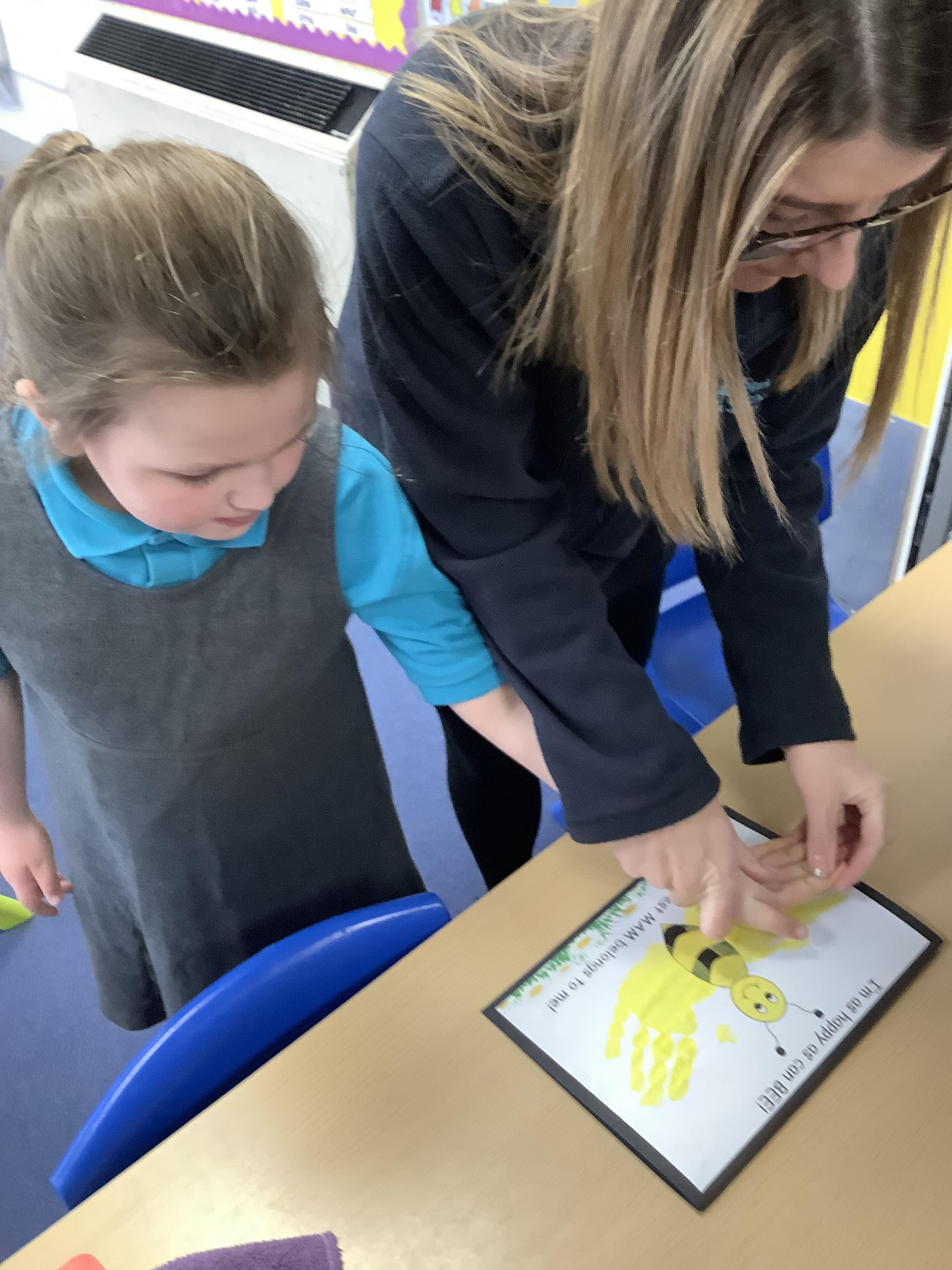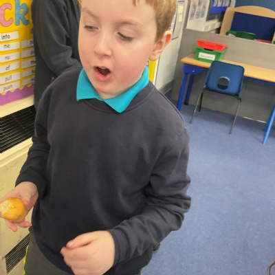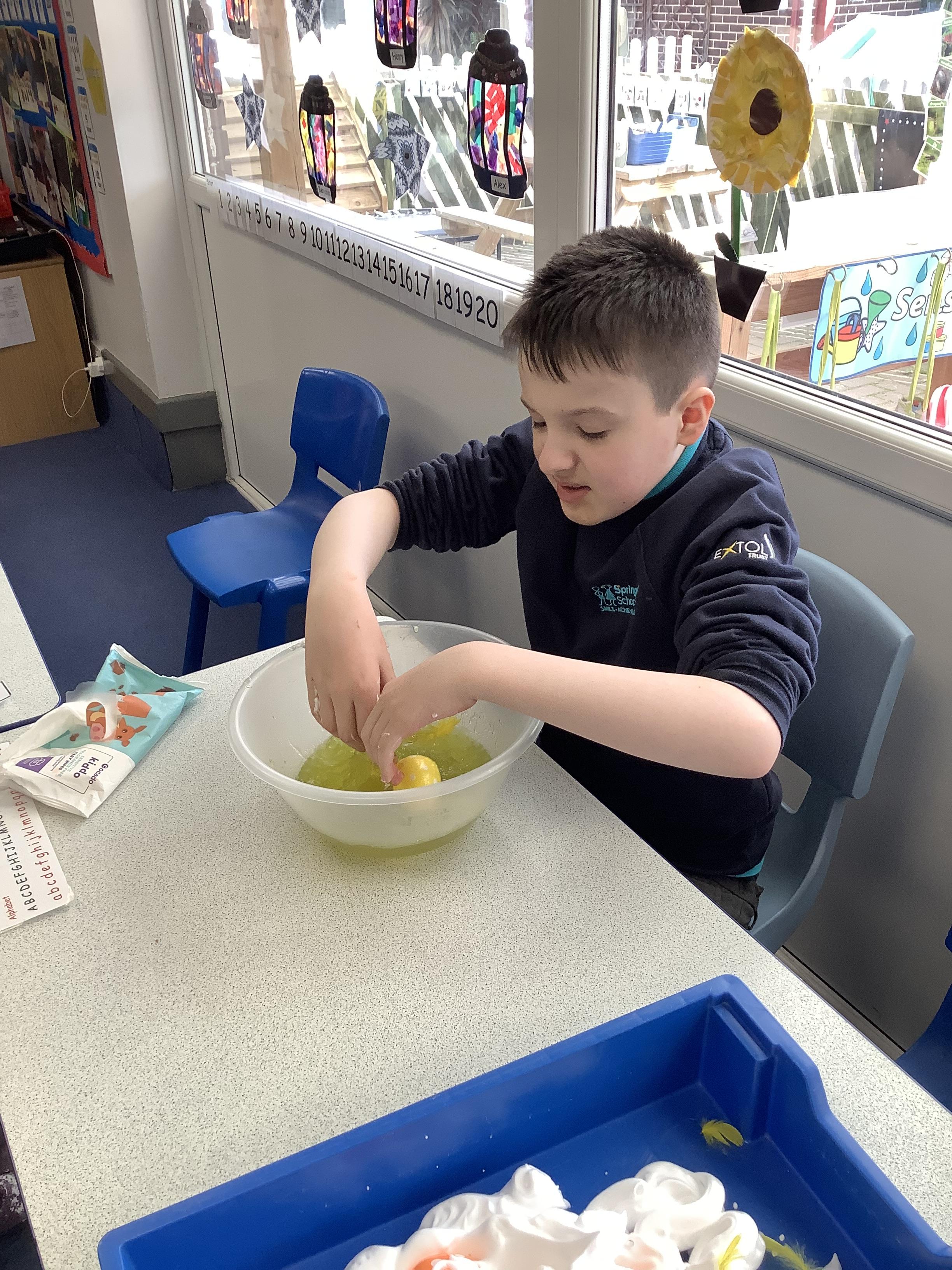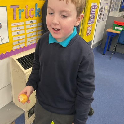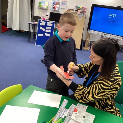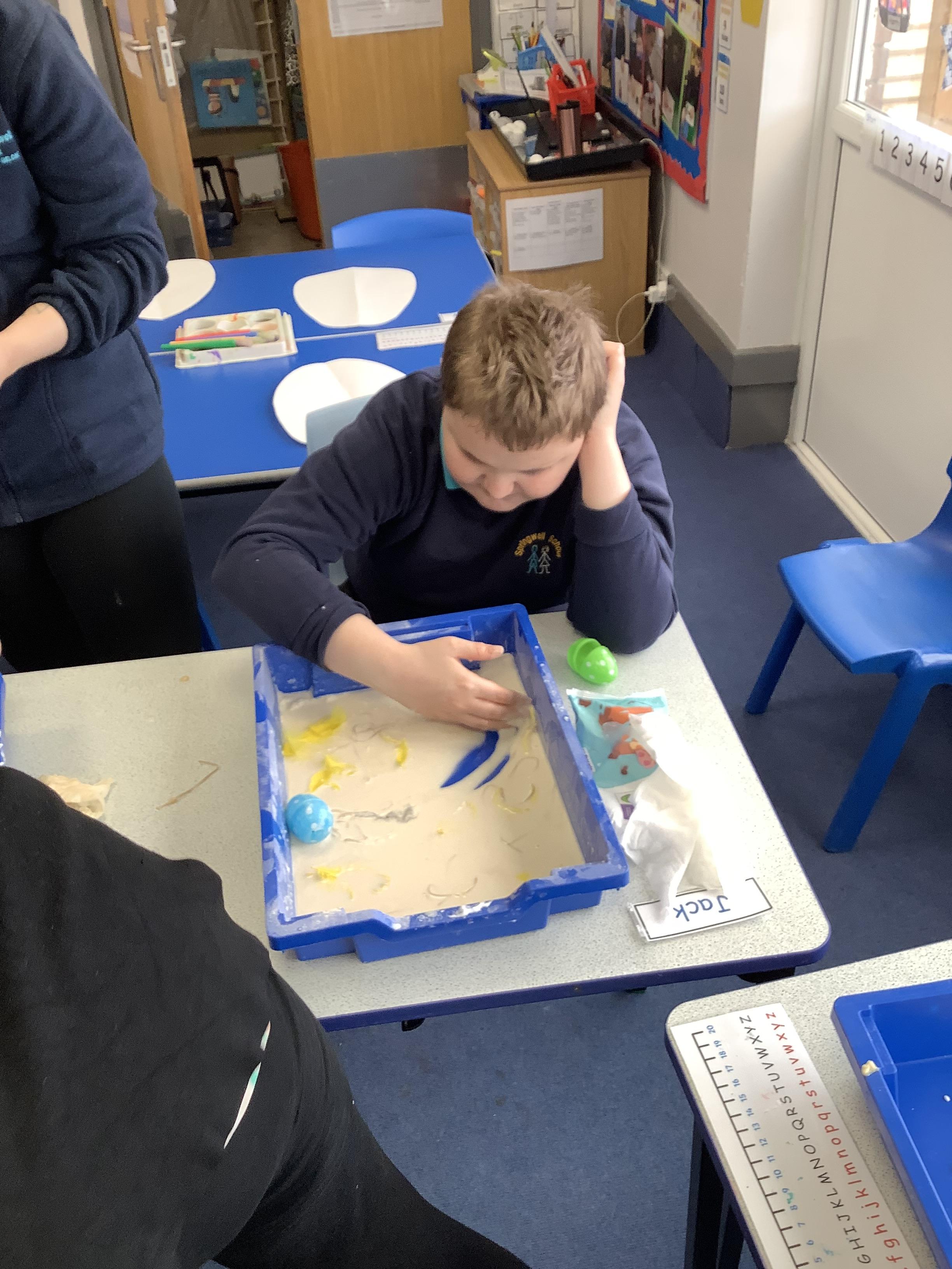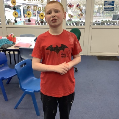 11.04.25 ART & DESIGN/RE The children have been decorating their own Easter Egg using a variety of coloured paint. EASTER PHOTO SHOOT: The children enjoyed trying on Easter glasses and bunny ear hairbands and looking at themselves in the mirror!