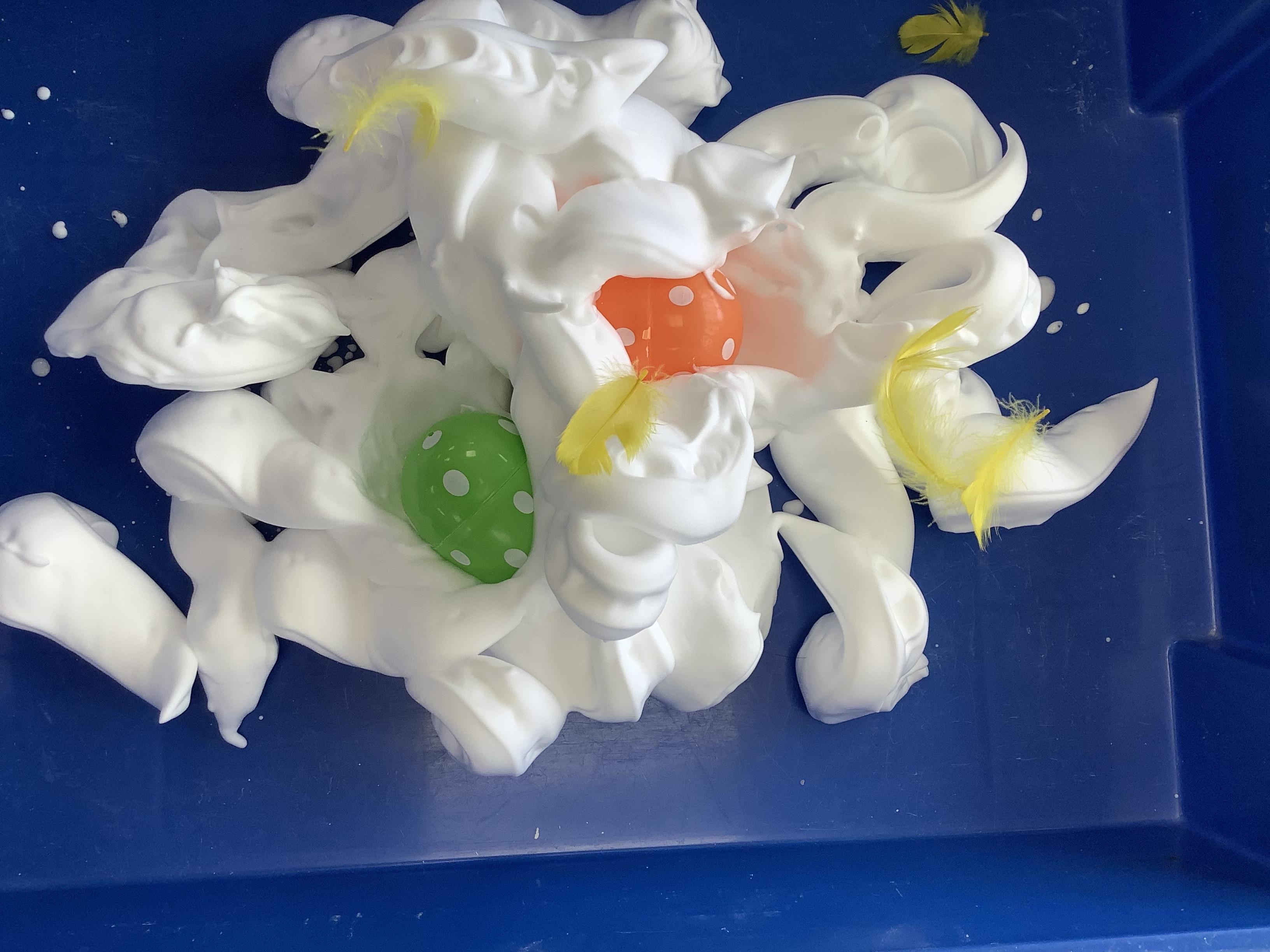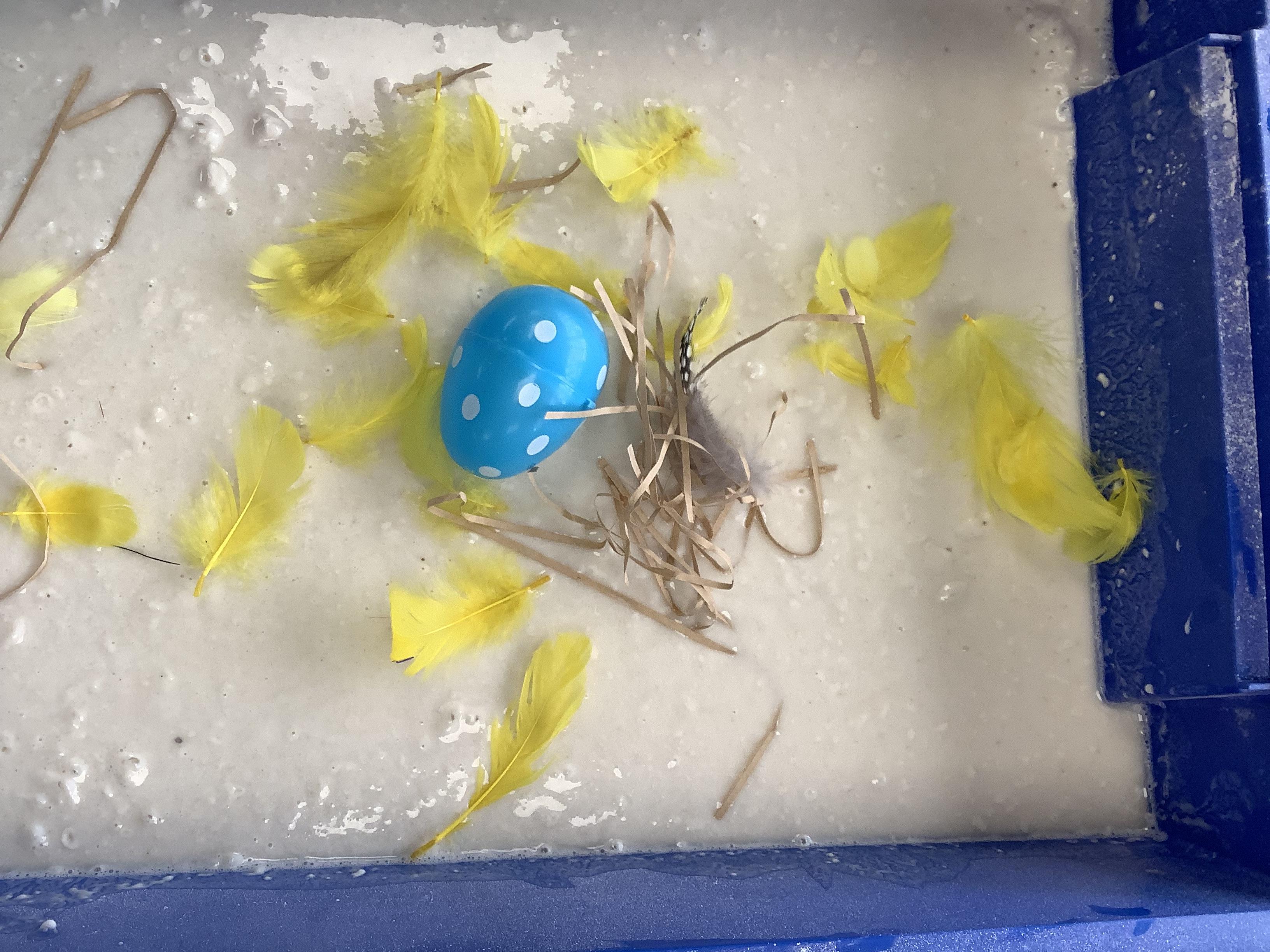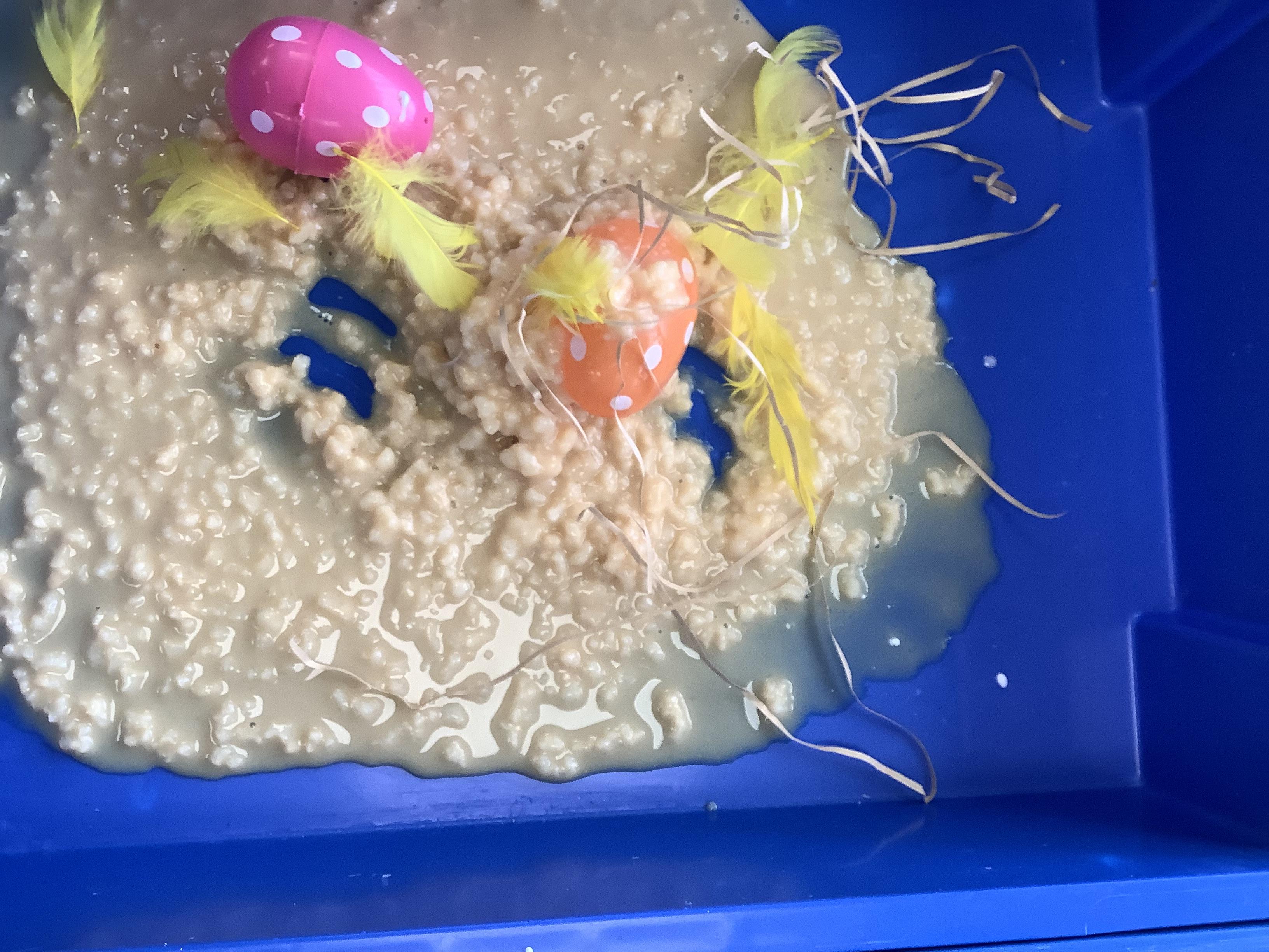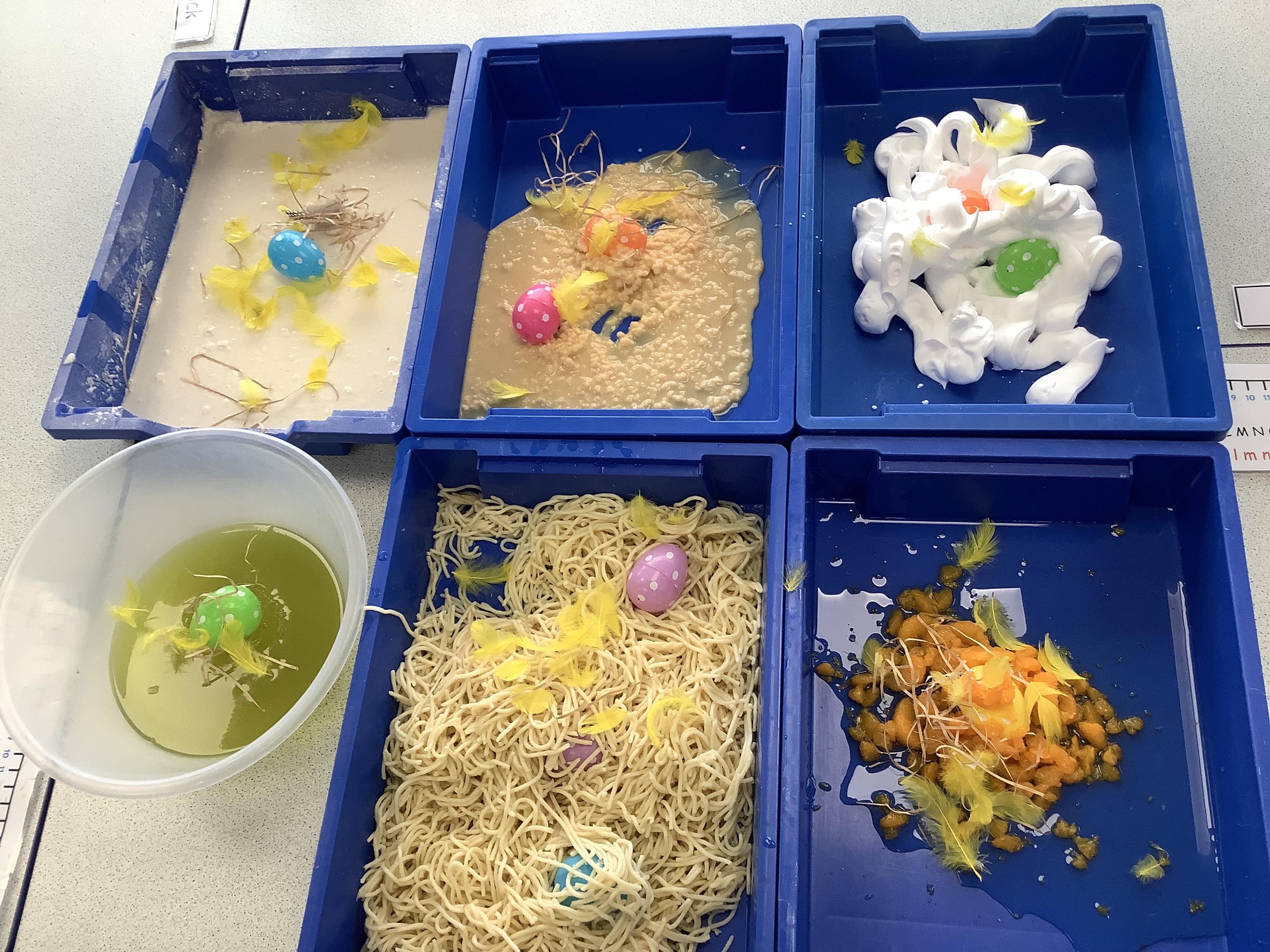 11.04.25 SENSORY PLAY: Can the children find the Easter Eggs in each sensory tray. How many eggs did they find?