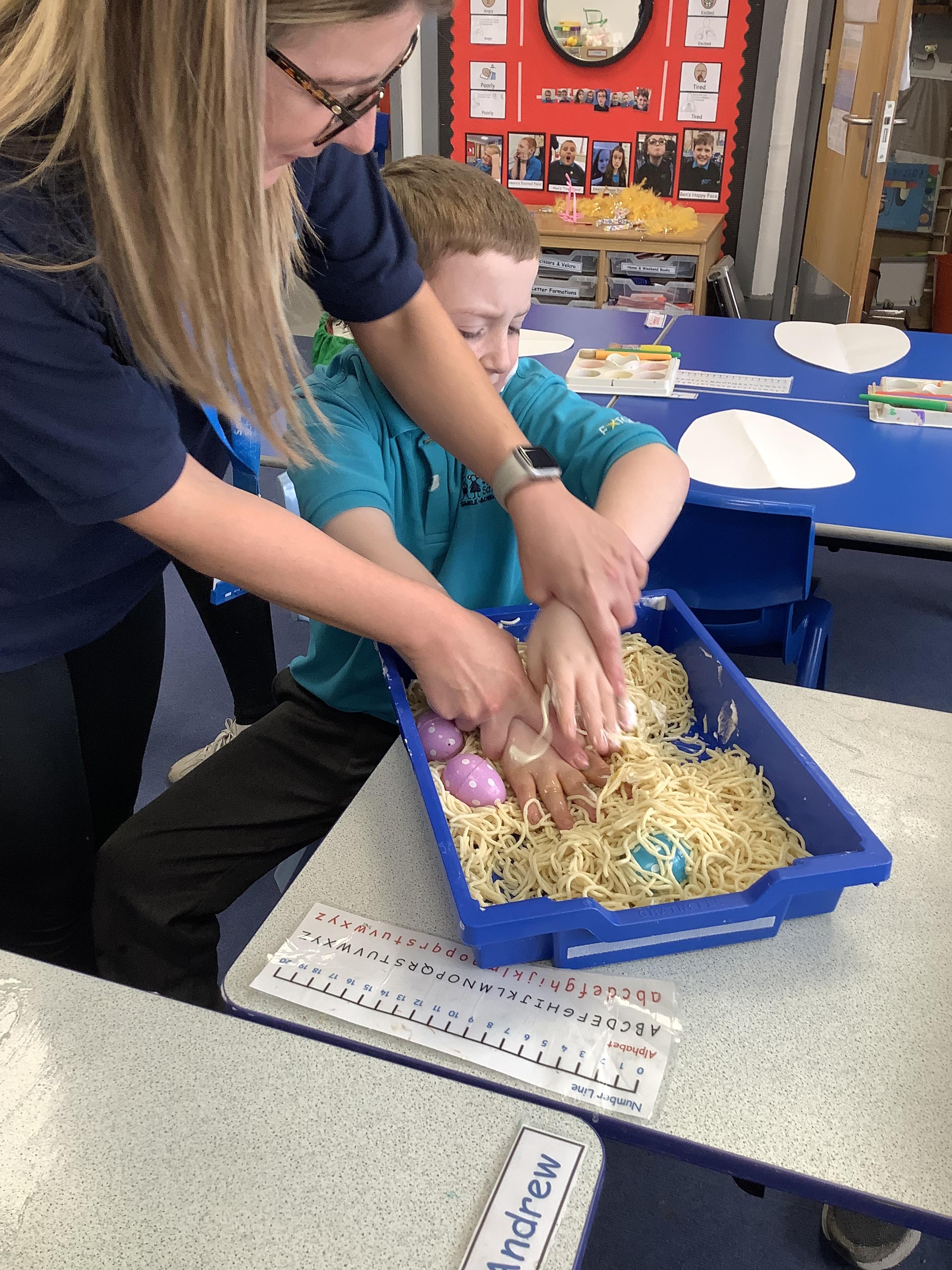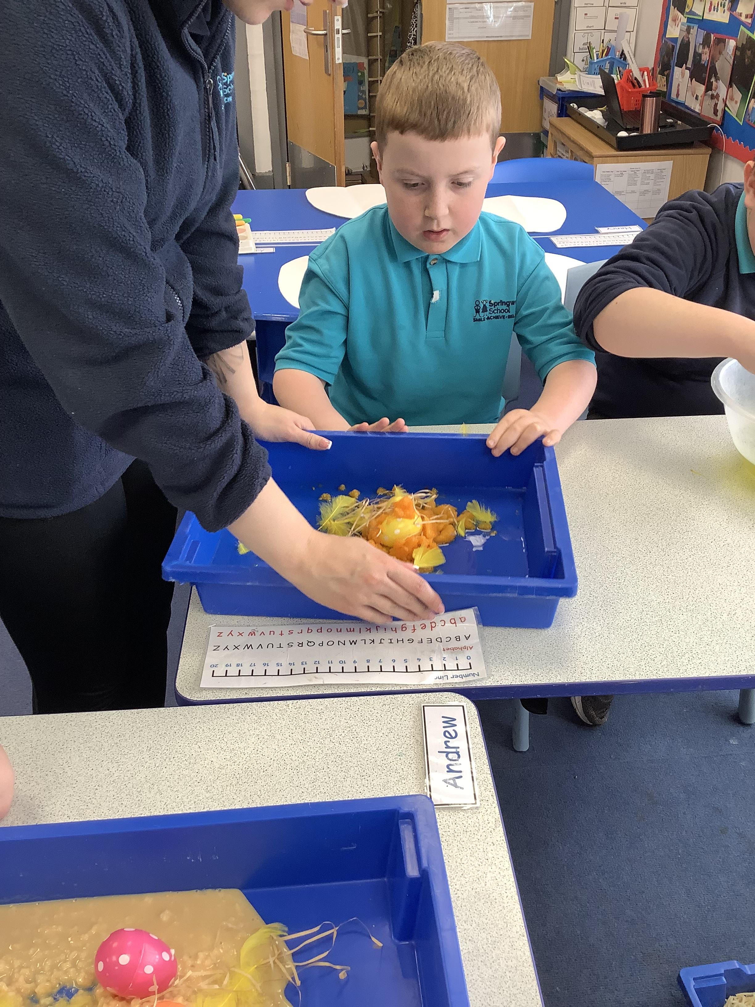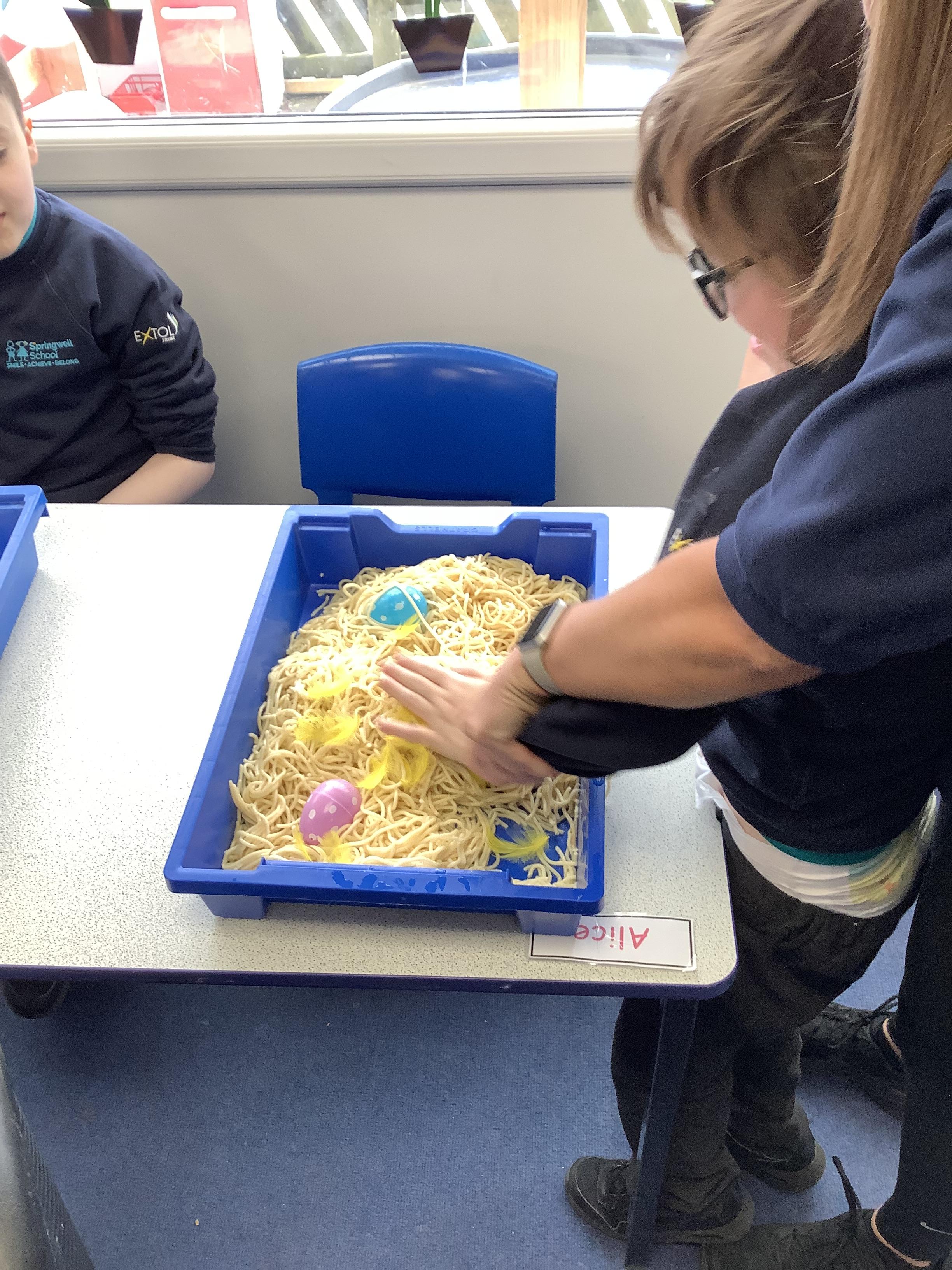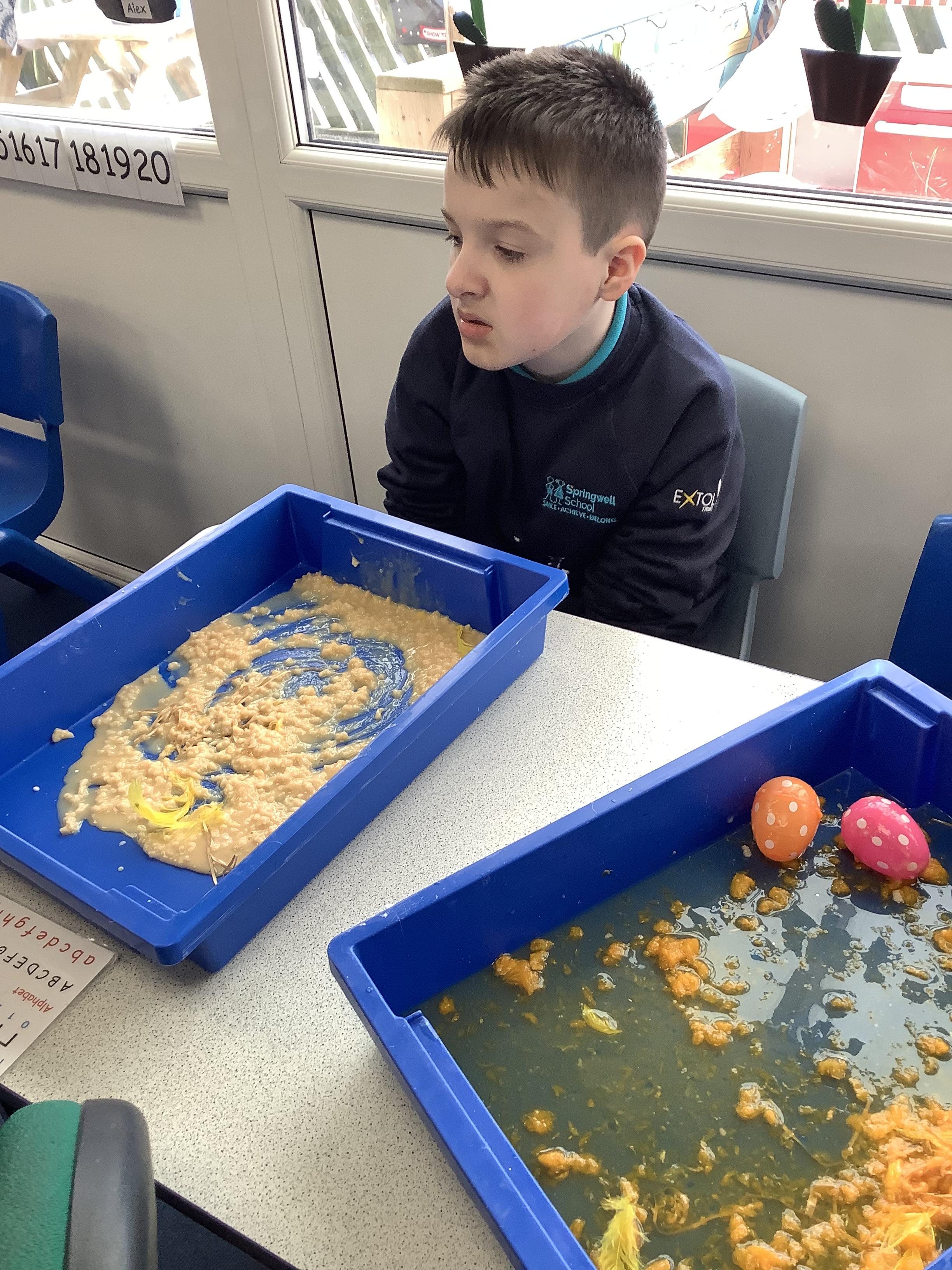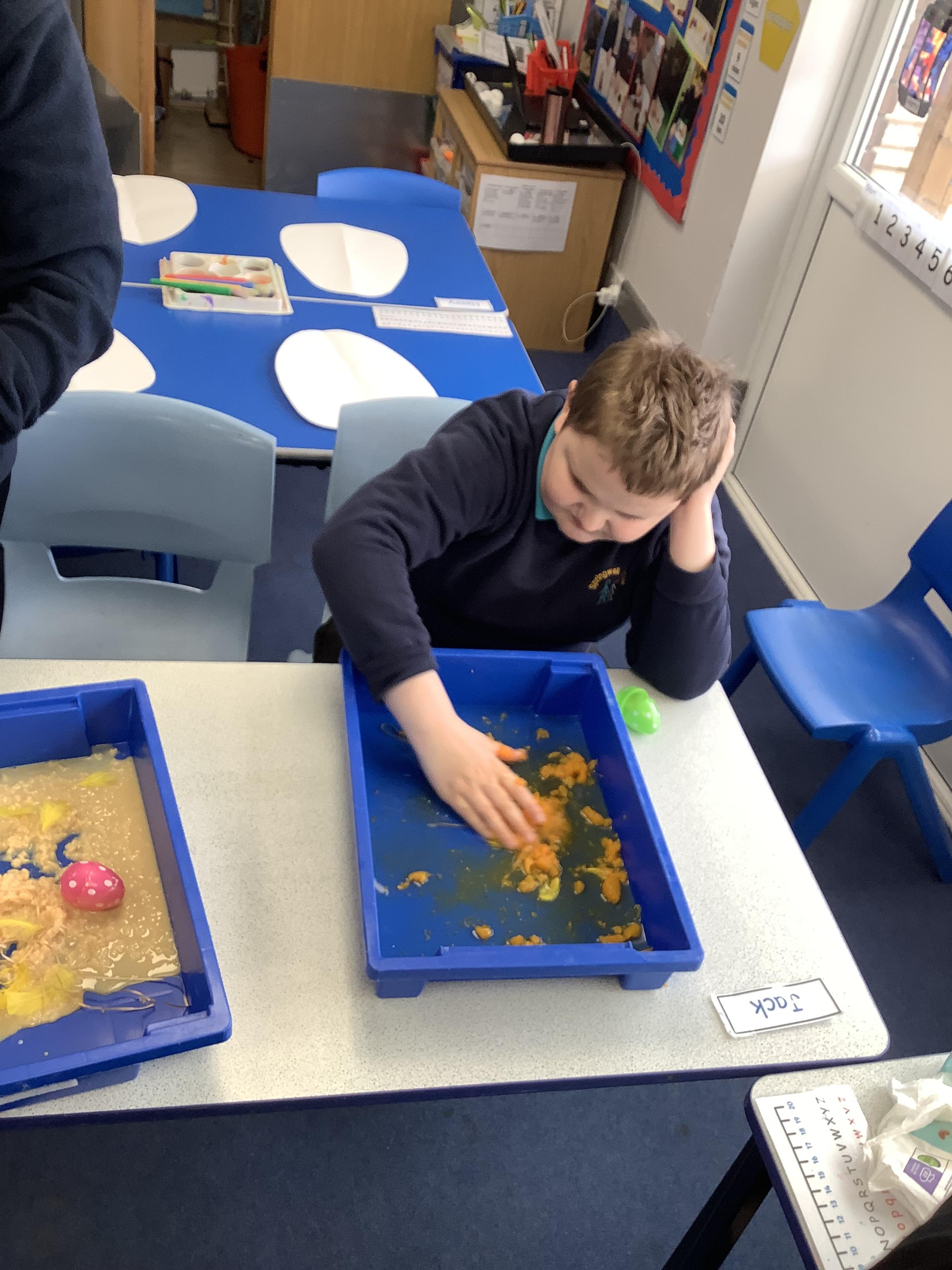 11.04.25 SENSORY PLAY: Can the children find the Easter Eggs in each sensory tray. How many eggs did they find?