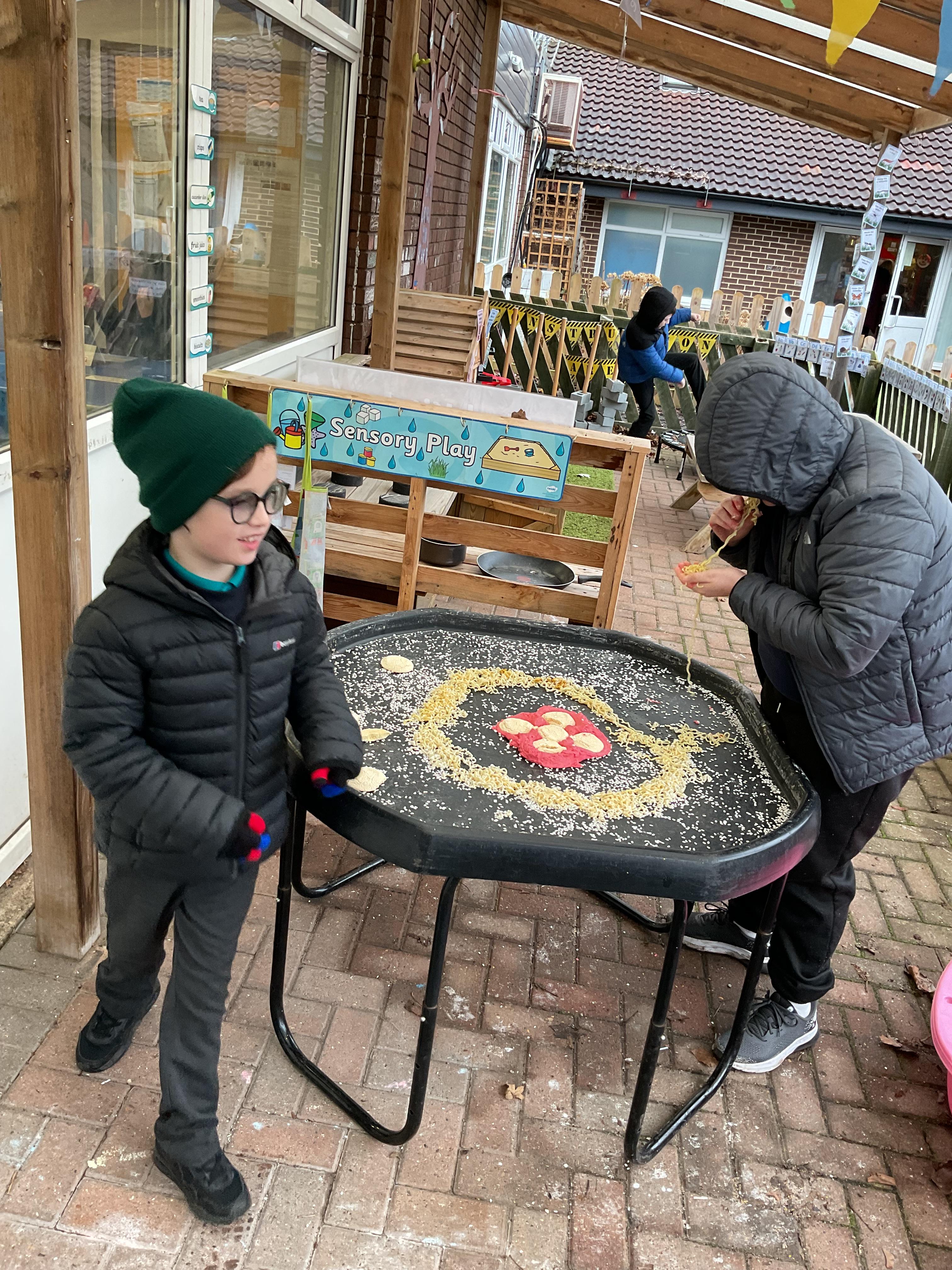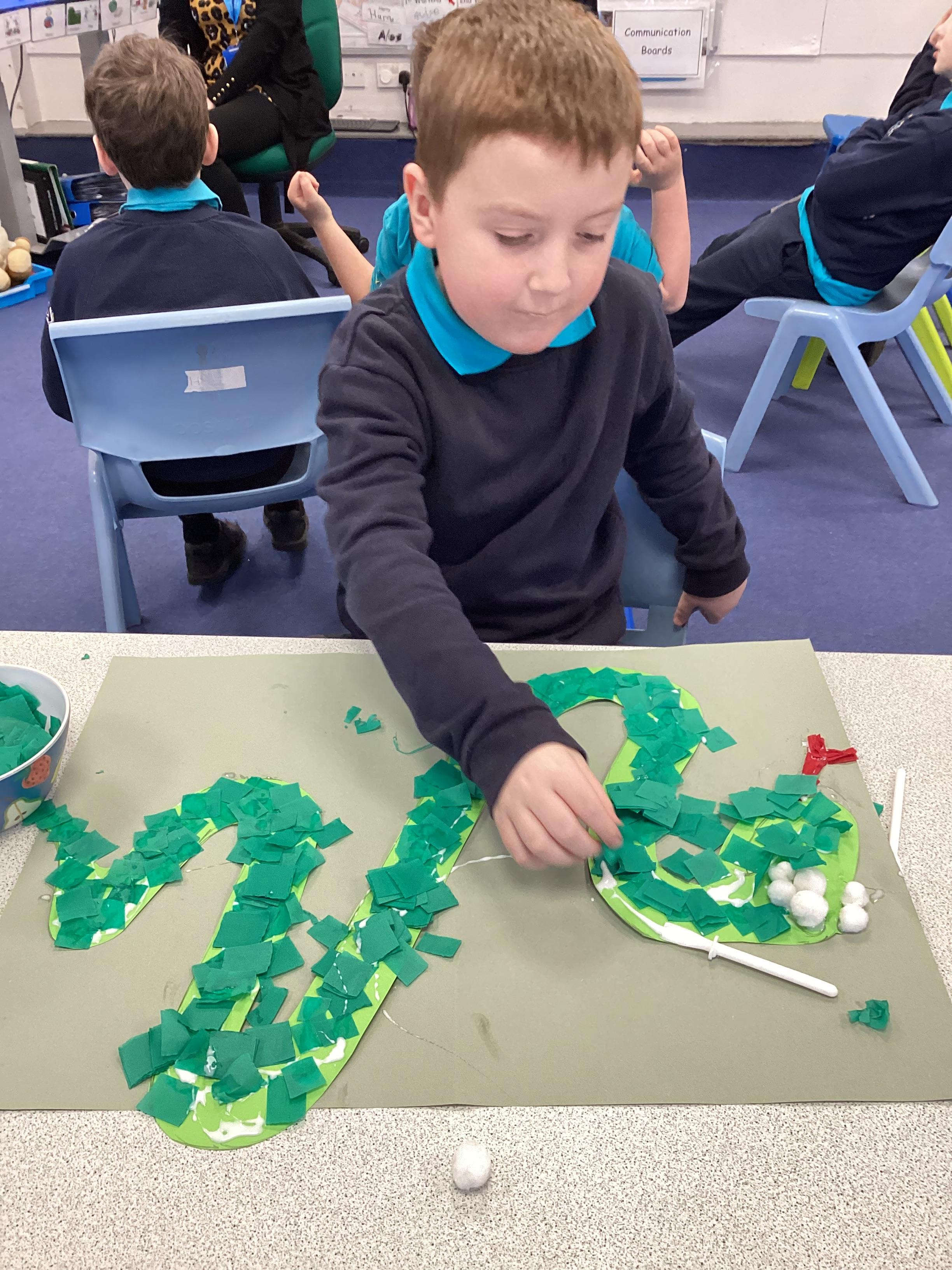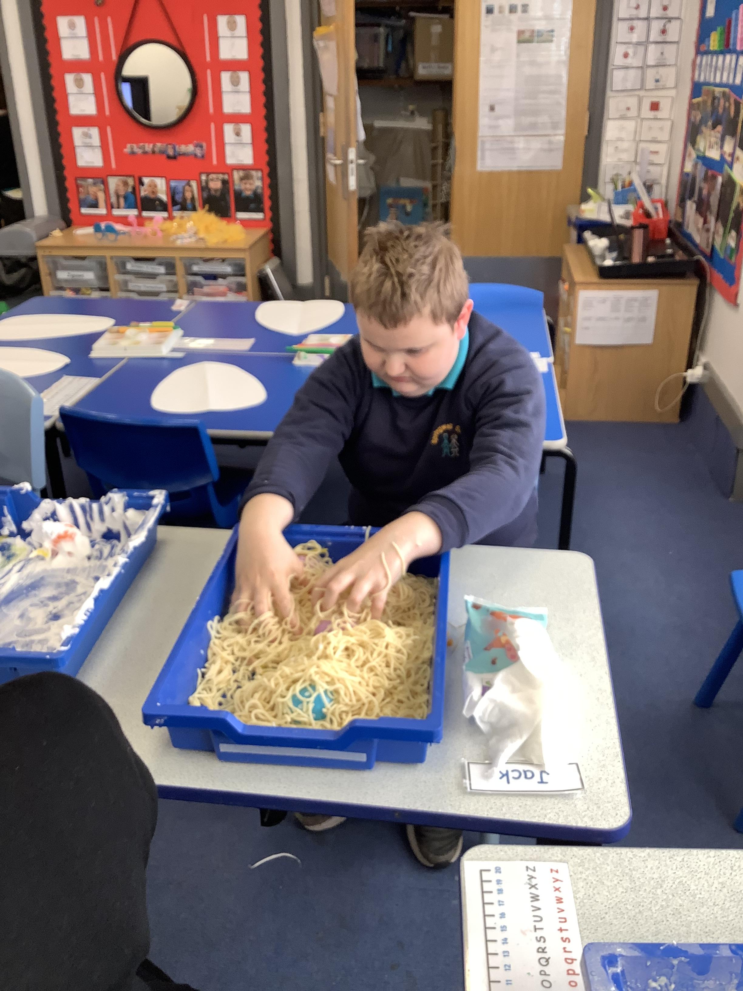 29.01.25 CHINESE NEW YEAR! We have all been learning about Chinese new year. All the children made a collage of the snake, they all had fun exploring the Sensory tray which included noodles, rice, biscuits and Angel delight!
