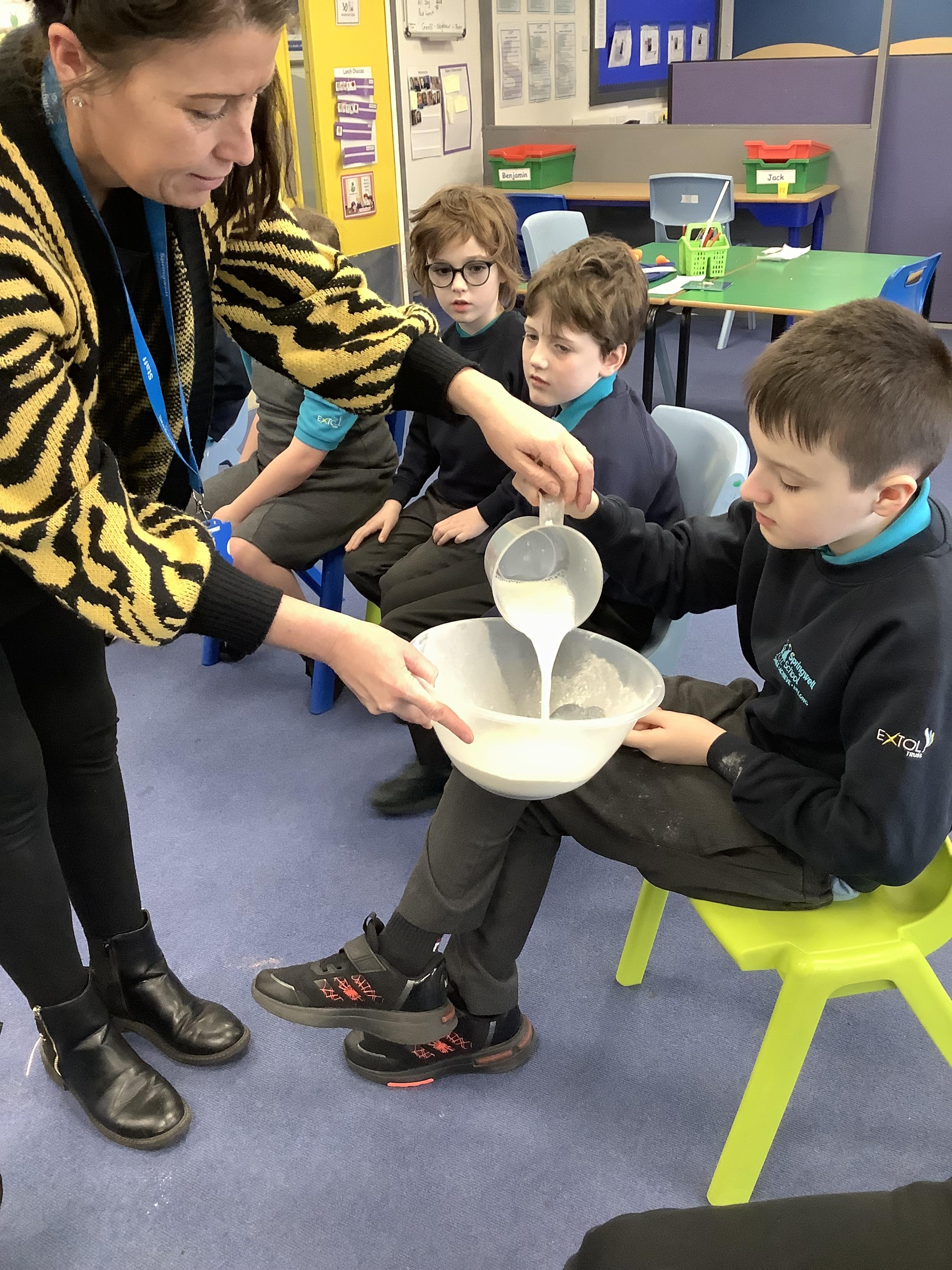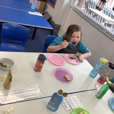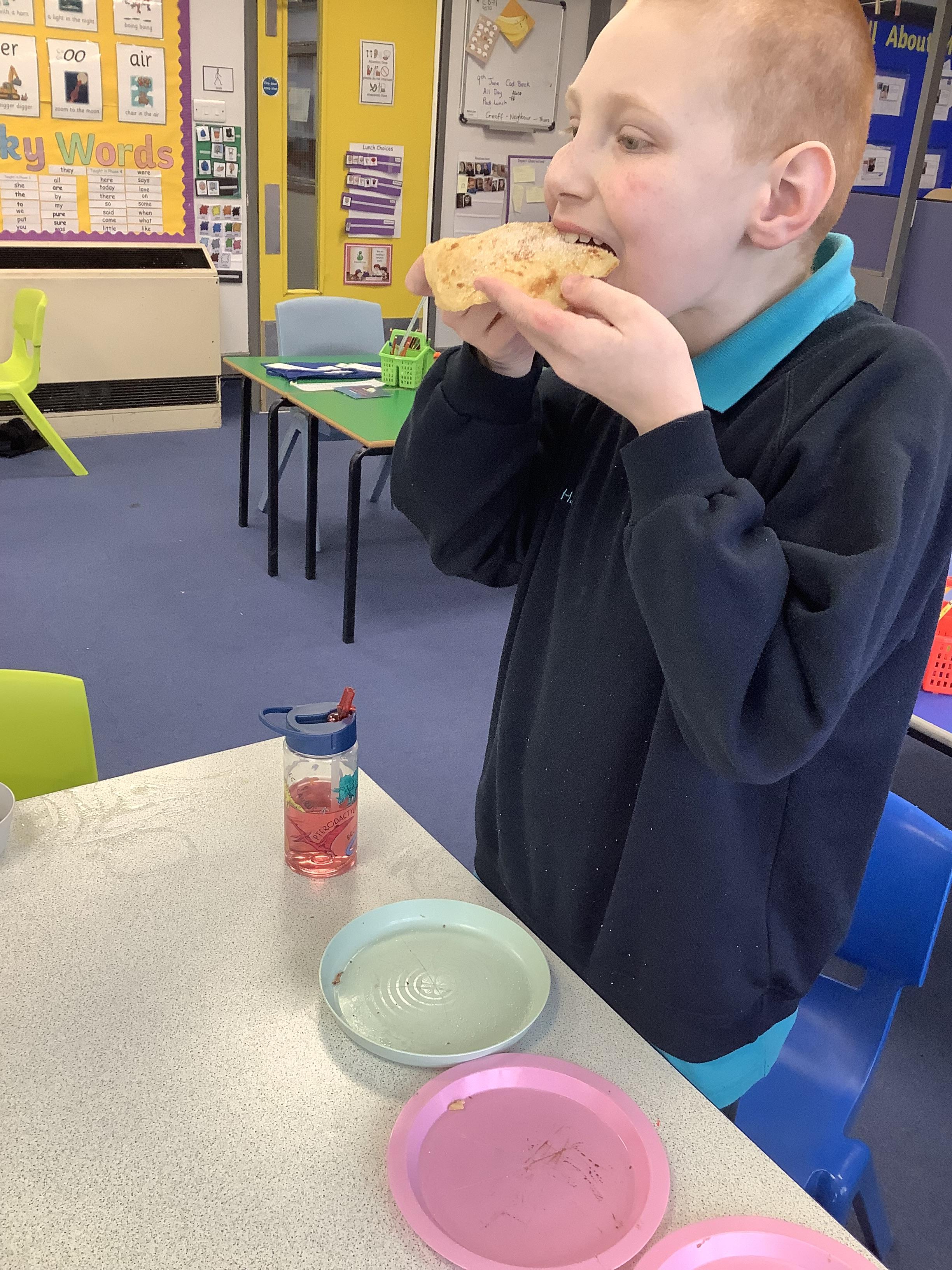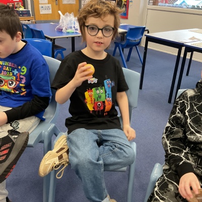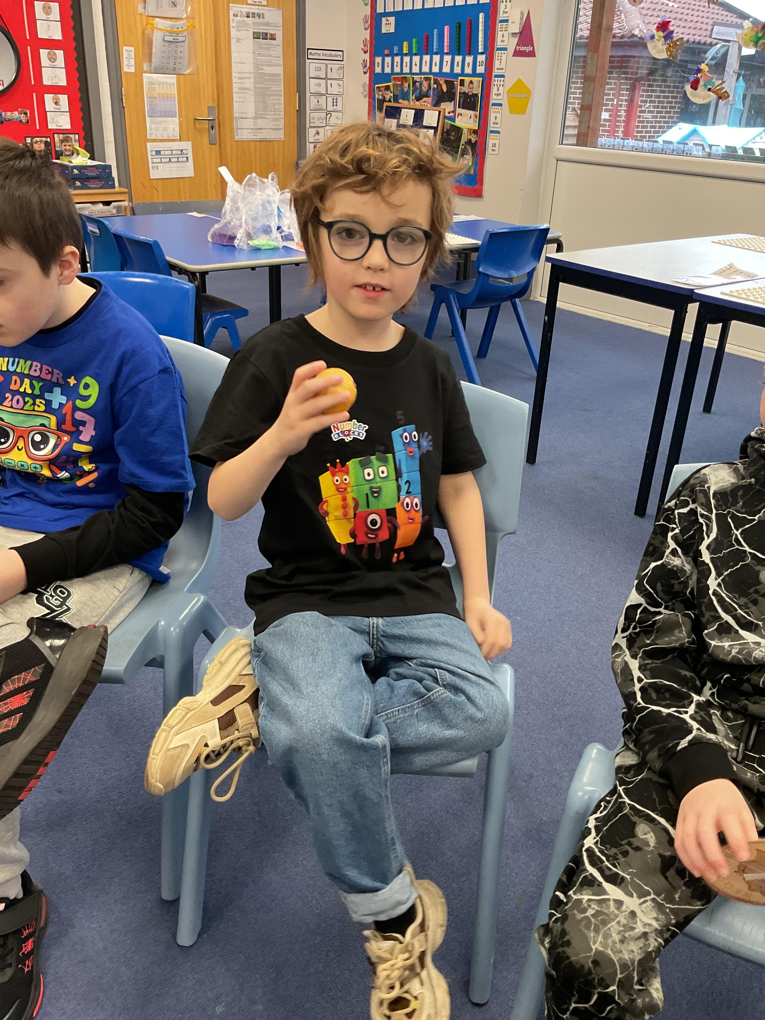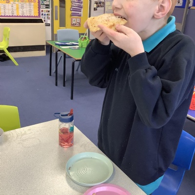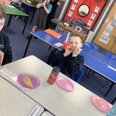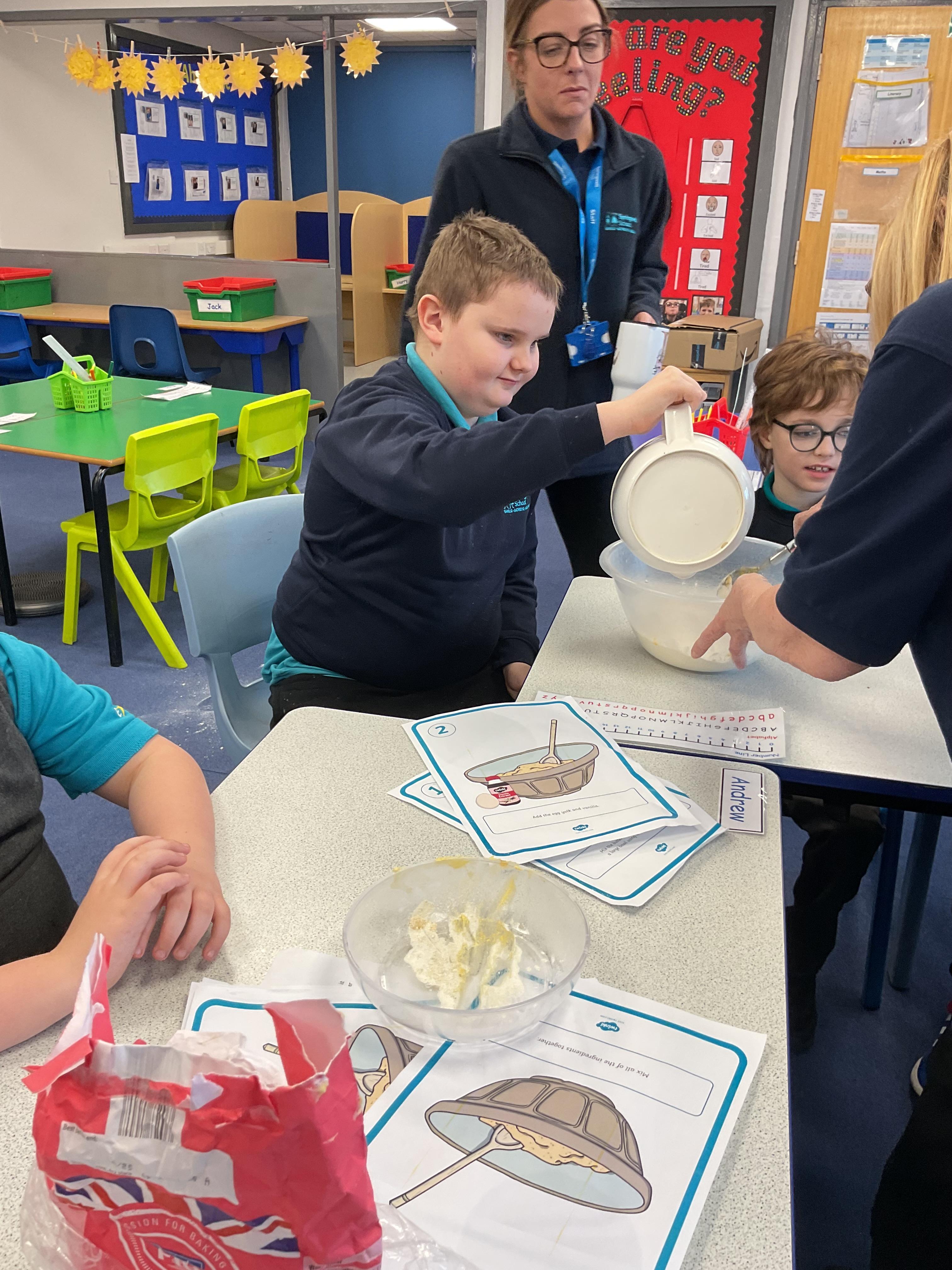 05.03.25 PANCAKE DAY: We followed a recipe, weighed out ingredients and made our own delicious pancakes in class today! Our teacher brought in lots of different toppings for us to taste (e,g, sugar, sliced bananas and oranges, honey, lemon, strawberry and chocolate sauce) and we chose our preferred topping to put on our pancakes.