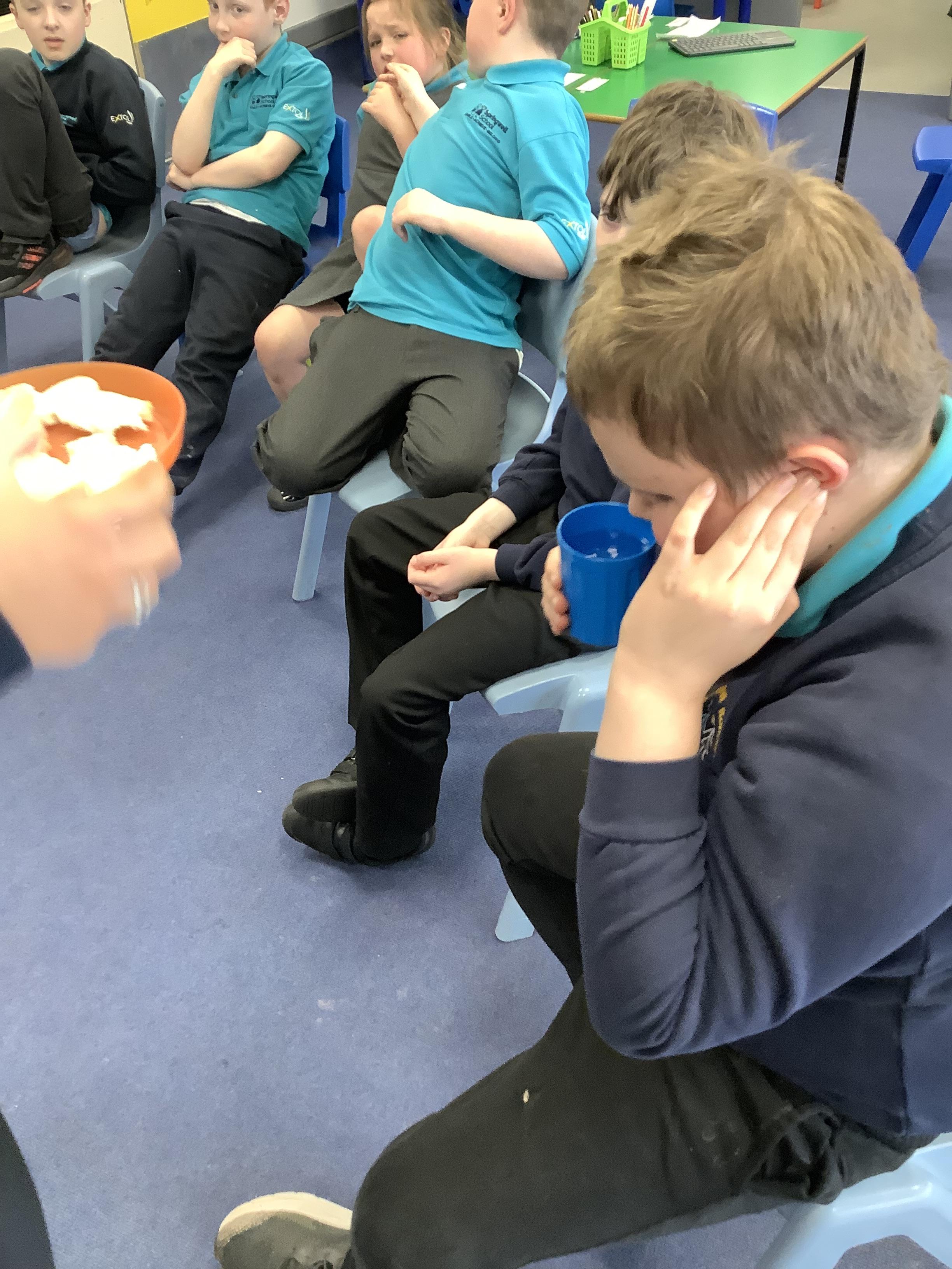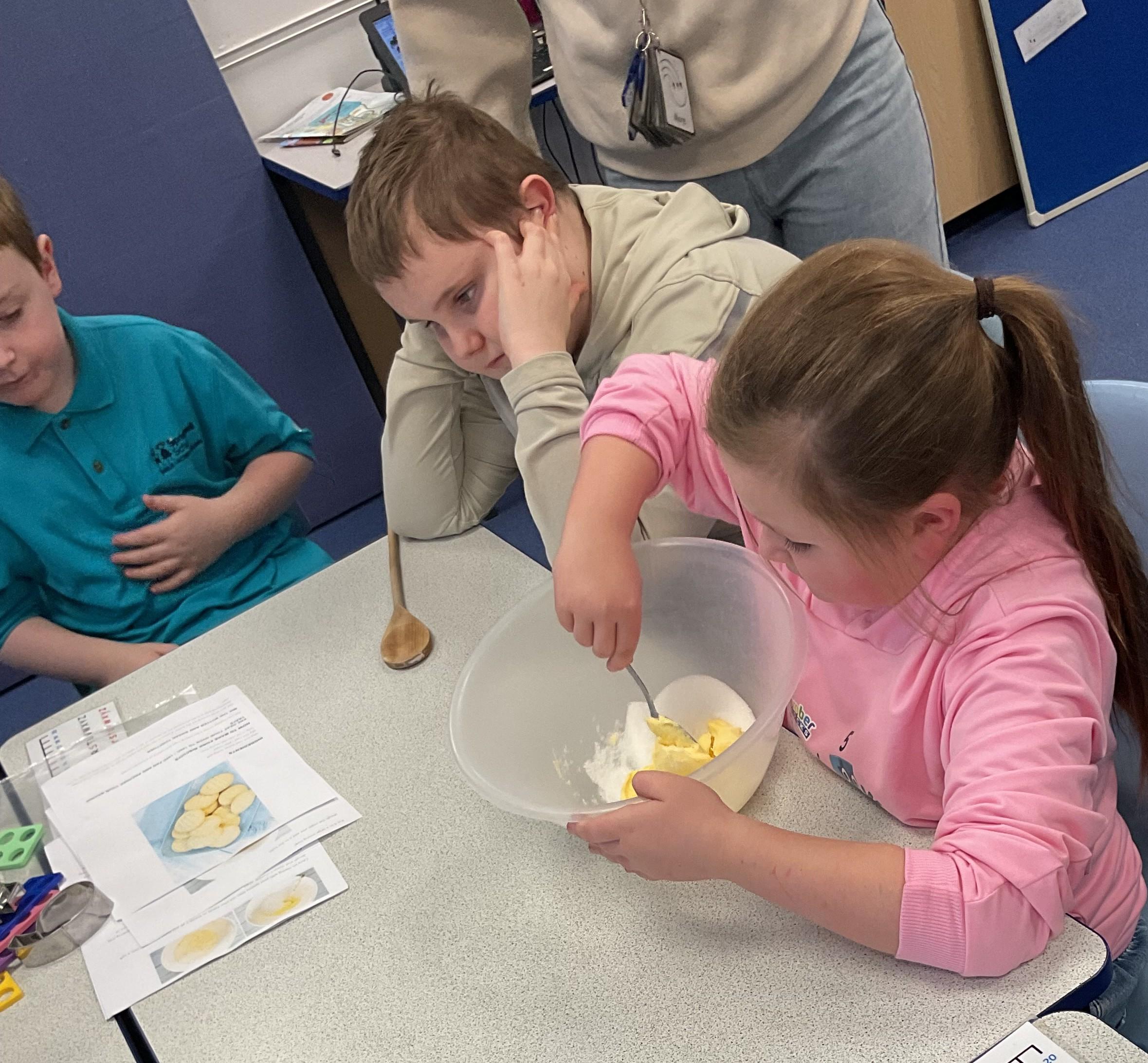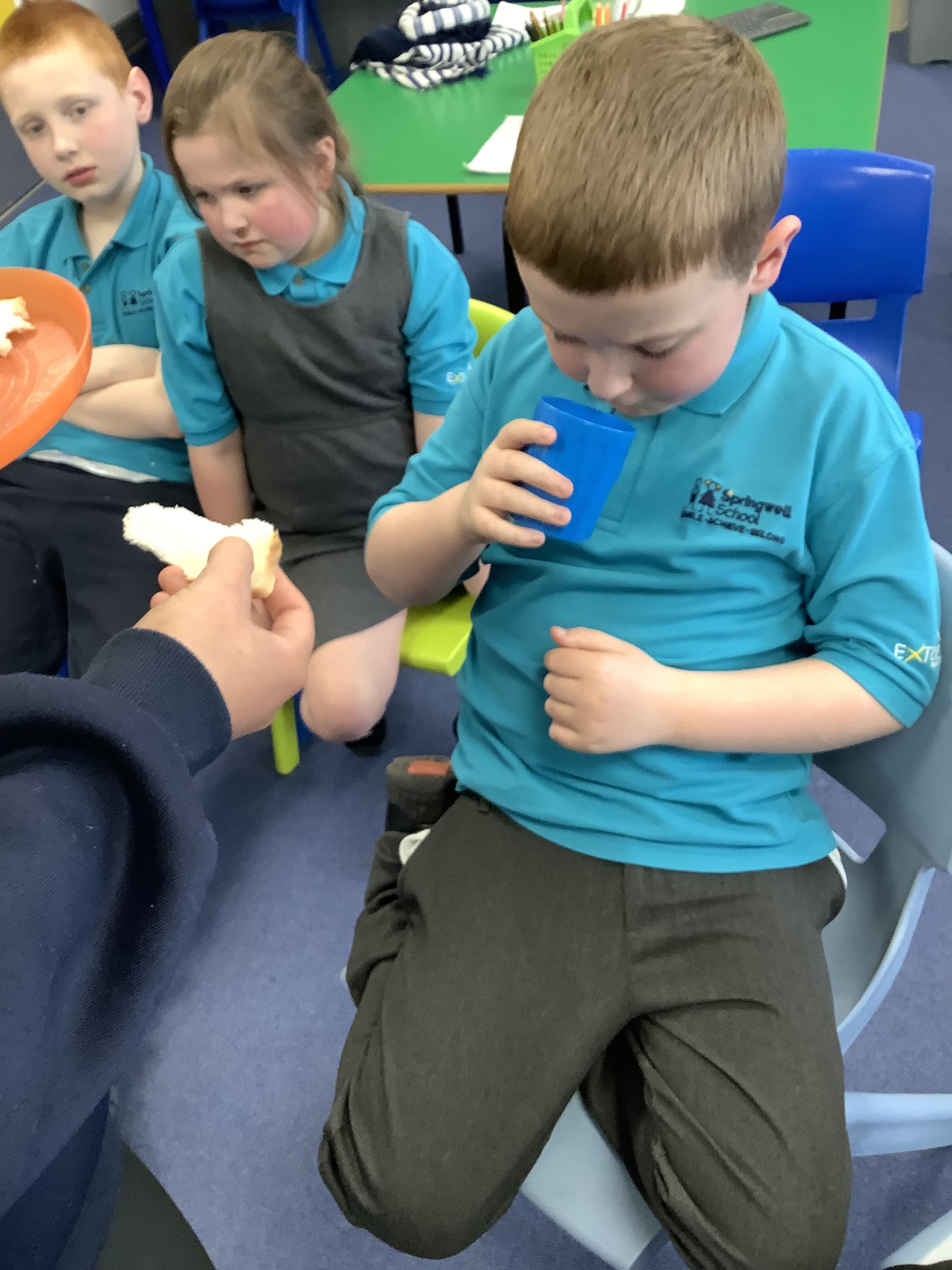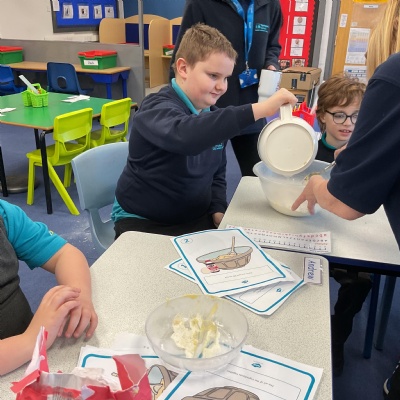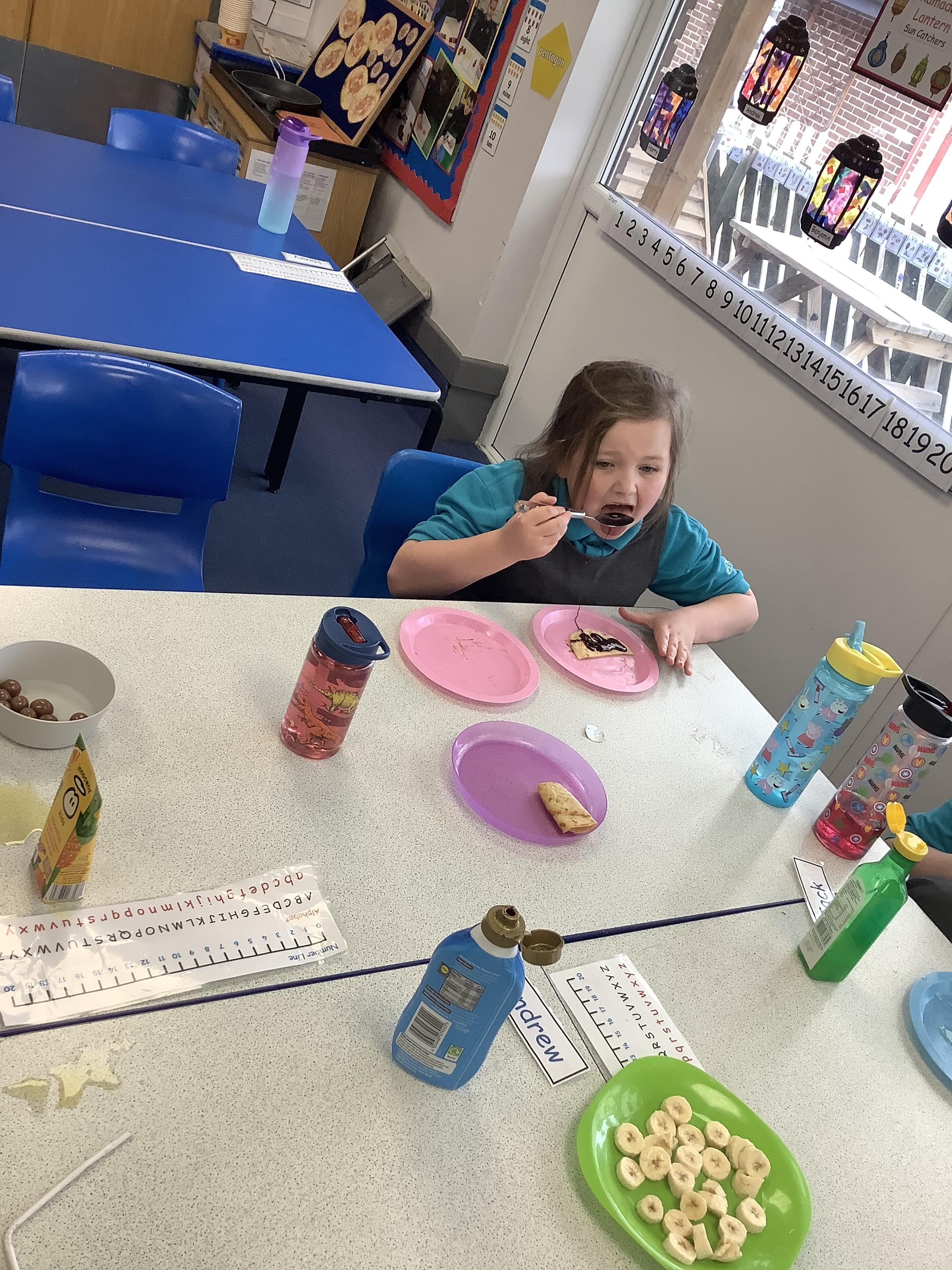 05.03.25 PANCAKE DAY: We followed a recipe, weighed out ingredients and made our own delicious pancakes in class today! Our teacher brought in lots of different toppings for us to taste (e,g, sugar, sliced bananas and oranges, honey, lemon, strawberry and chocolate sauce) and we chose our preferred topping to put on our pancakes.