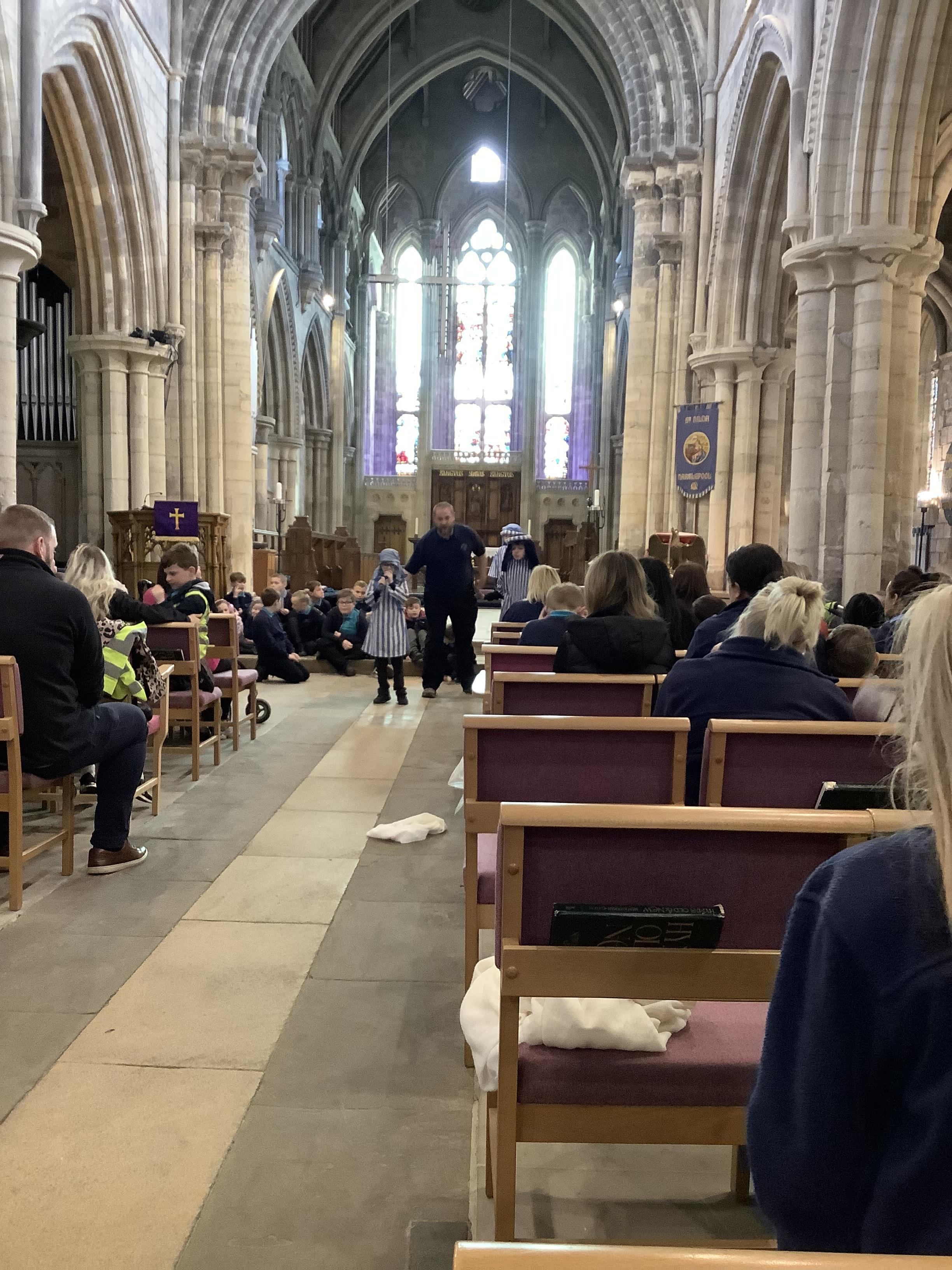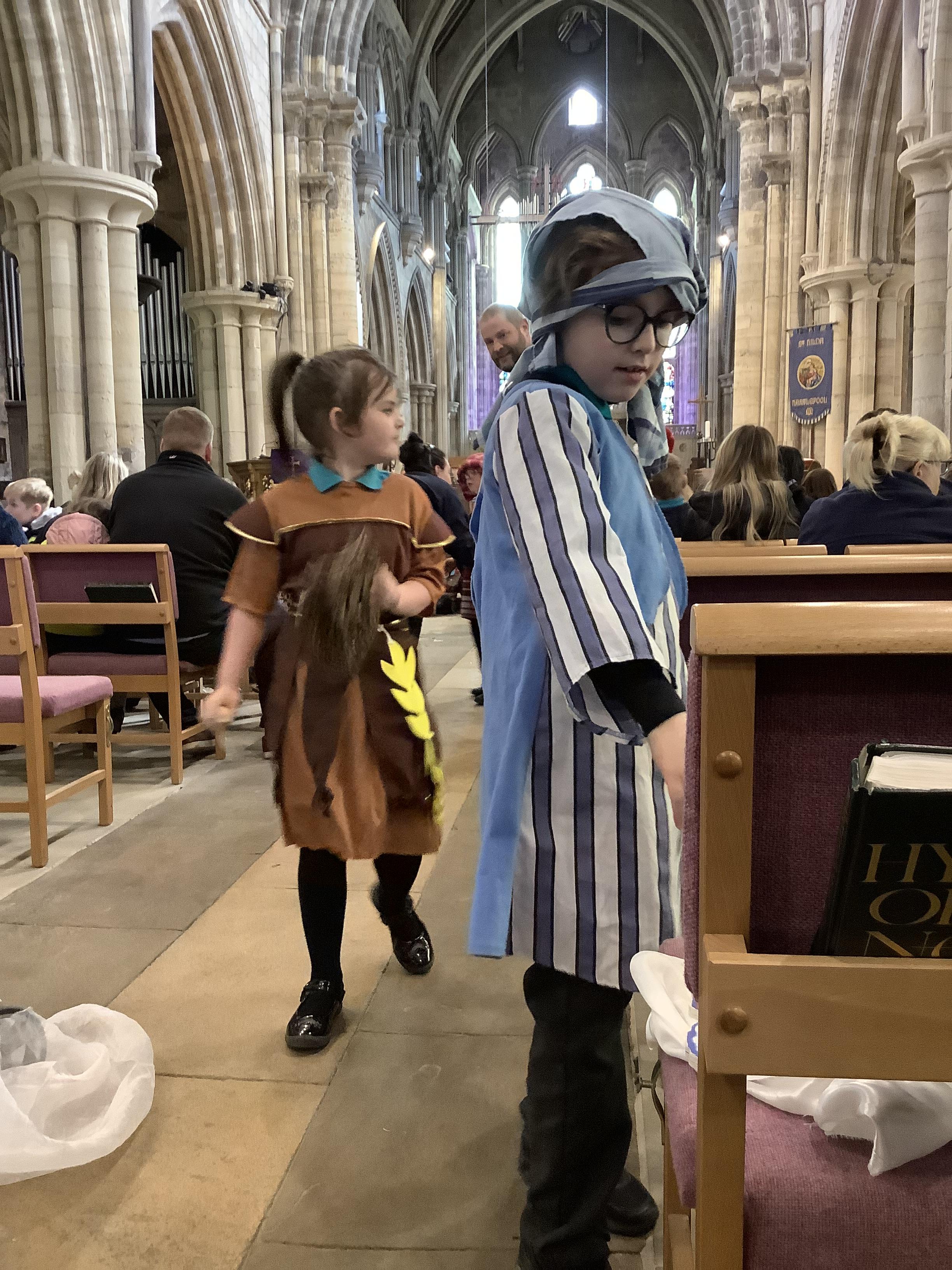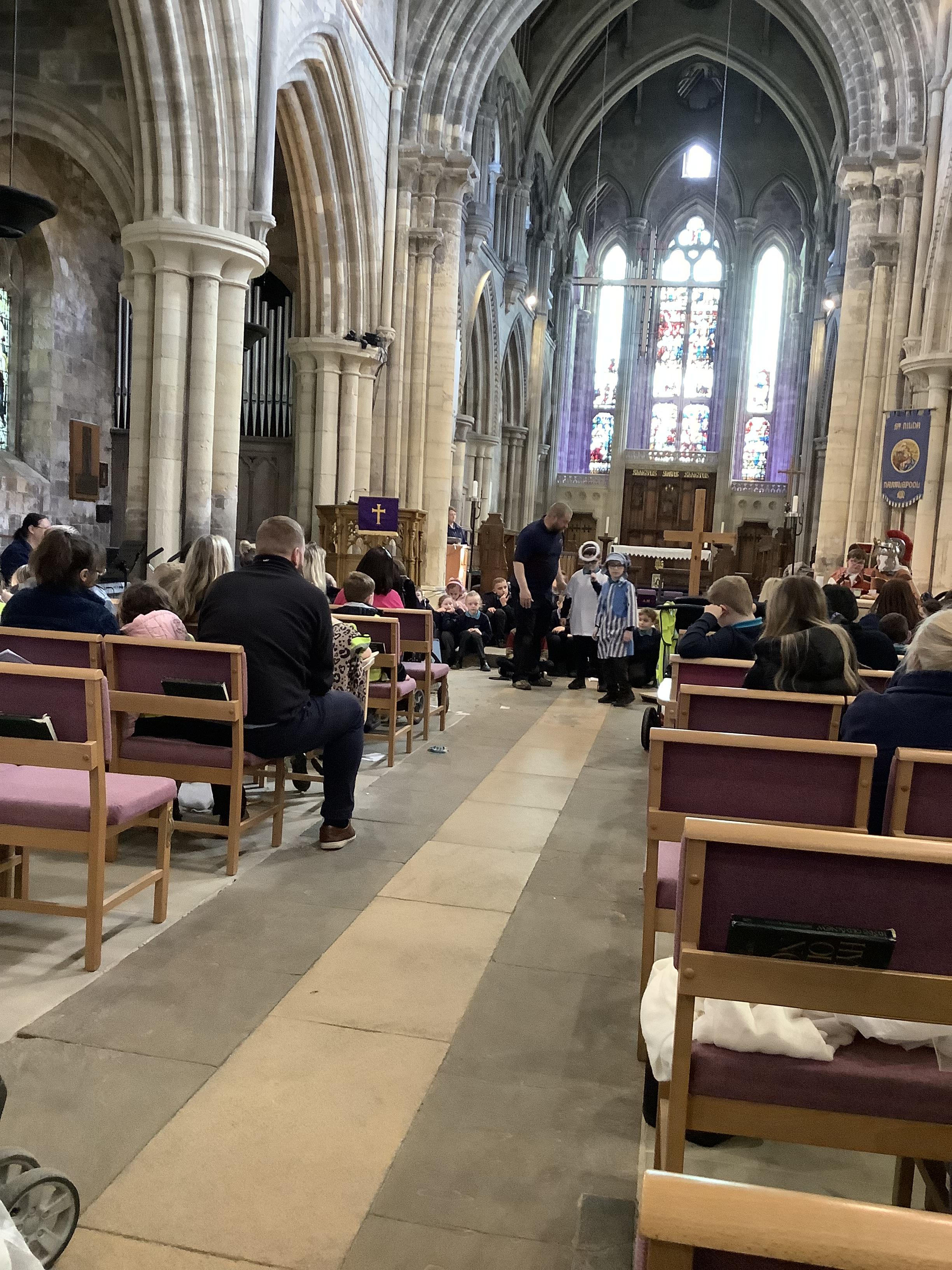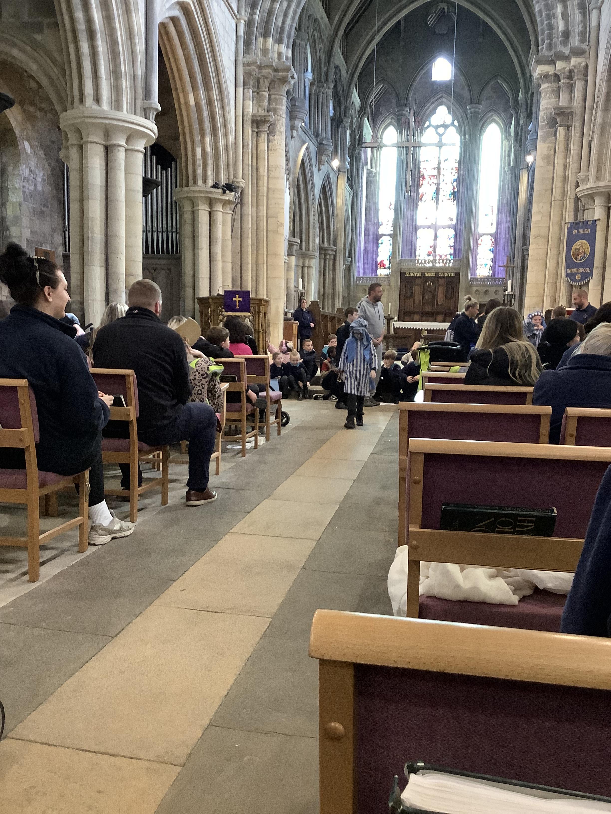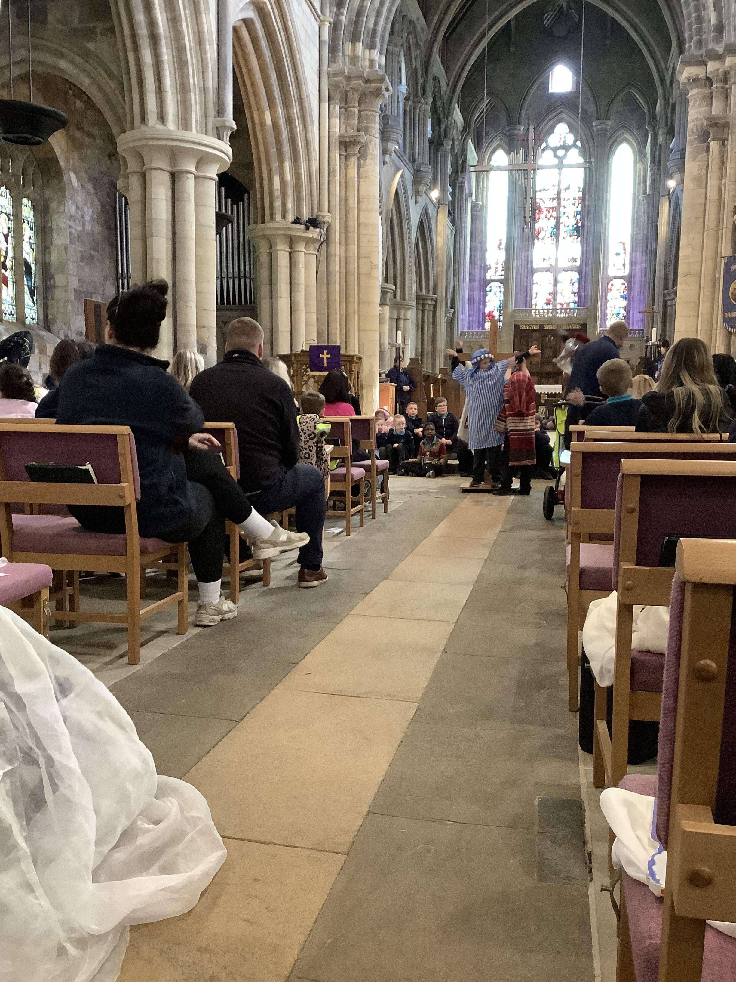 10.04.25 RE: EASTER We visited St Hild's Church today and had our annual Easter Service. Andrew and Jack were the two disciples in the story. All our children were fantastically behaved in church, they loved singing all the Easter songs!