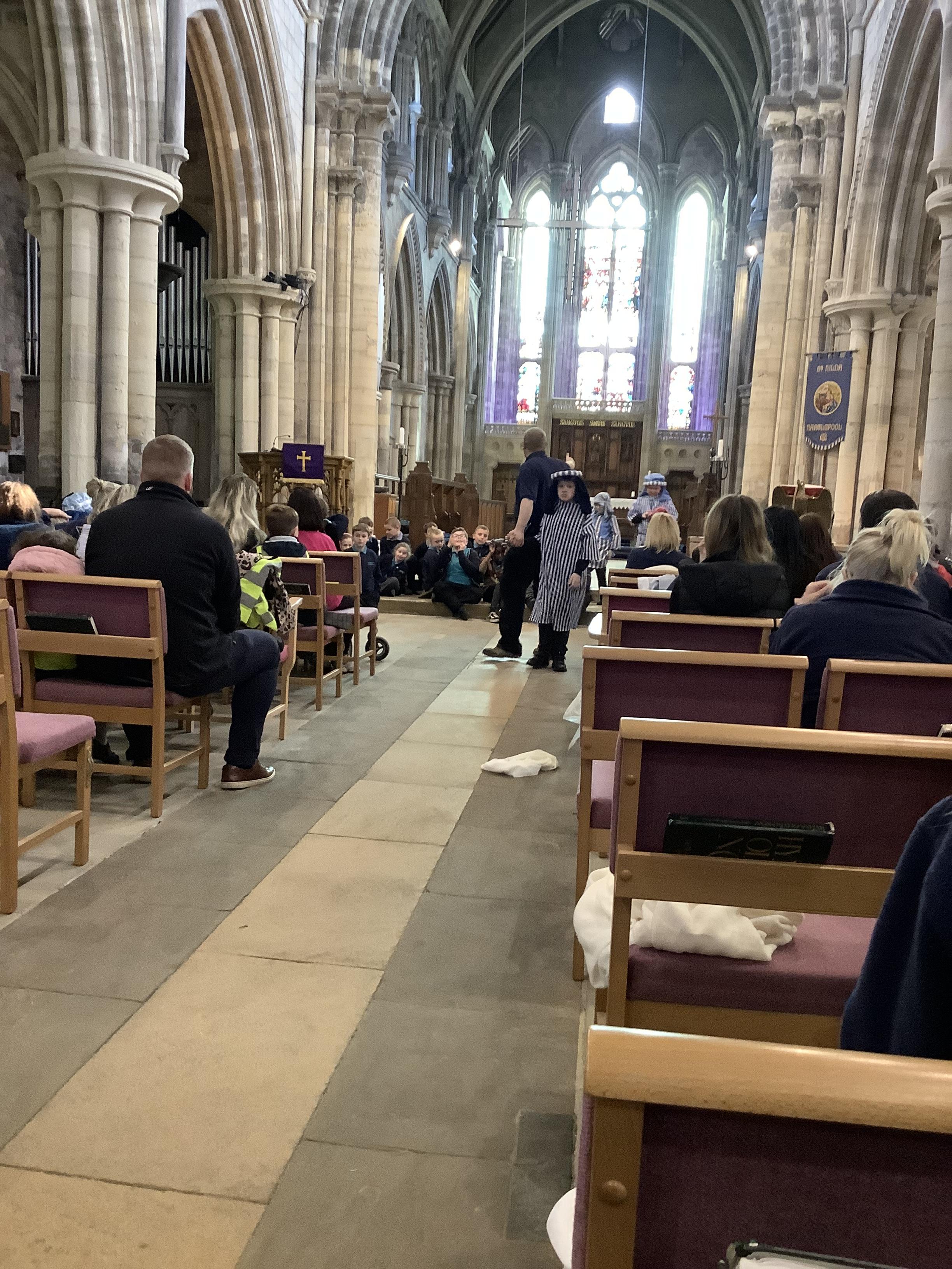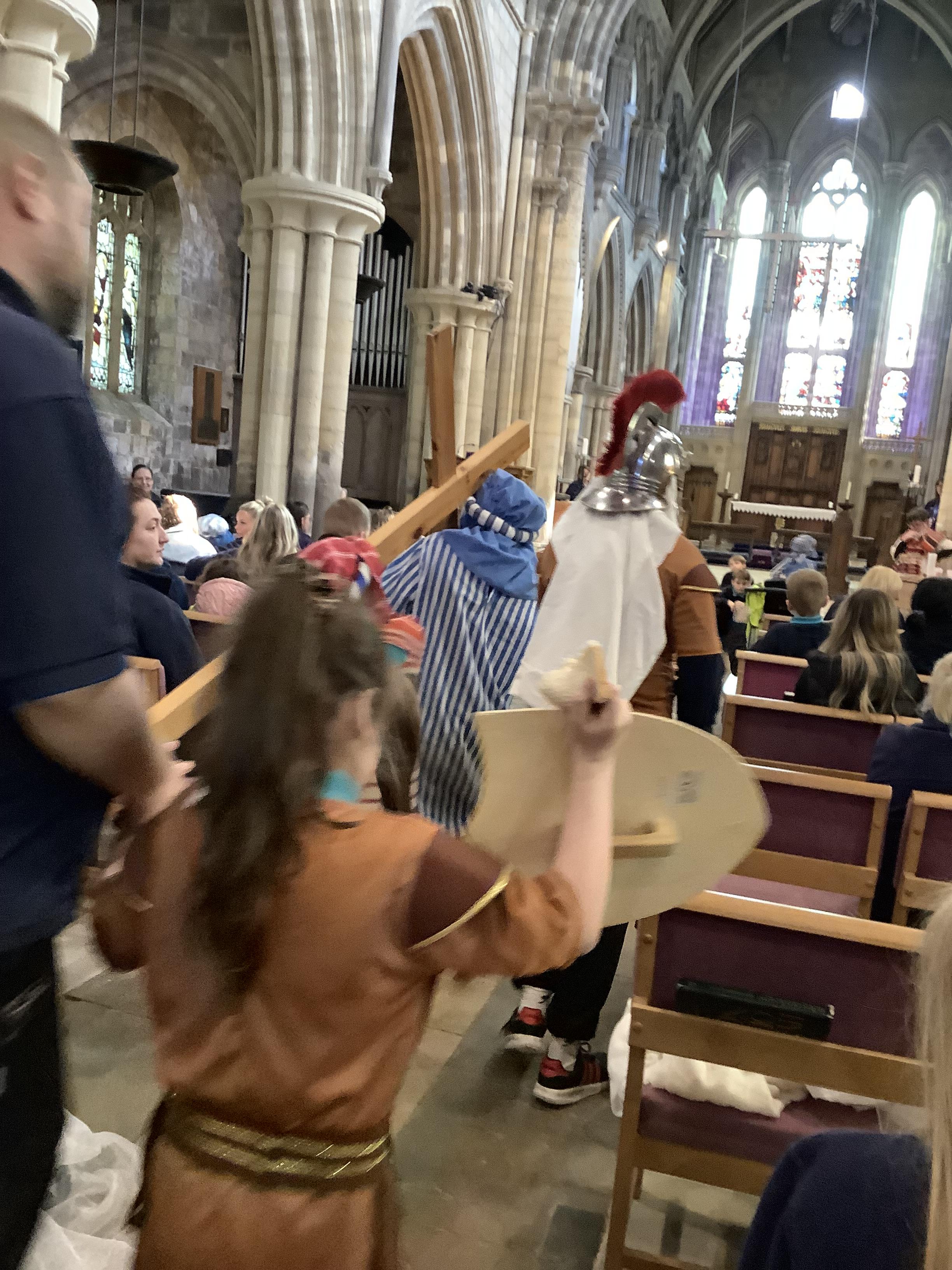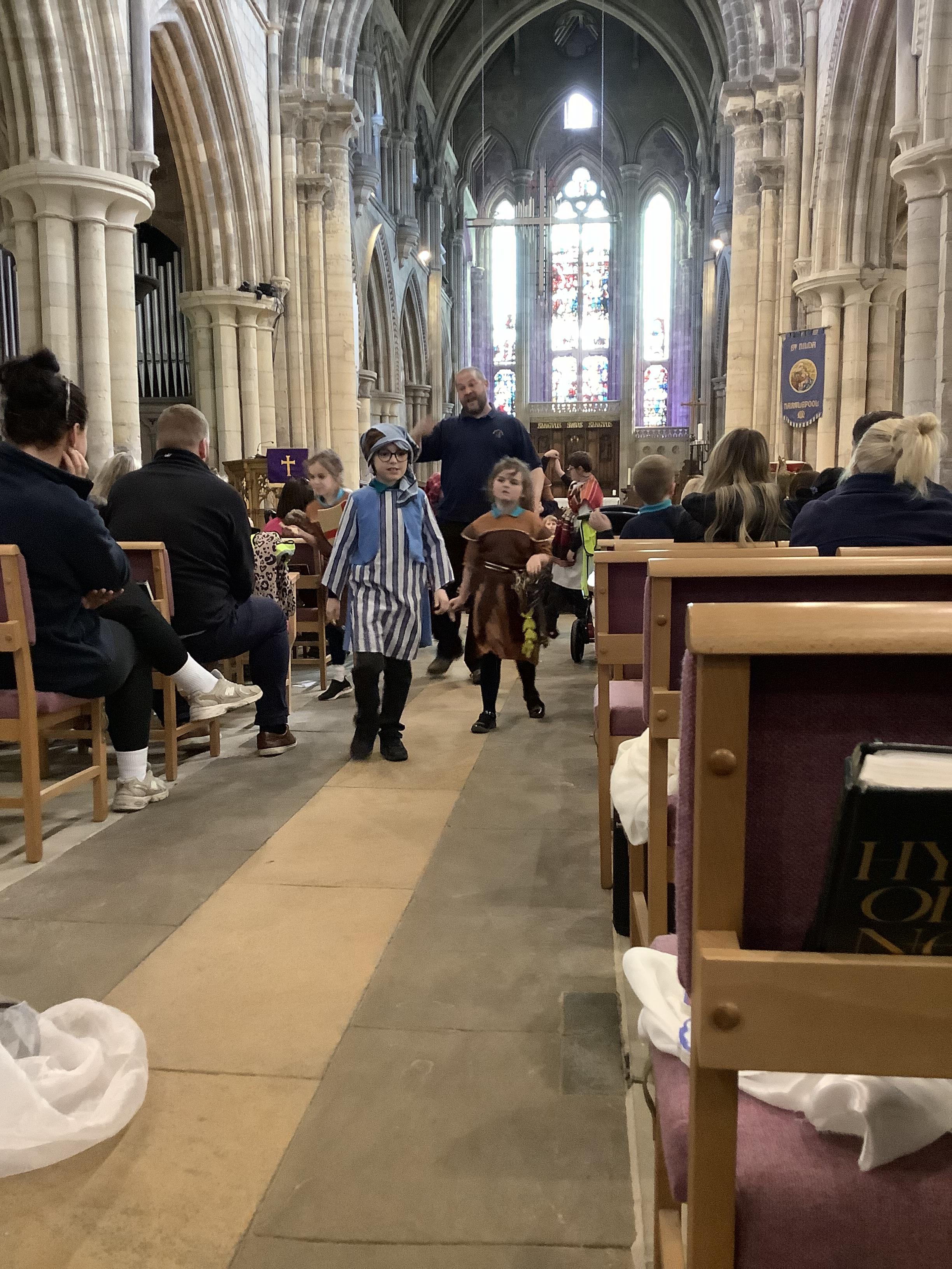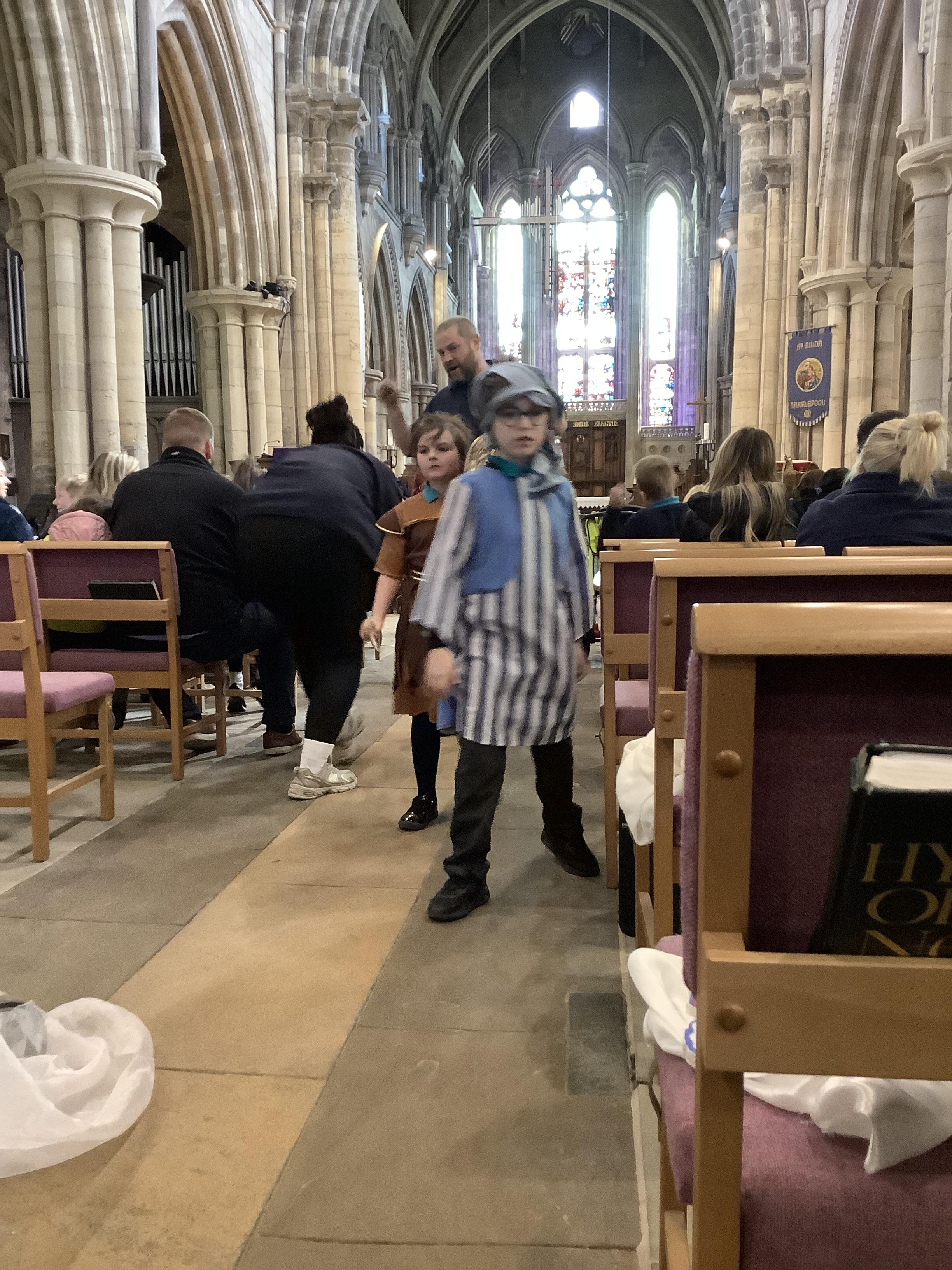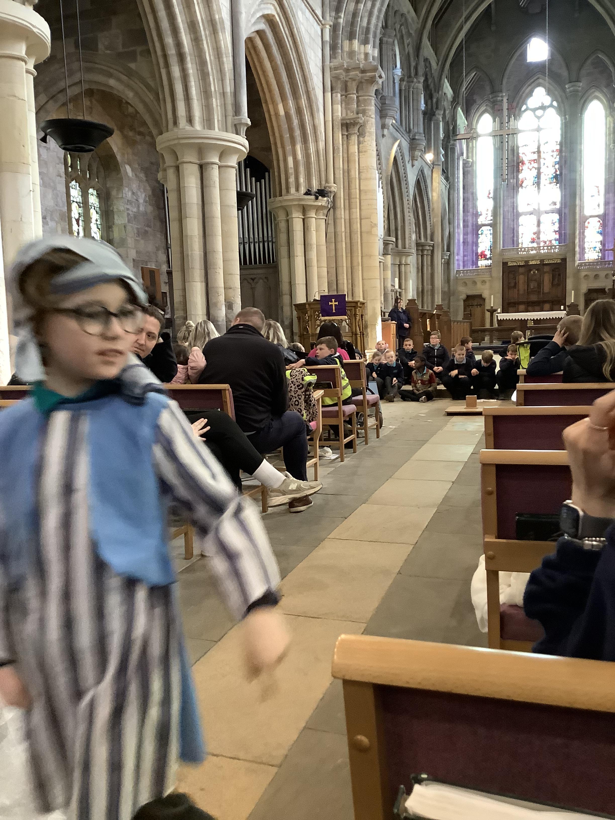 10.04.25 RE: EASTER We visited St Hild's Church today and had our annual Easter Service. Andrew and Jack were the two disciples in the story. All our children were fantastically behaved in church, they loved singing all the Easter songs!