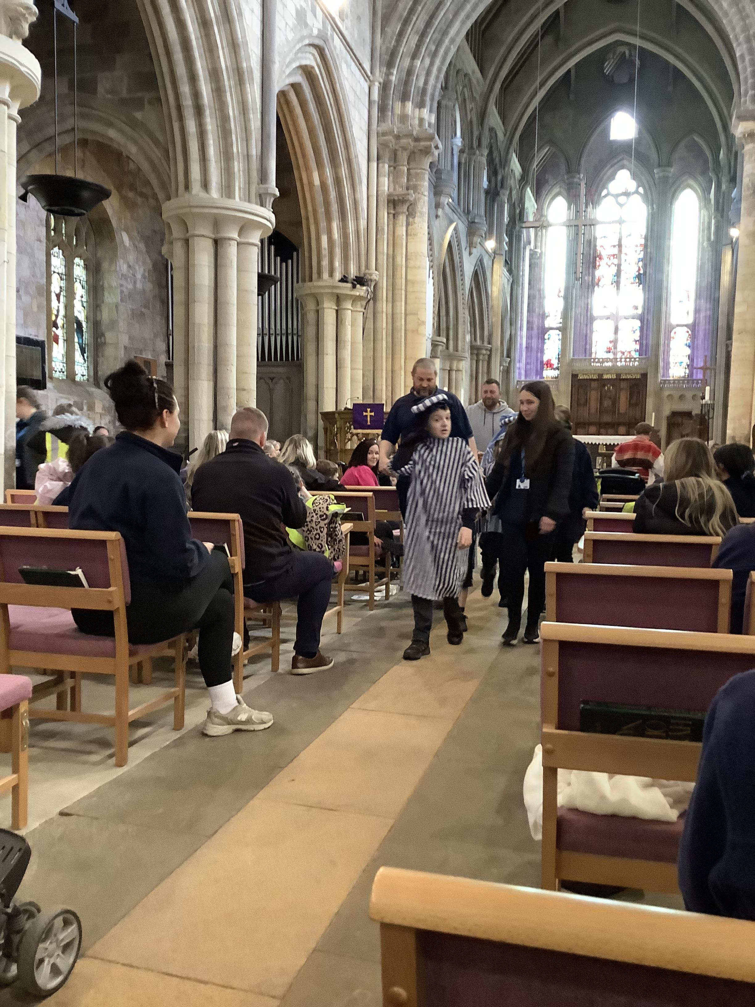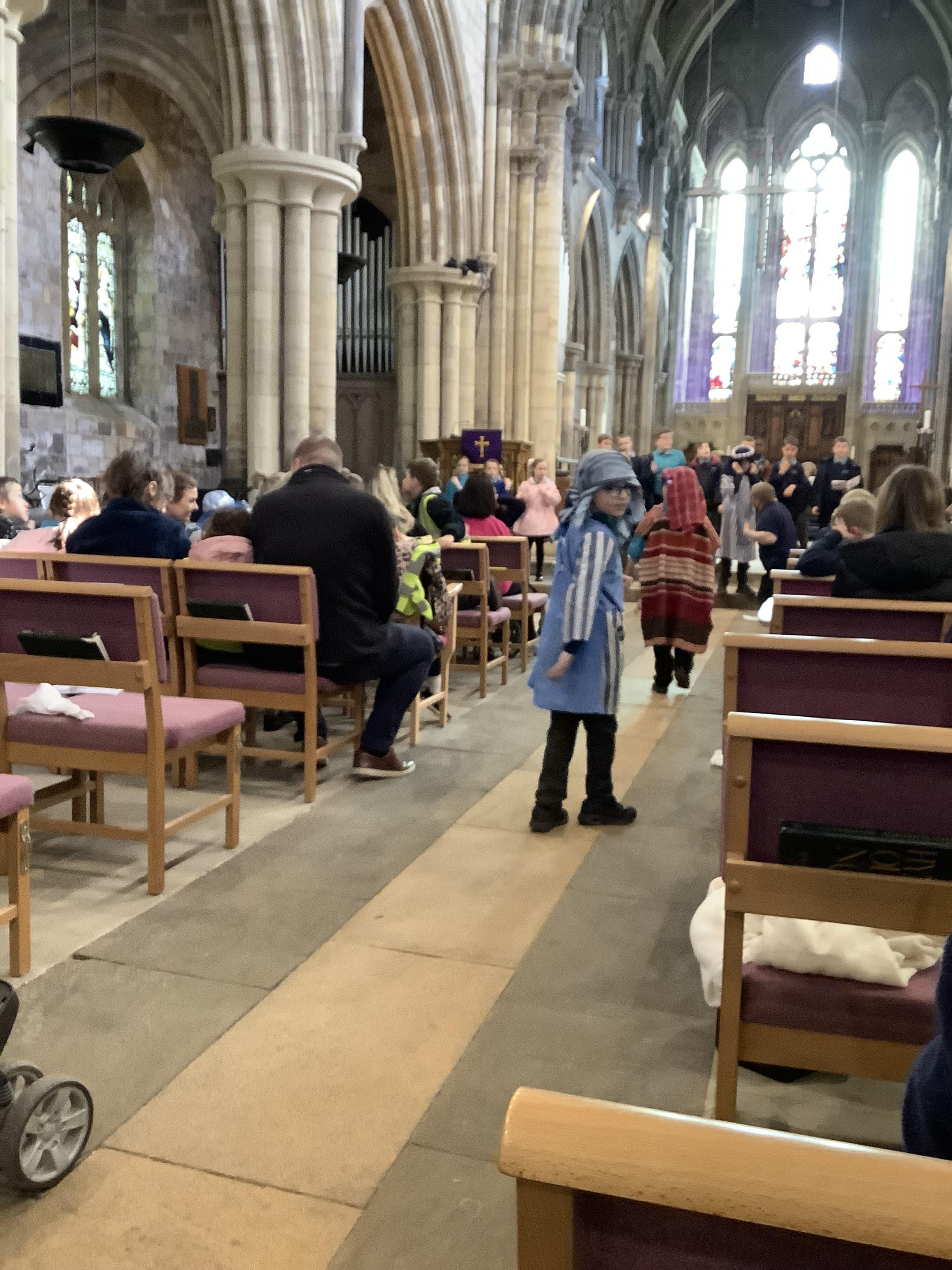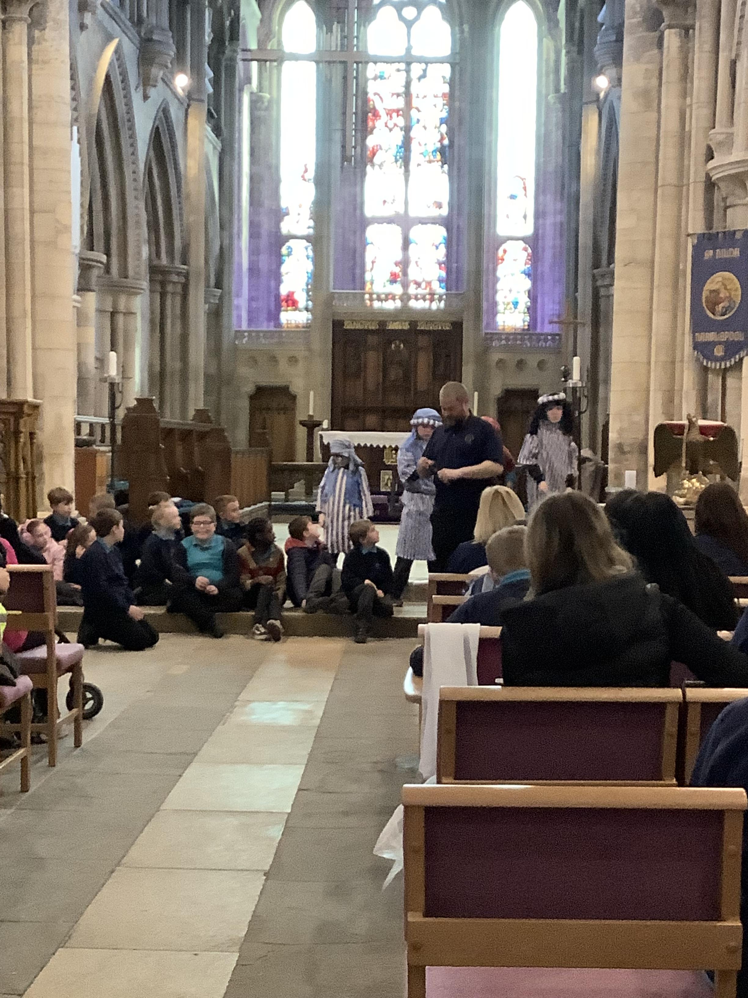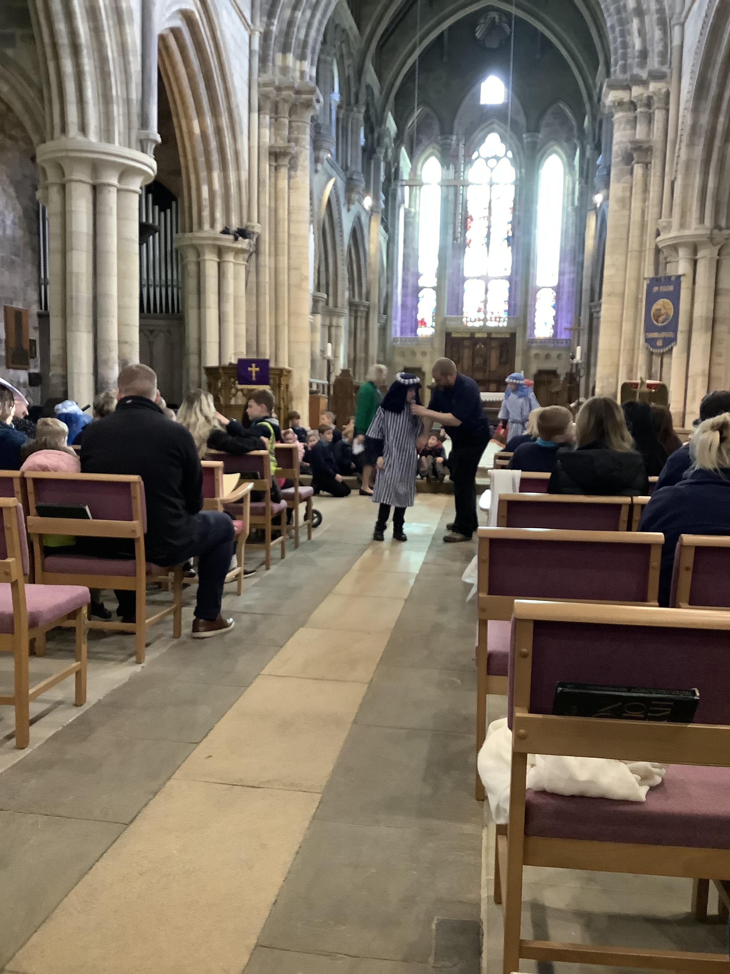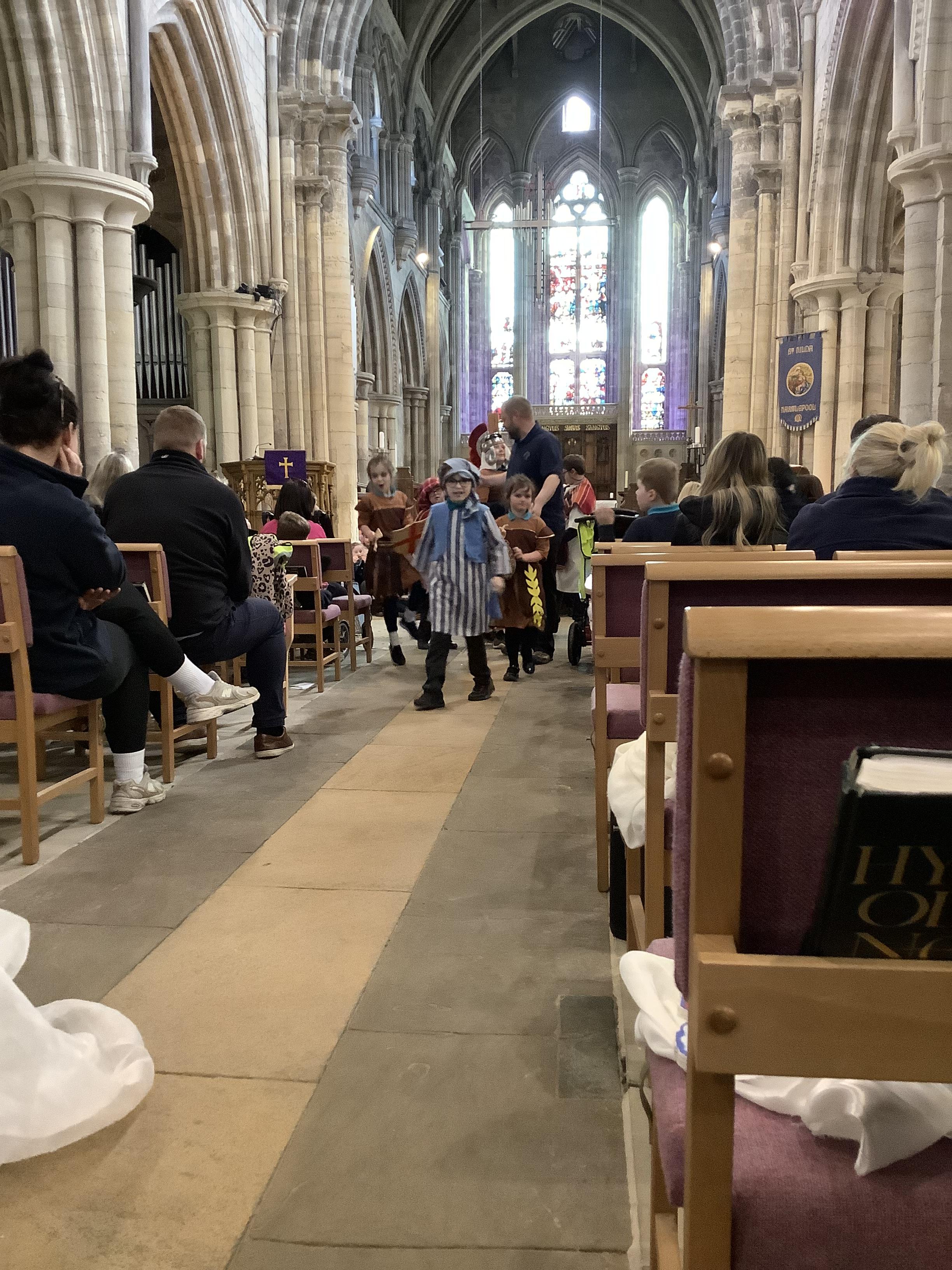 10.04.25 RE: EASTER We visited St Hild's Church today and had our annual Easter Service. Andrew and Jack were the two disciples in the story. All our children were fantastically behaved in church, they loved singing all the Easter songs!