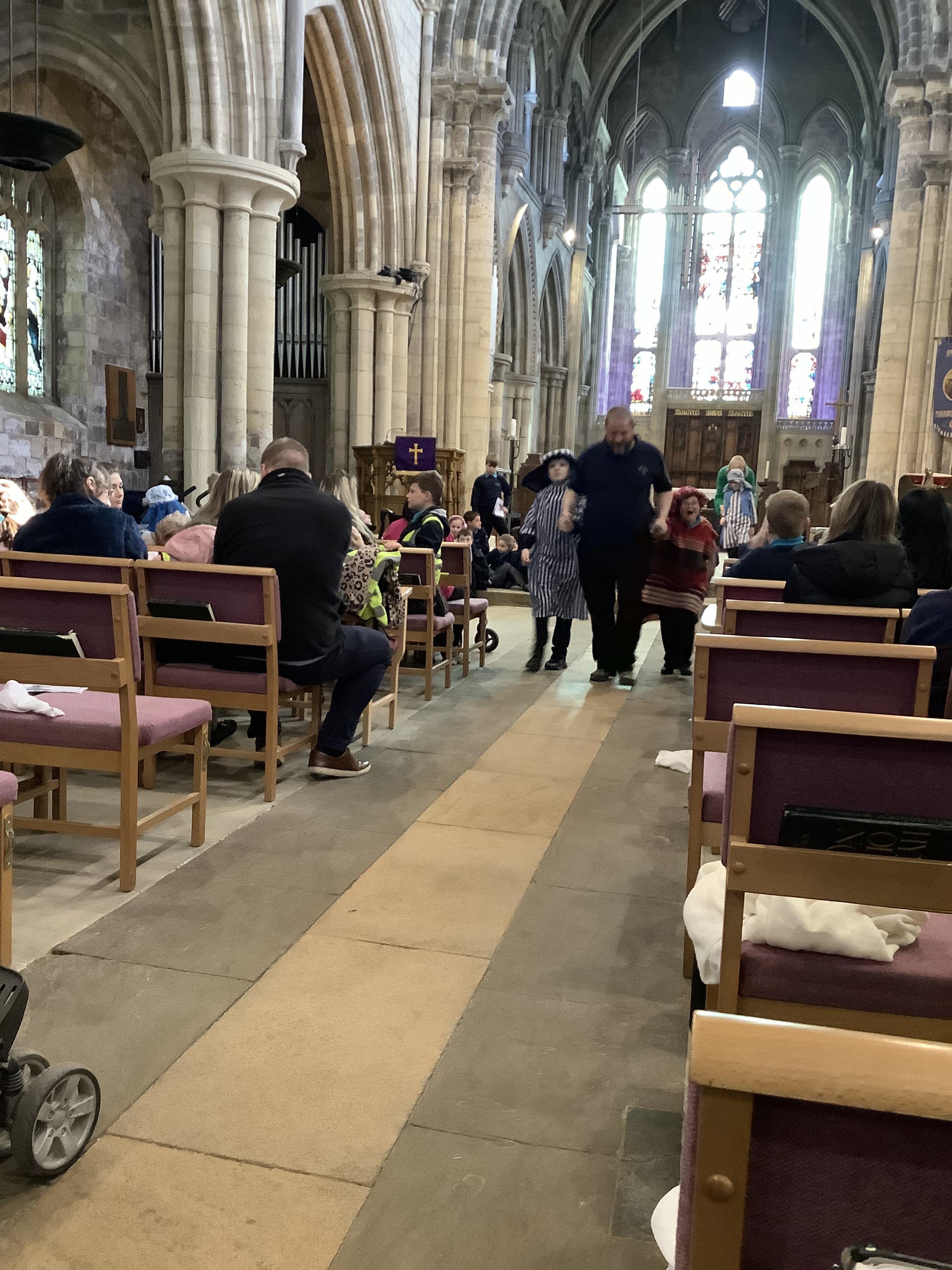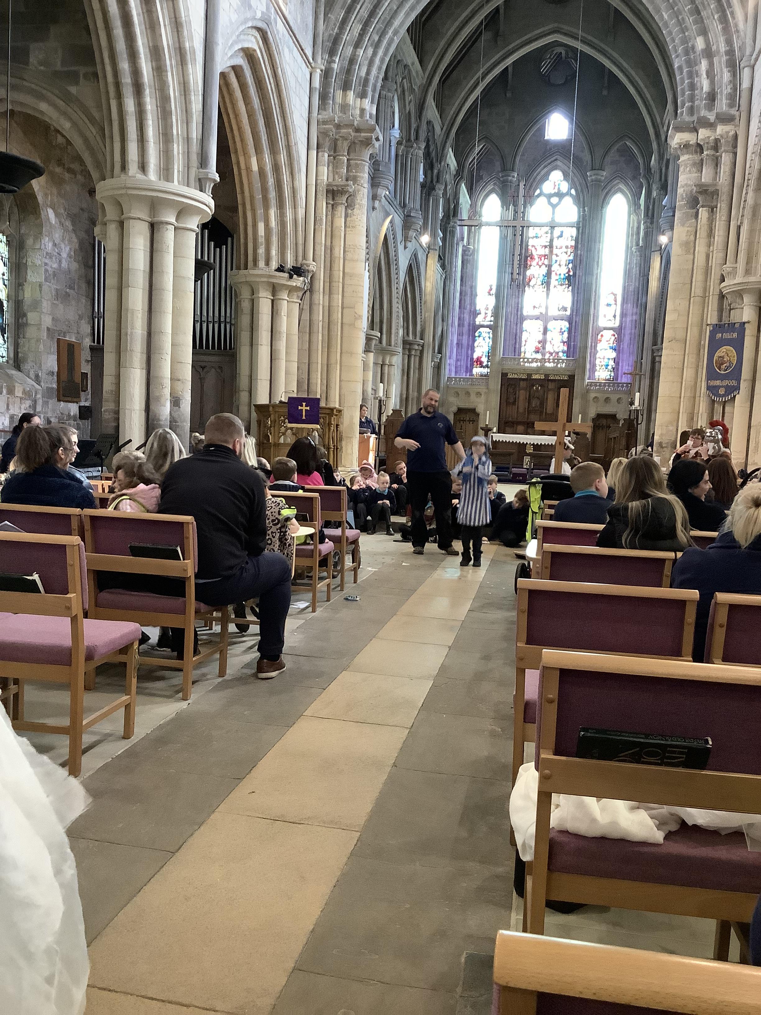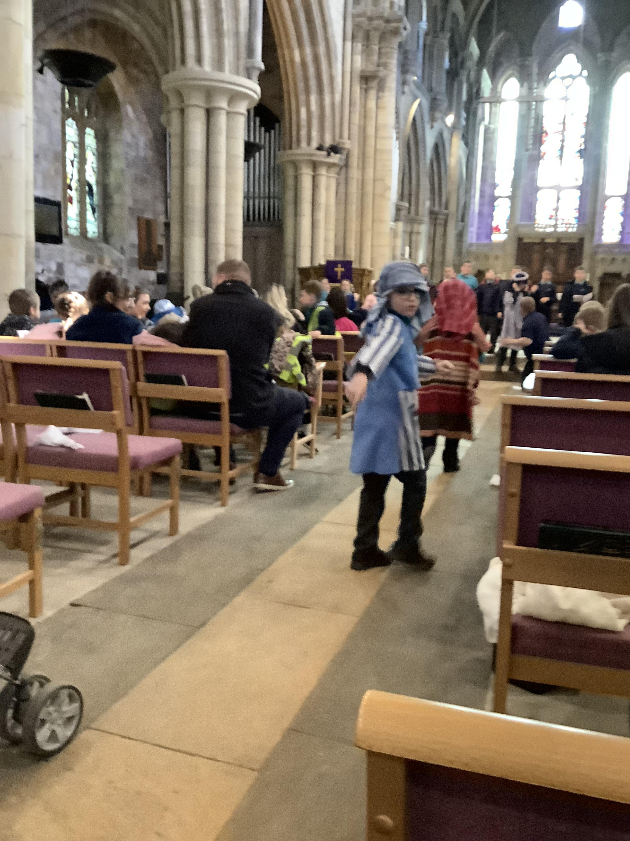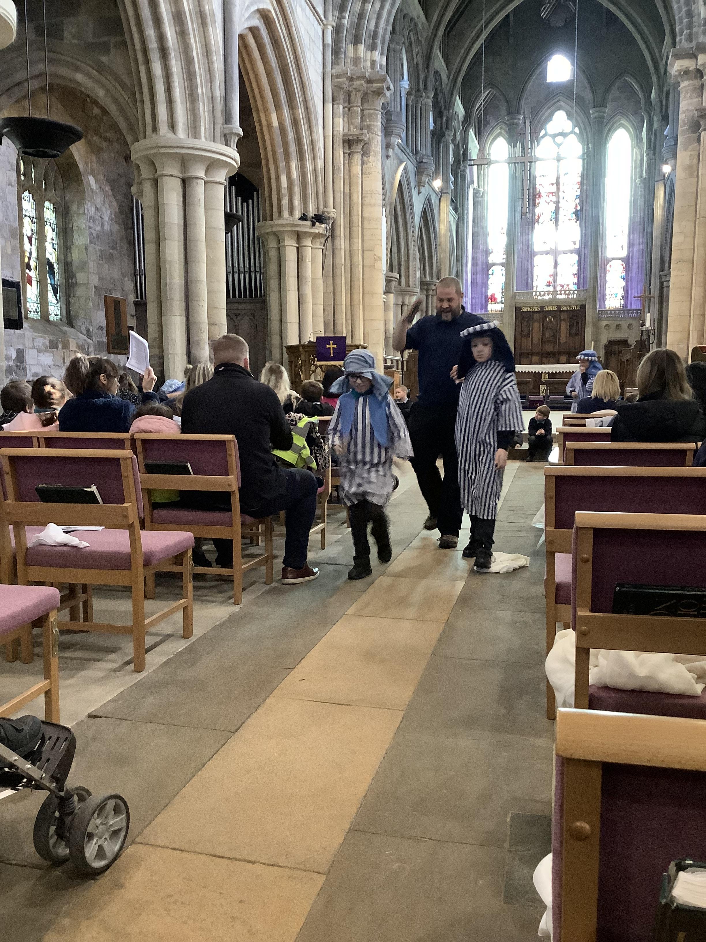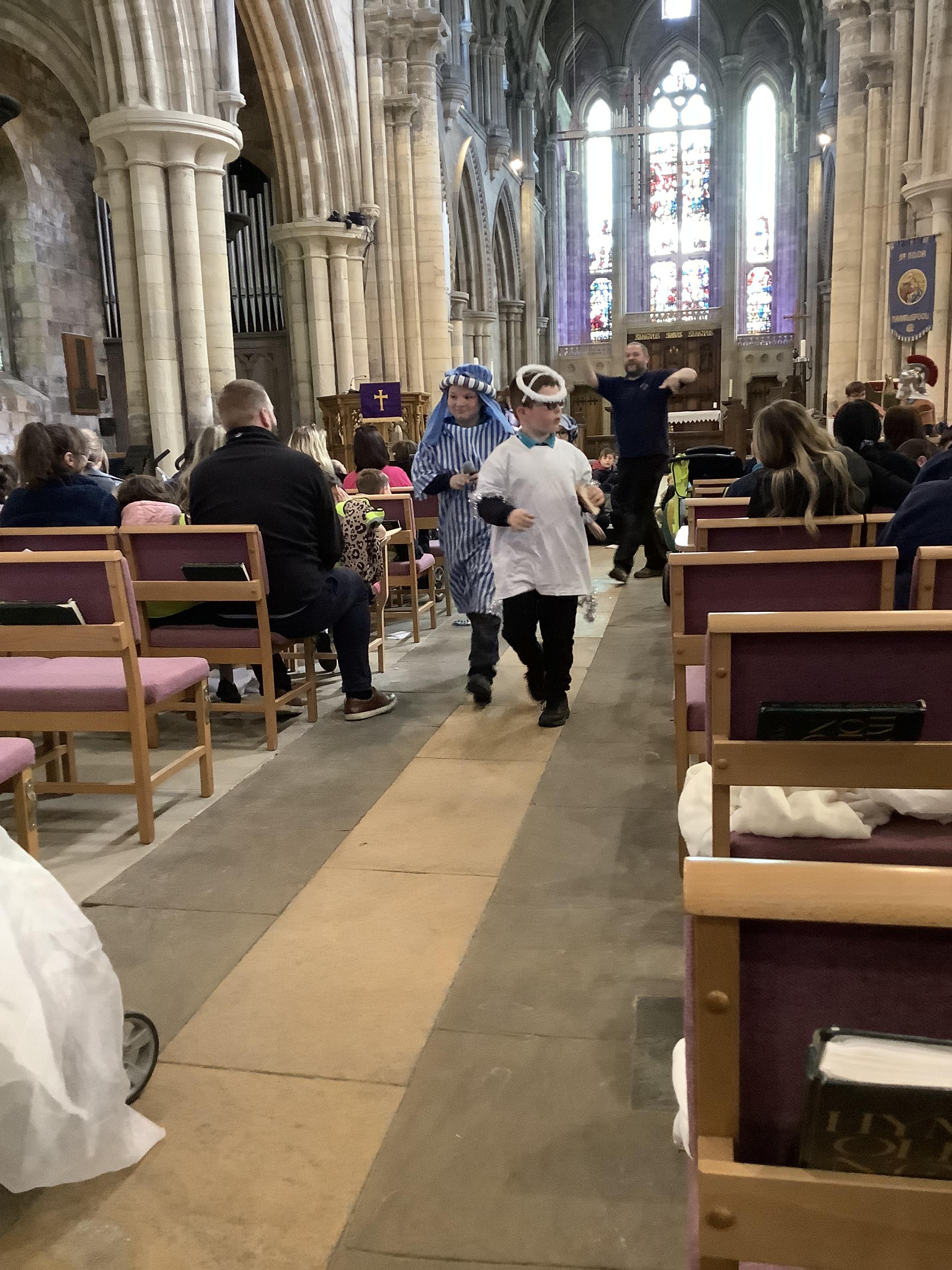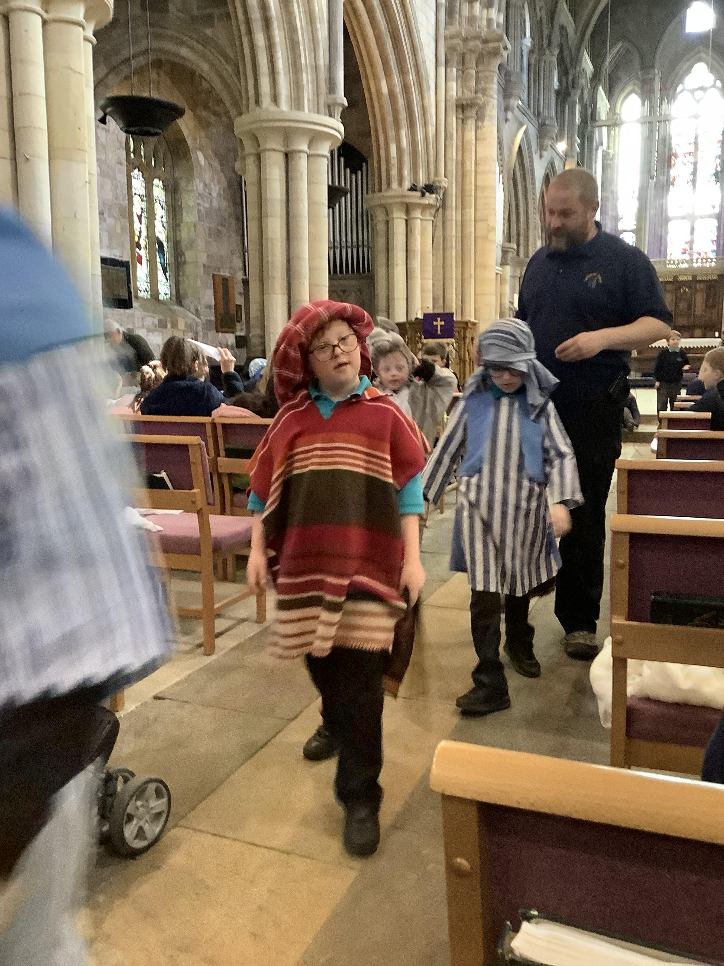 10.04.25 RE: EASTER We visited St Hild's Church today and had our annual Easter Service. Andrew and Jack were the two disciples in the story. All our children were fantastically behaved in church, they loved singing all the Easter songs!