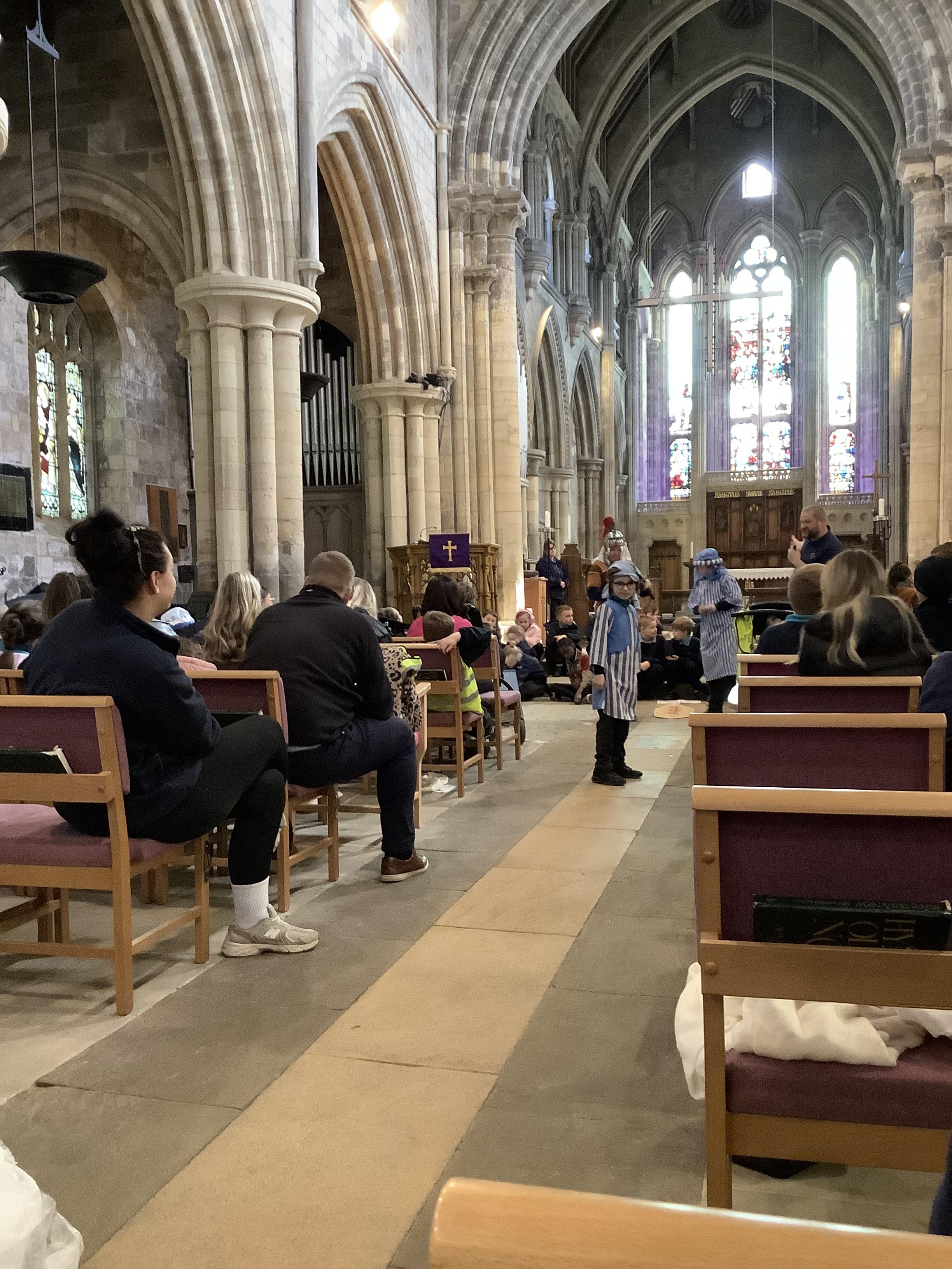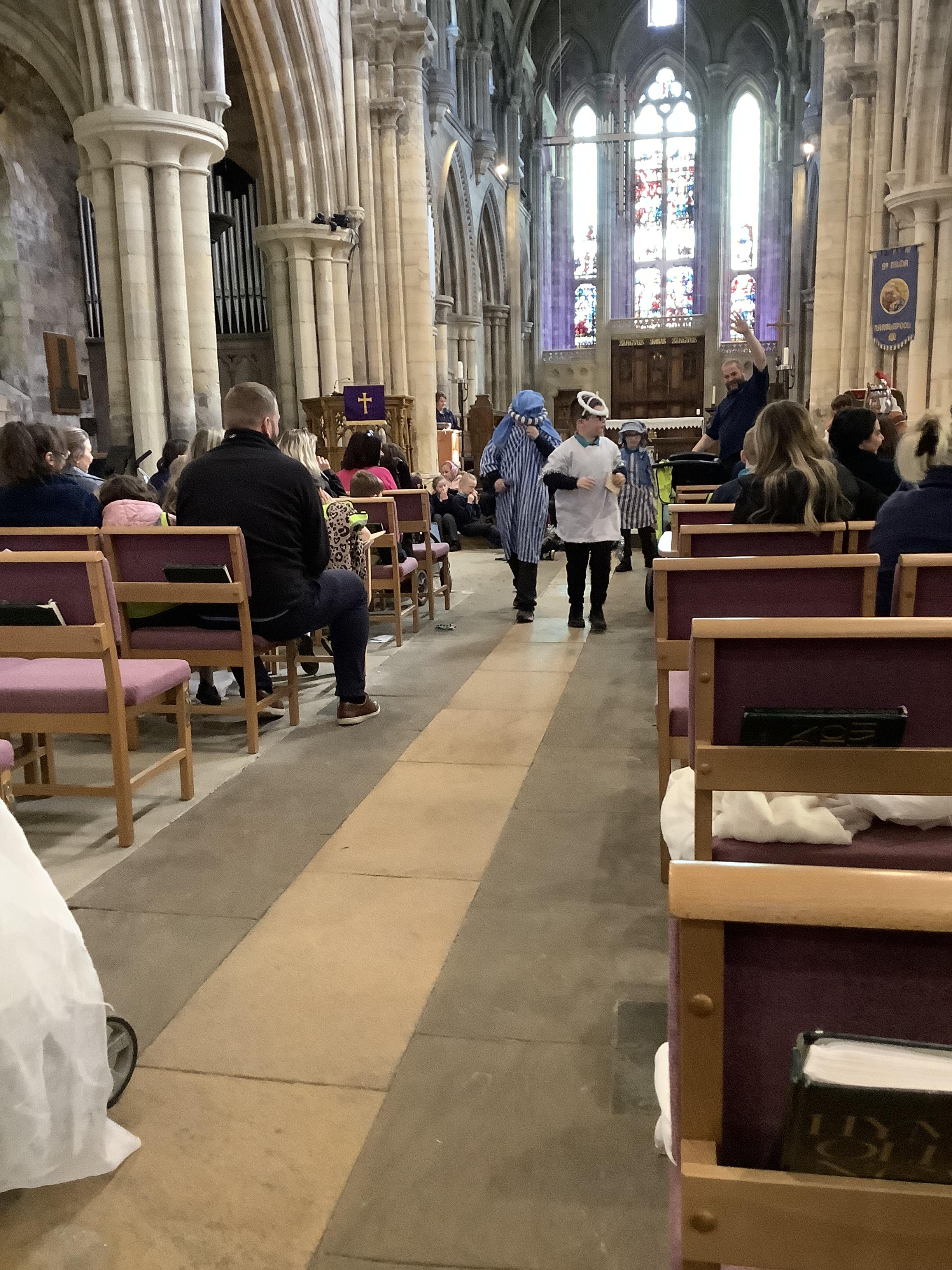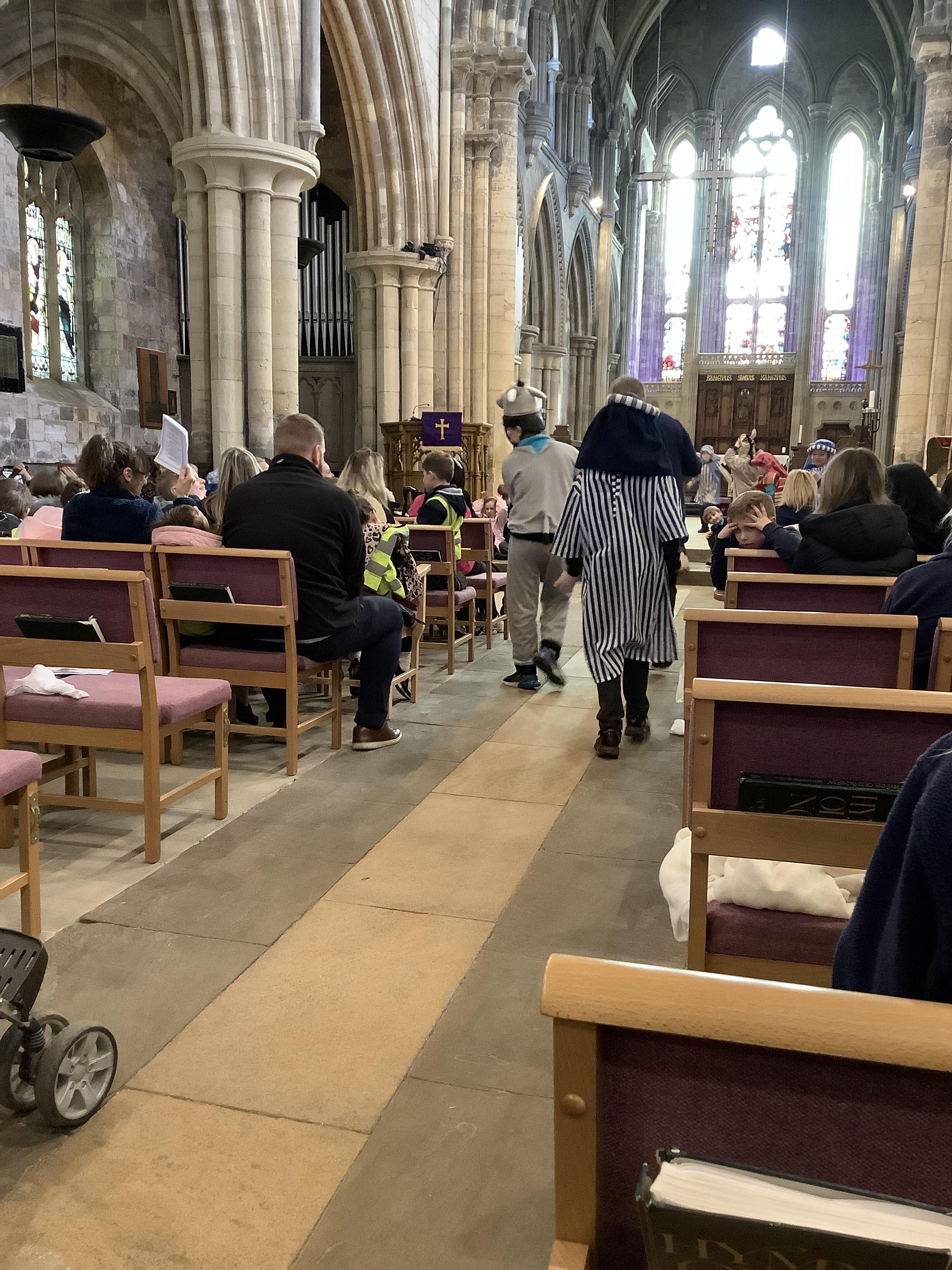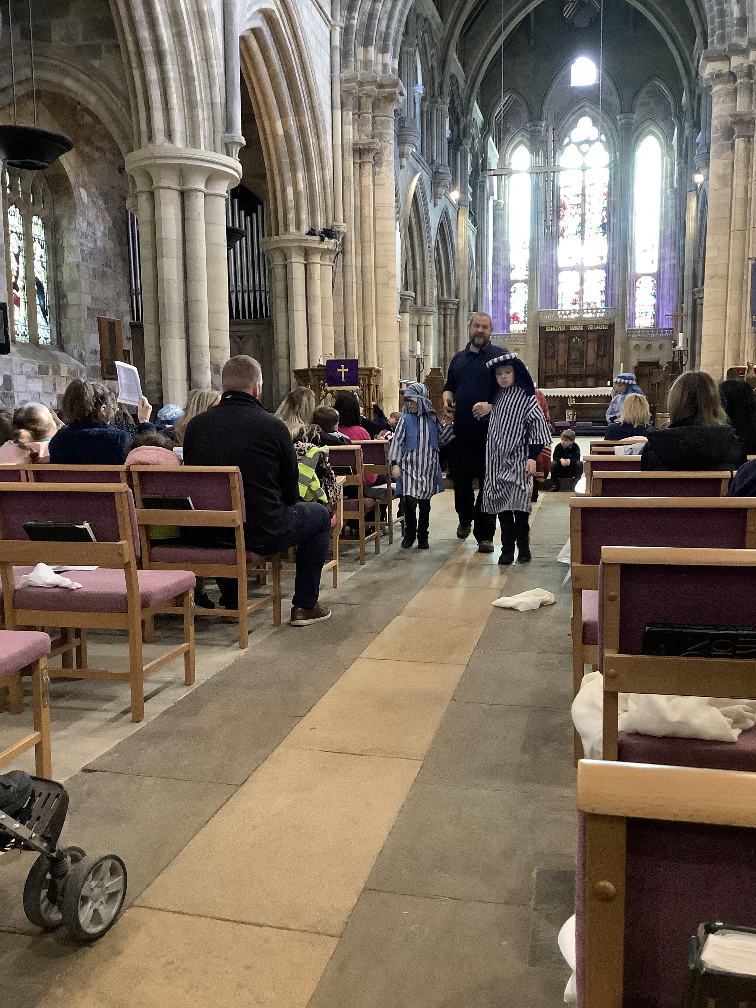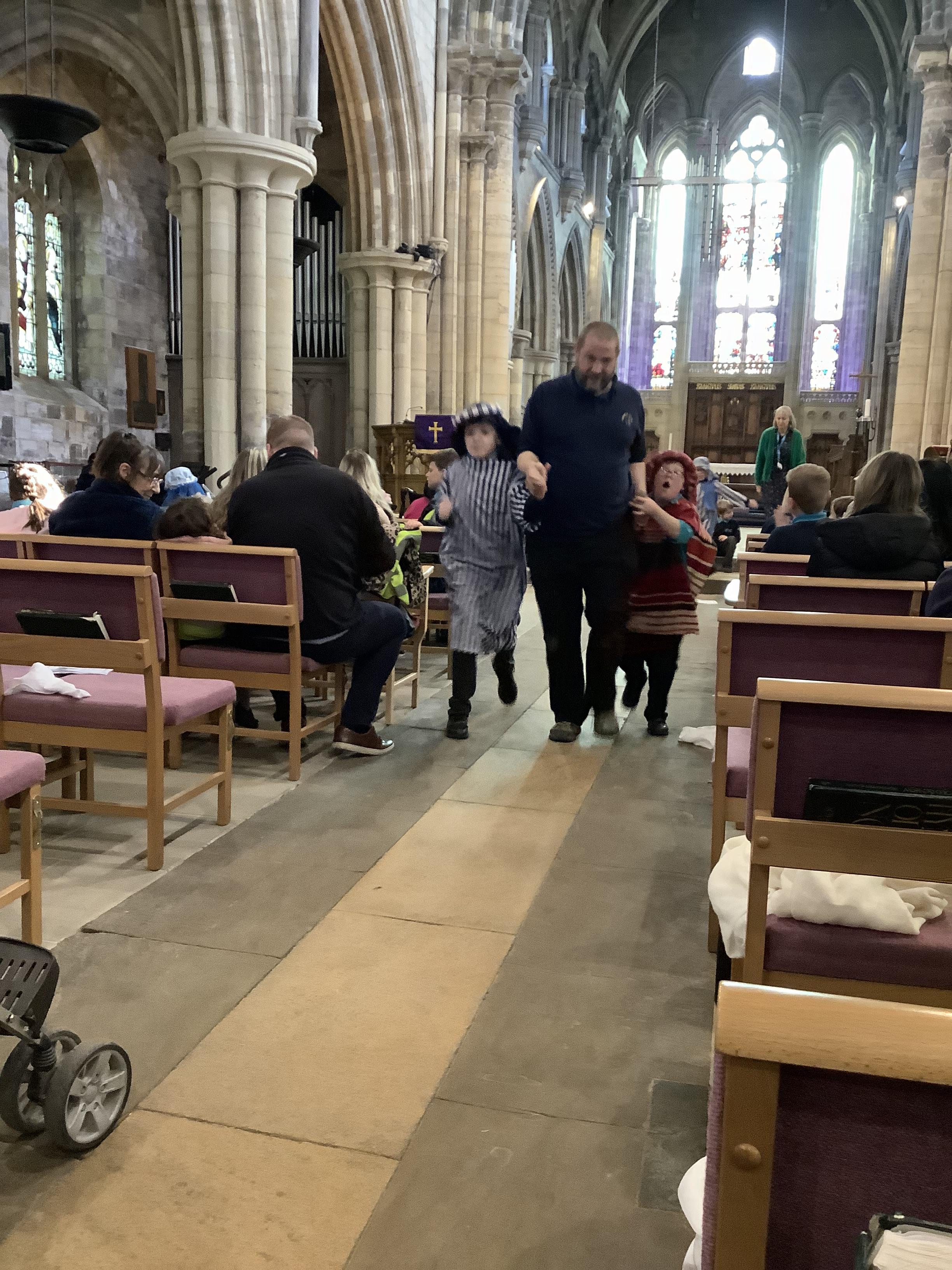 10.04.25 RE: EASTER We visited St Hild's Church today and had our annual Easter Service. Andrew and Jack were the two disciples in the story. All our children were fantastically behaved in church, they loved singing all the Easter songs!