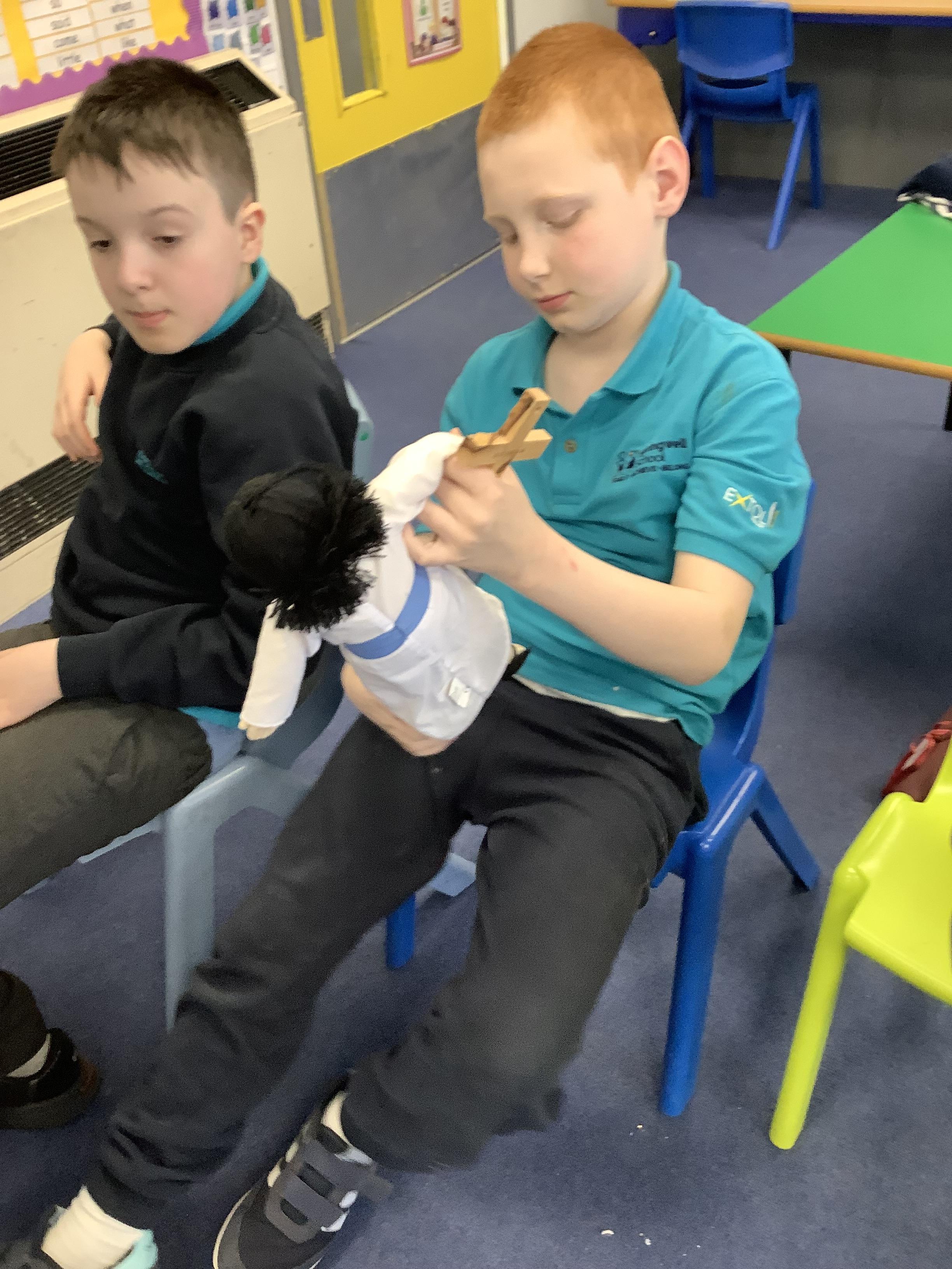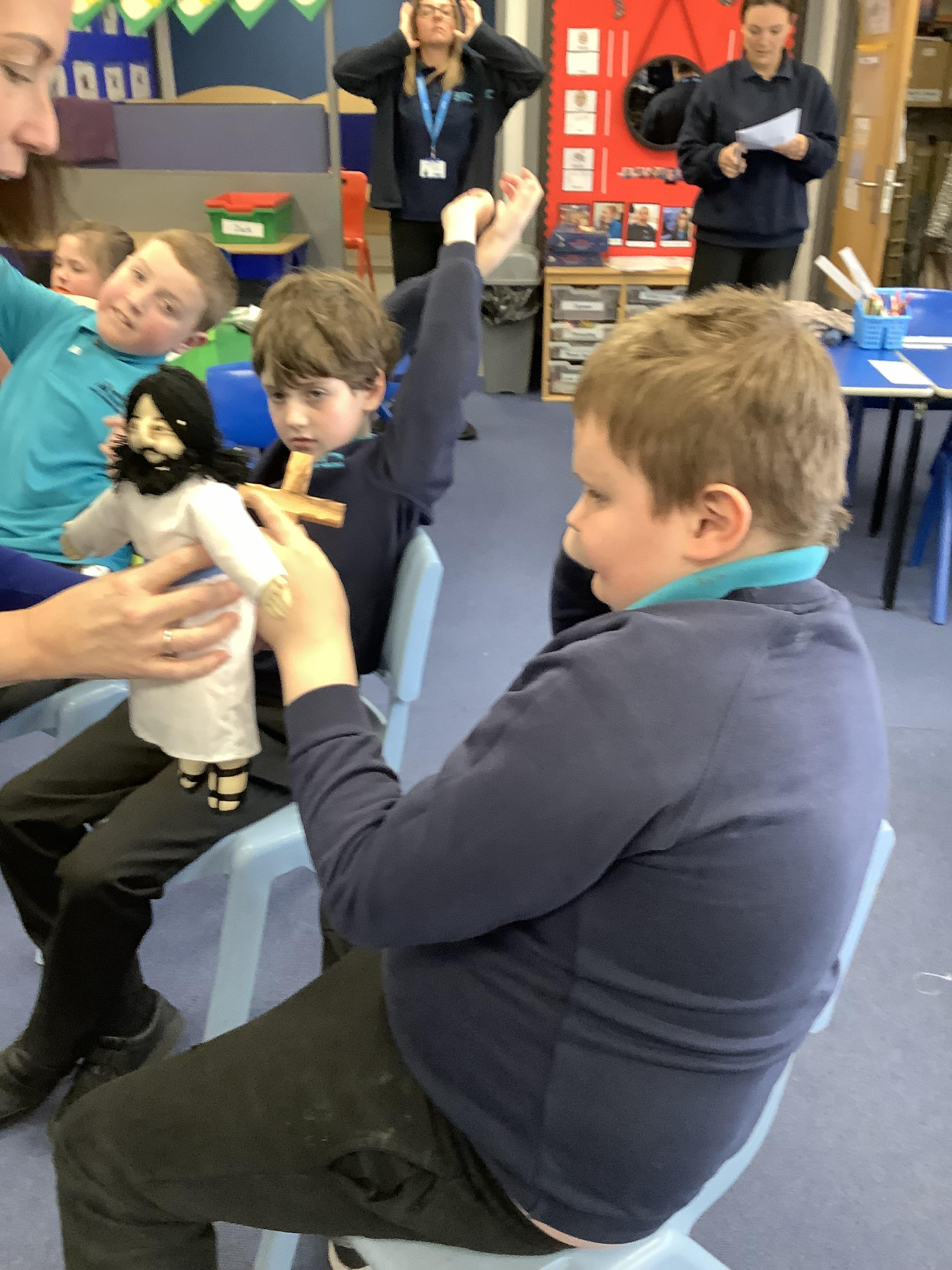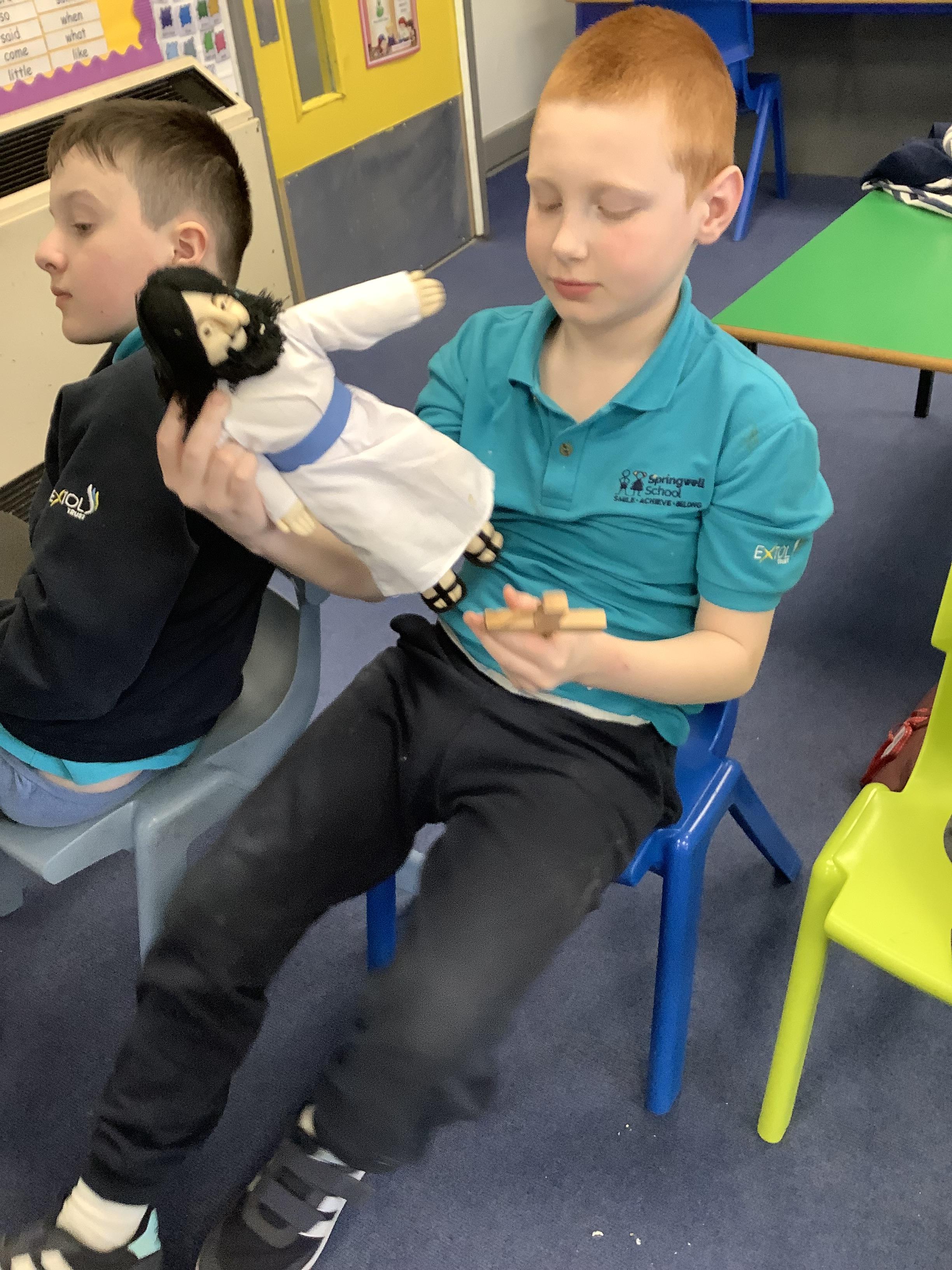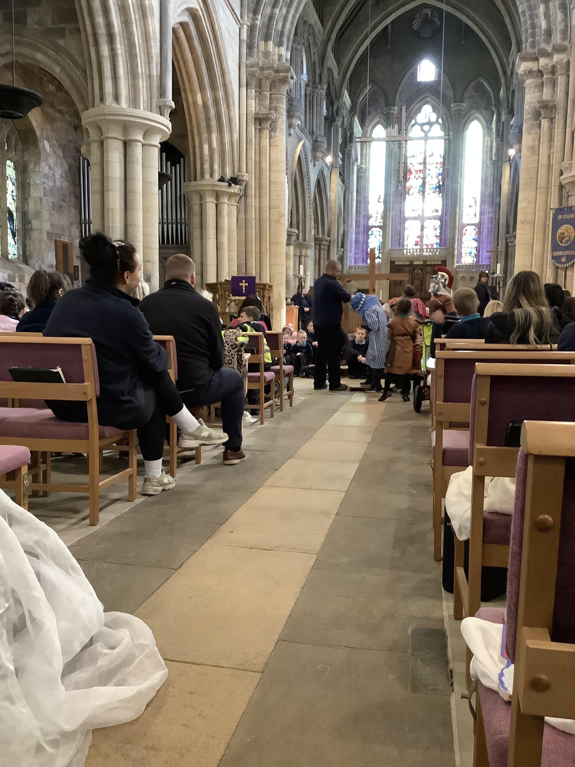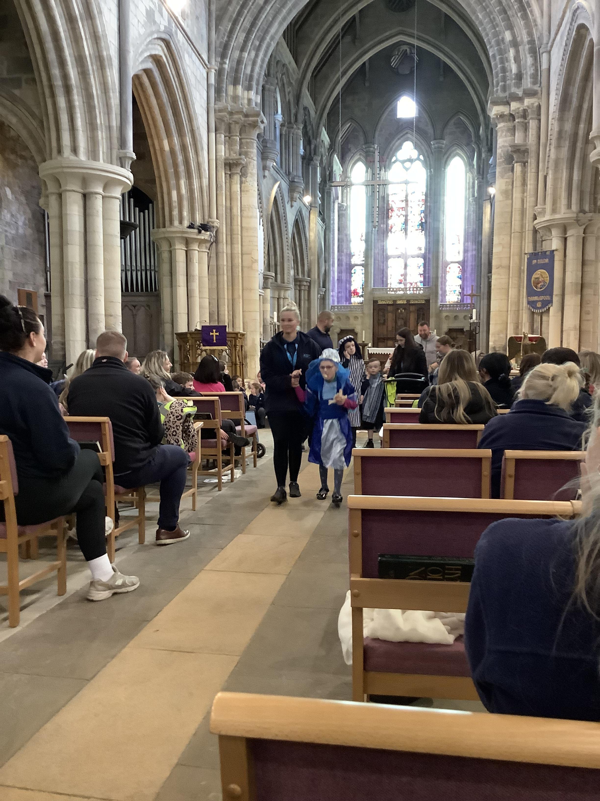 10.04.25 RE: EASTER We visited St Hild's Church today and had our annual Easter Service. Andrew and Jack were the two disciples in the story. All our children were fantastically behaved in church, they loved singing all the Easter songs!