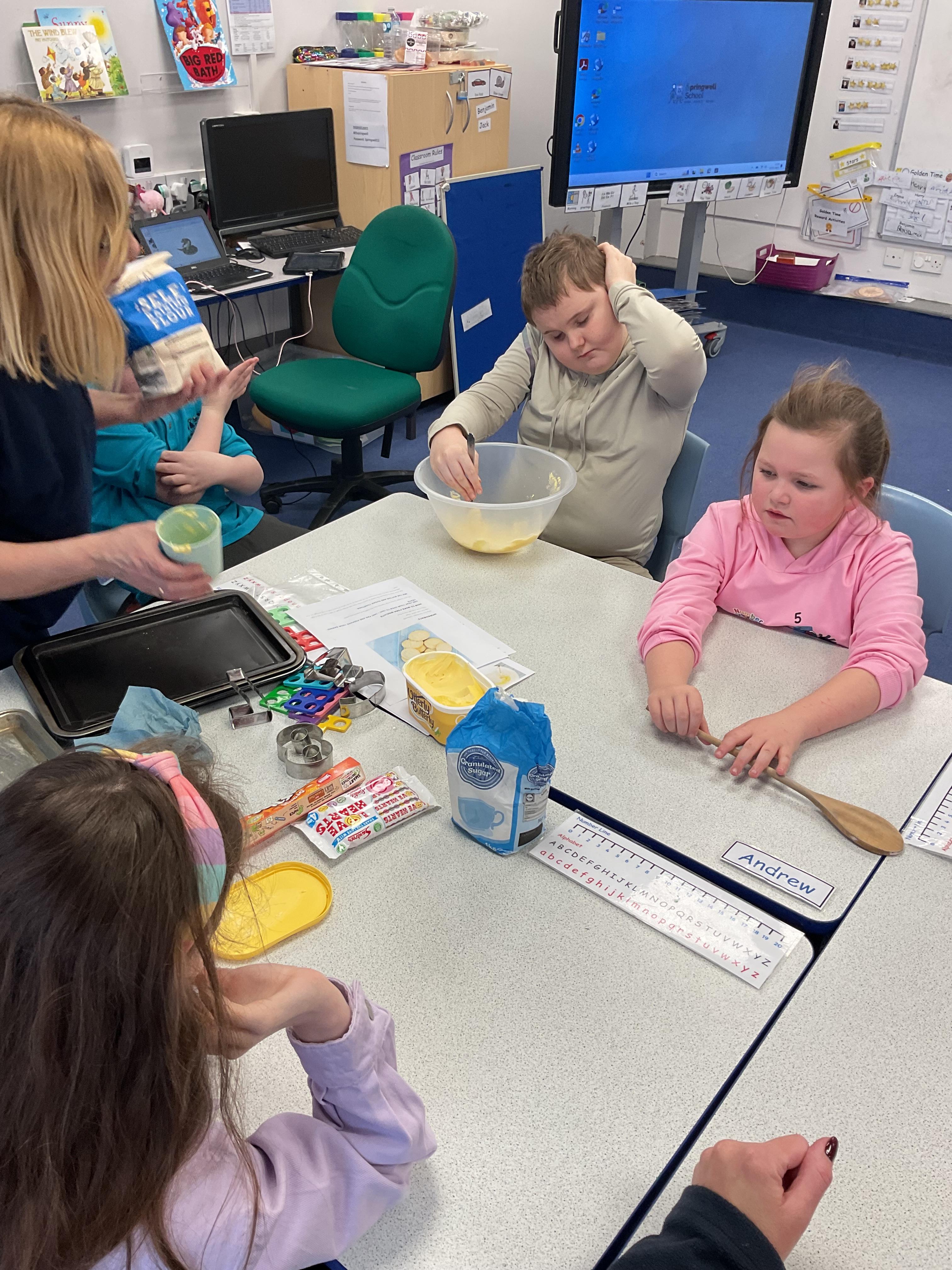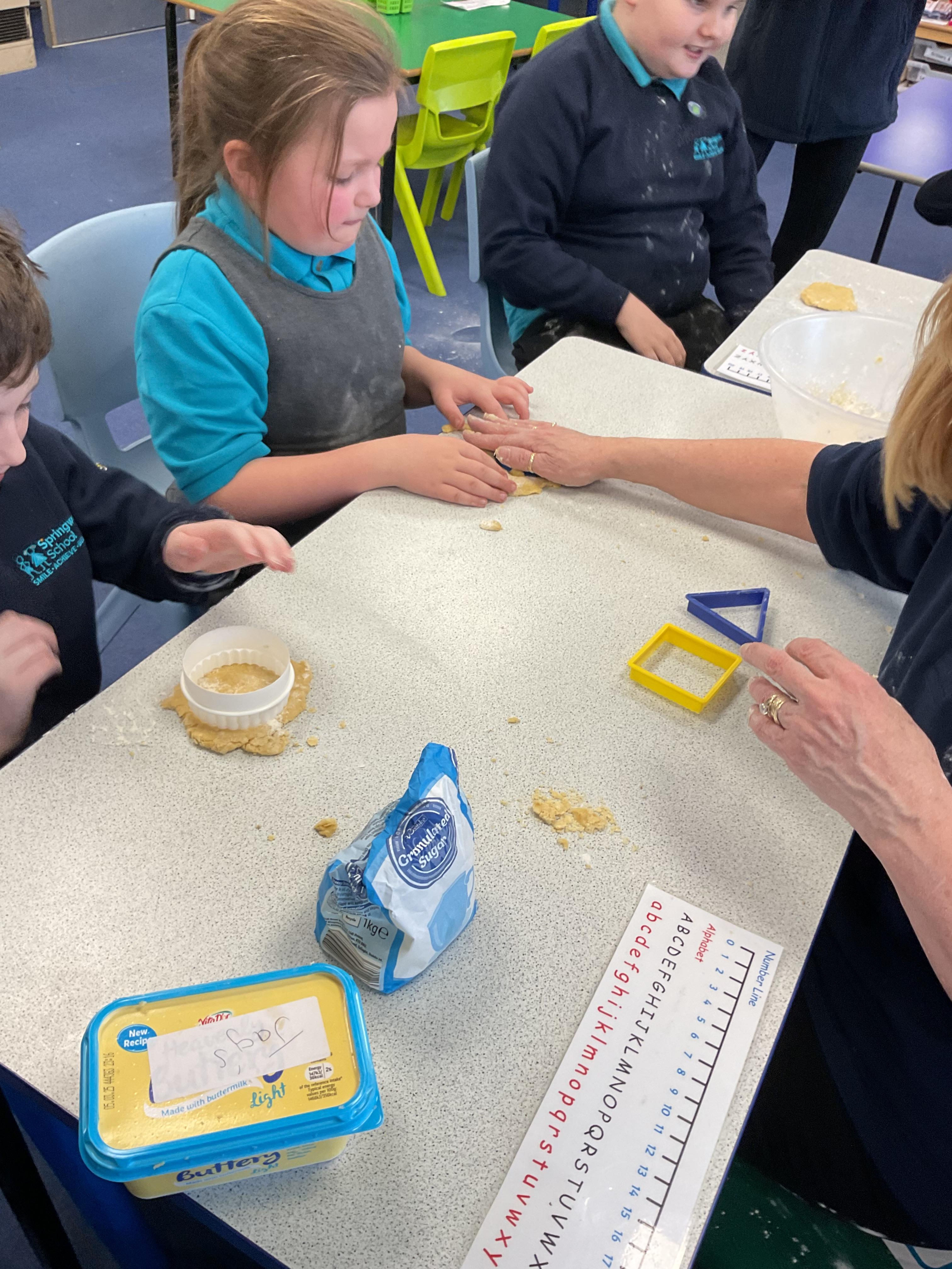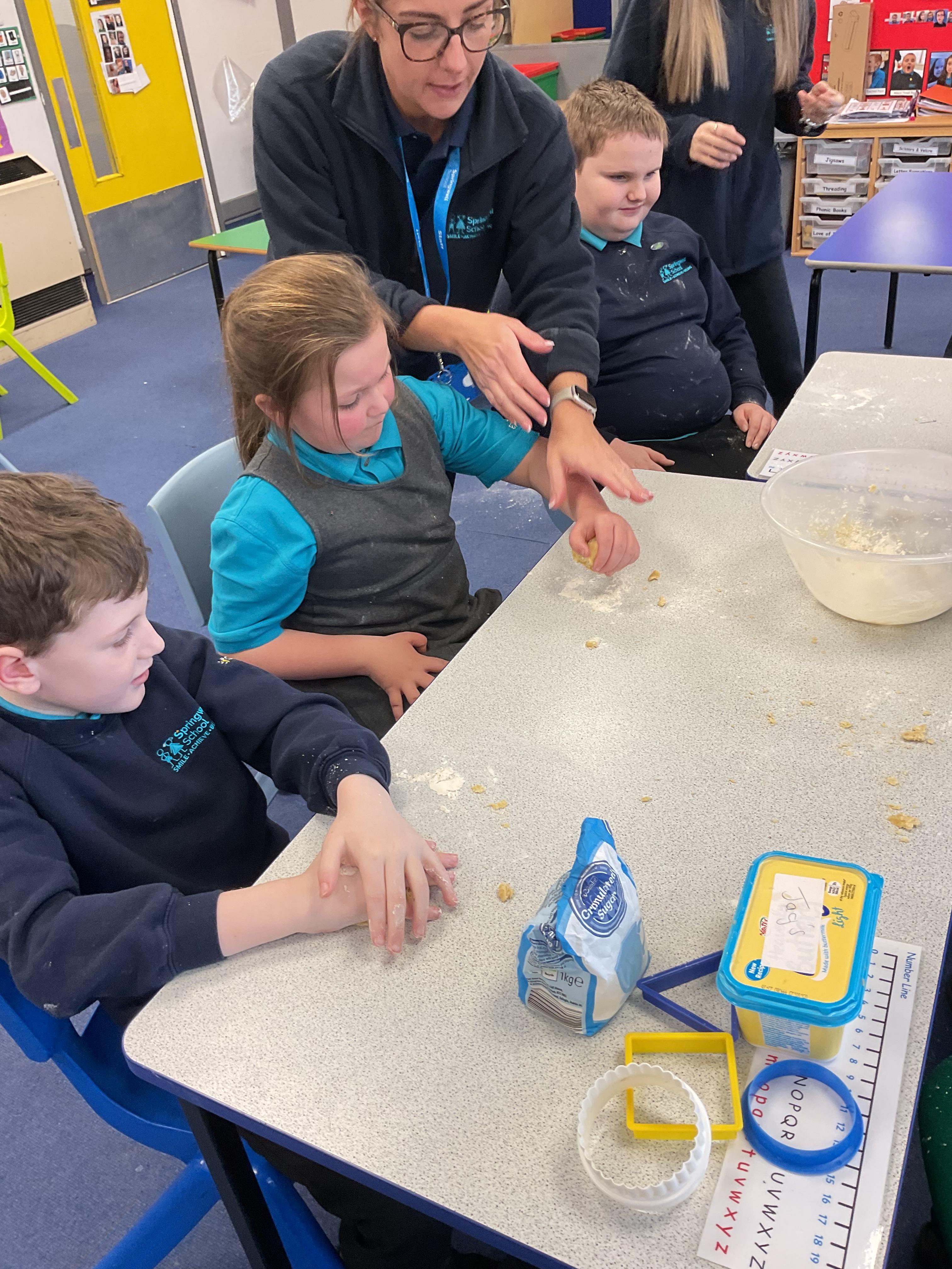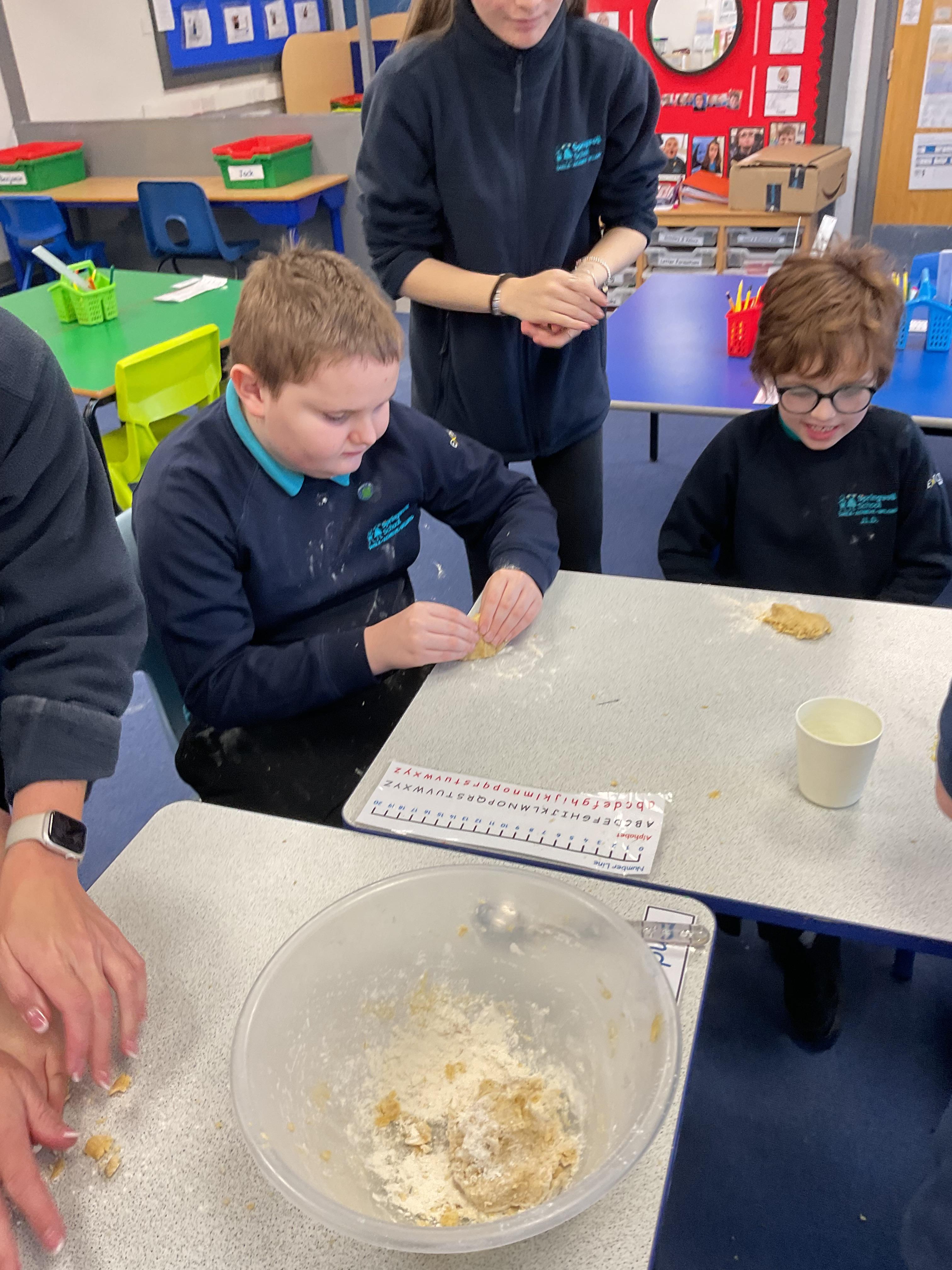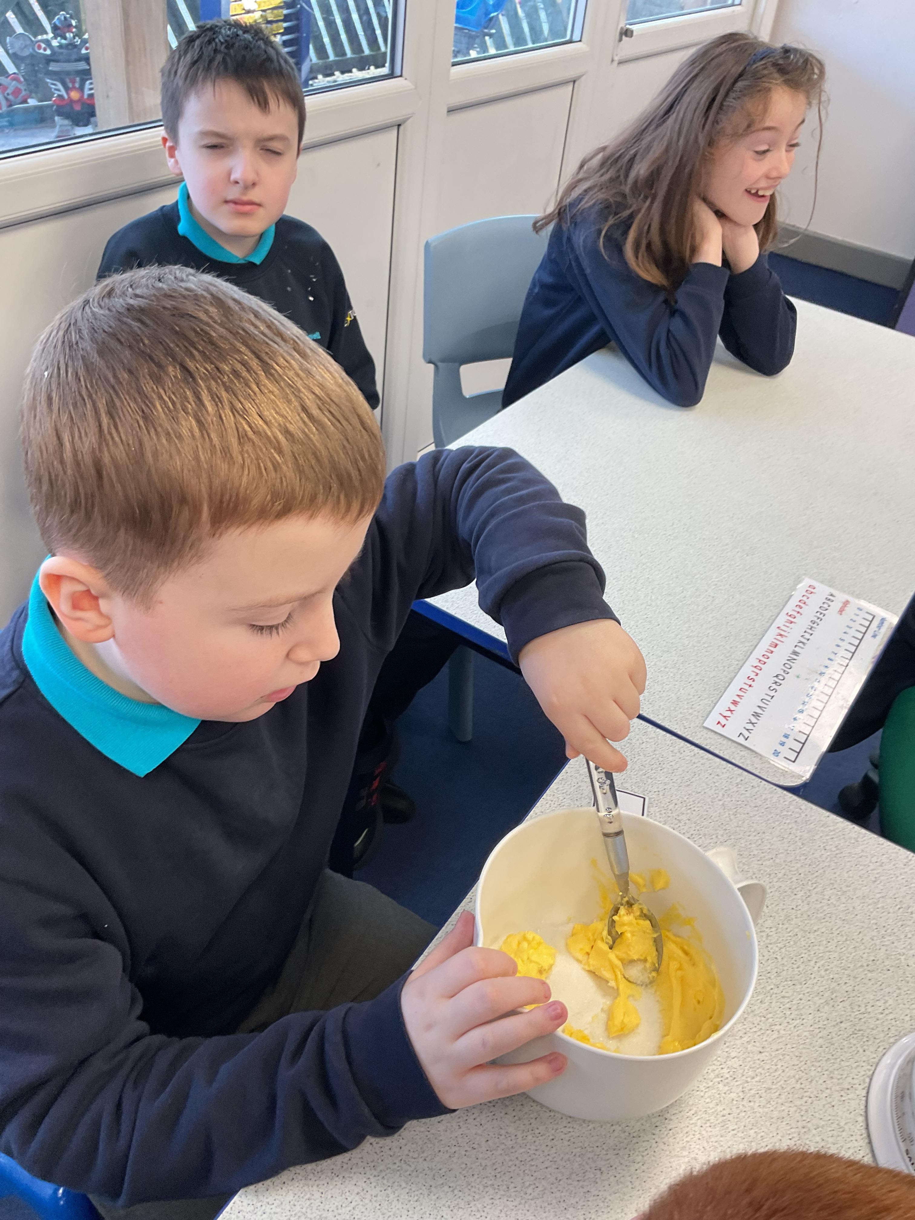 15.01.25 PHSRE through Cookery - The children made shortbread biscuits. They participated in group work and they all were actively involved in the development of the task. They took turns with others with minimal adult support and they could use a spoon to mix up the ingredients in the bowl.