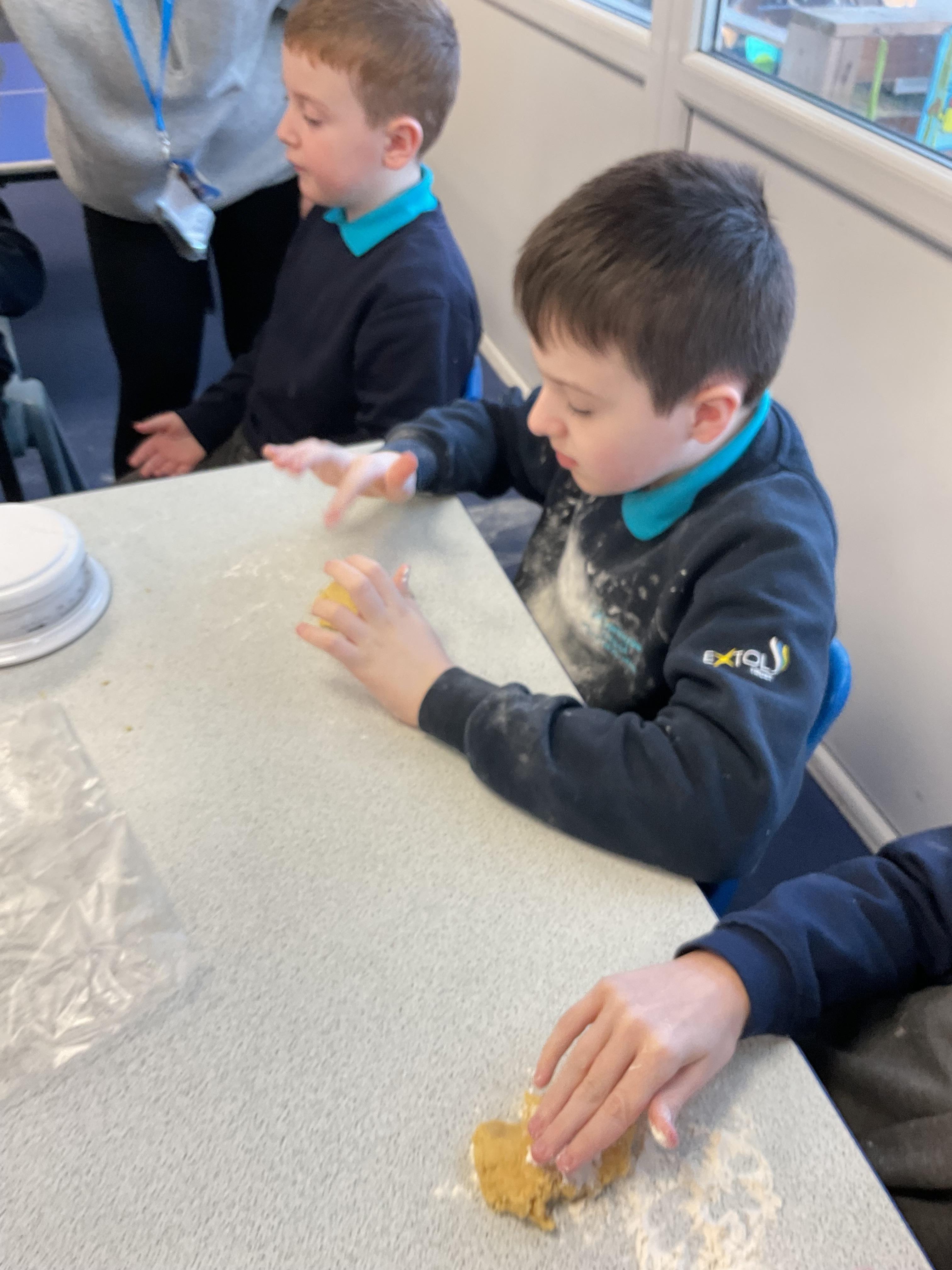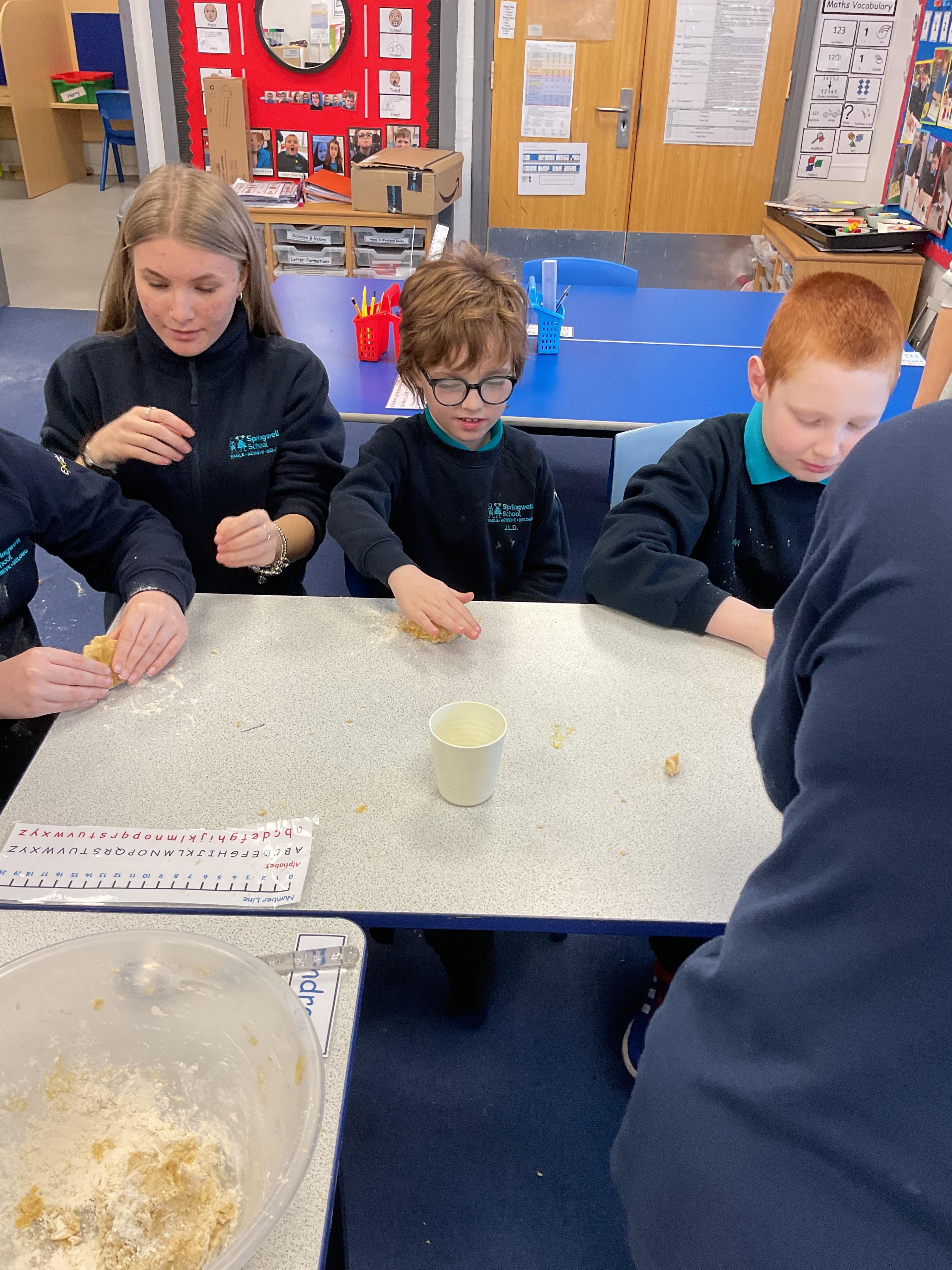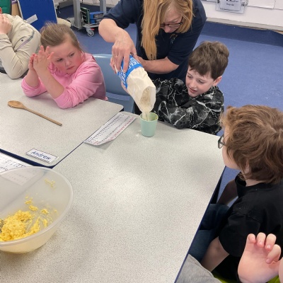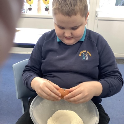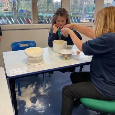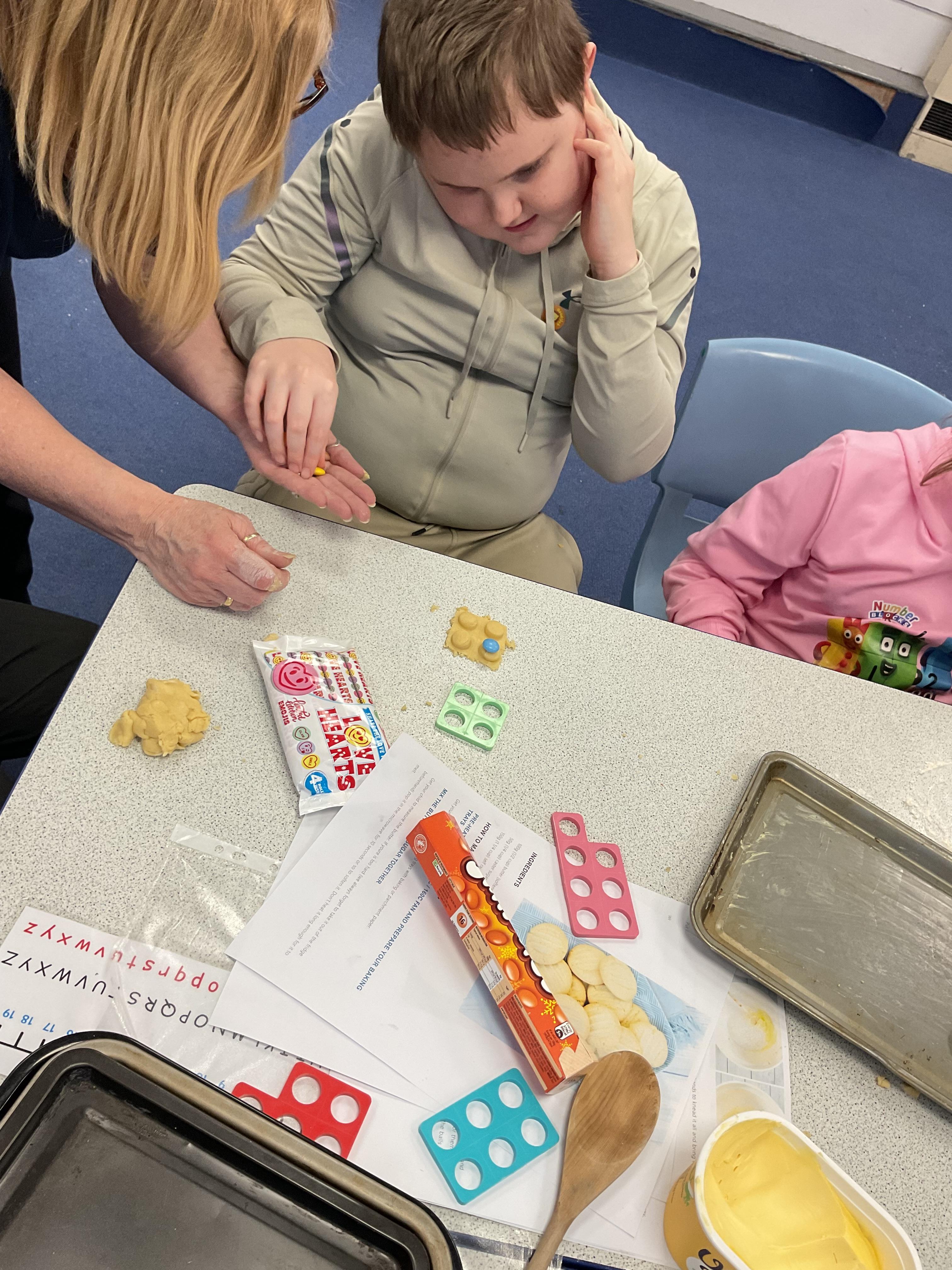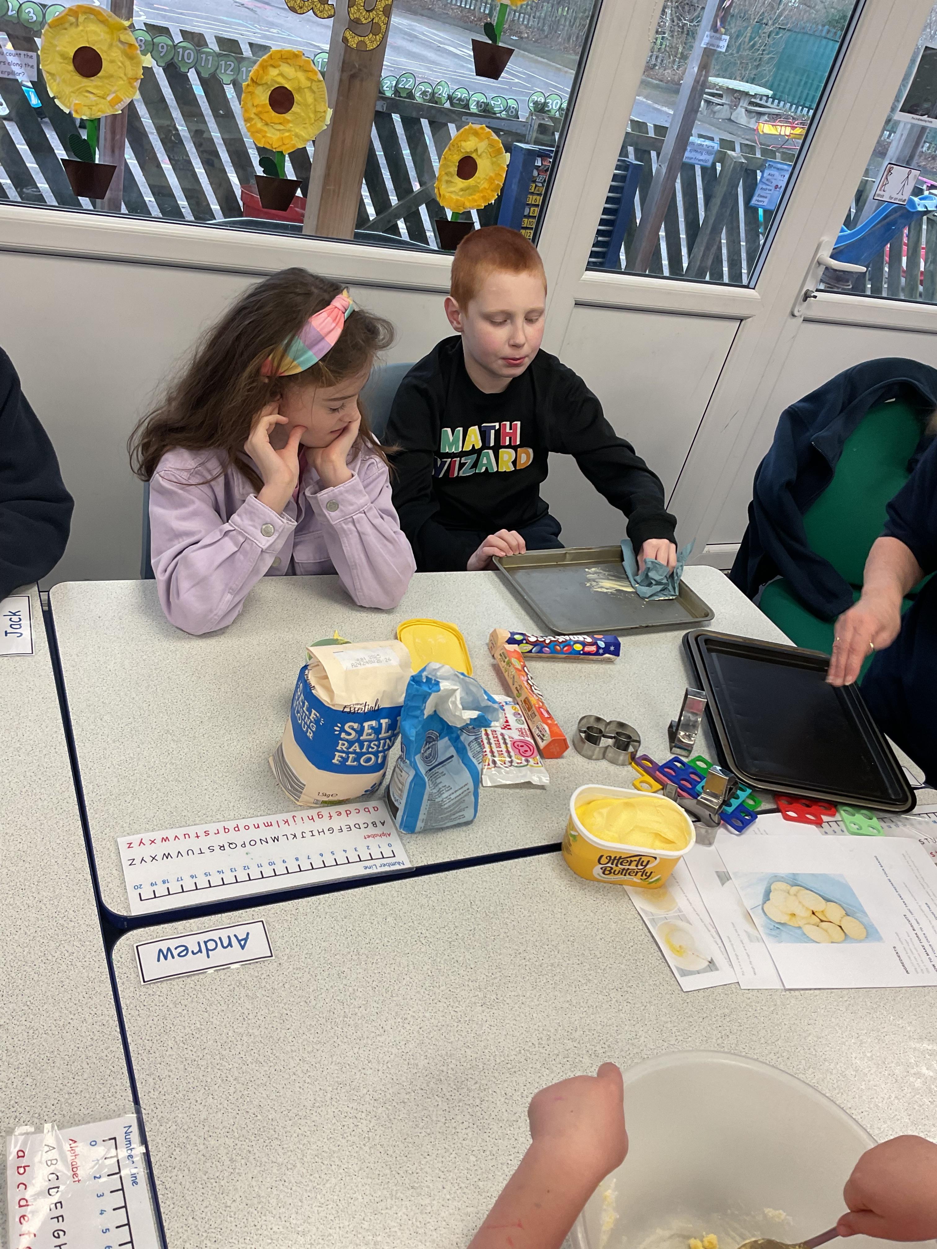 15.01.25 PHSRE through Cookery - The children made shortbread biscuits. They participated in group work and they all were actively involved in the development of the task. They took turns with others with minimal adult support and they could use a spoon to mix up the ingredients in the bowl.
