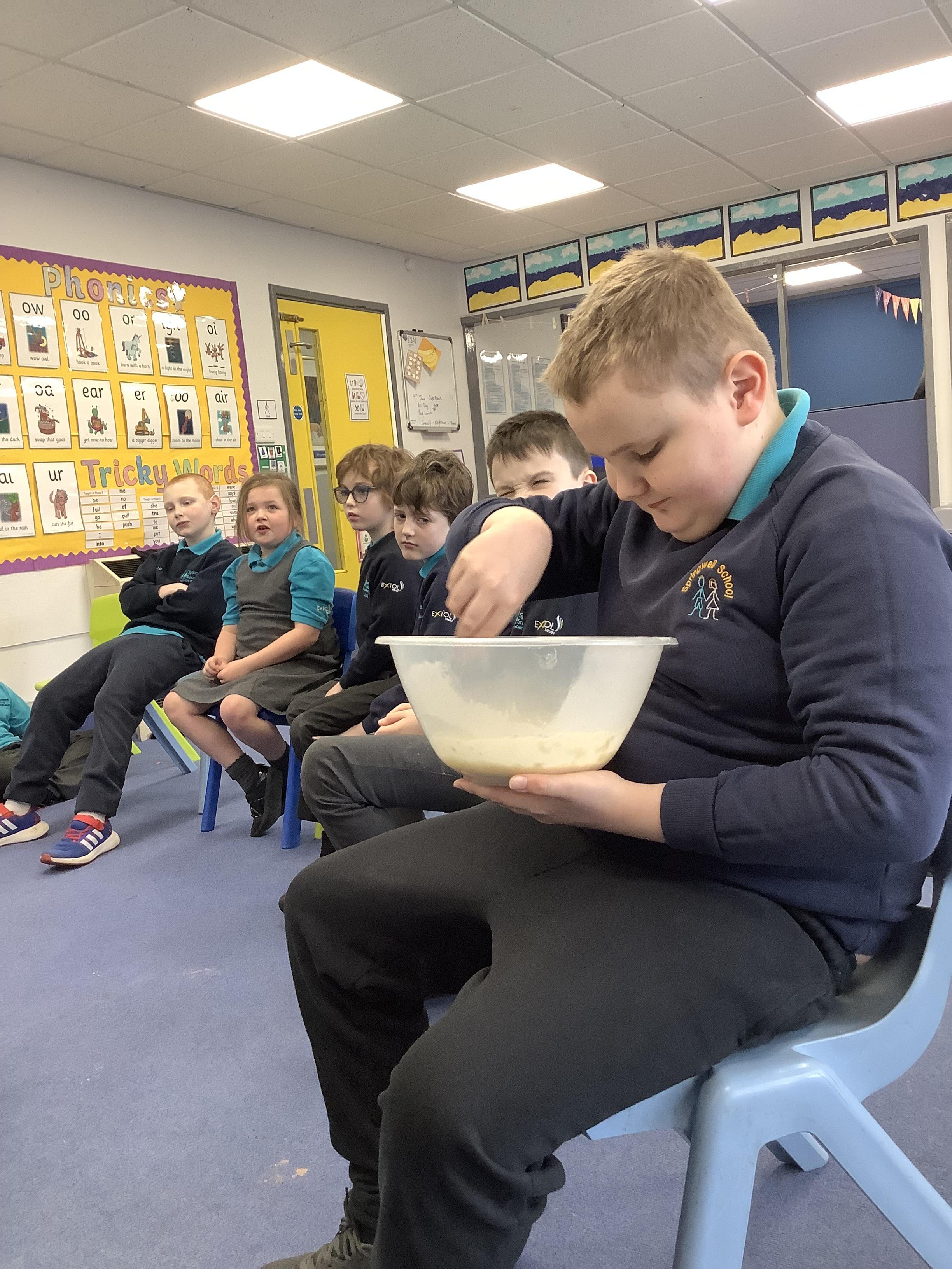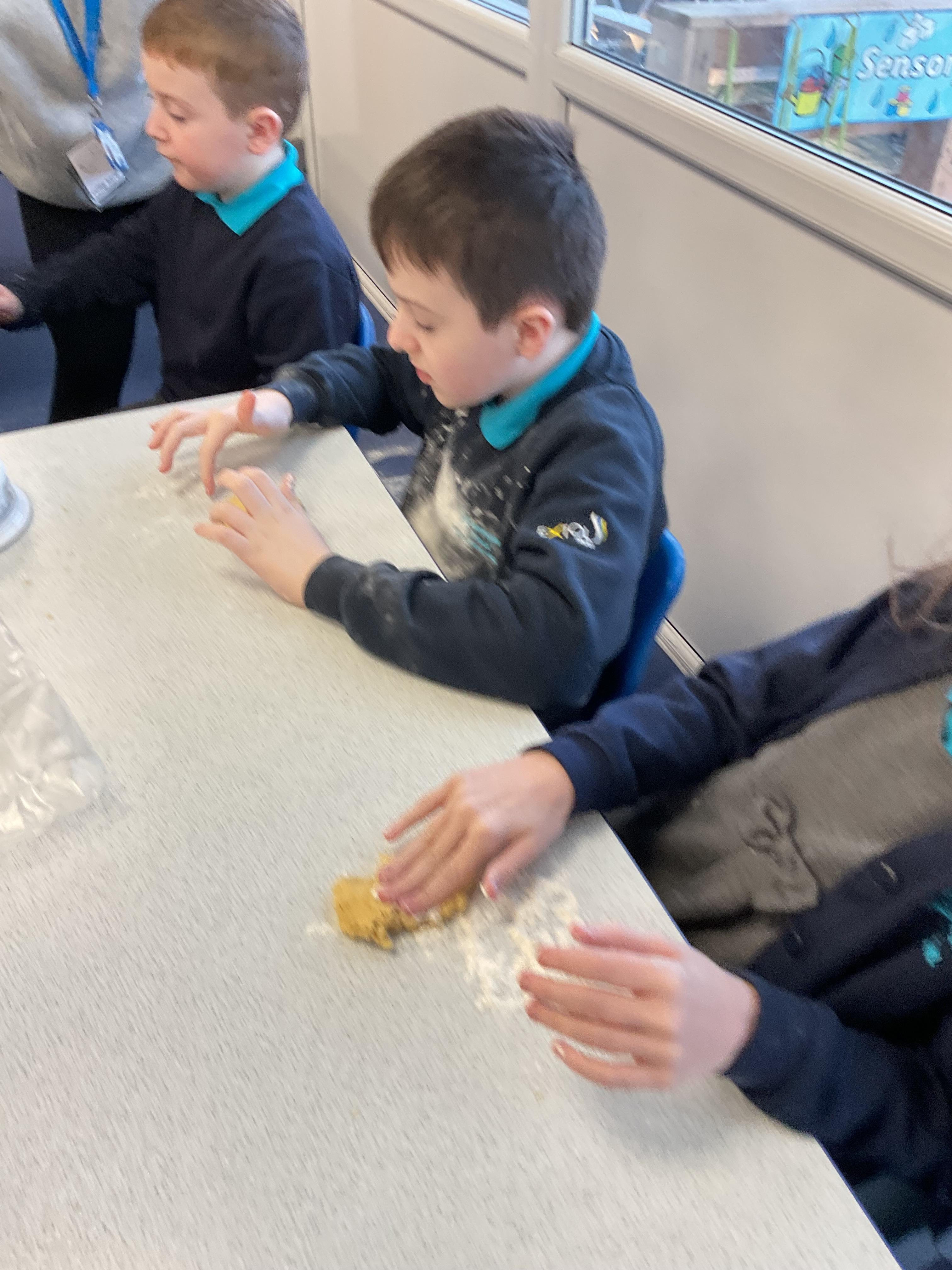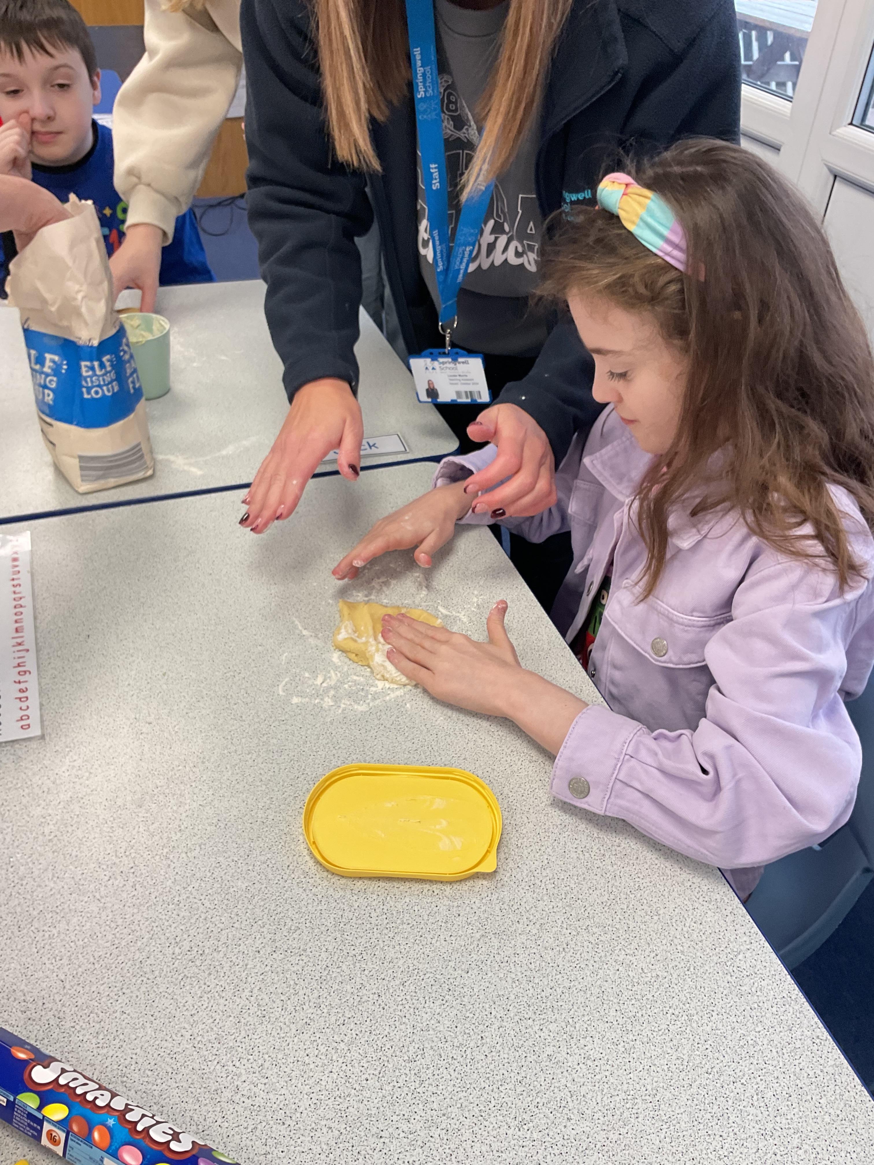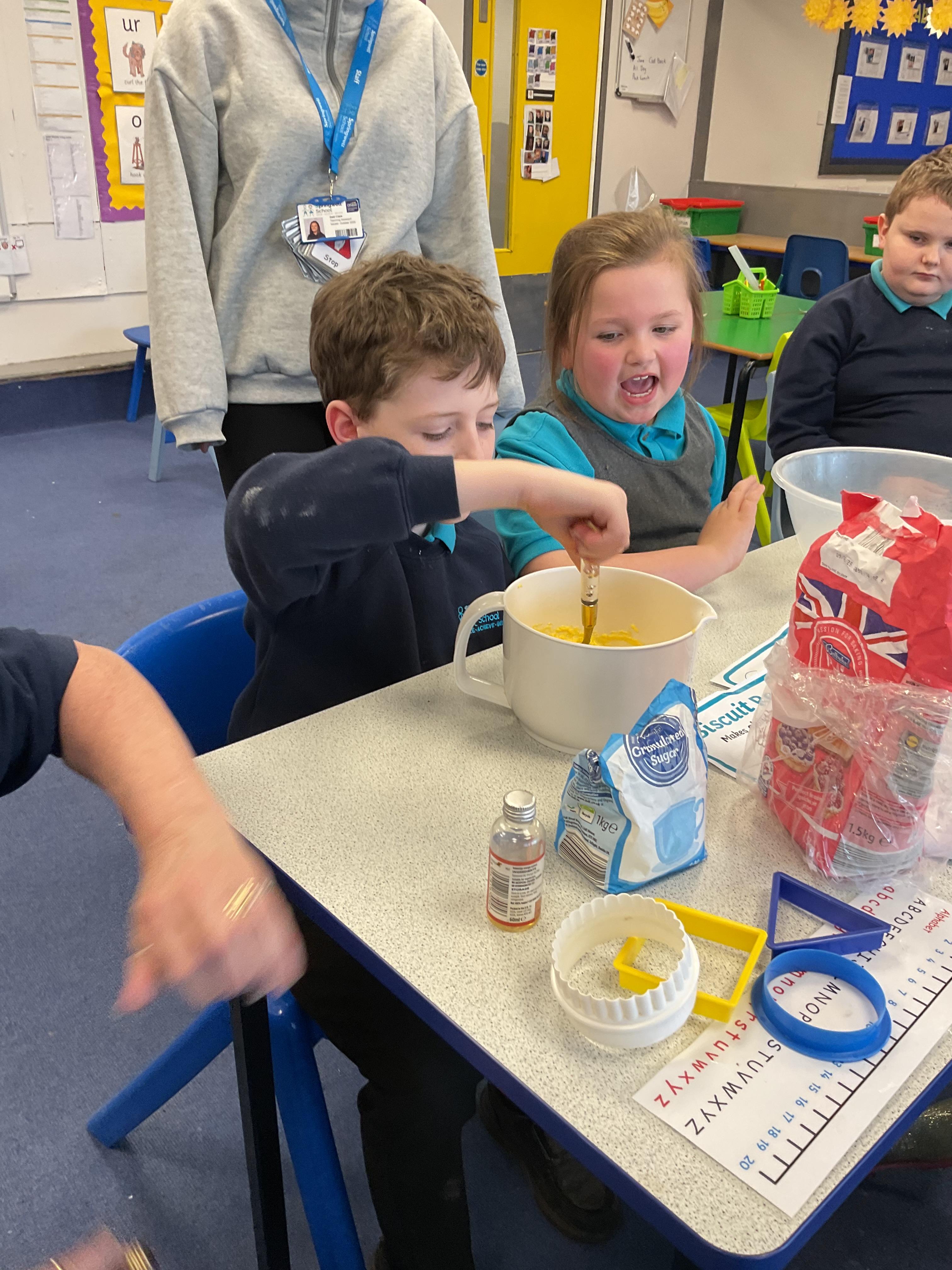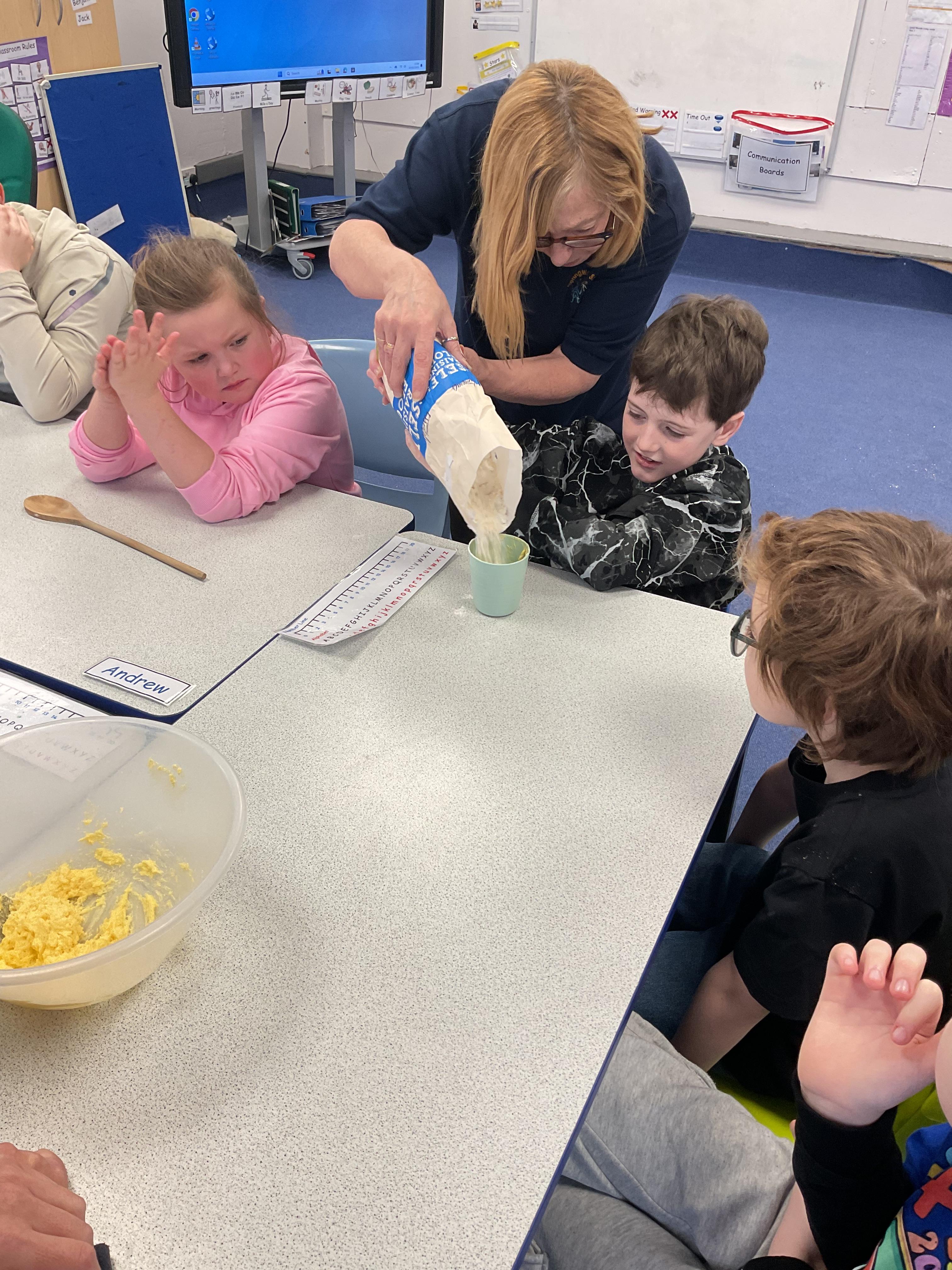 15.01.25 PHSRE through Cookery - The children made shortbread biscuits. They participated in group work and they all were actively involved in the development of the task. They took turns with others with minimal adult support and they could use a spoon to mix up the ingredients in the bowl.