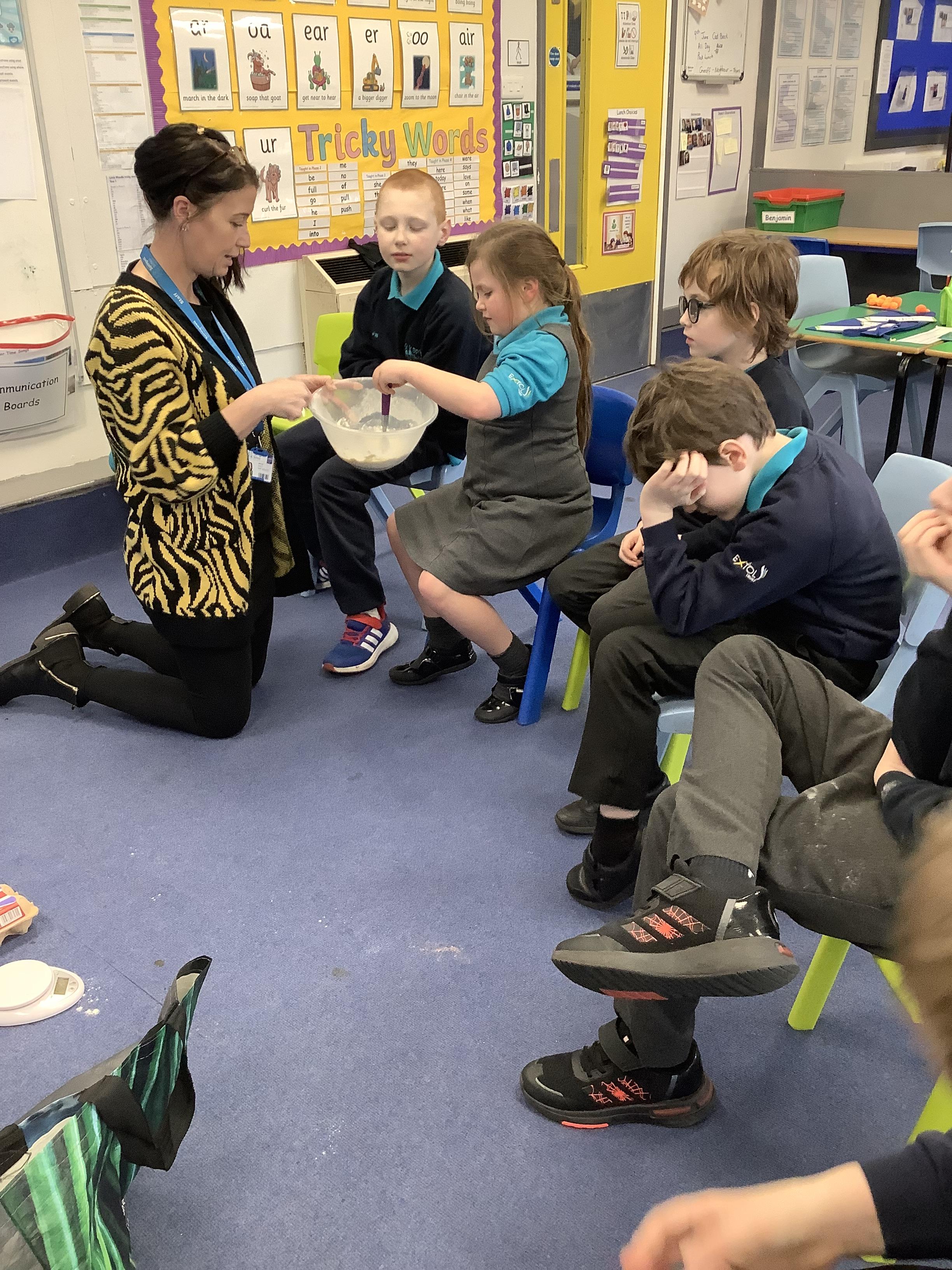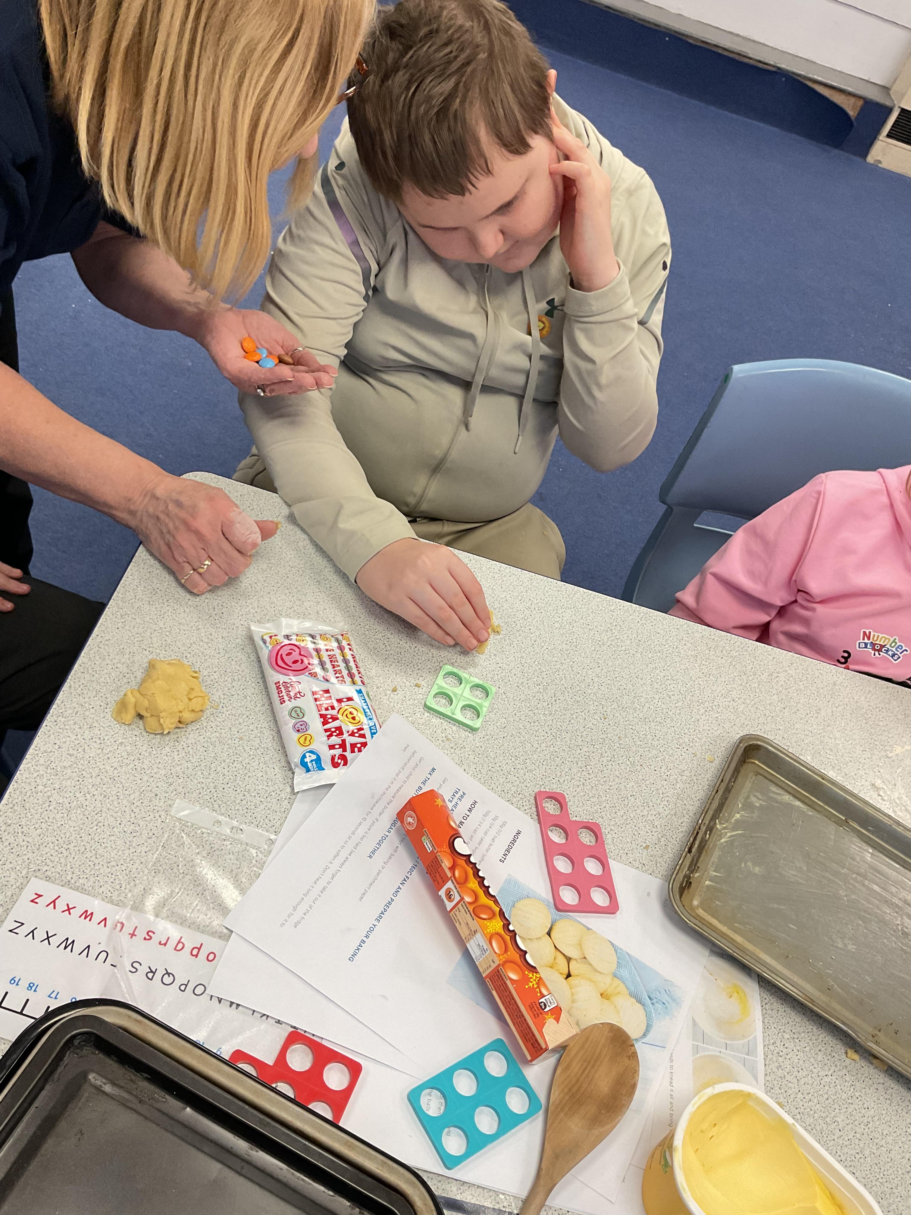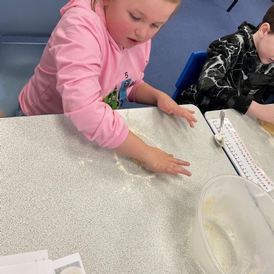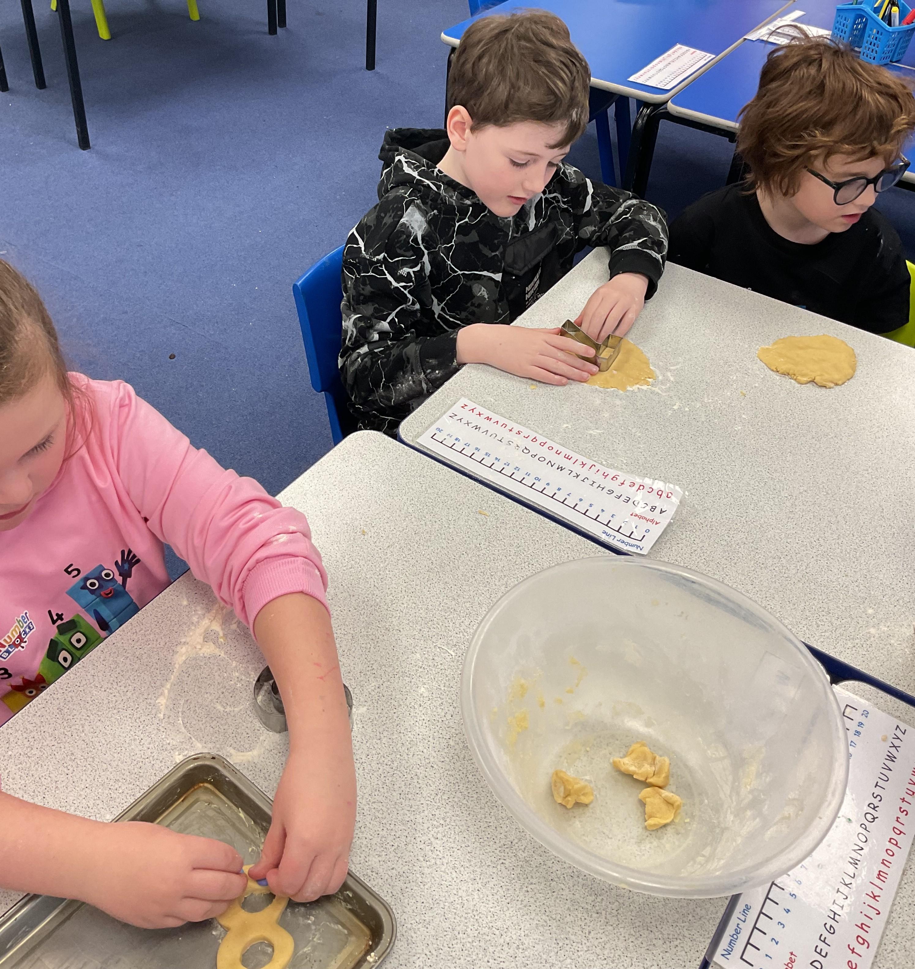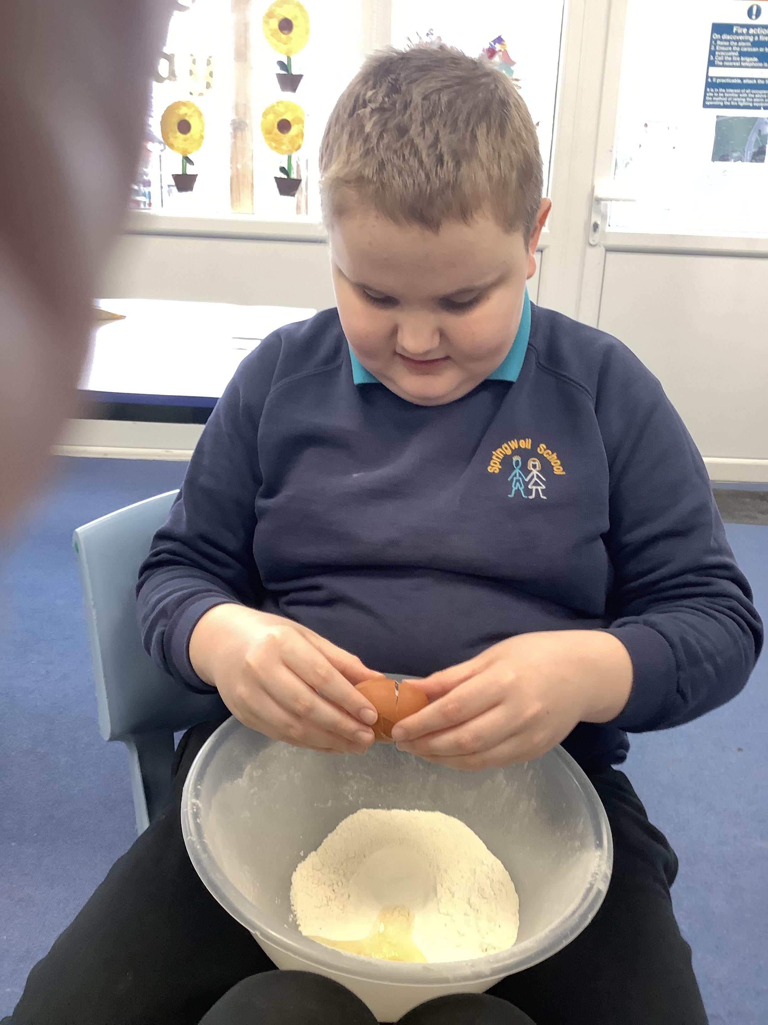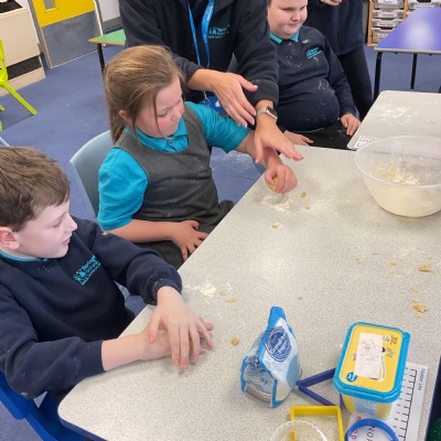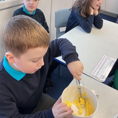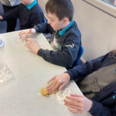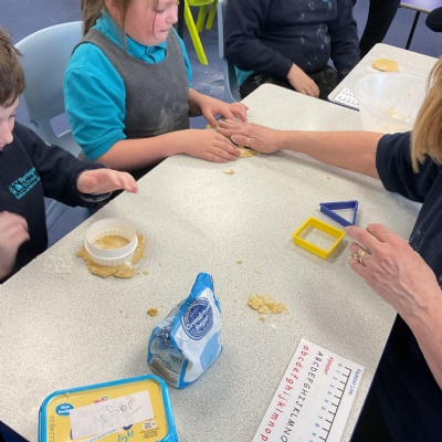 15.01.25 PHSRE through Cookery - The children made shortbread biscuits. They participated in group work and they all were actively involved in the development of the task. They took turns with others with minimal adult support and they could use a spoon to mix up the ingredients in the bowl.