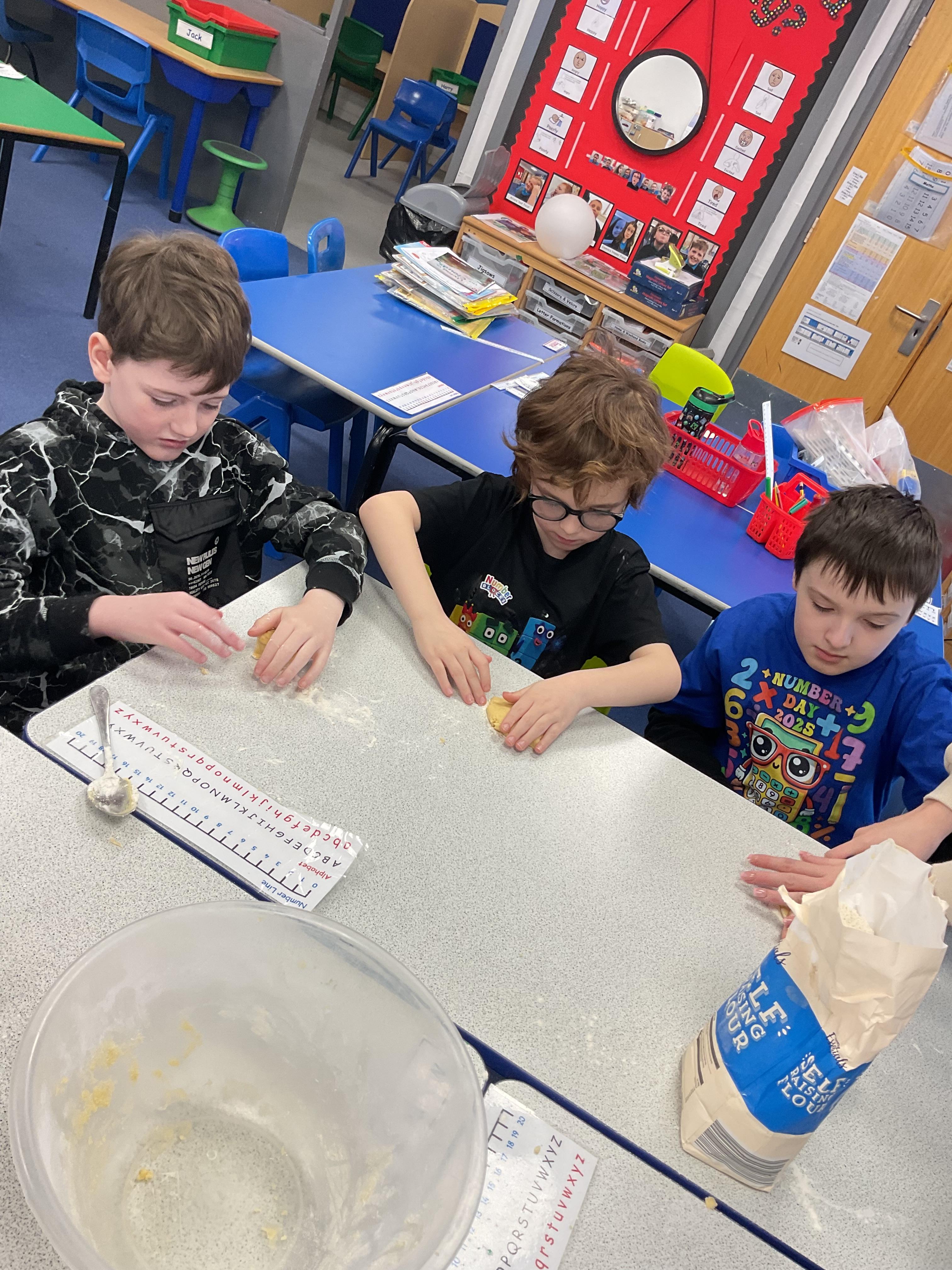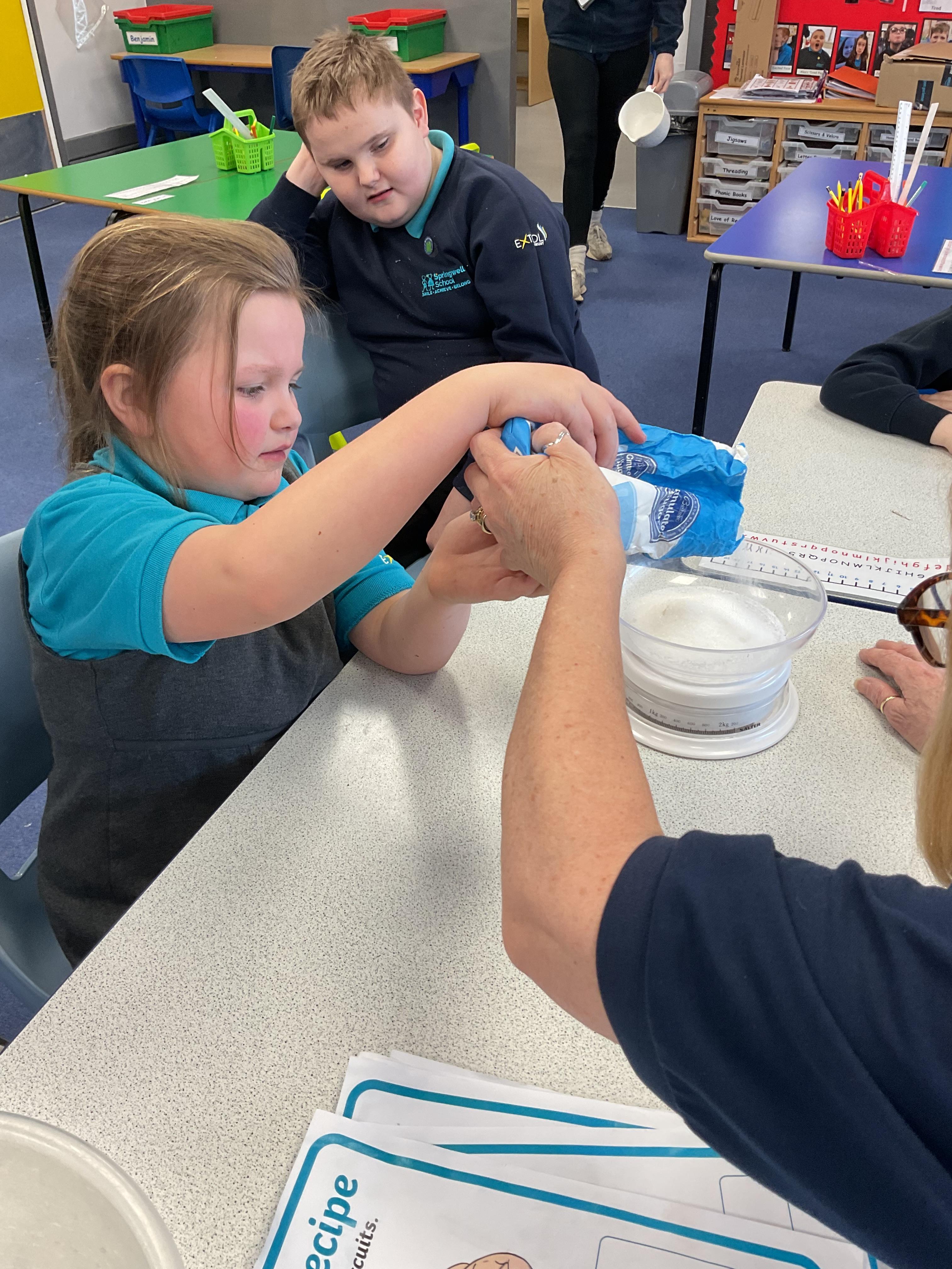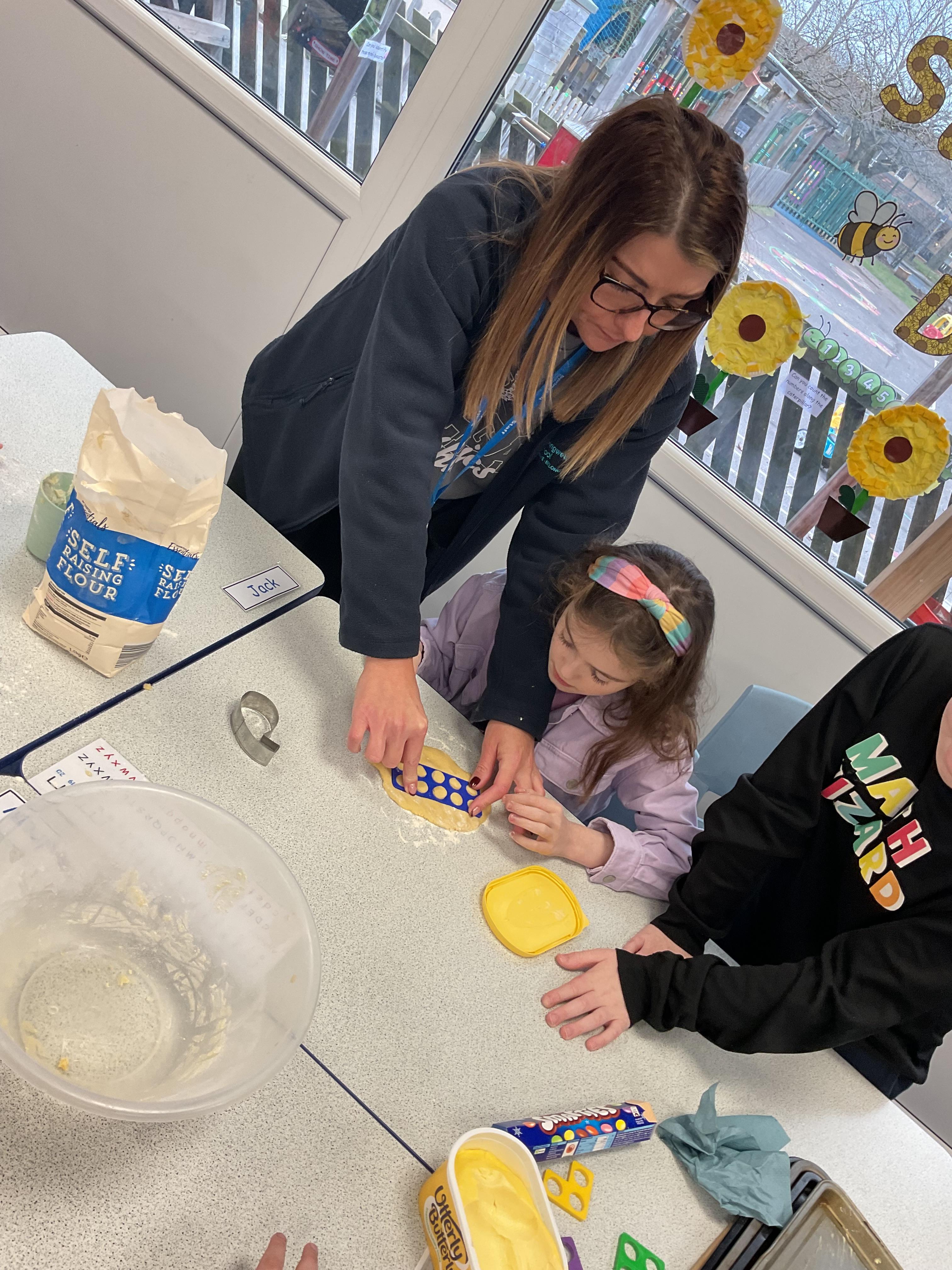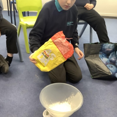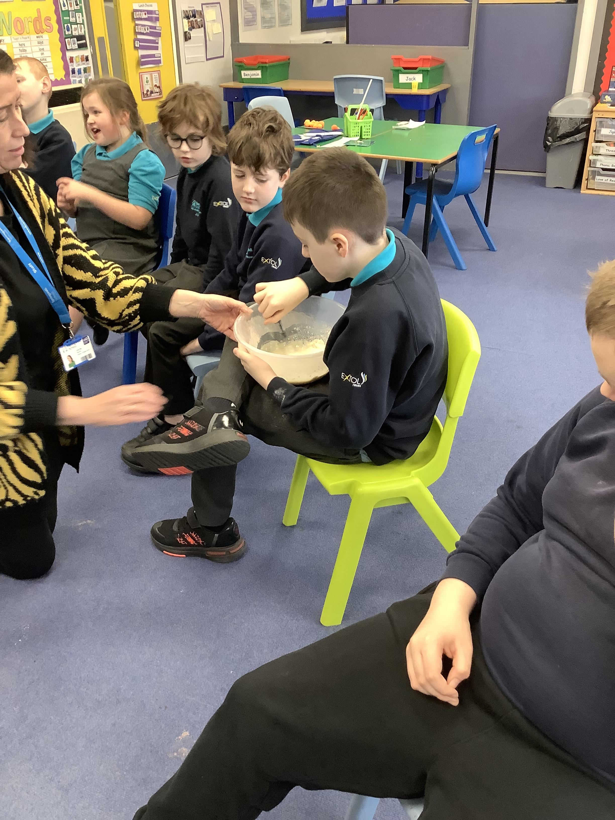 15.01.25 PHSRE through Cookery - The children made shortbread biscuits. They participated in group work and they all were actively involved in the development of the task. They took turns with others with minimal adult support and they could use a spoon to mix up the ingredients in the bowl.