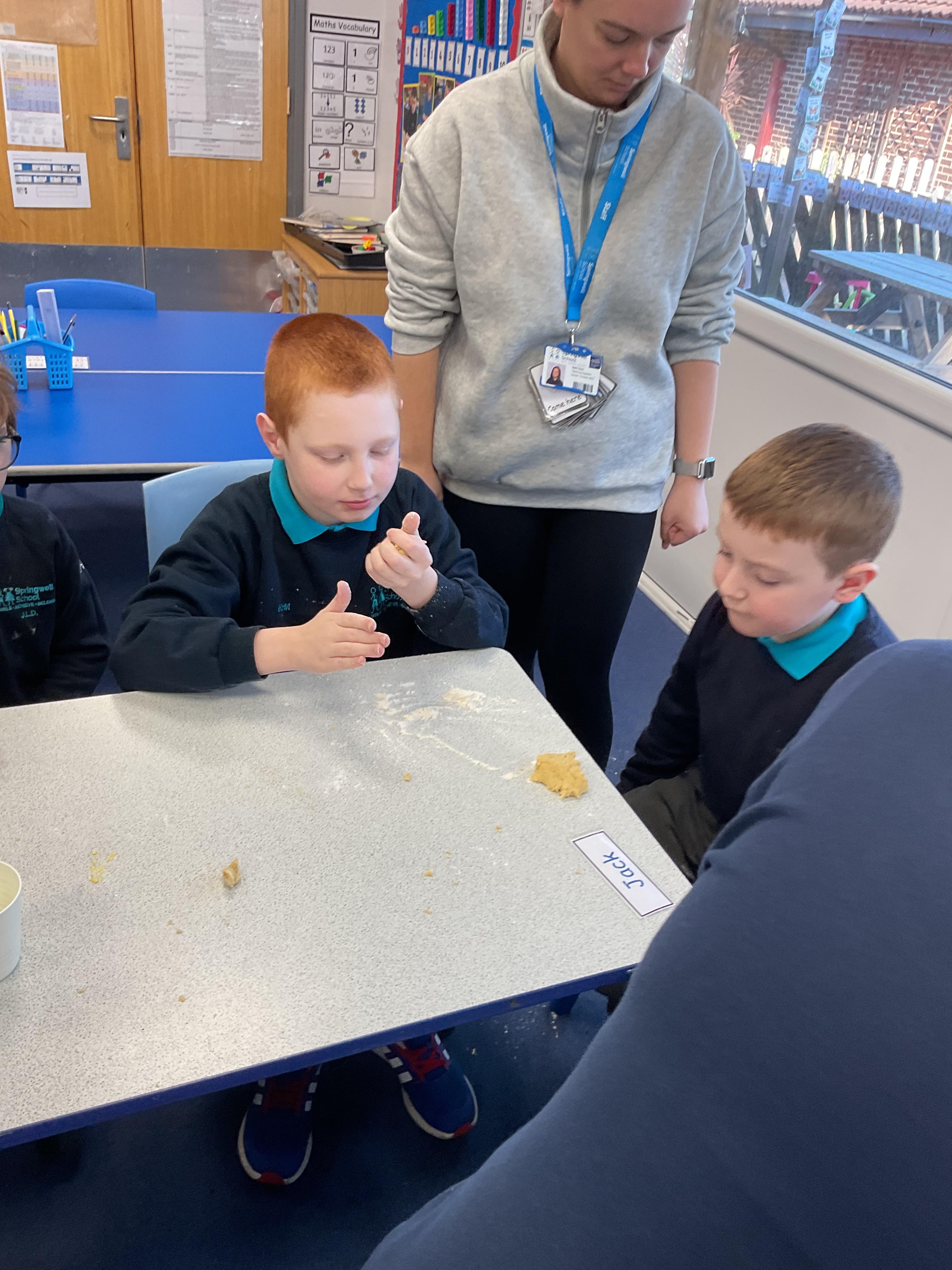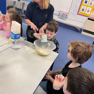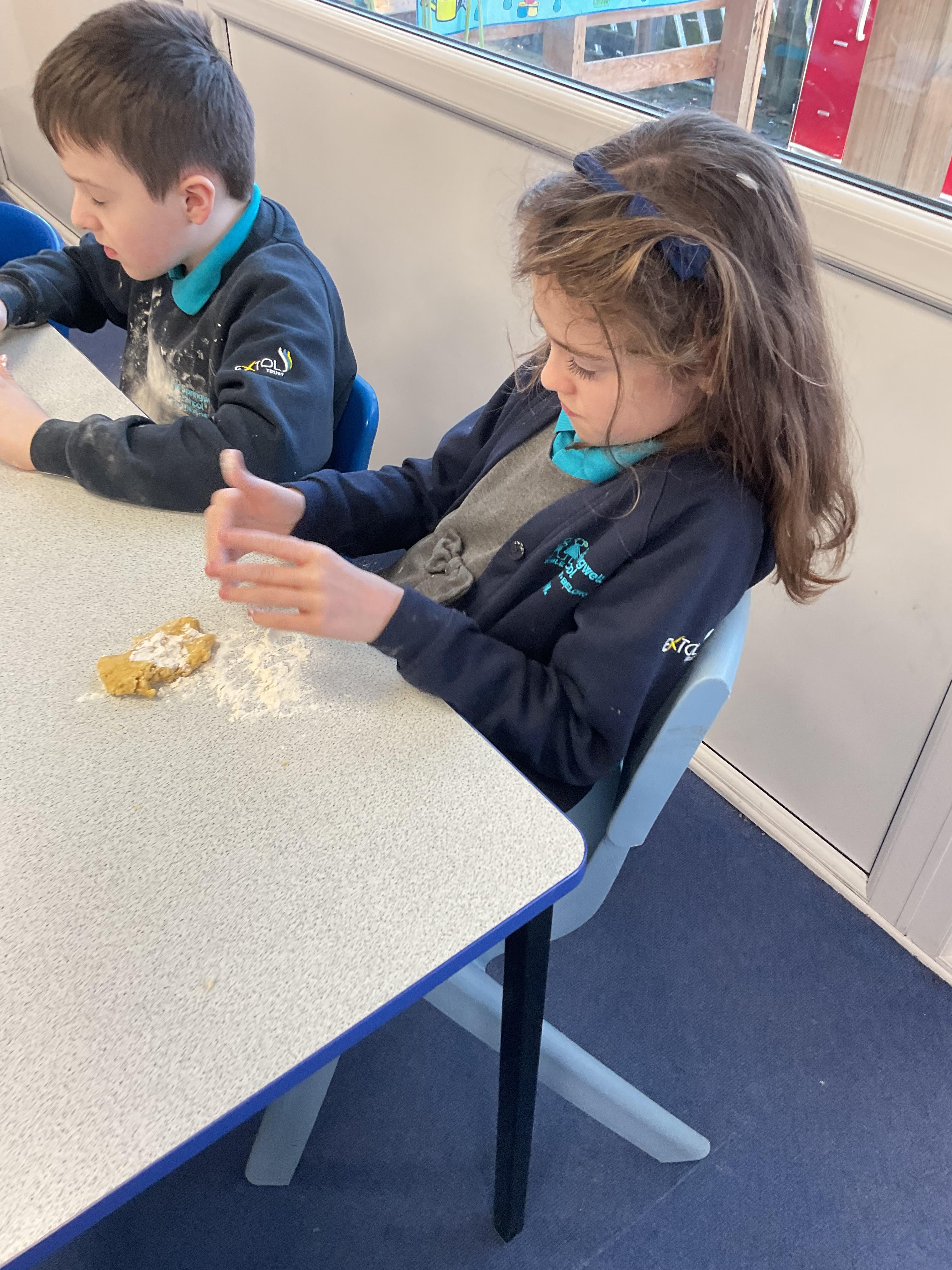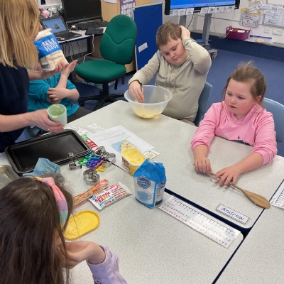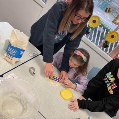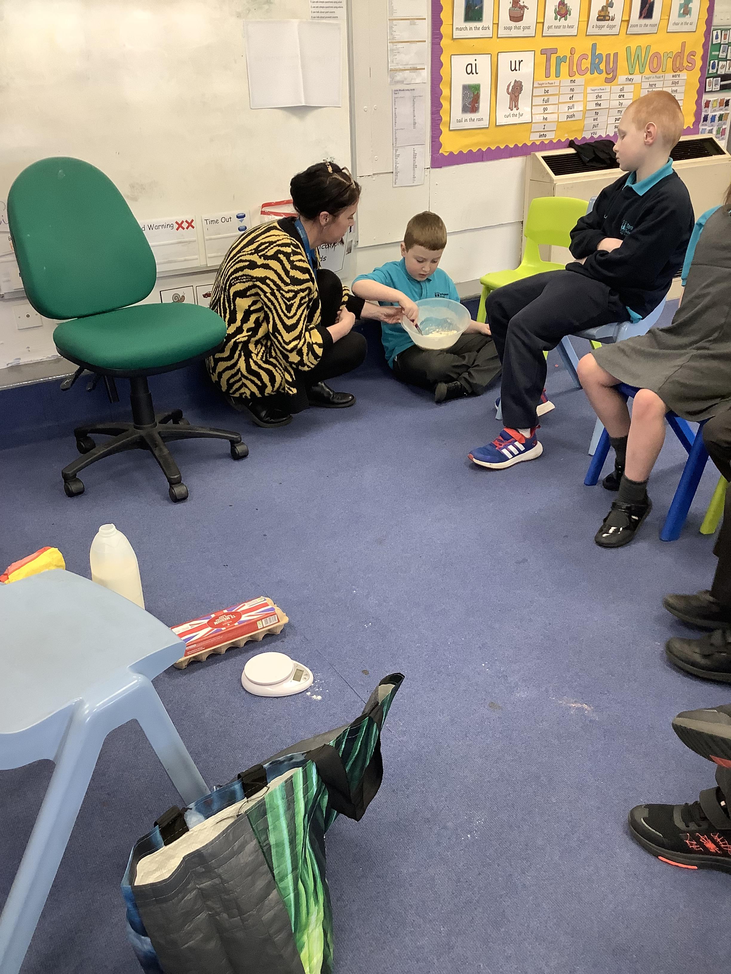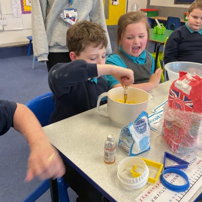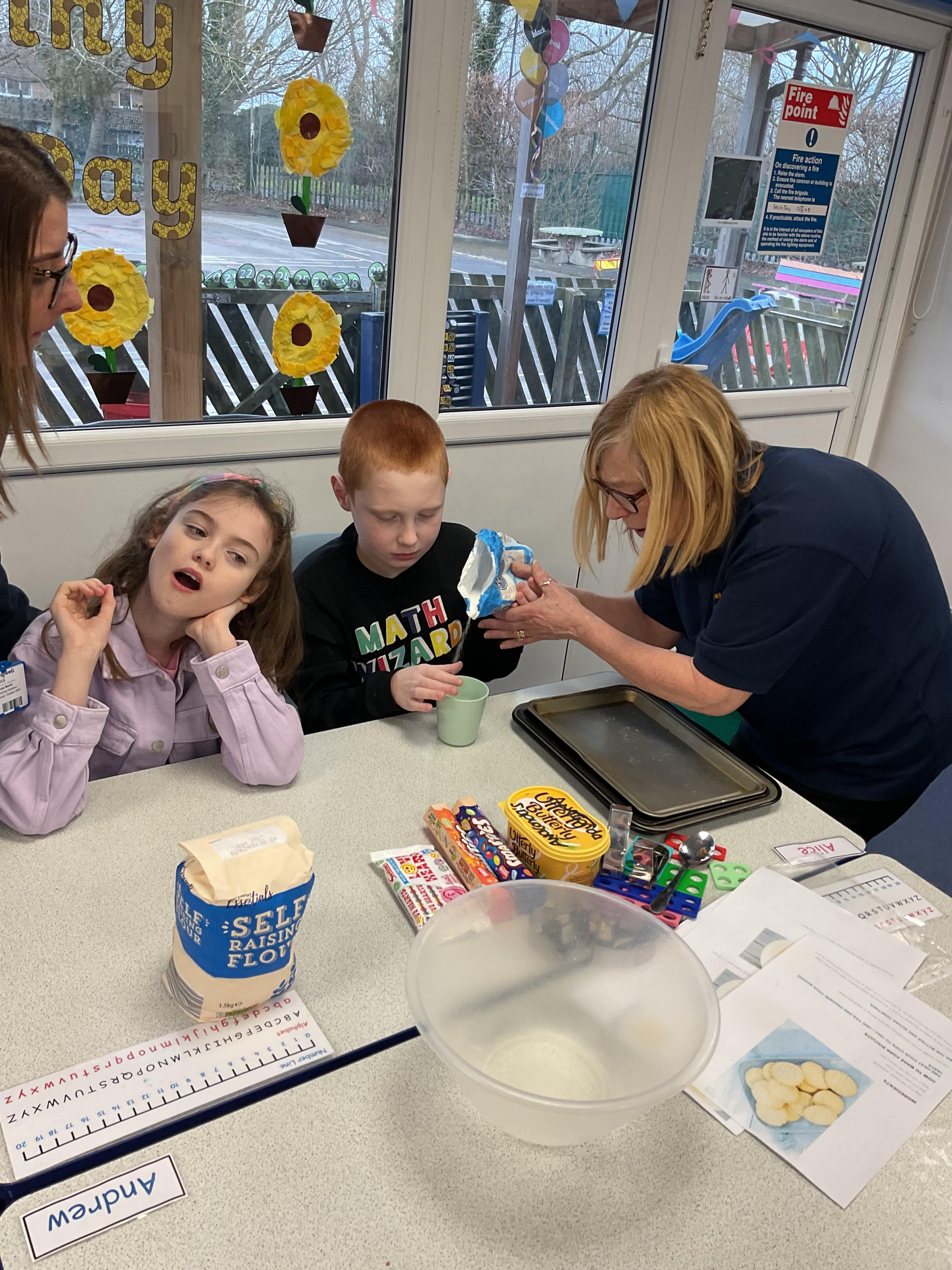 15.01.25 PHSRE through Cookery - The children made shortbread biscuits. They participated in group work and they all were actively involved in the development of the task. They took turns with others with minimal adult support and they could use a spoon to mix up the ingredients in the bowl.