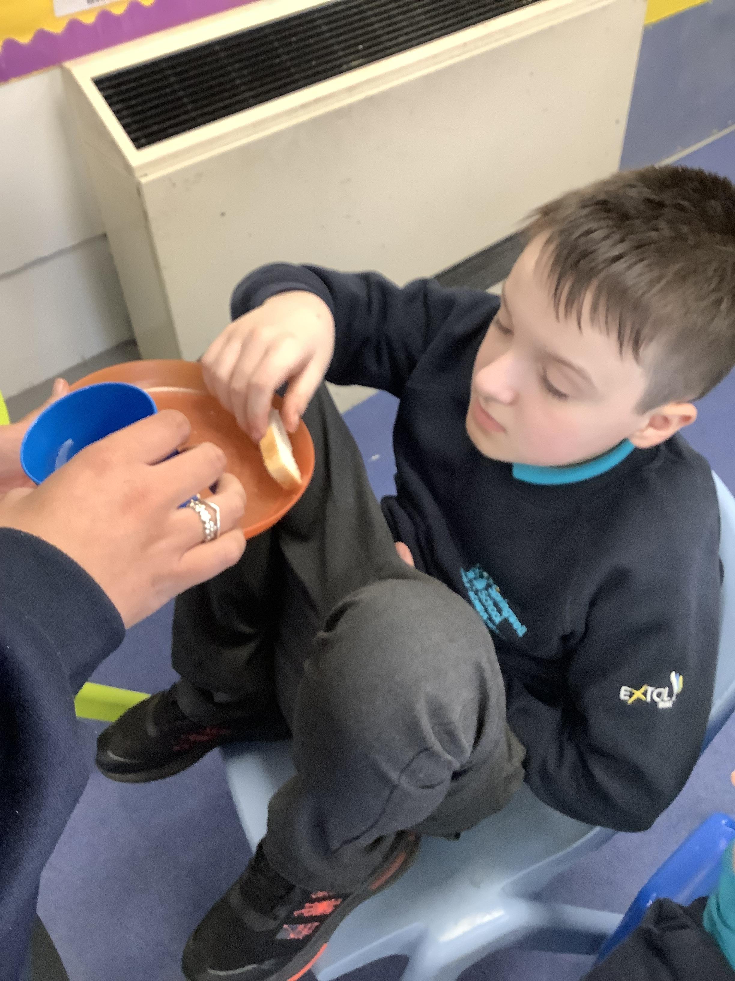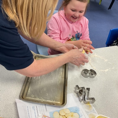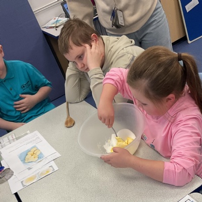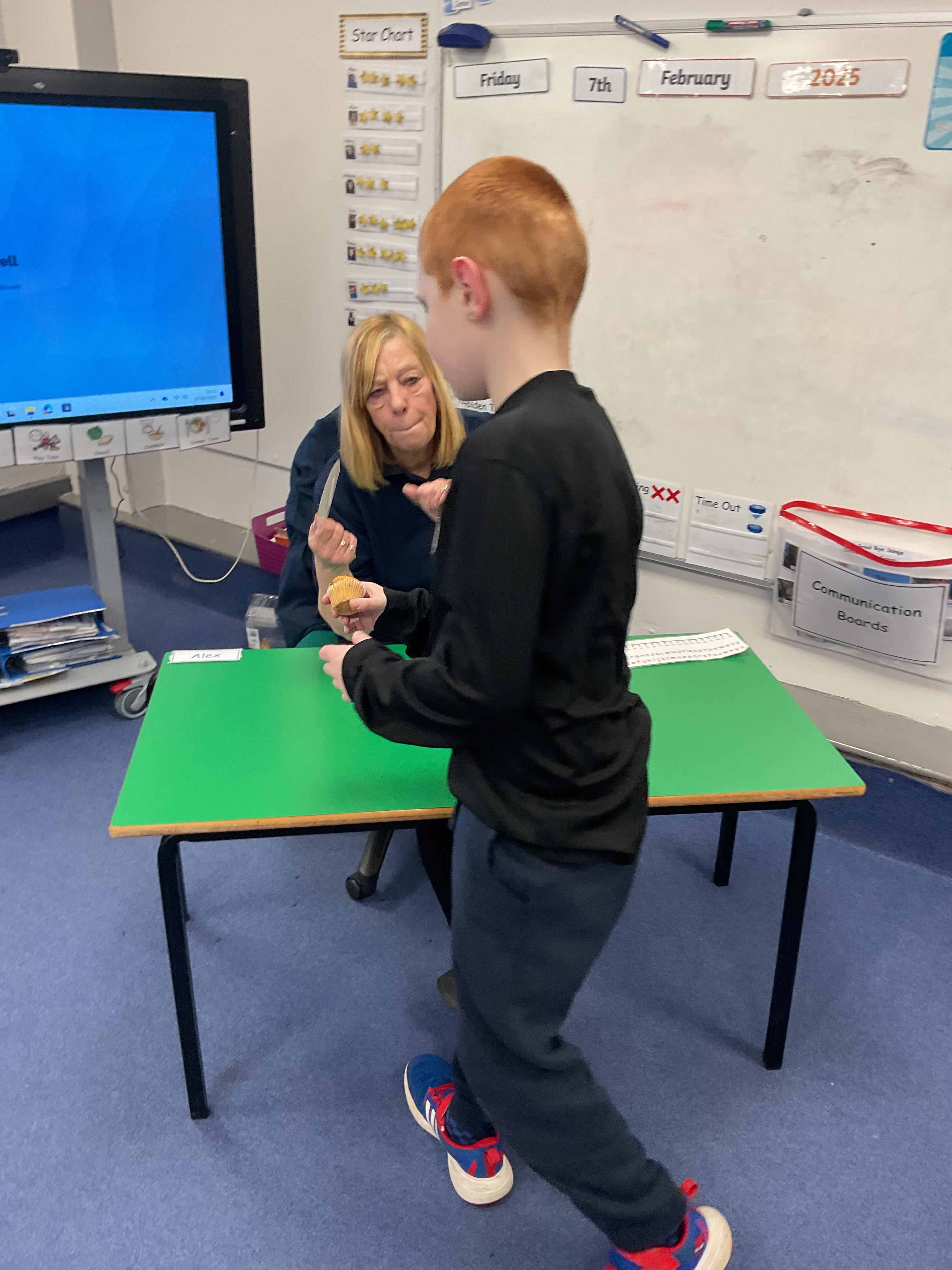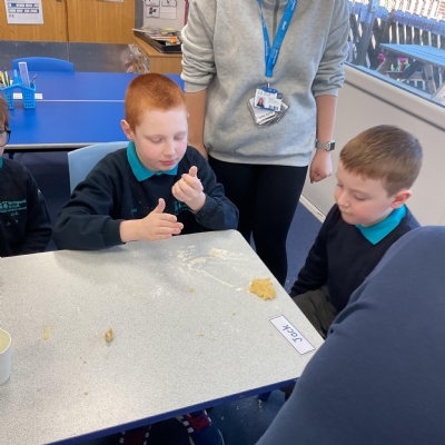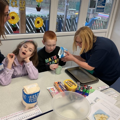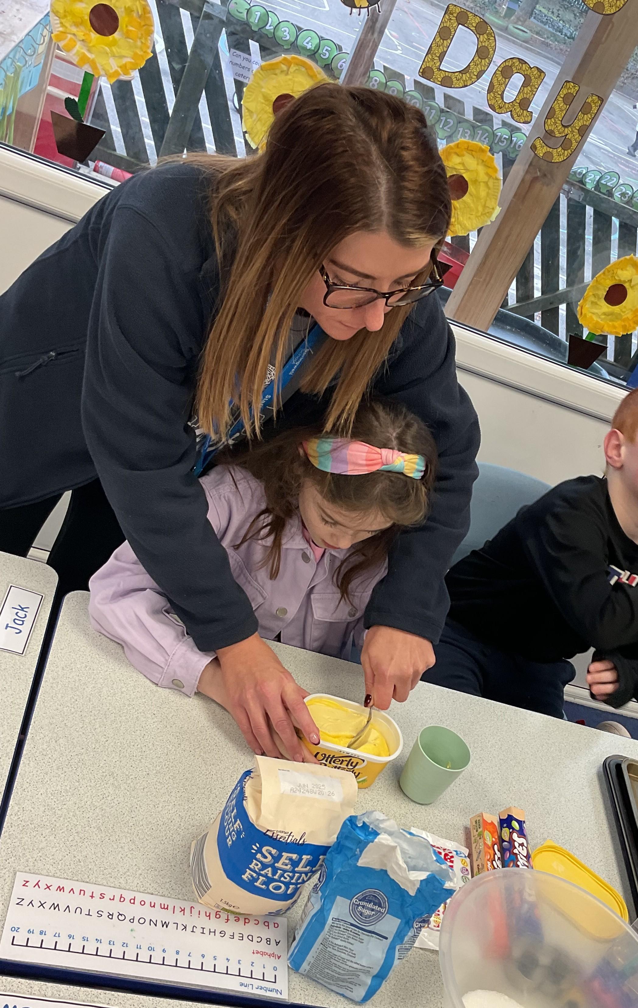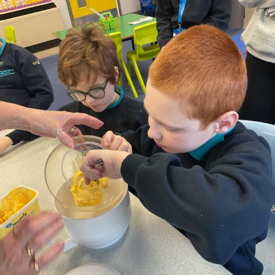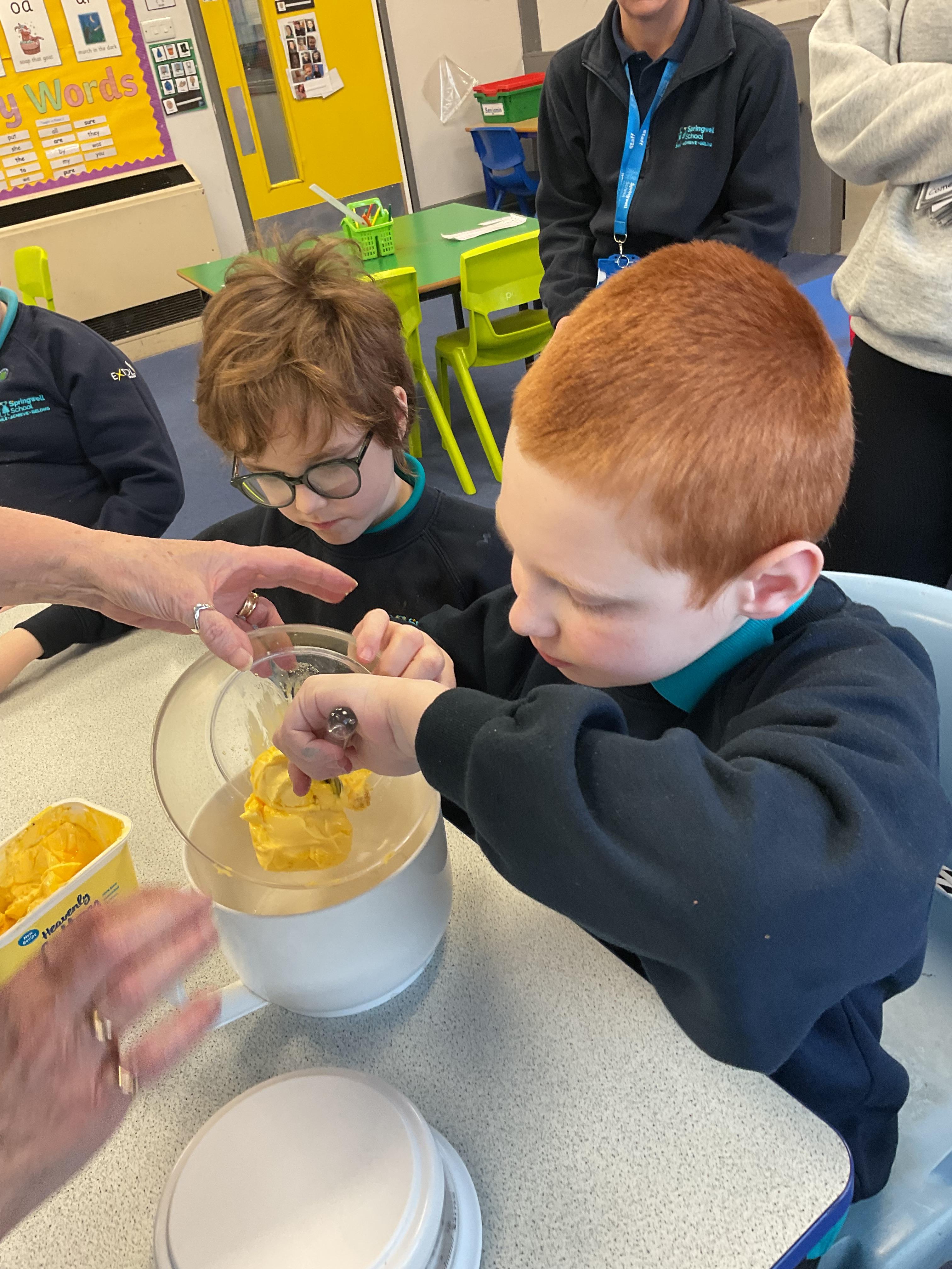 15.01.25 PHSRE through Cookery - The children made shortbread biscuits. They participated in group work and they all were actively involved in the development of the task. They took turns with others with minimal adult support and they could use a spoon to mix up the ingredients in the bowl.