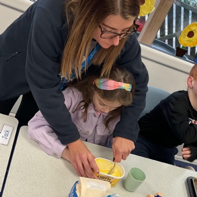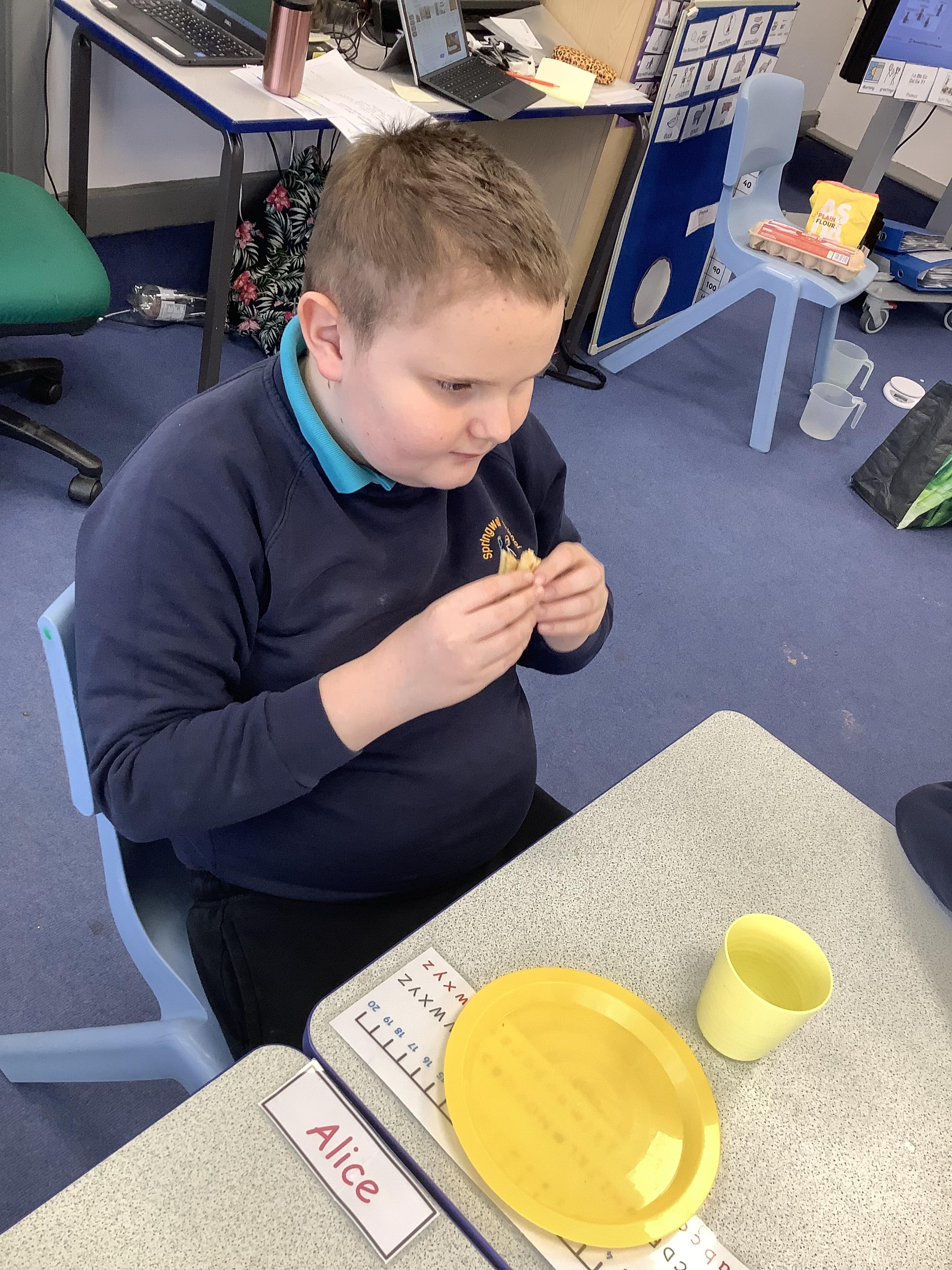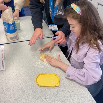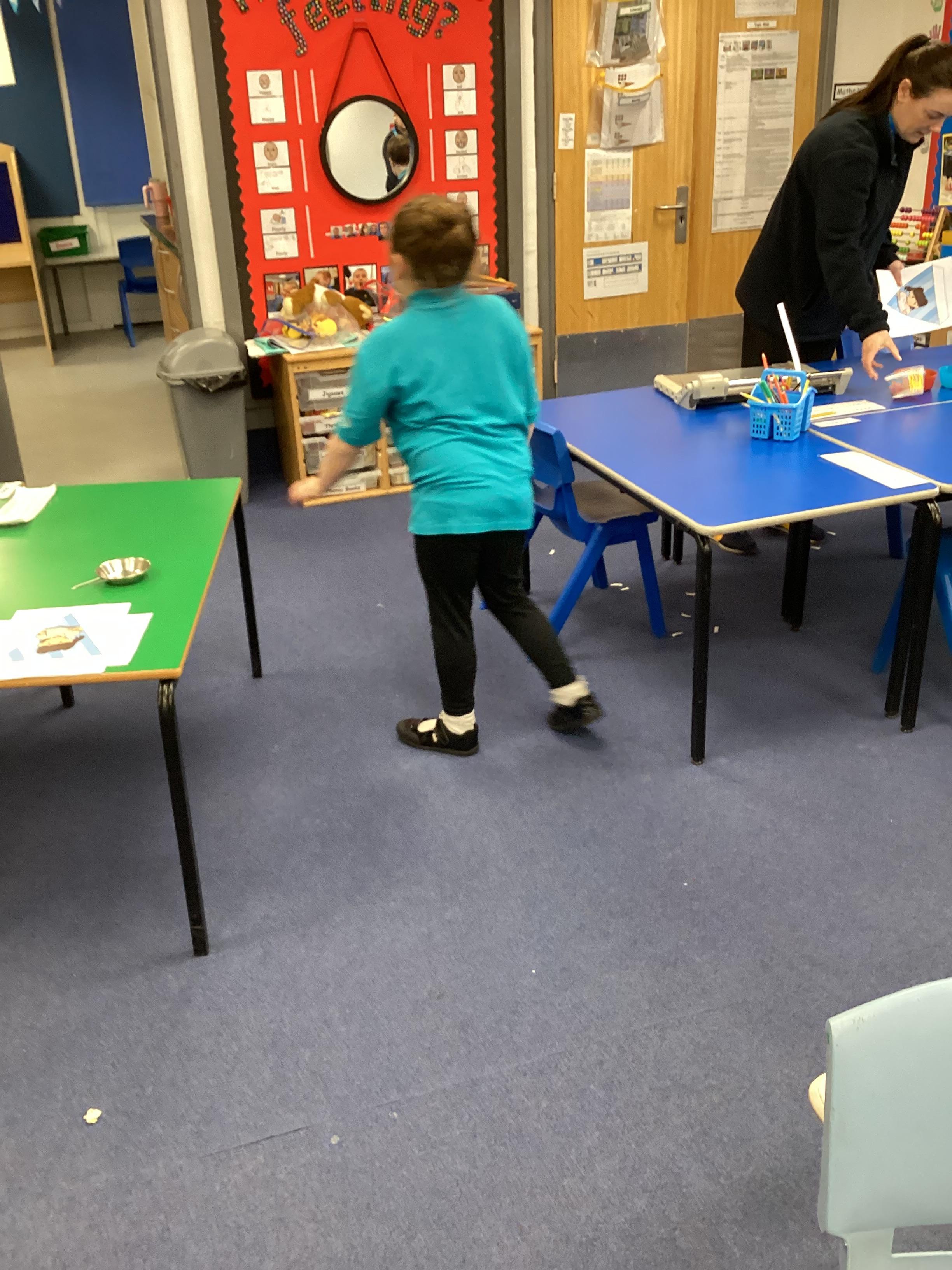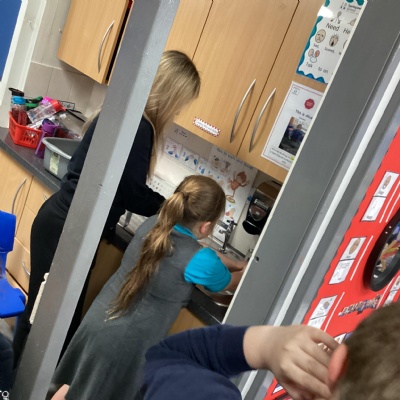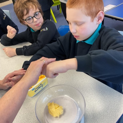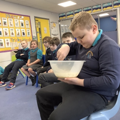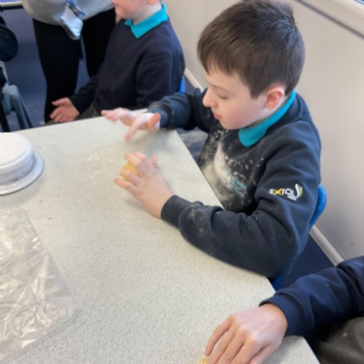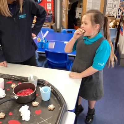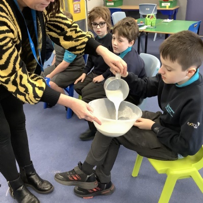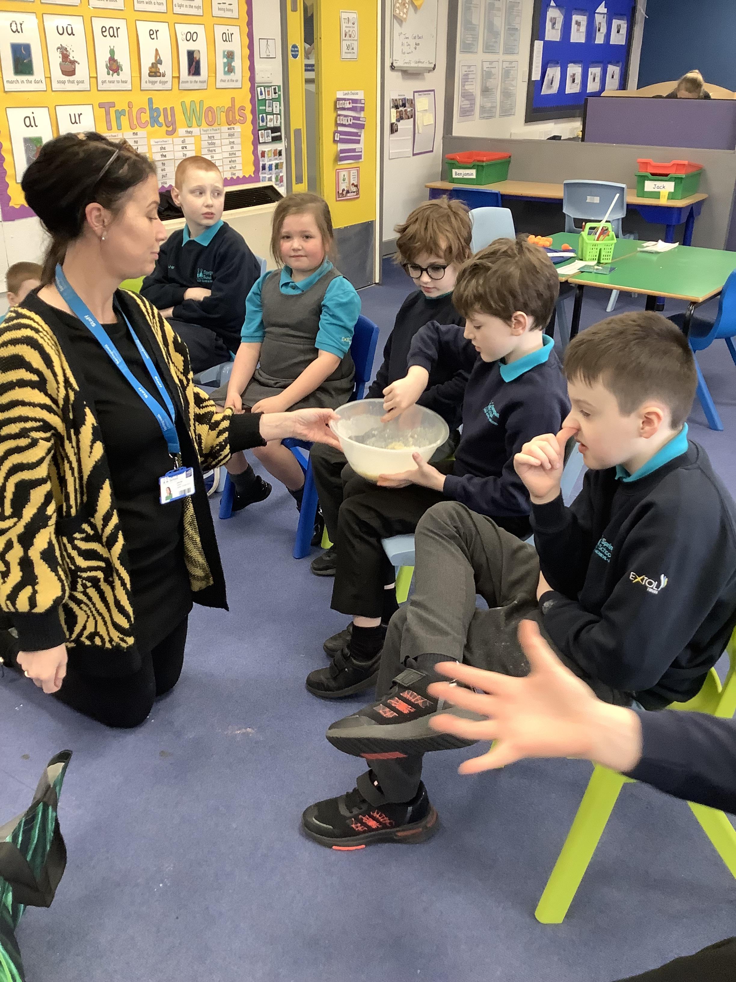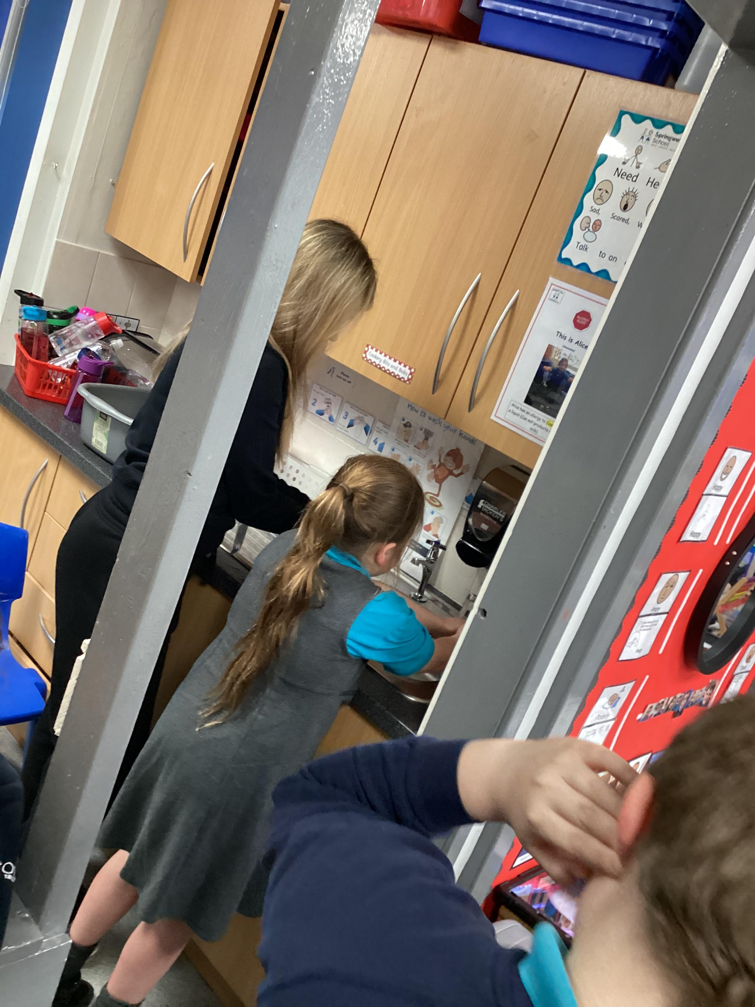 15.01.25 PHSRE through Cookery - The children made shortbread biscuits. They participated in group work and they all were actively involved in the development of the task. They took turns with others with minimal adult support and they could use a spoon to mix up the ingredients in the bowl.