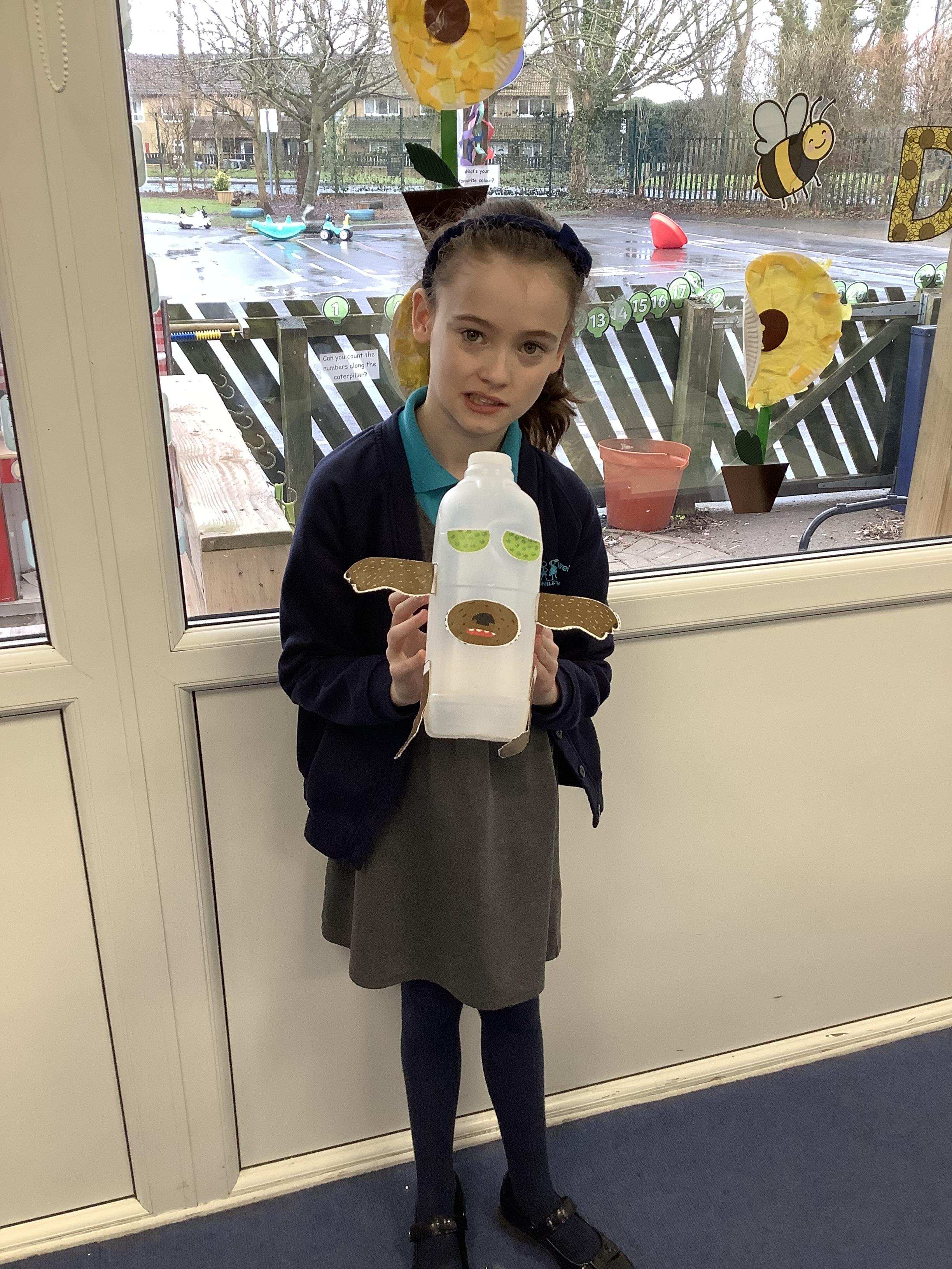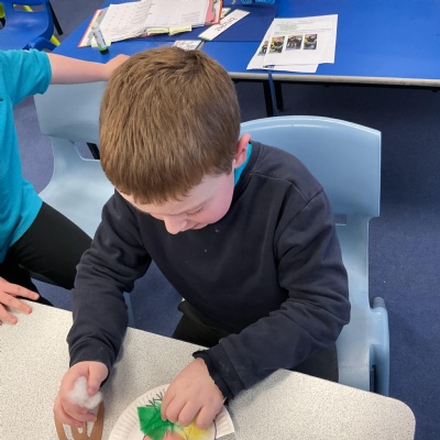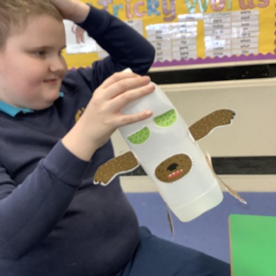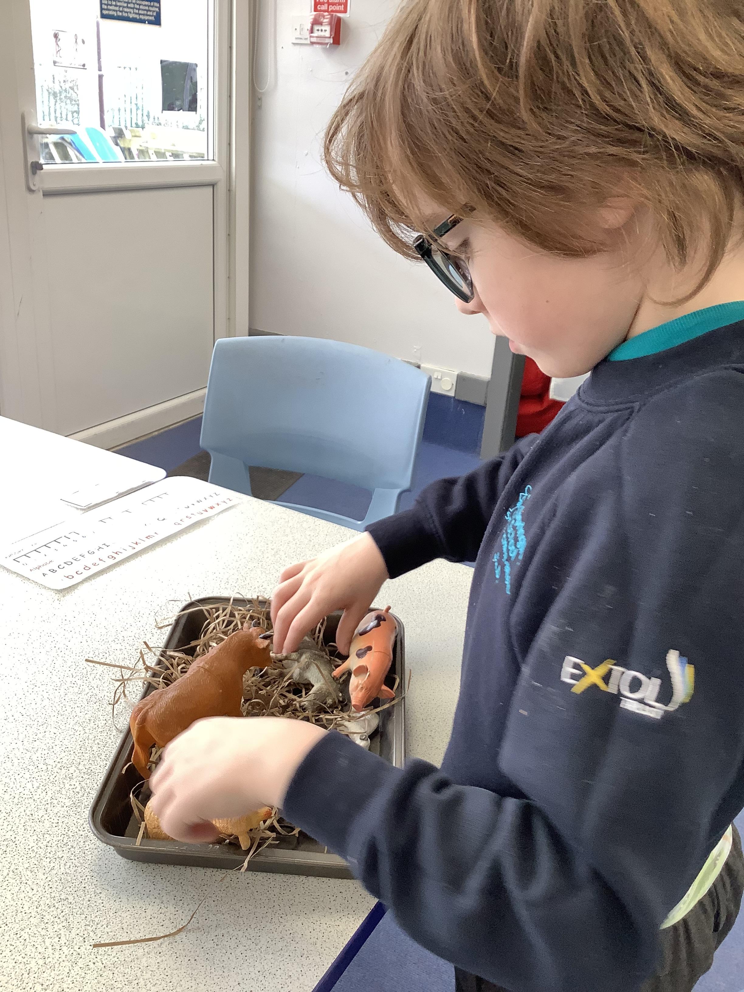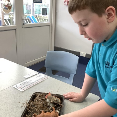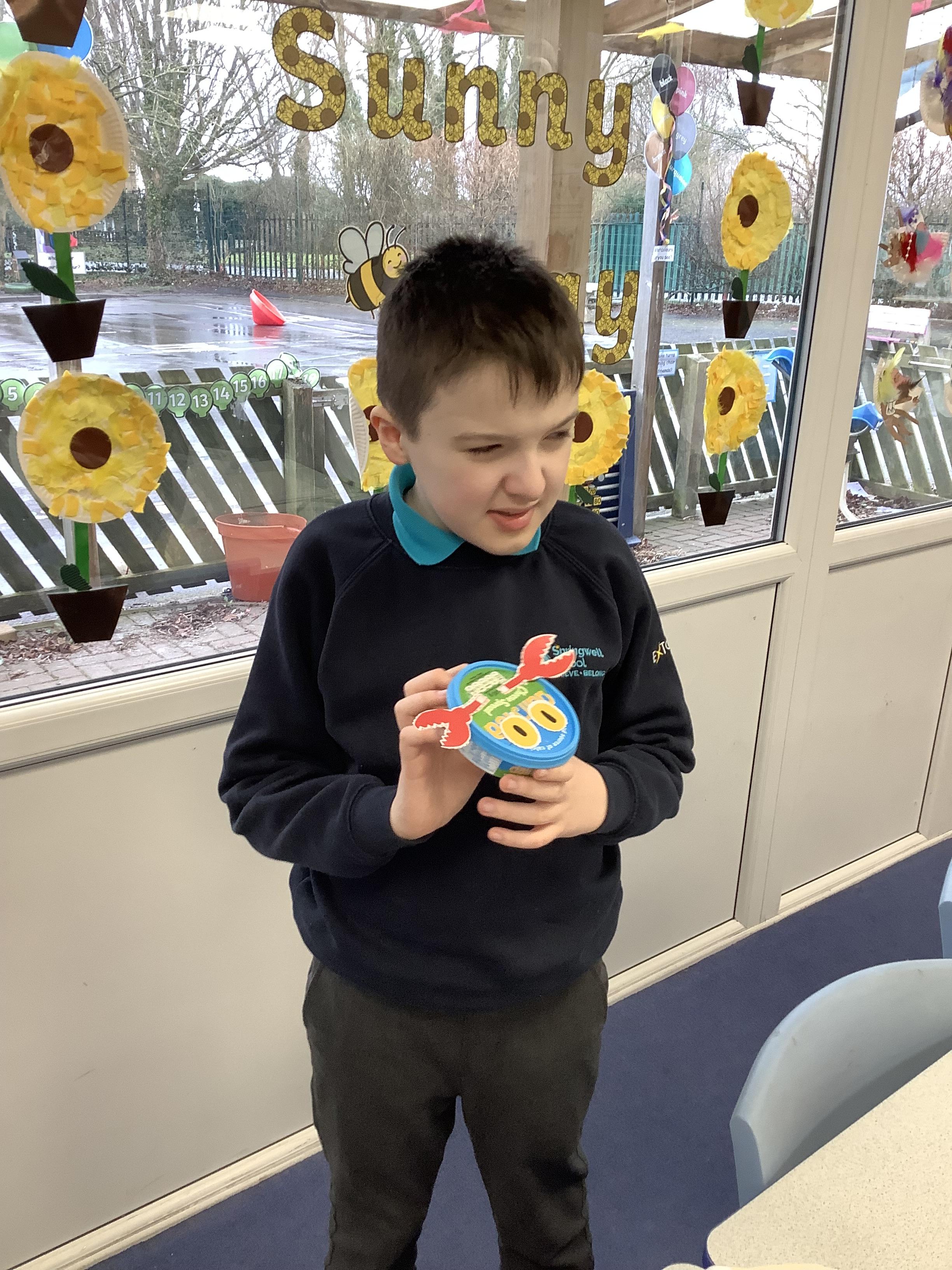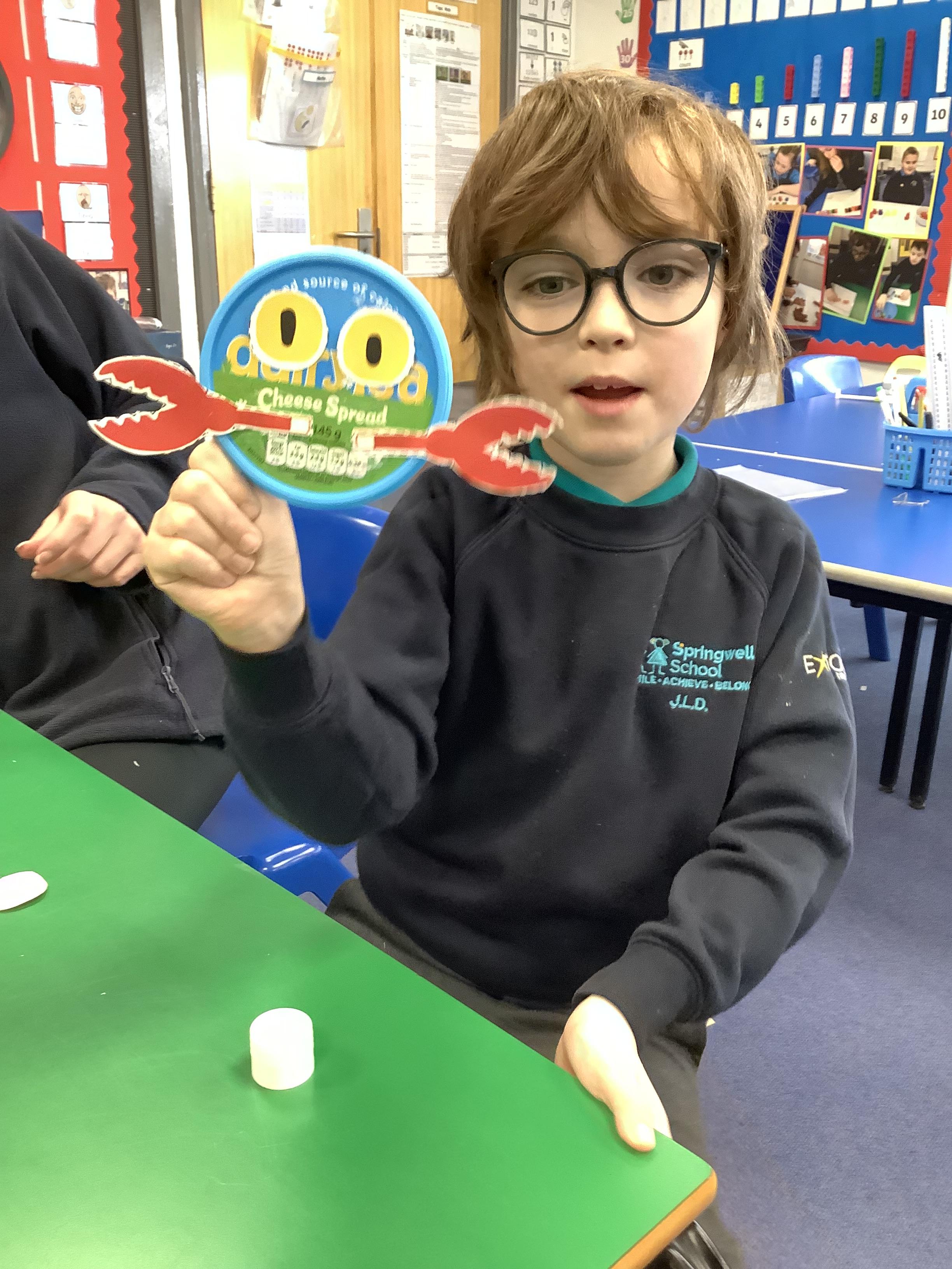 11.03.25 BRITISH SCIENCE WEEK: LET'S CREATE AN ANIMAL The children created a new type of animal using empty recycling boxes that can adapt to a given environment. We cut out body parts and animal features from British Science pack and glued them onto the boxes. The children named their new animal and discussed which environment they lived in e.g. desert, forest, Arctic, sea or hot/cold place.