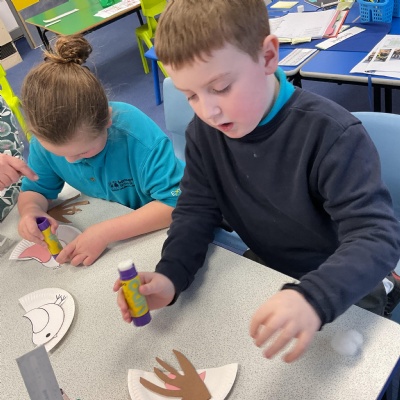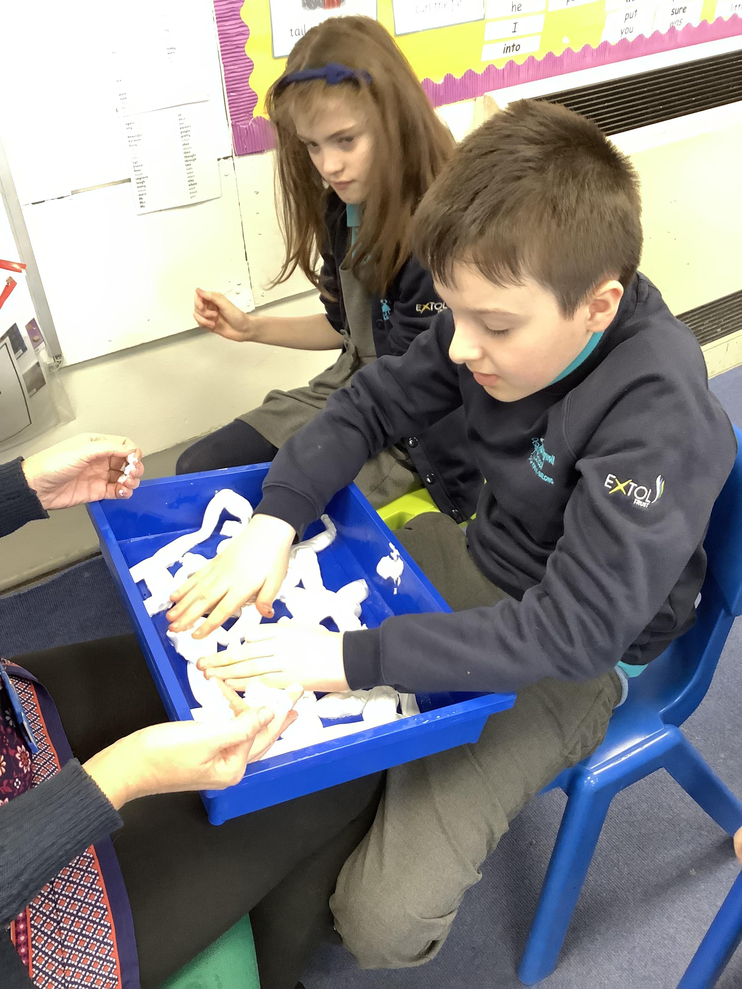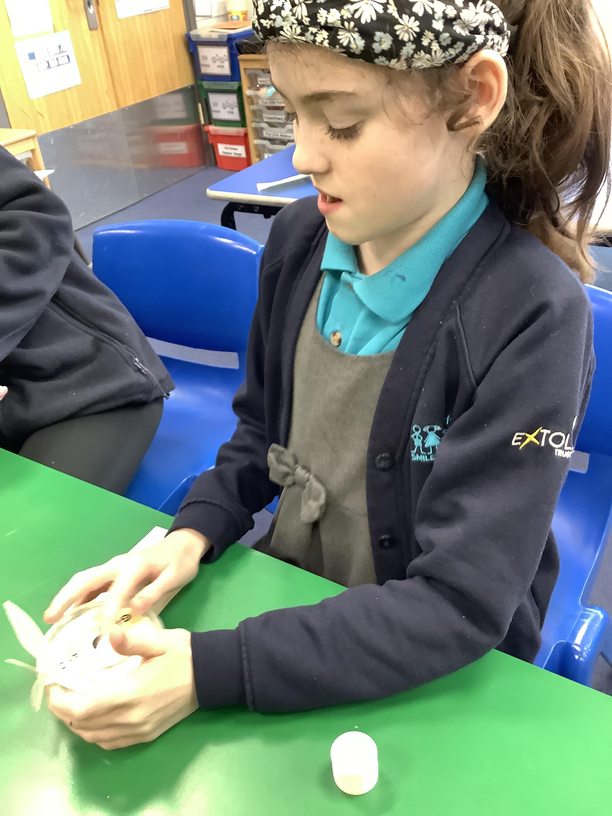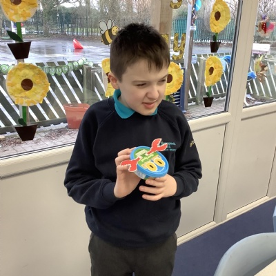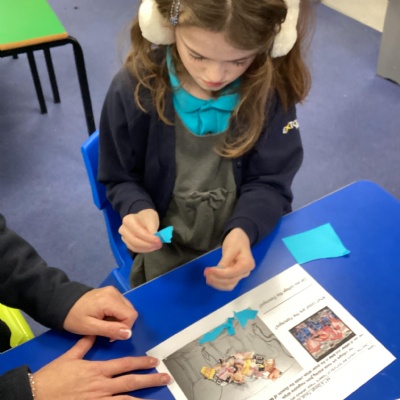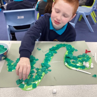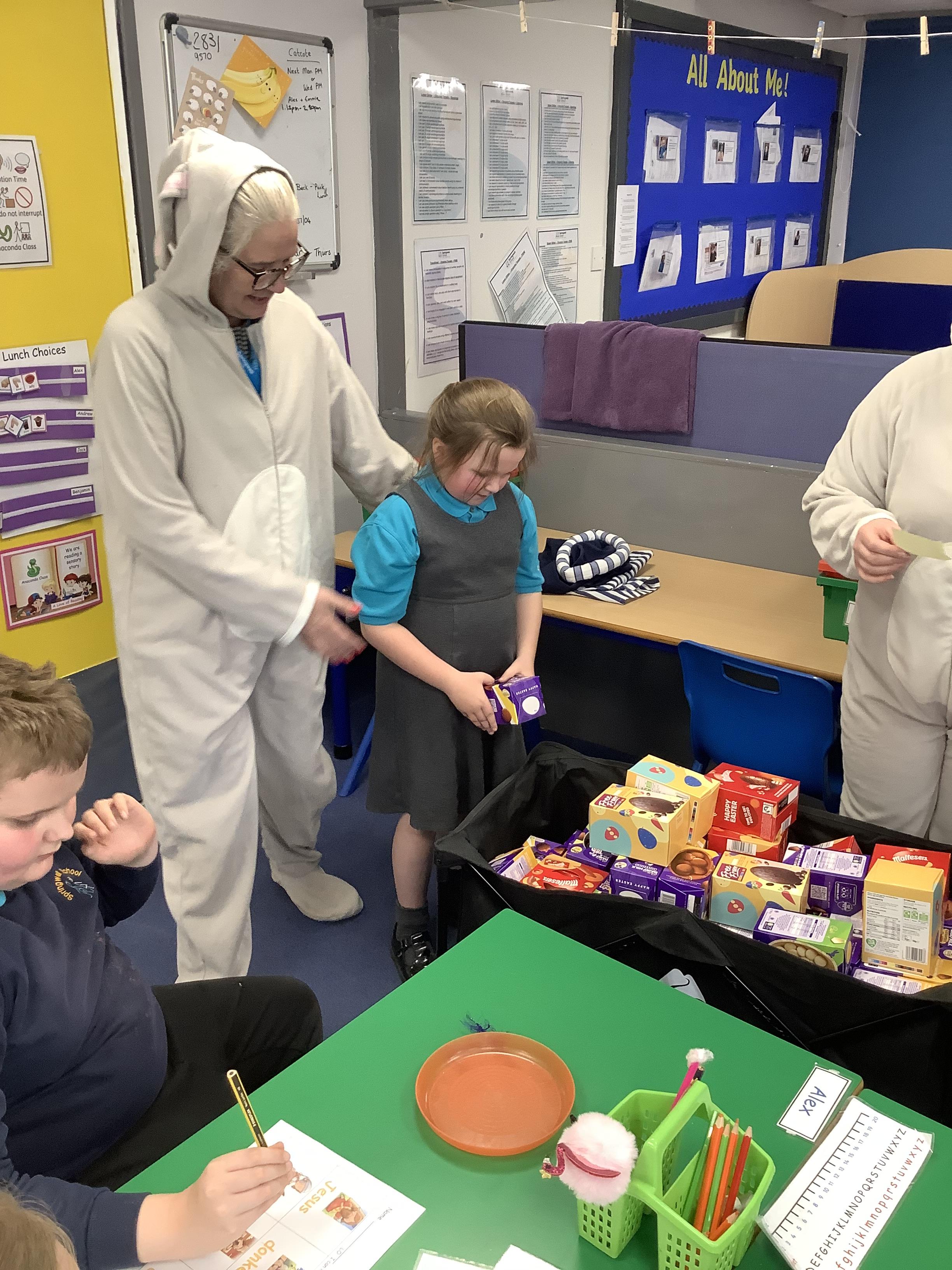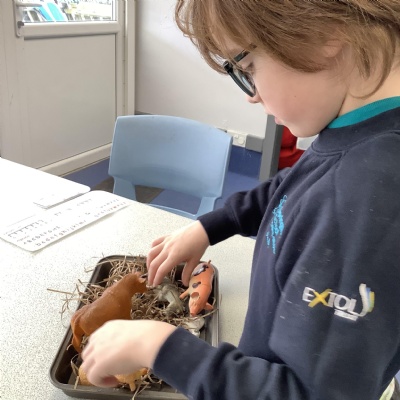 11.03.25 BRITISH SCIENCE WEEK: LET'S CREATE AN ANIMAL The children created a new type of animal using empty recycling boxes that can adapt to a given environment. We cut out body parts and animal features from British Science pack and glued them onto the boxes. The children named their new animal and discussed which environment they lived in e.g. desert, forest, Arctic, sea or hot/cold place.