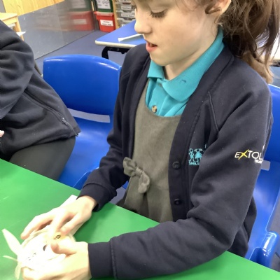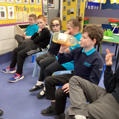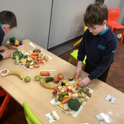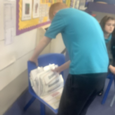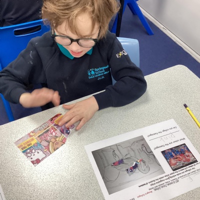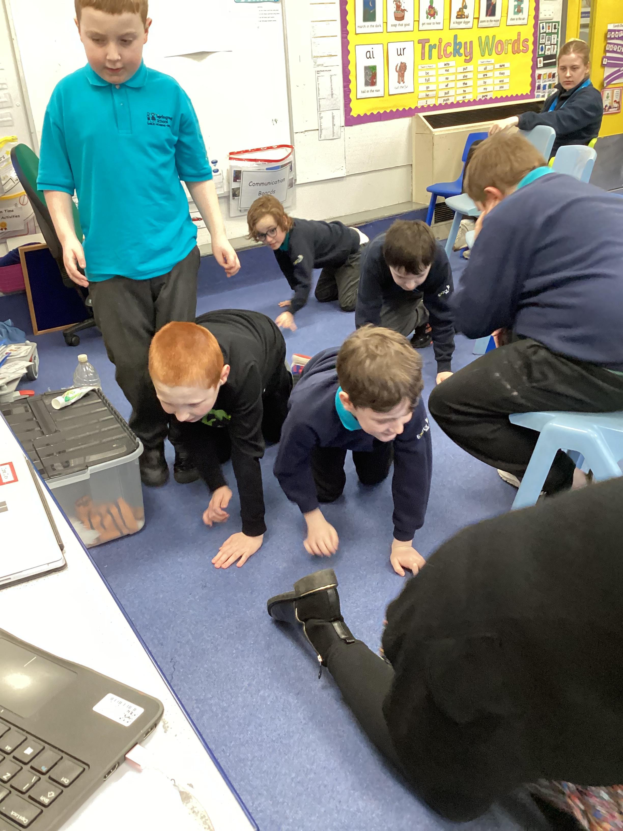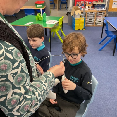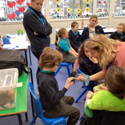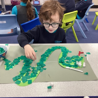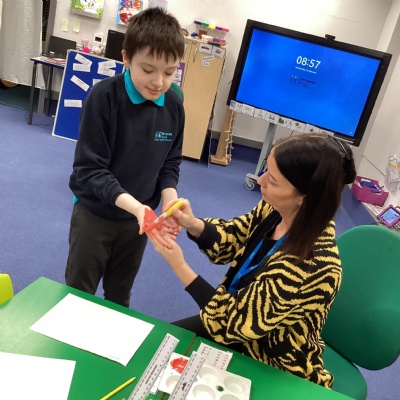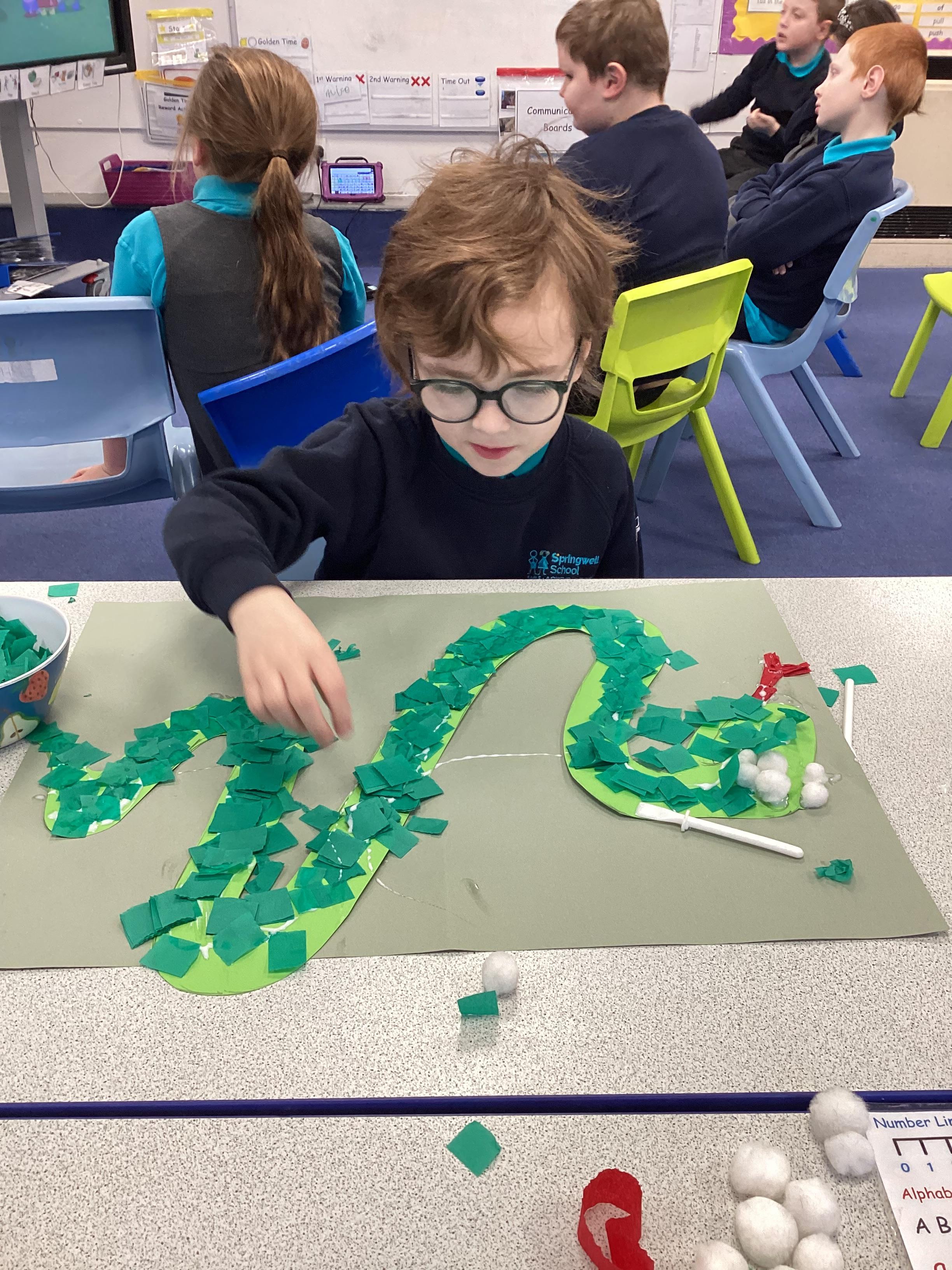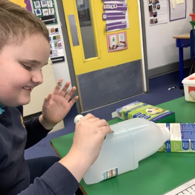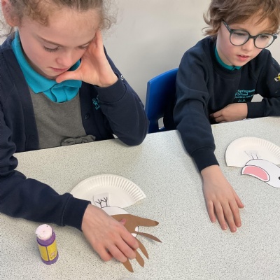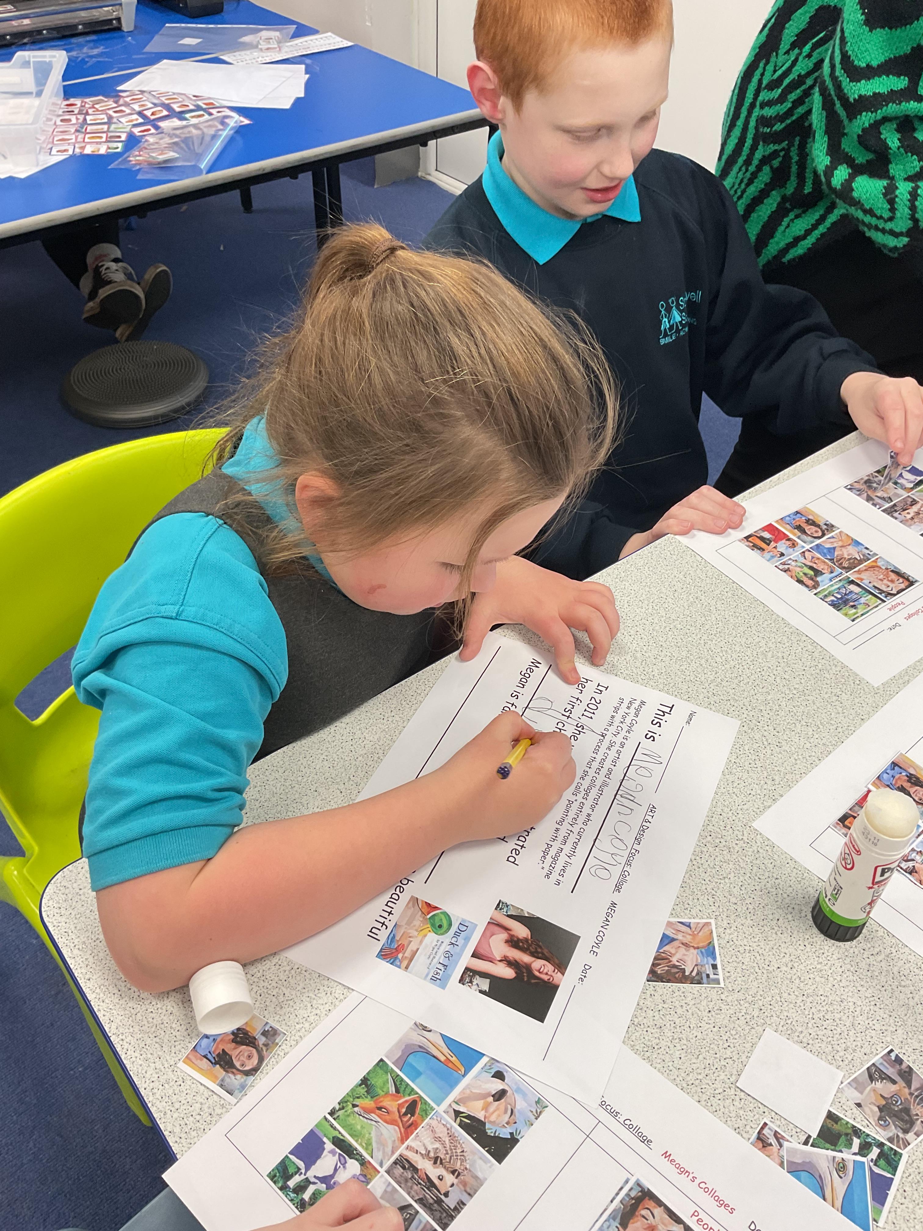 11.03.25 BRITISH SCIENCE WEEK: LET'S CREATE AN ANIMAL The children created a new type of animal using empty recycling boxes that can adapt to a given environment. We cut out body parts and animal features from British Science pack and glued them onto the boxes. The children named their new animal and discussed which environment they lived in e.g. desert, forest, Arctic, sea or hot/cold place.