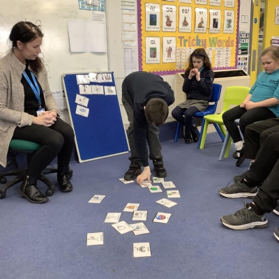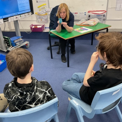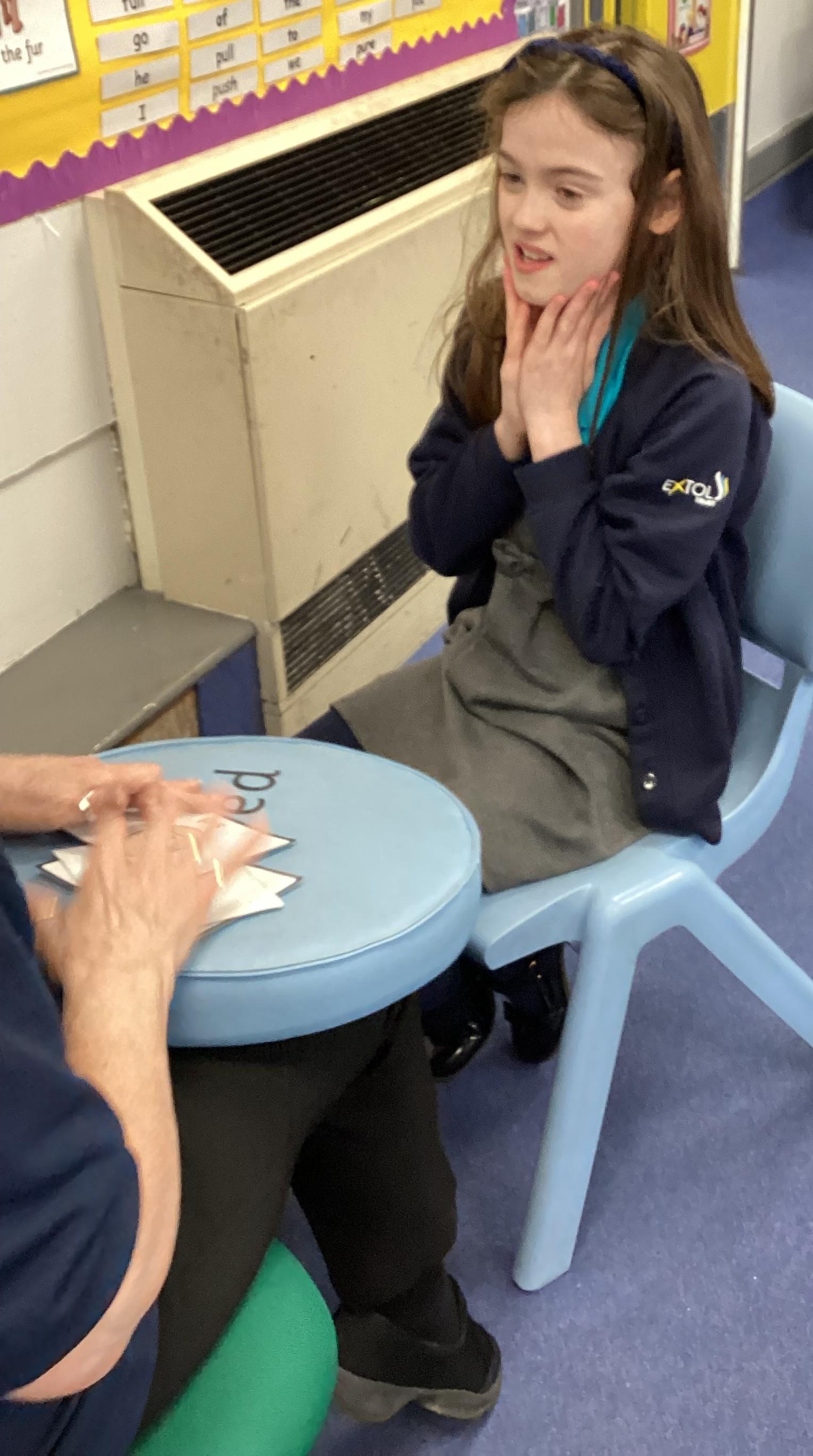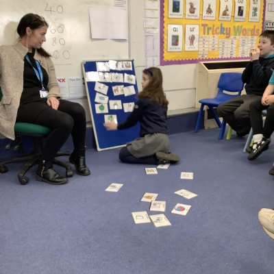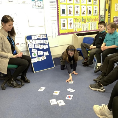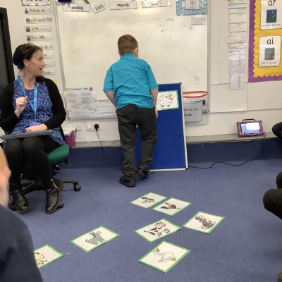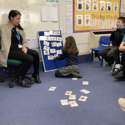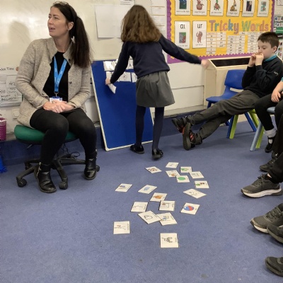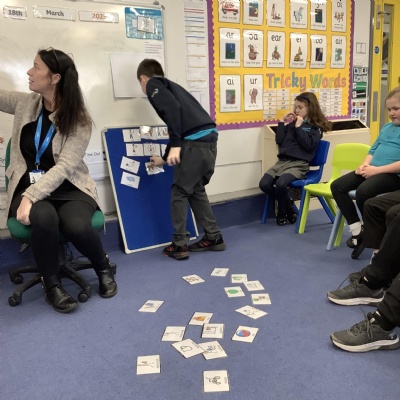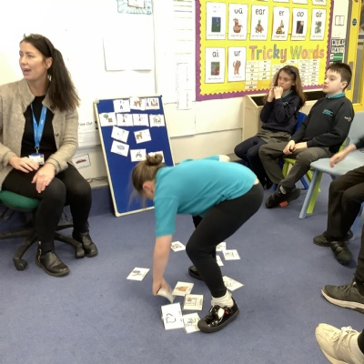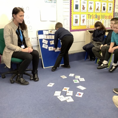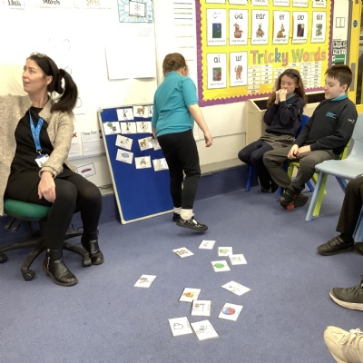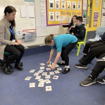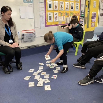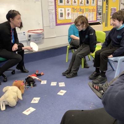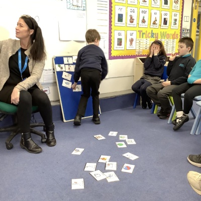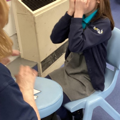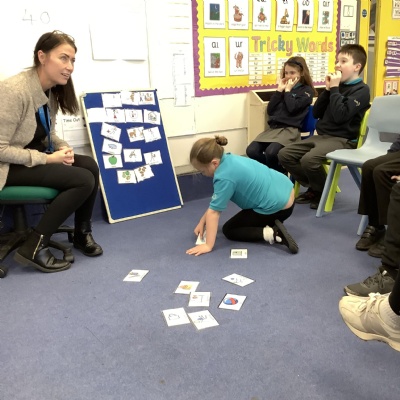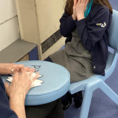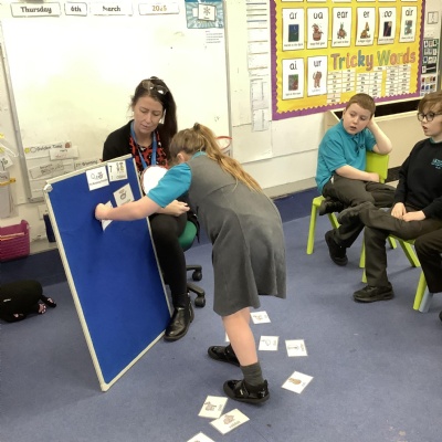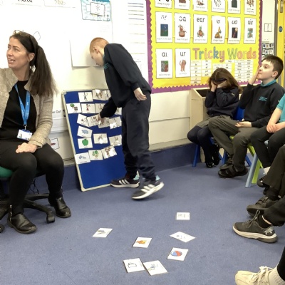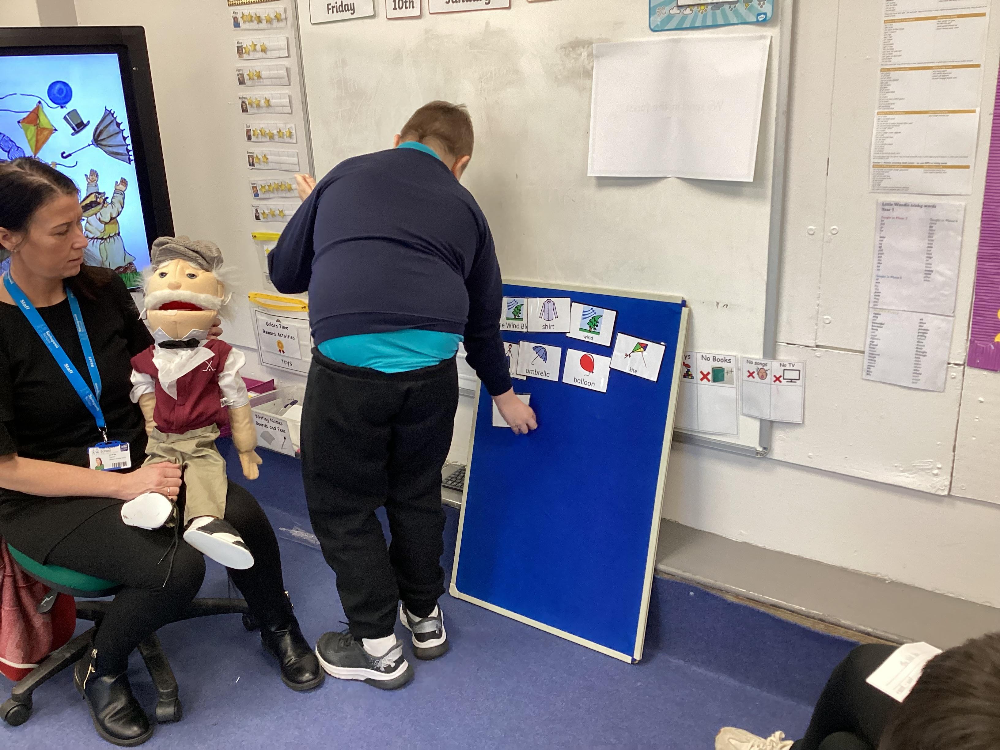 08.04.25 EARLY TALK BOOST Jake and Tizzy Book 6 Hide and Seek - The children have been building sentences using positional language e.g. on, under and in. We have been looking closely at the Tizzy picture cards. Our teacher has been modelling the language for each card, e.g, 'Tizzy is on the chair' or 'Tizzy is under the rug' etc. We have enjoyed singing and acting out the song: 'Five Little Monkeys Jumping on the Bed'.The children have loved playing their own game of hide and seek in our classroom!
