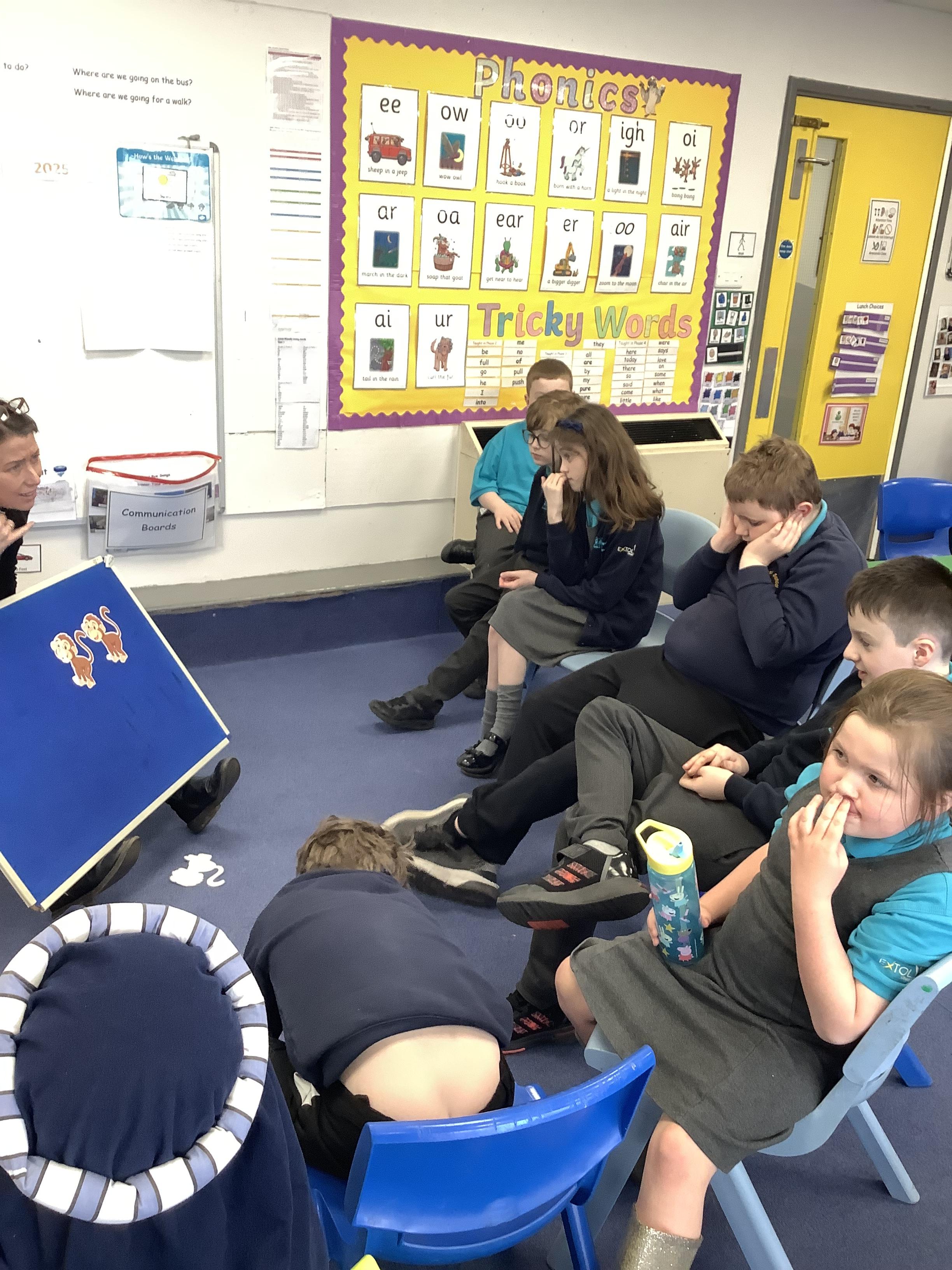 20.01.25 OUR ASSEMBLY: Today we teamed up with Jaguar Class and together we recreated a multi-sensory story of 'The Wind Blew' for our parents and carers. All the children took an active part in the story and helped to sing and sign to our weather song at the end. You were all super stars!
