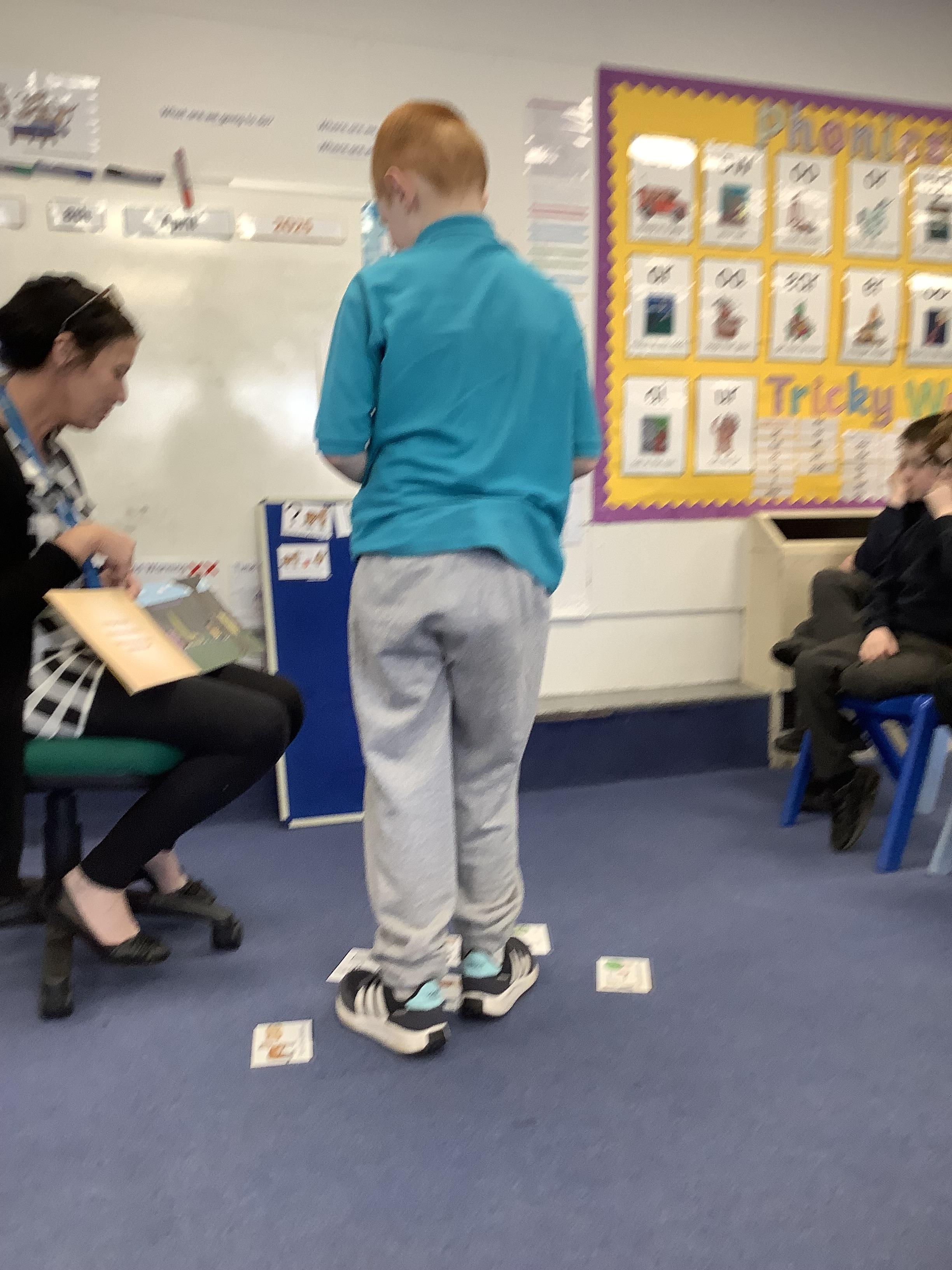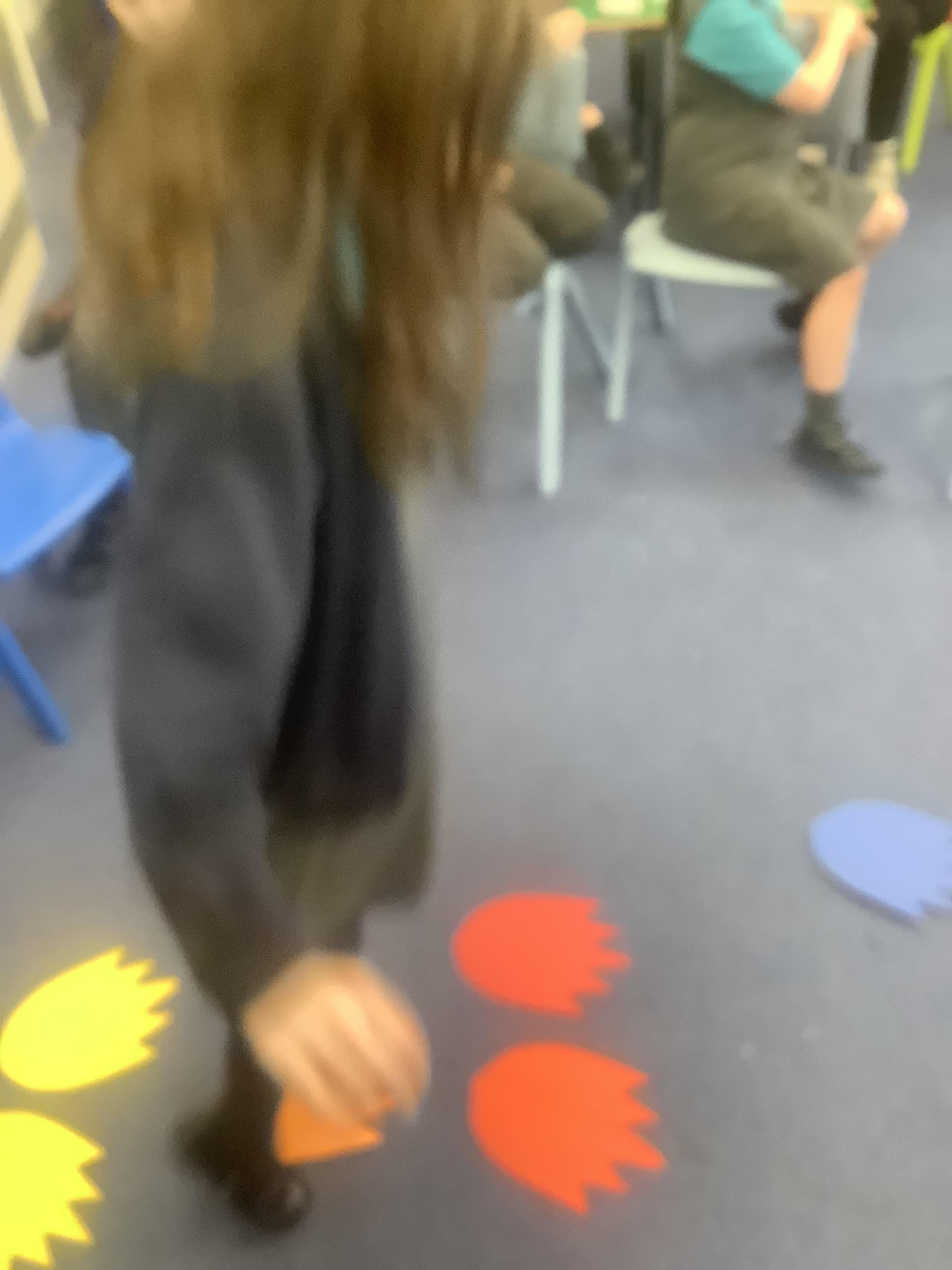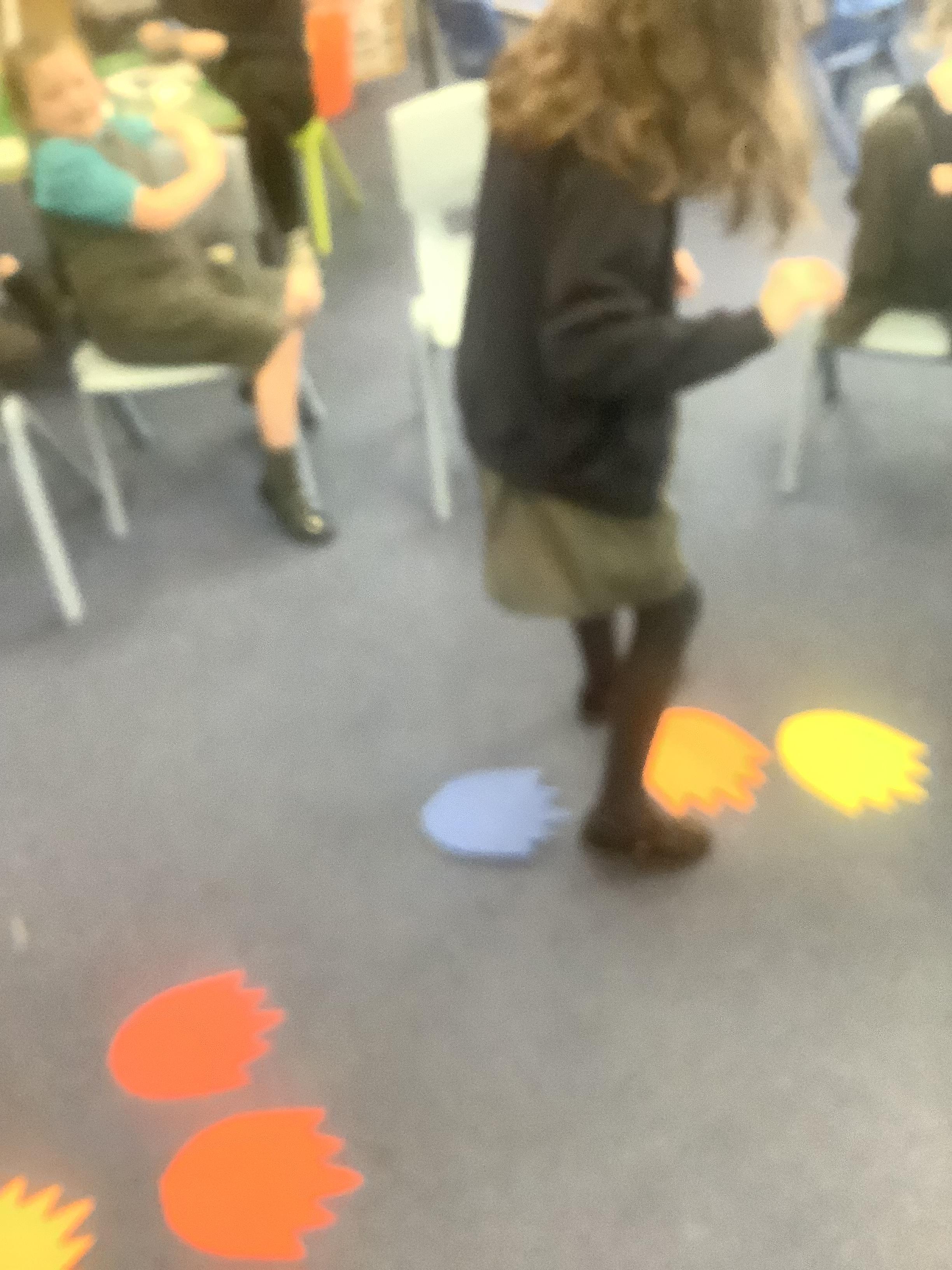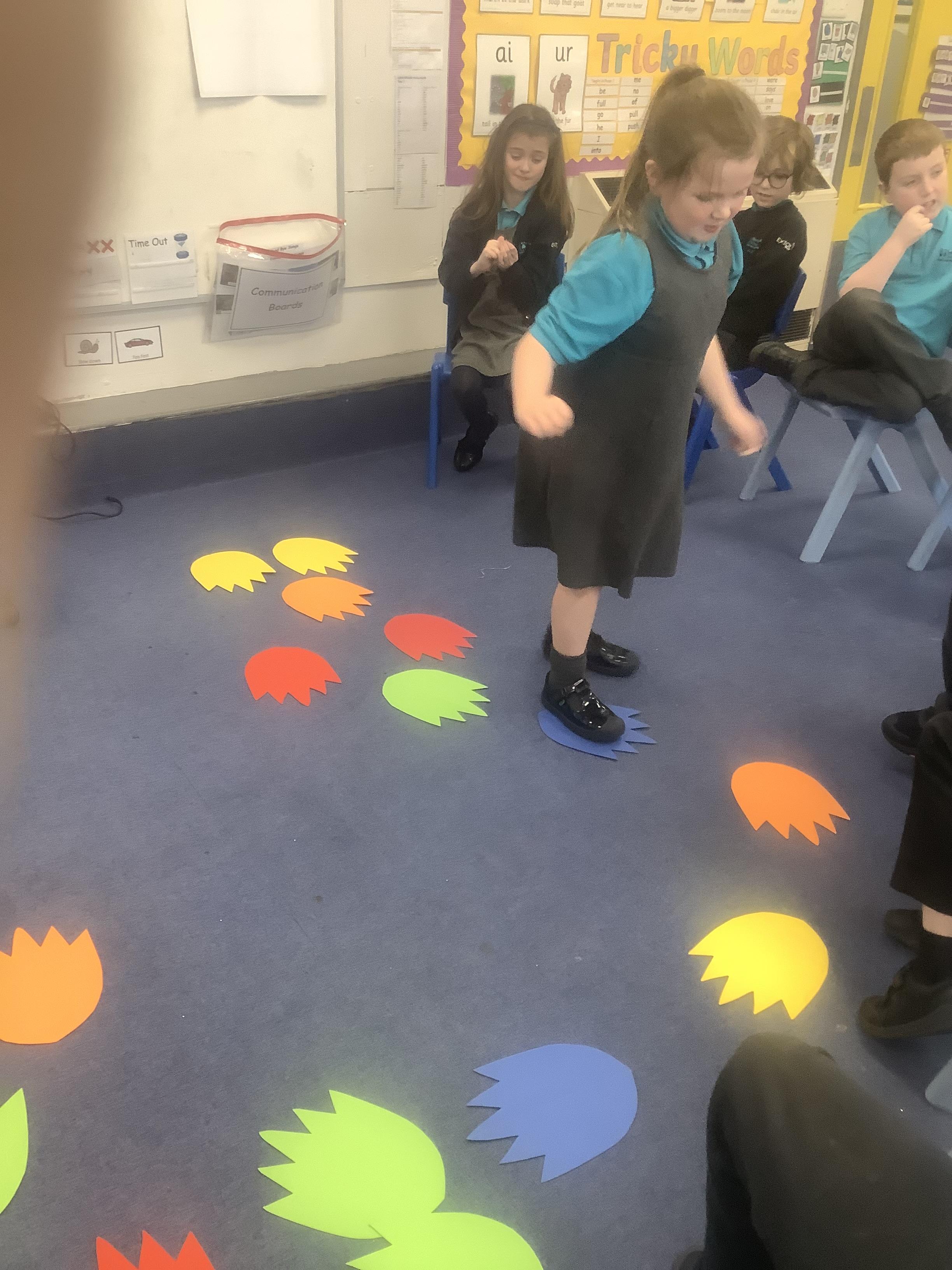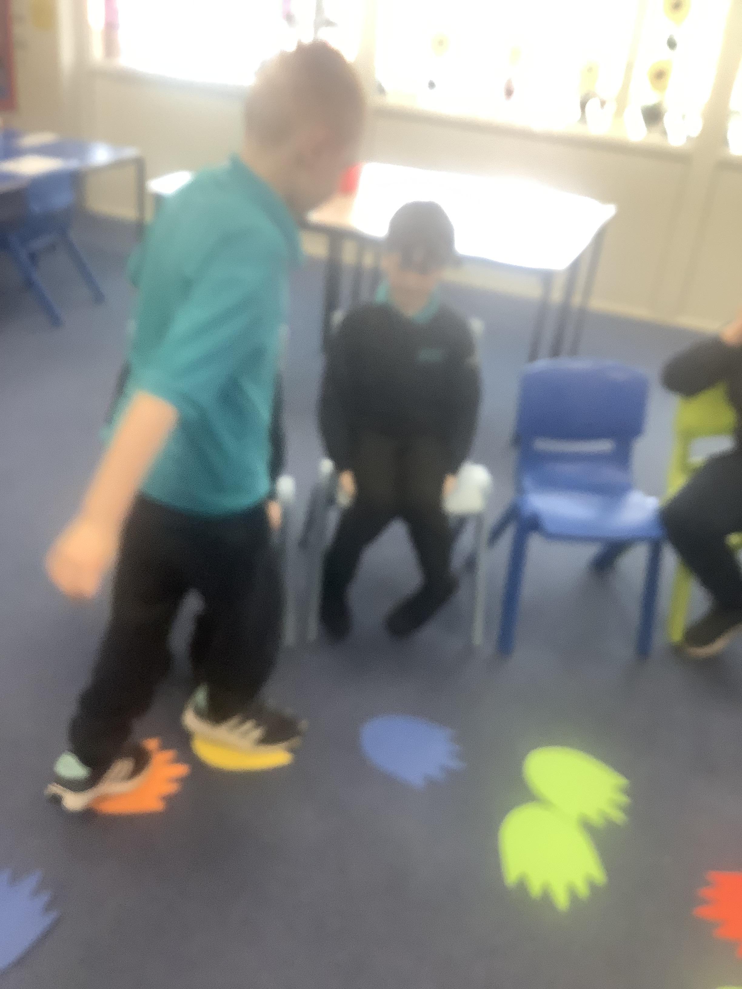 26.03.25 COMPUTING UNPLUGGED: (Physical Development Coding) The children have started following simple pictorial algorithms. They followed the 'Dino Hop' footprints by stepping forward, jumping forwards, hopping, turning etc.