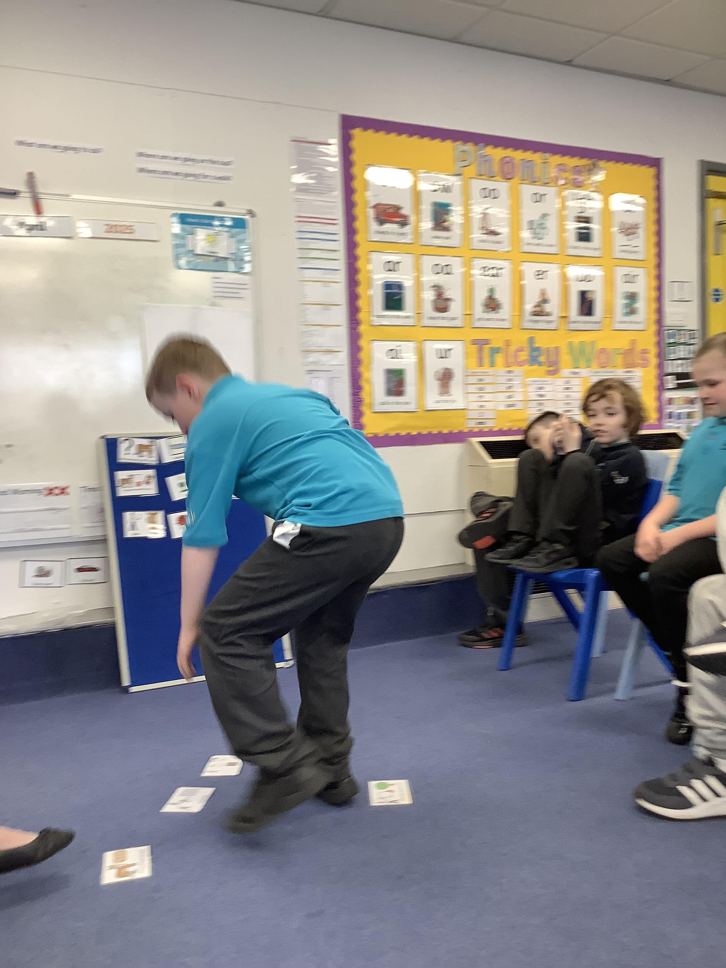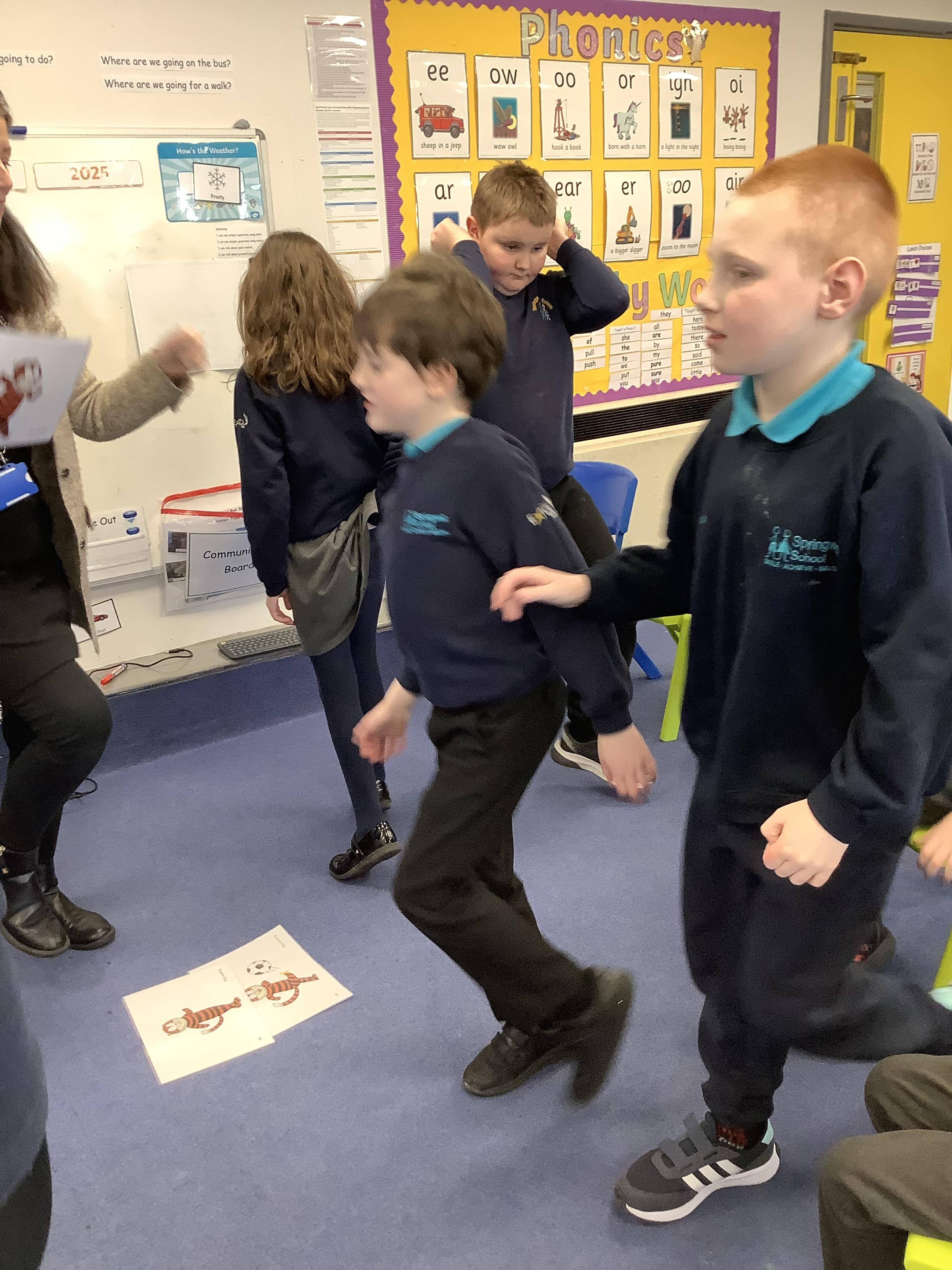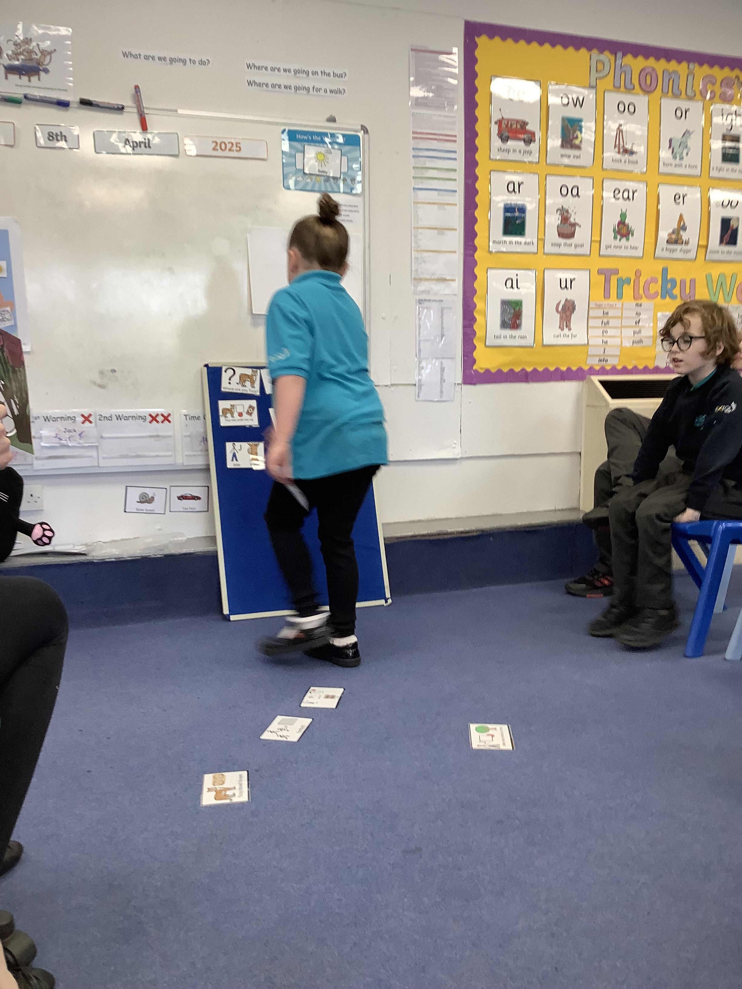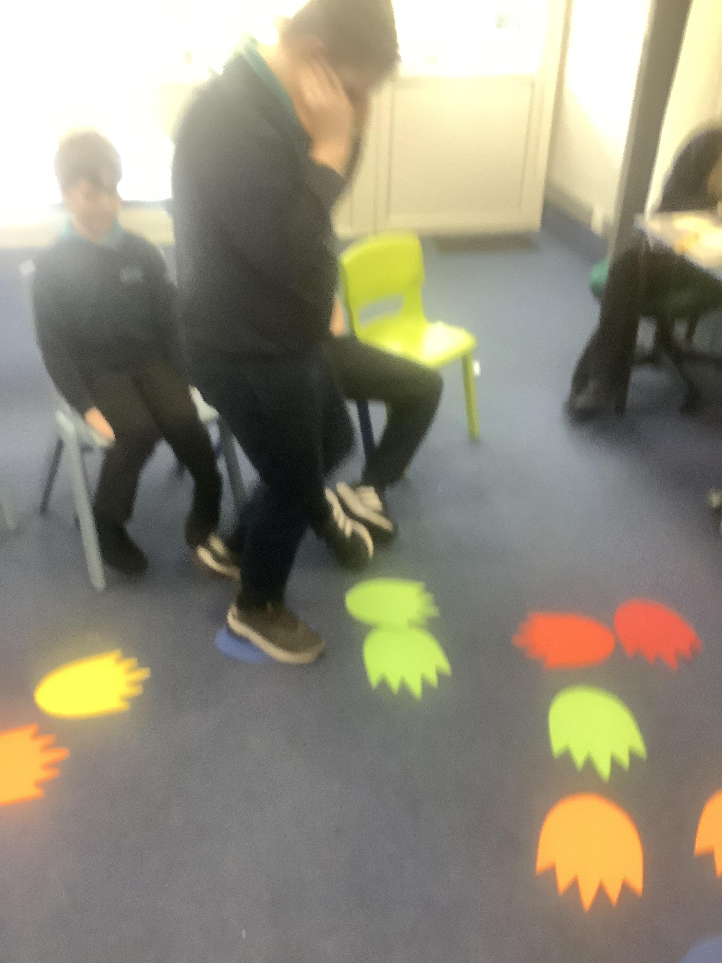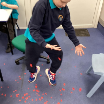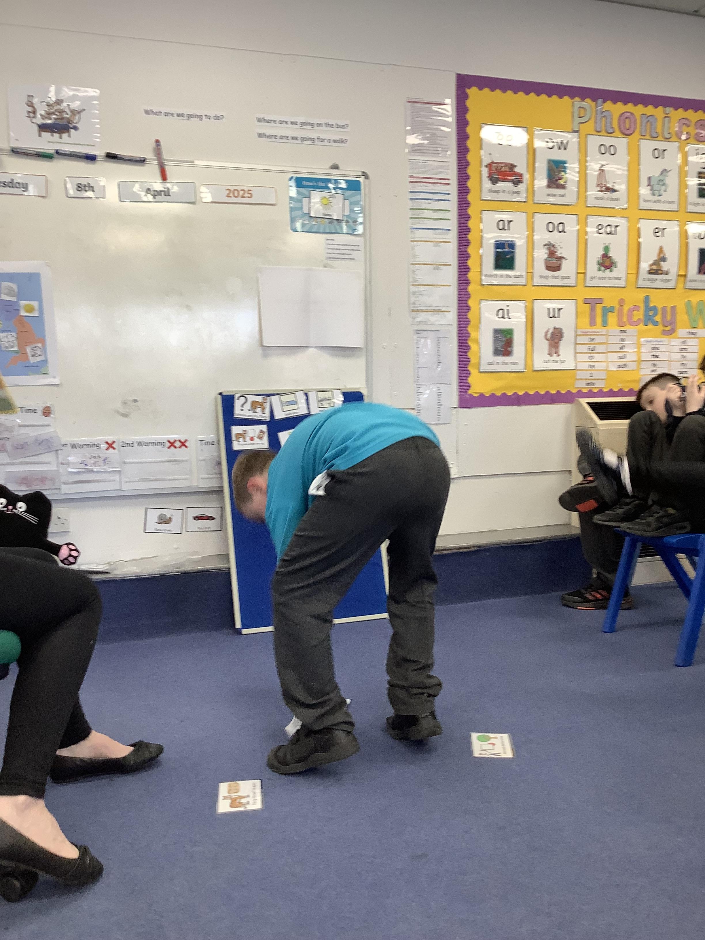 26.03.25 COMPUTING UNPLUGGED: (Physical Development Coding) The children have started following simple pictorial algorithms. They followed the 'Dino Hop' footprints by stepping forward, jumping forwards, hopping, turning etc.