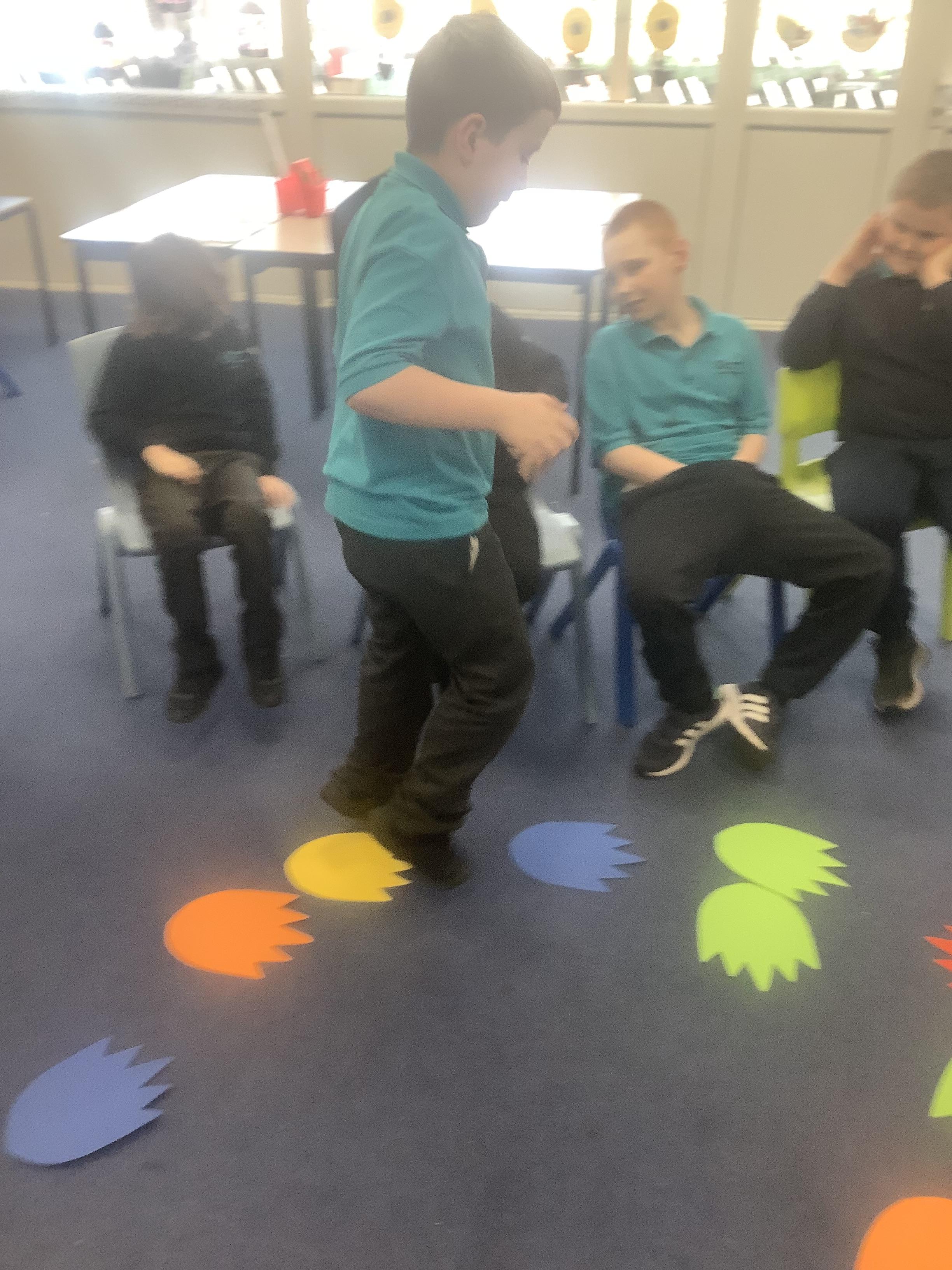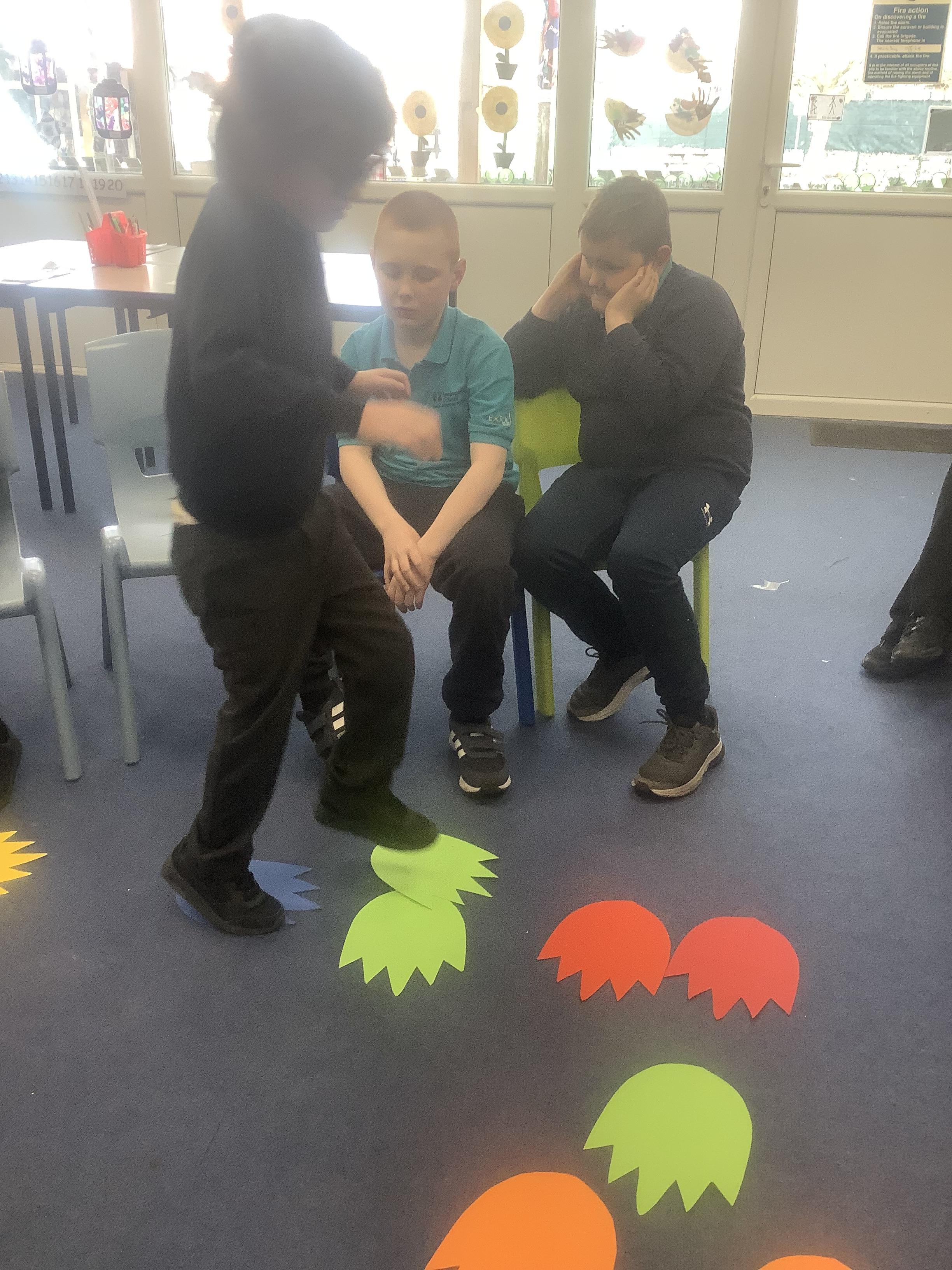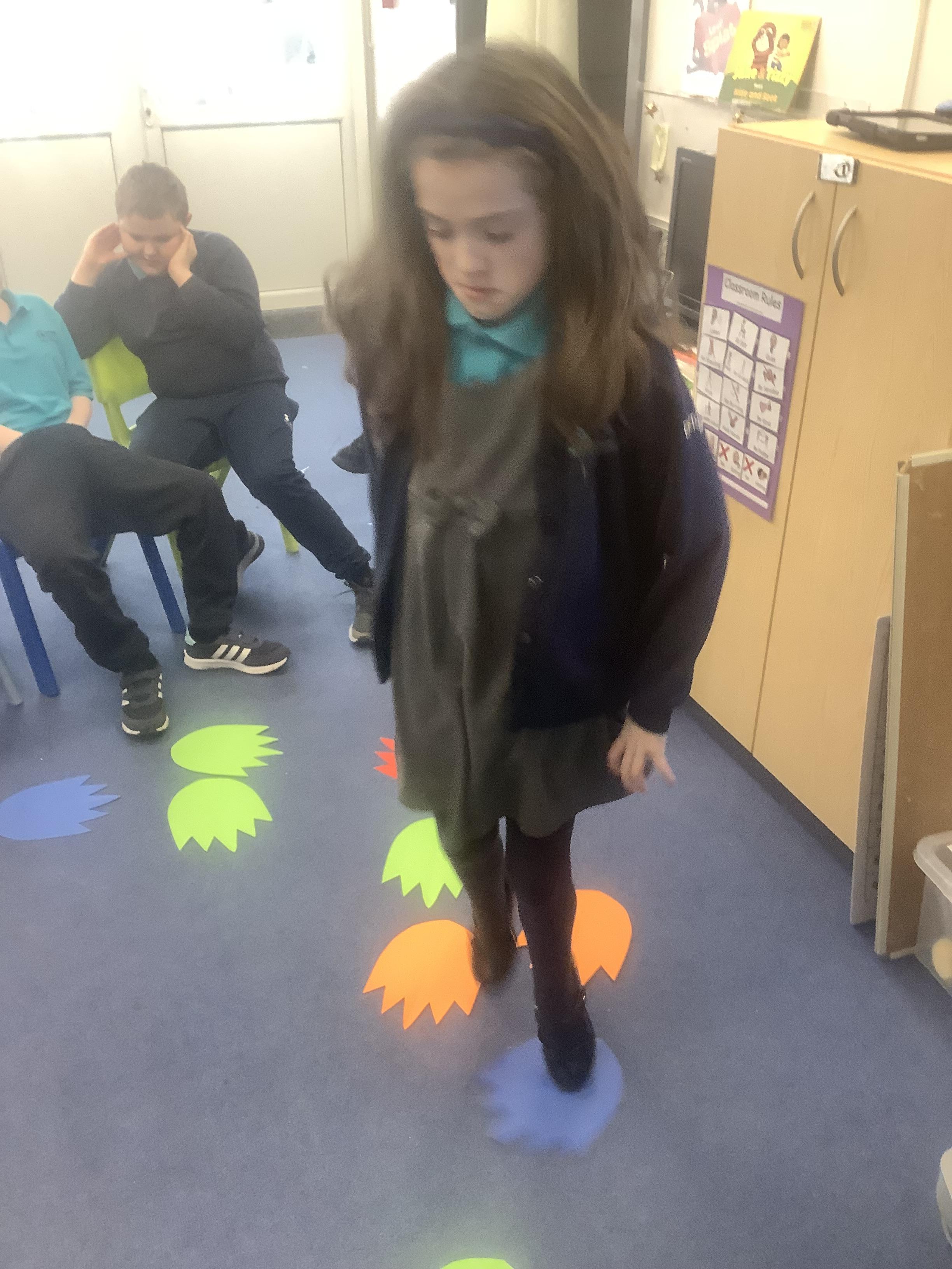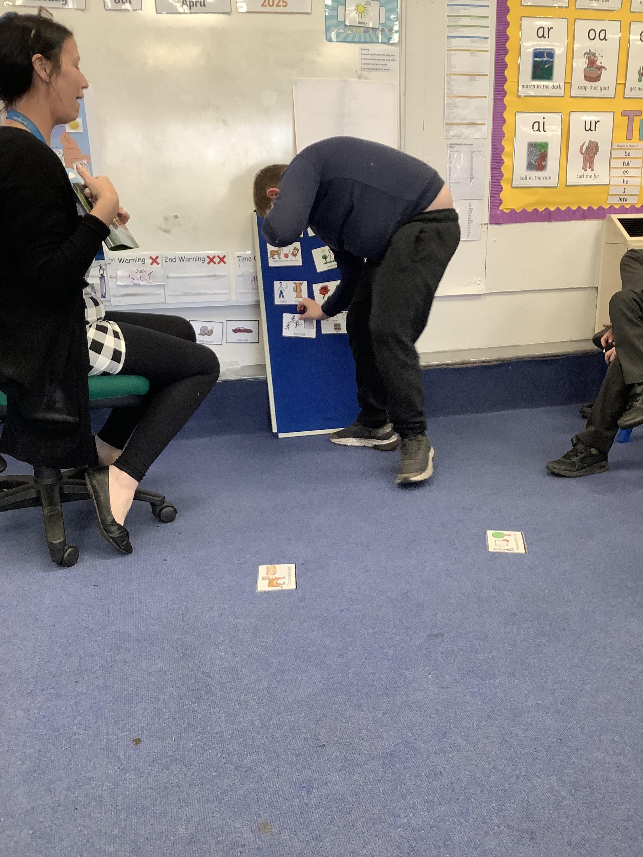 26.03.25 COMPUTING UNPLUGGED: (Physical Development Coding) The children have started following simple pictorial algorithms. They followed the 'Dino Hop' footprints by stepping forward, jumping forwards, hopping, turning etc.