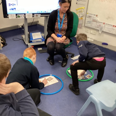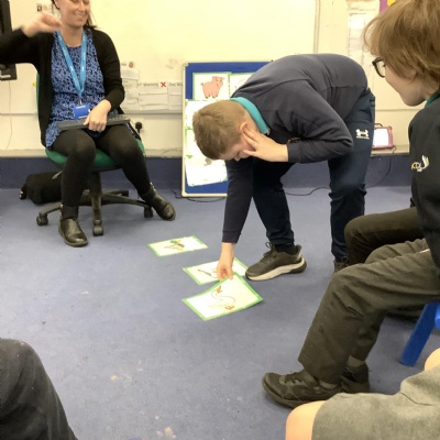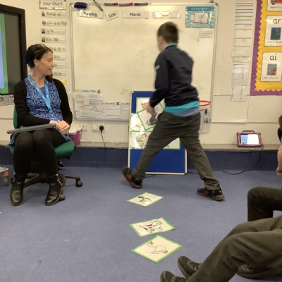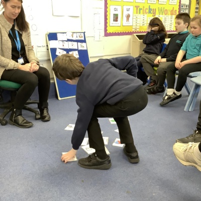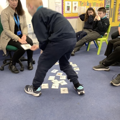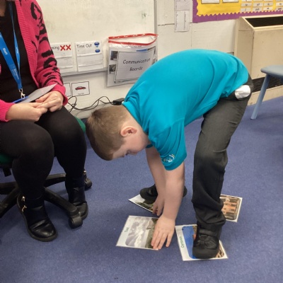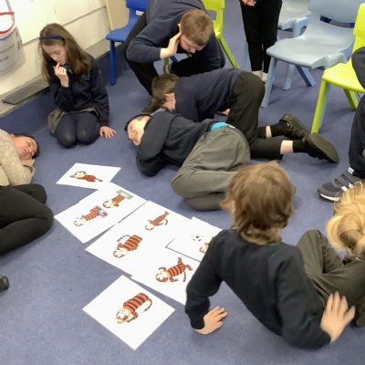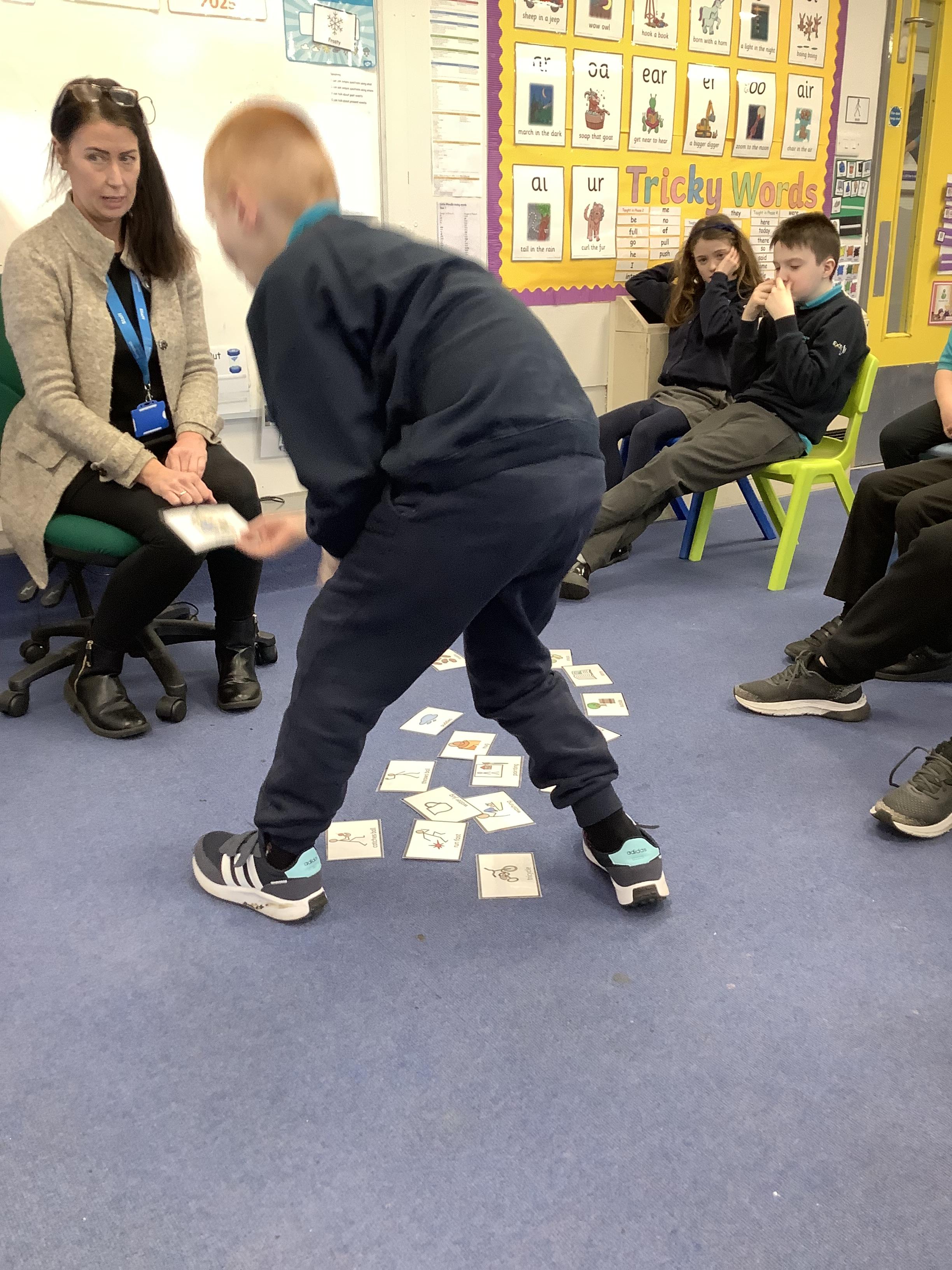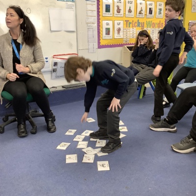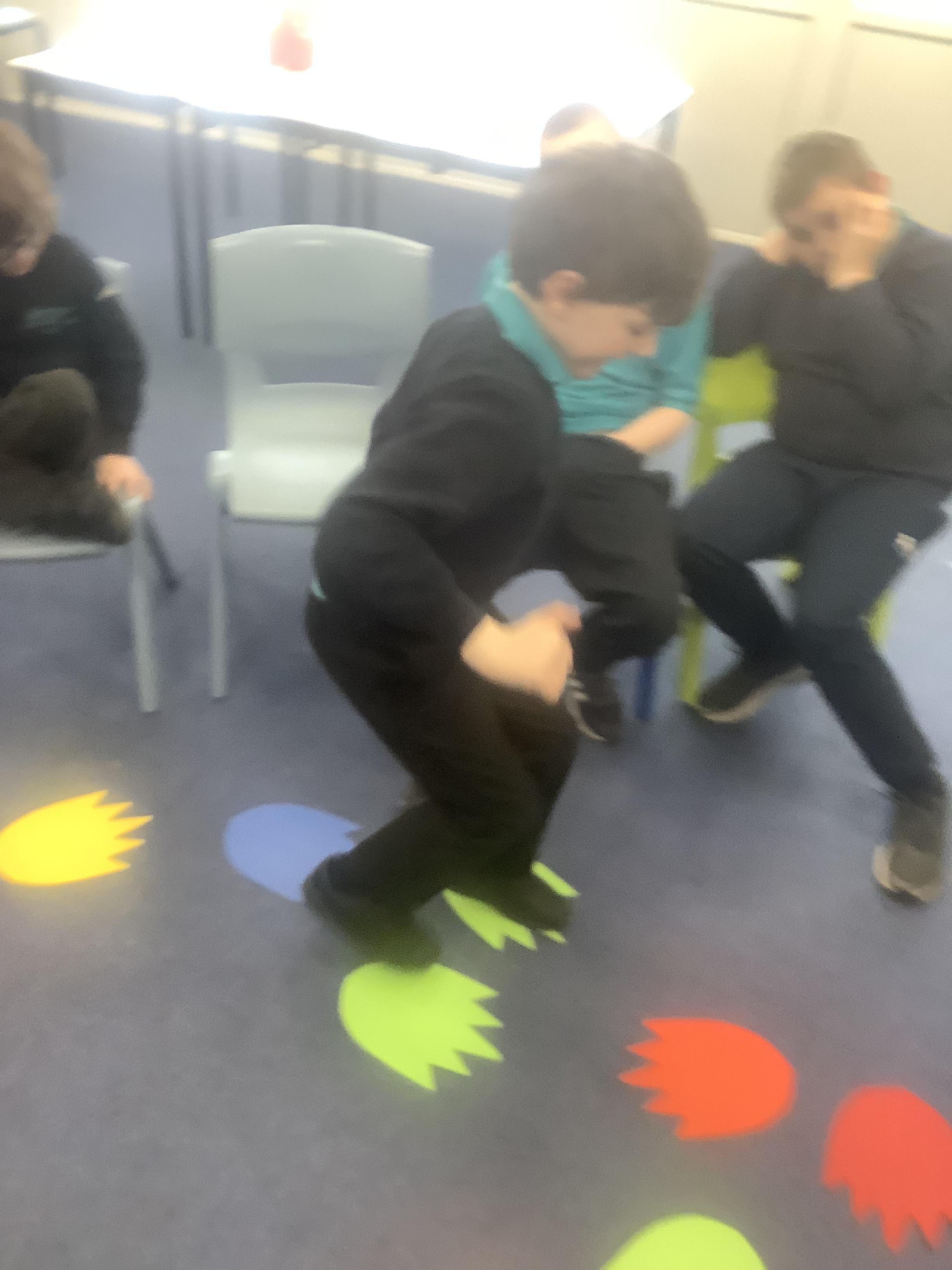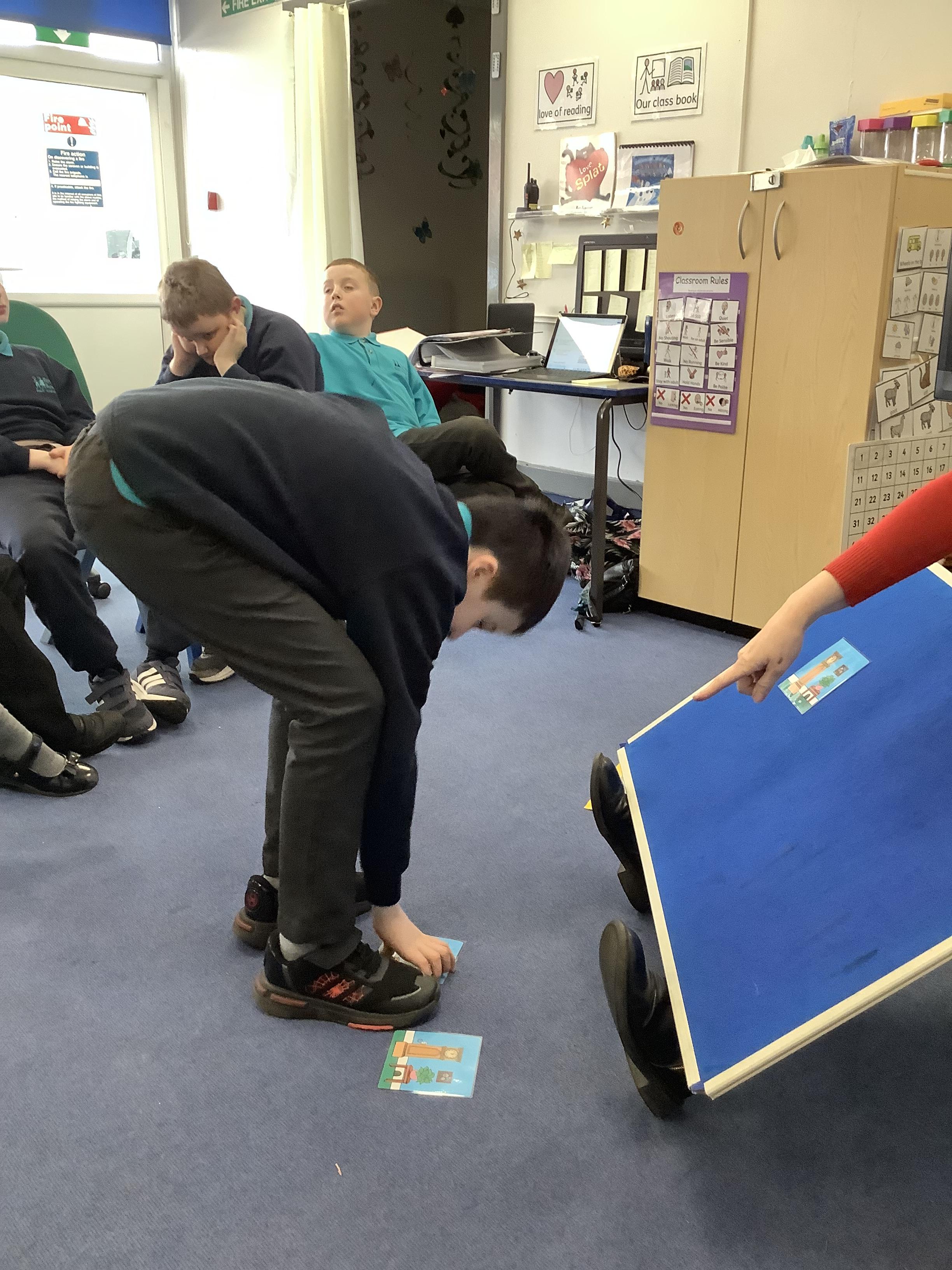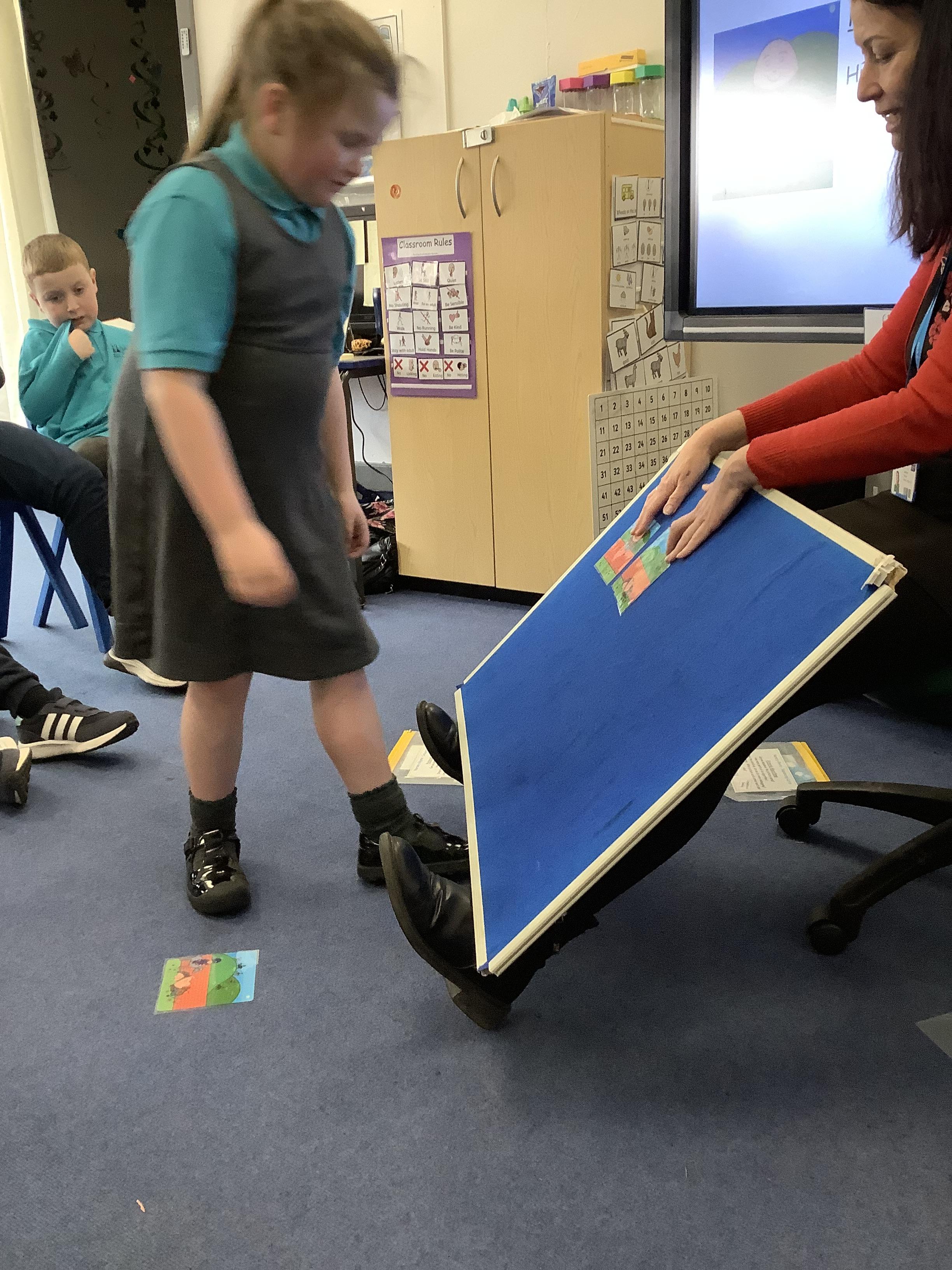 26.03.25 COMPUTING UNPLUGGED: (Physical Development Coding) The children have started following simple pictorial algorithms. They followed the 'Dino Hop' footprints by stepping forward, jumping forwards, hopping, turning etc.