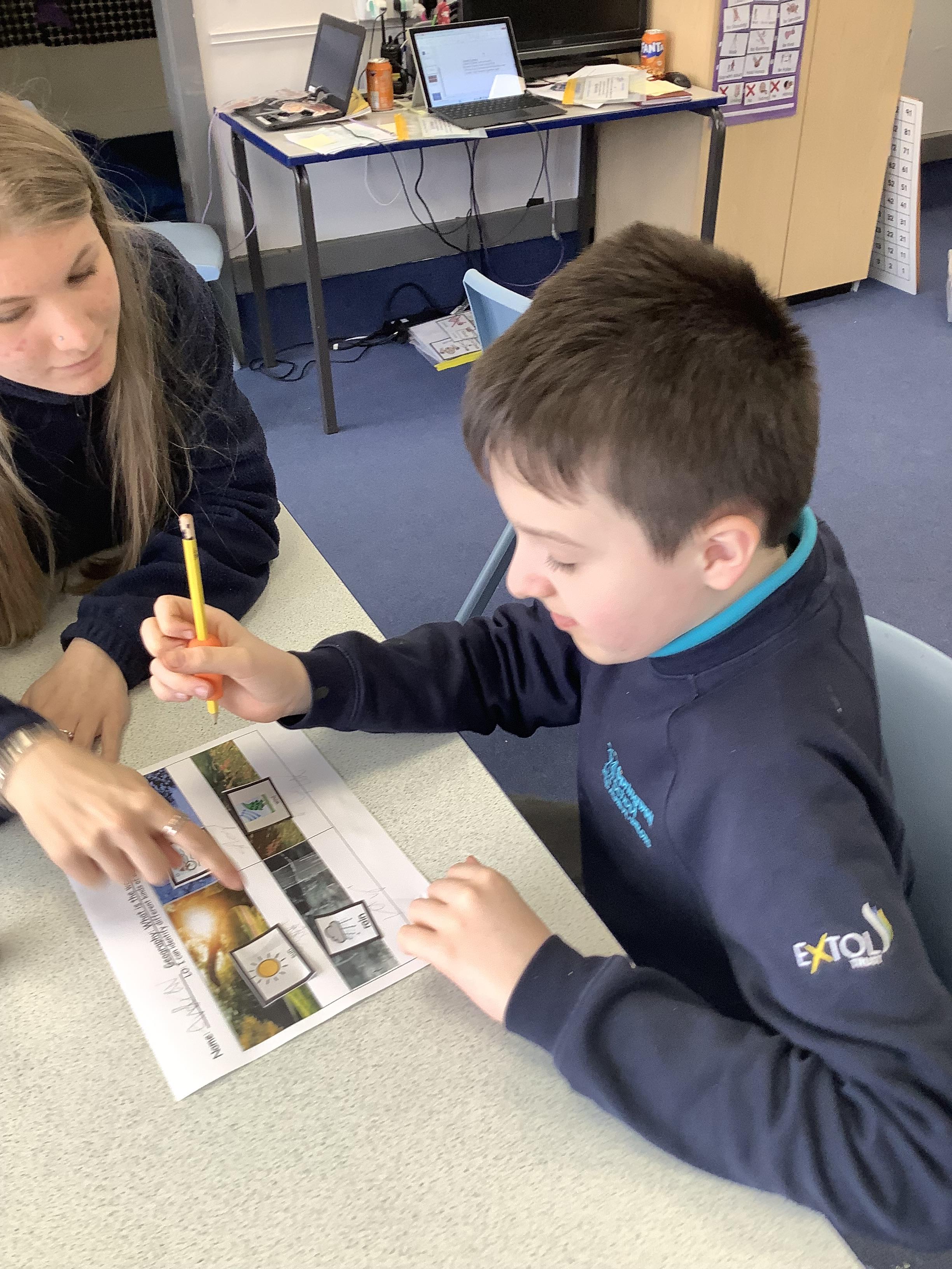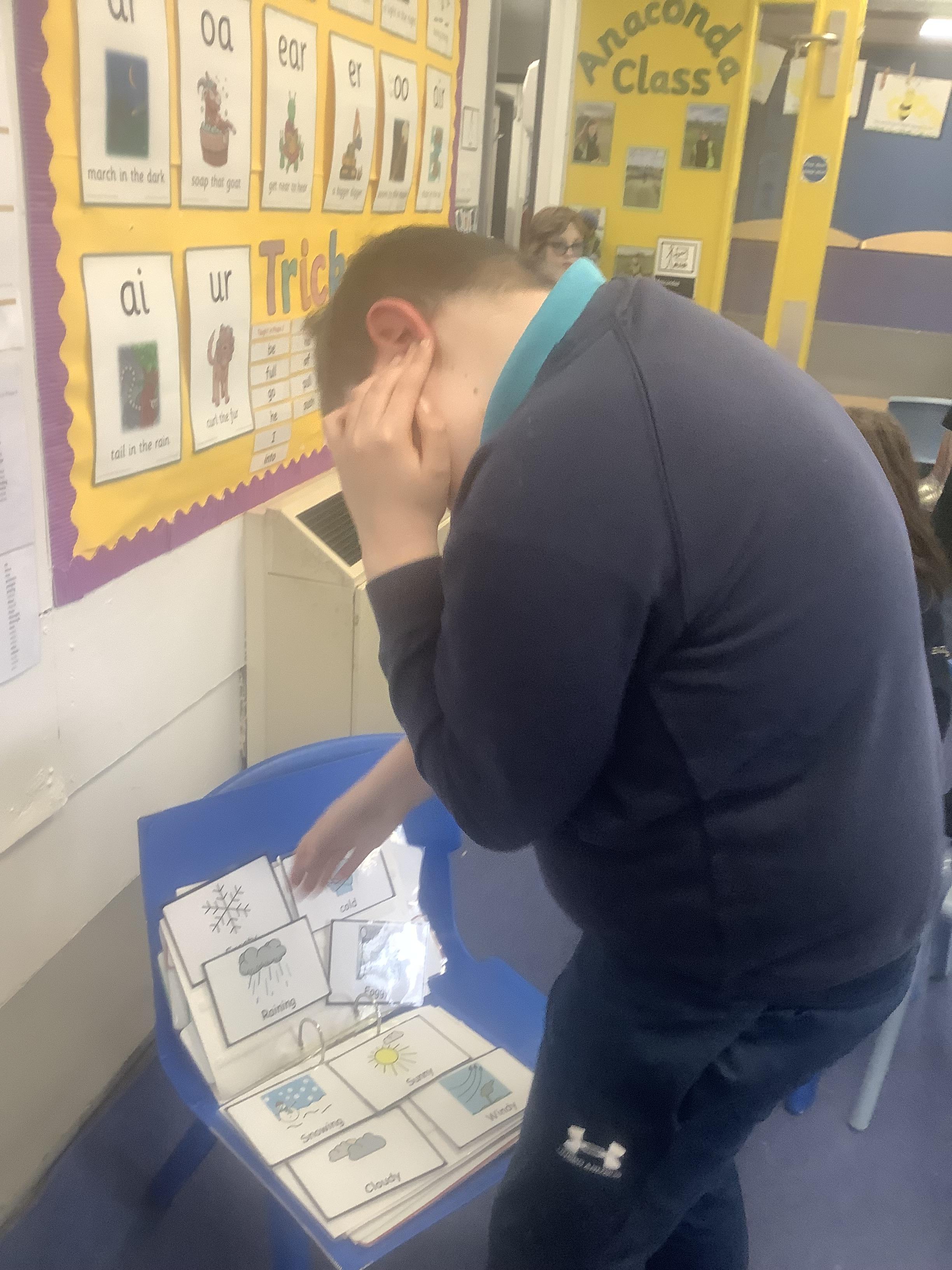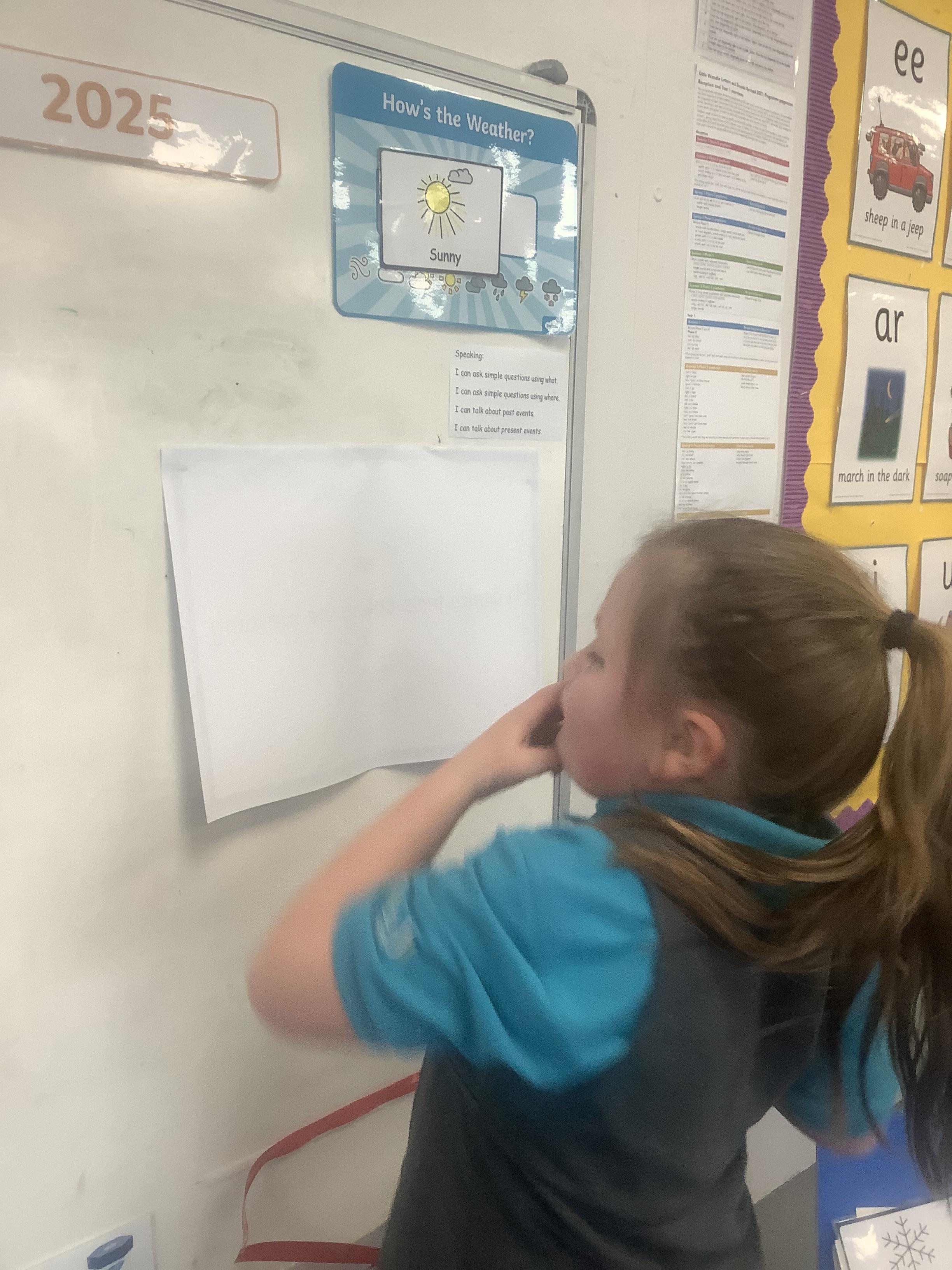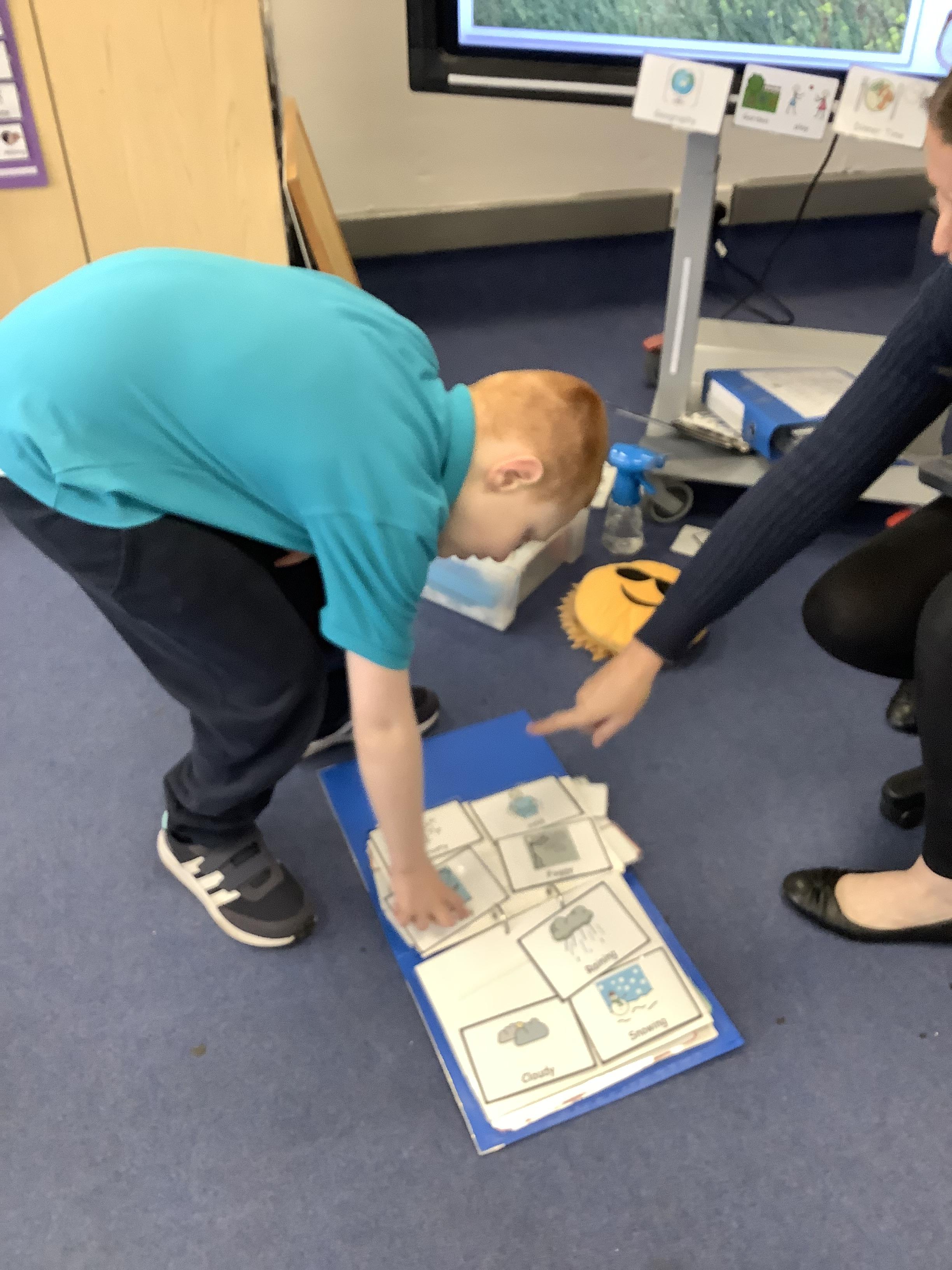 19.03.25 GEOGRAPHY: Each morning, after morning greetings, we sing the weather song. Following this, we all look out the window and discuss what the weather is like today. The children choose the correct weather symbol and place it on our weather chart.