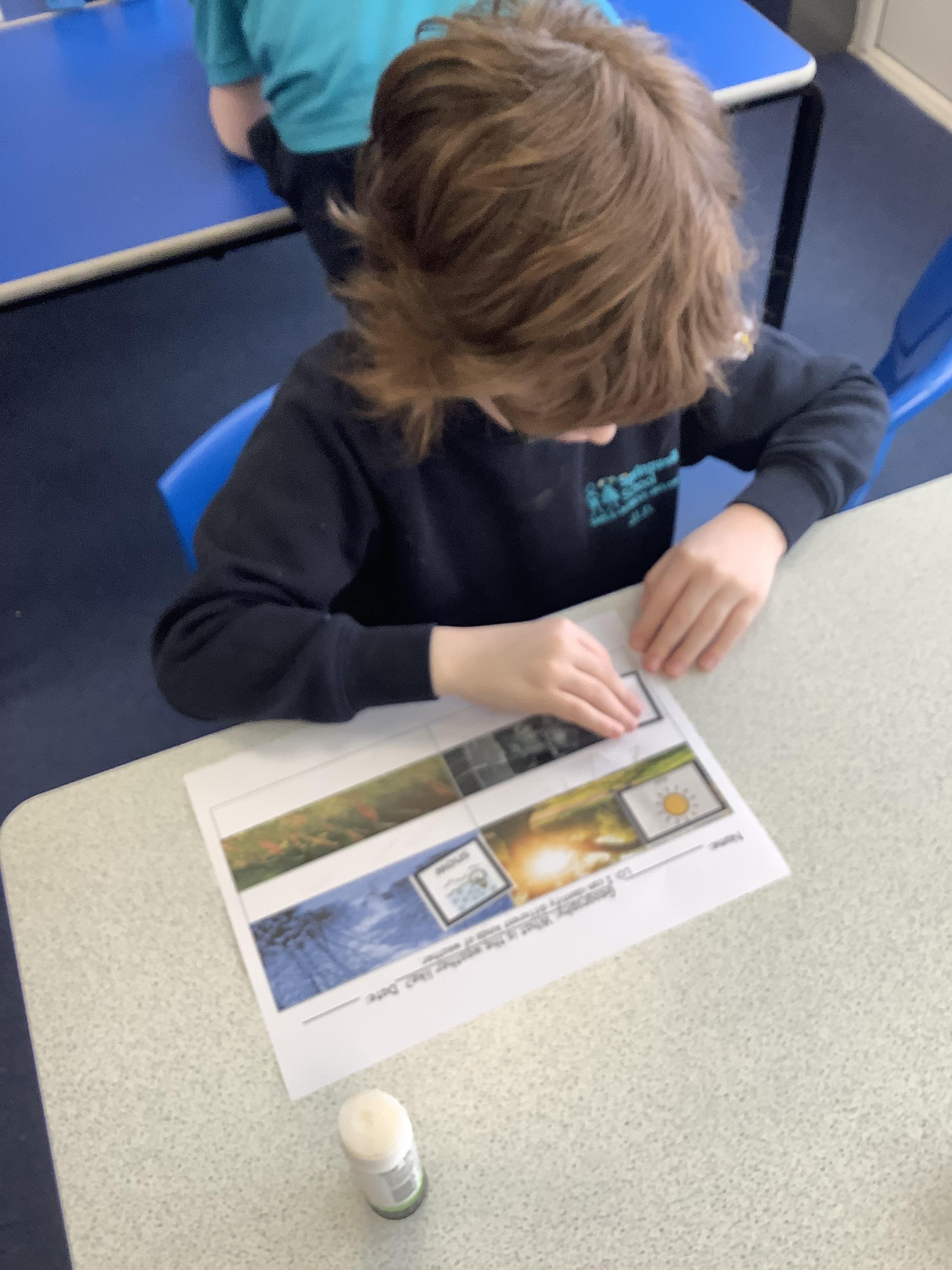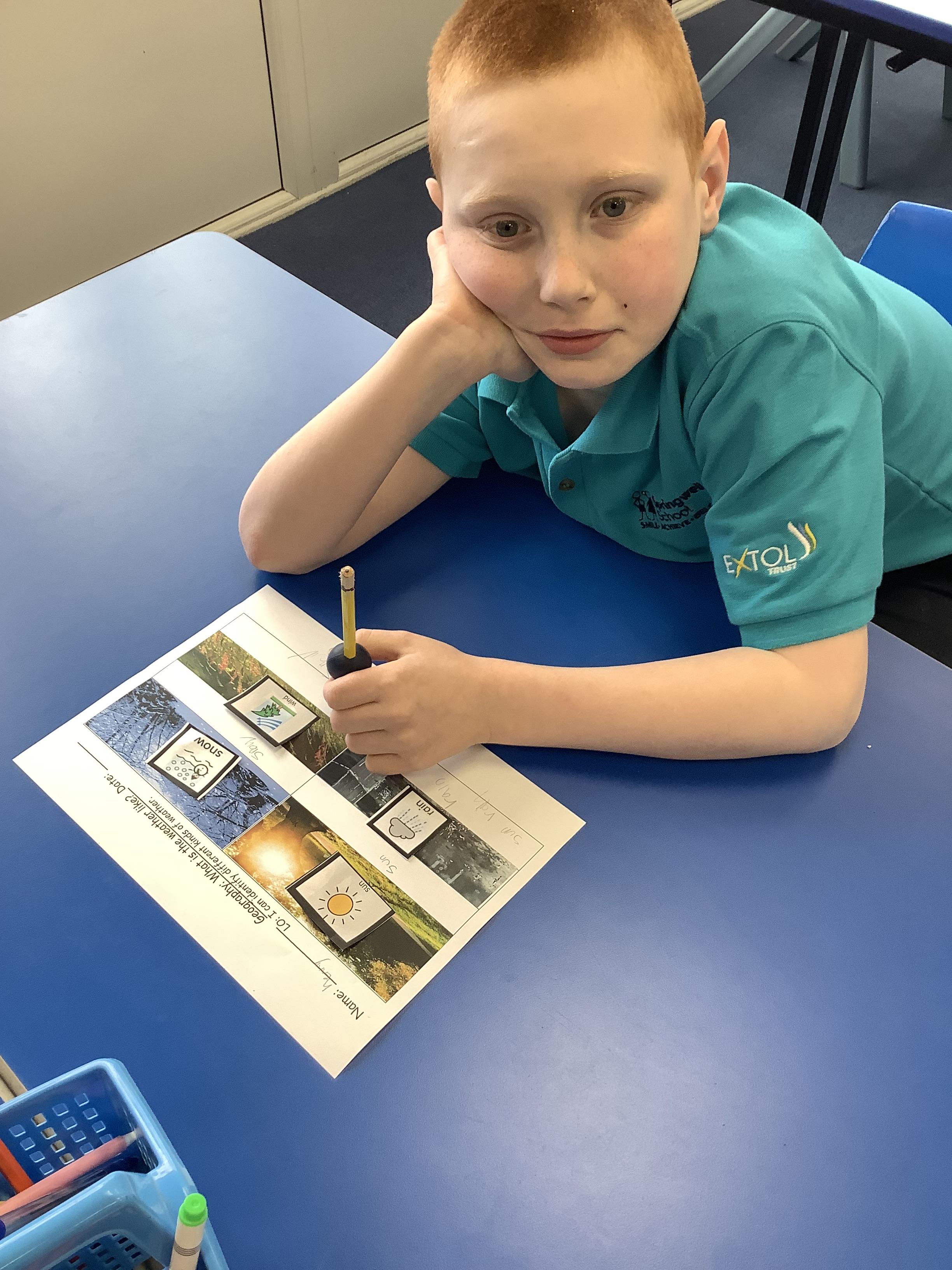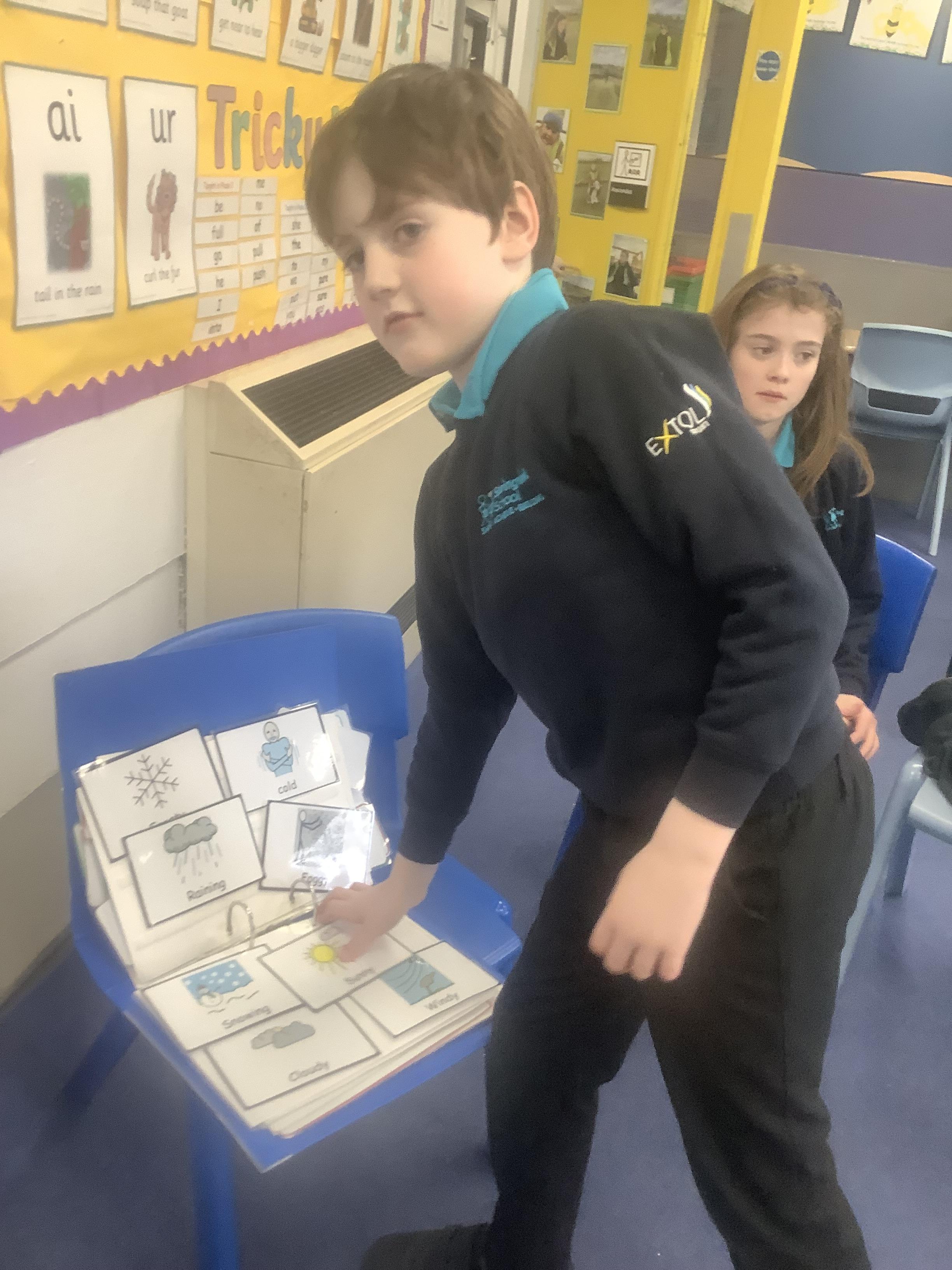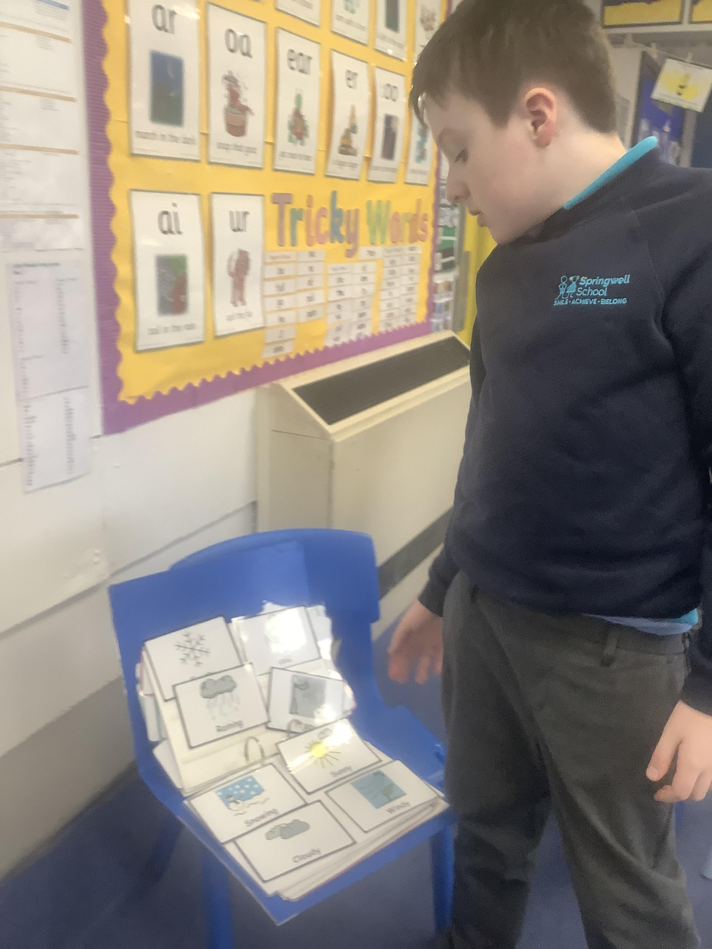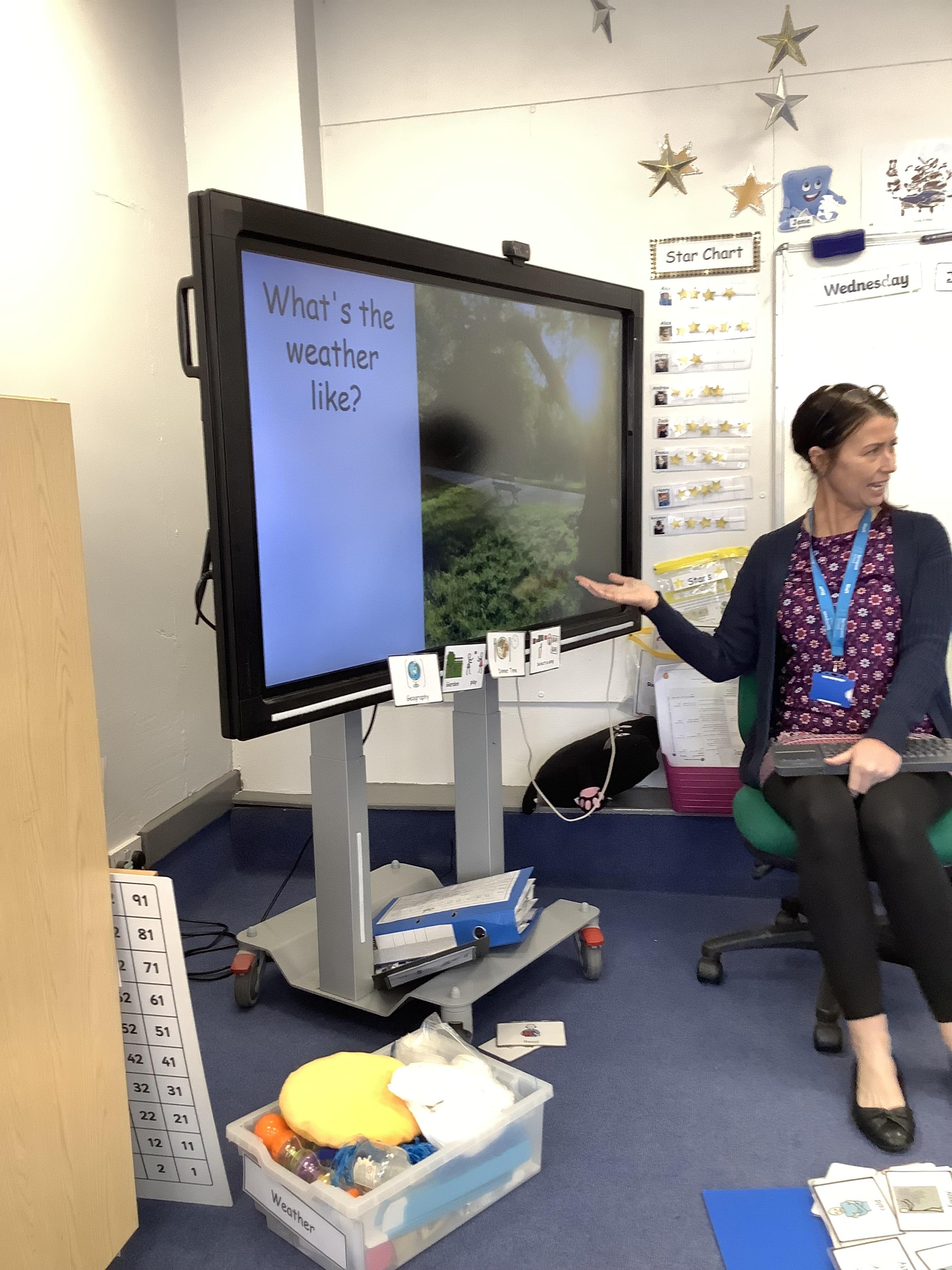 19.03.25 GEOGRAPHY: Each morning, after morning greetings, we sing the weather song. Following this, we all look out the window and discuss what the weather is like today. The children choose the correct weather symbol and place it on our weather chart.