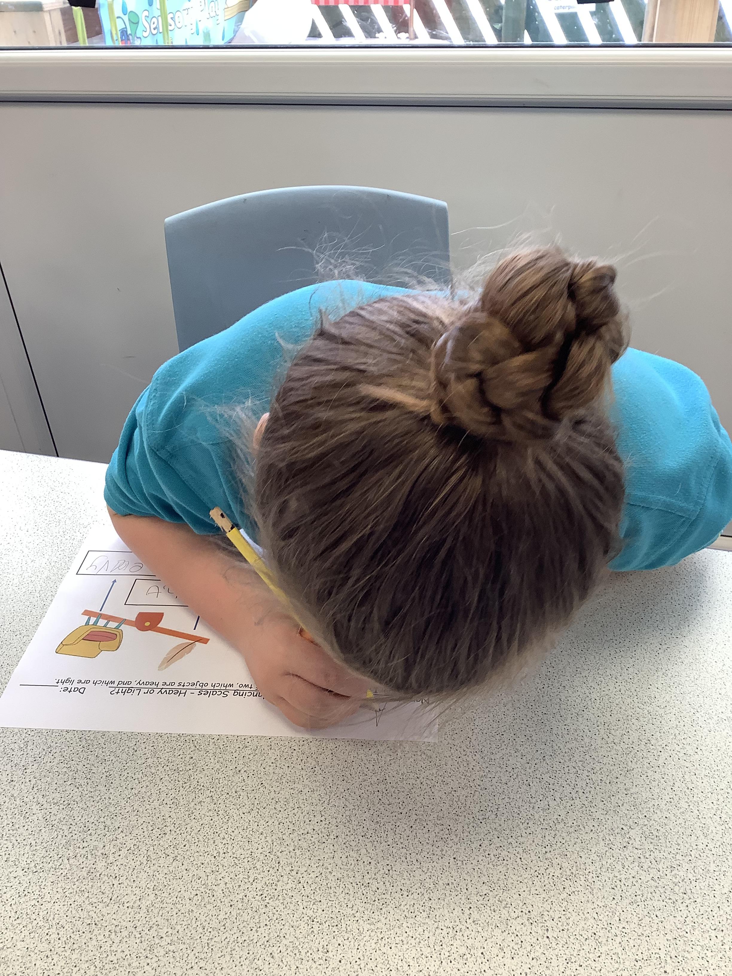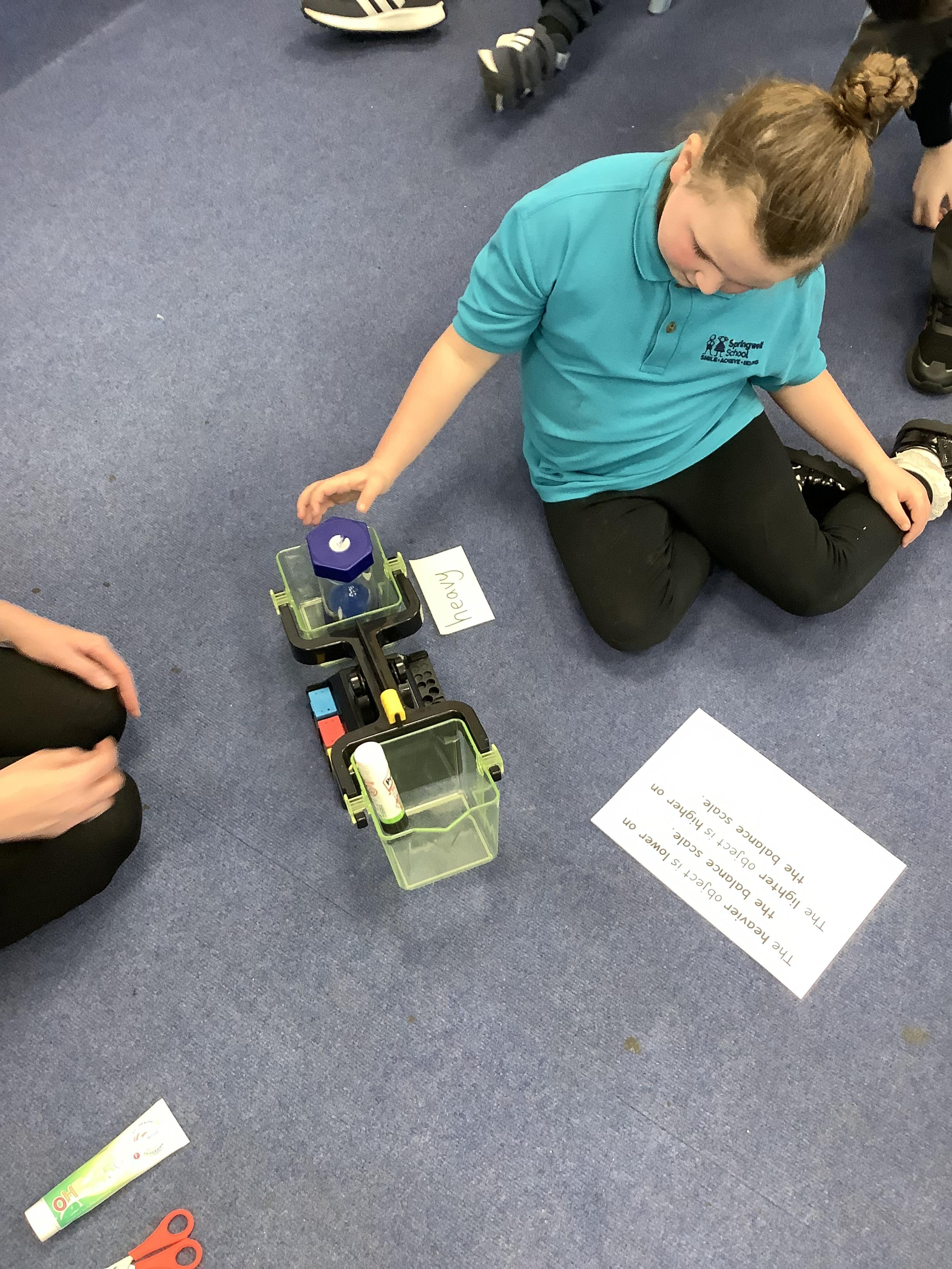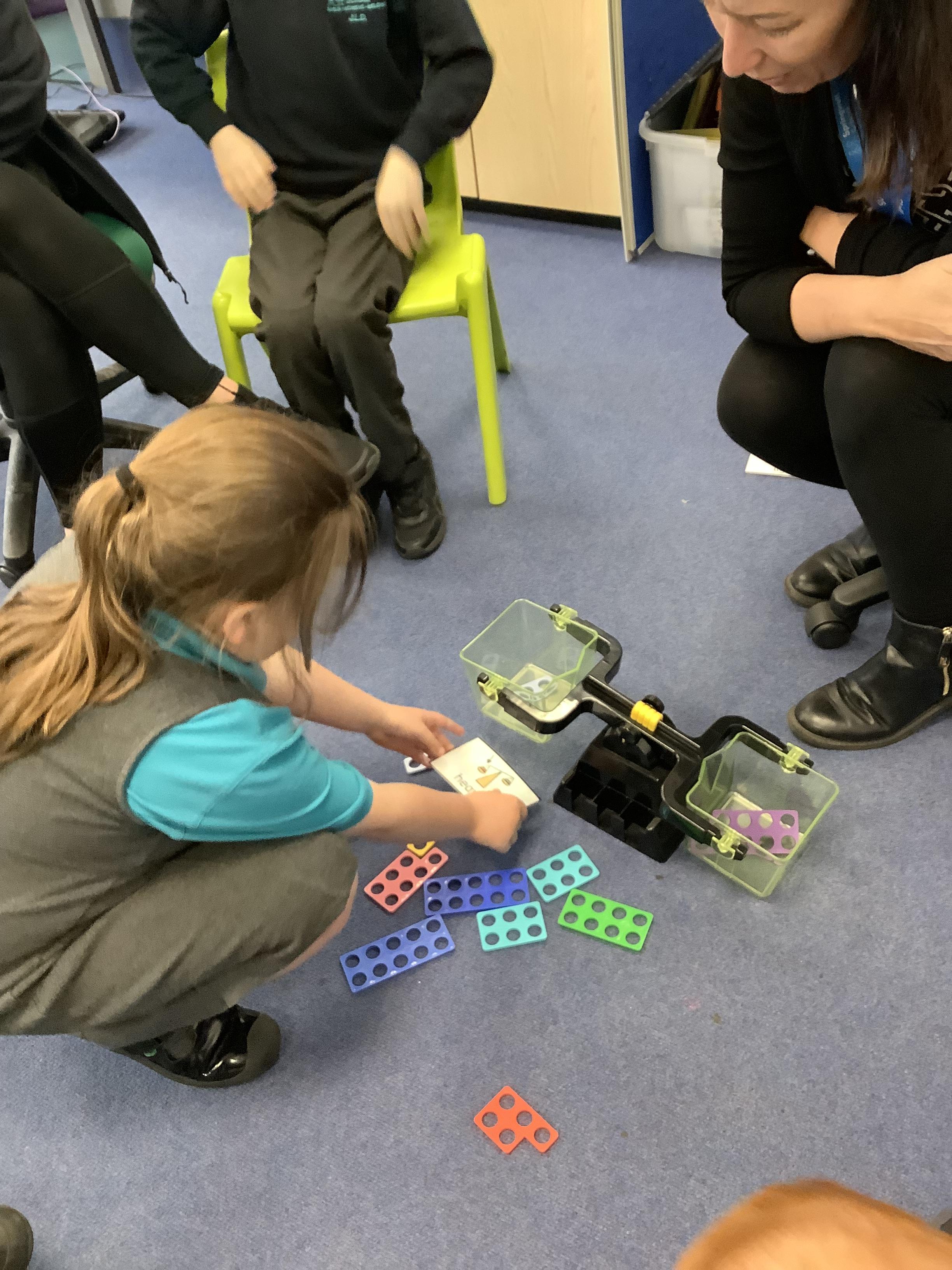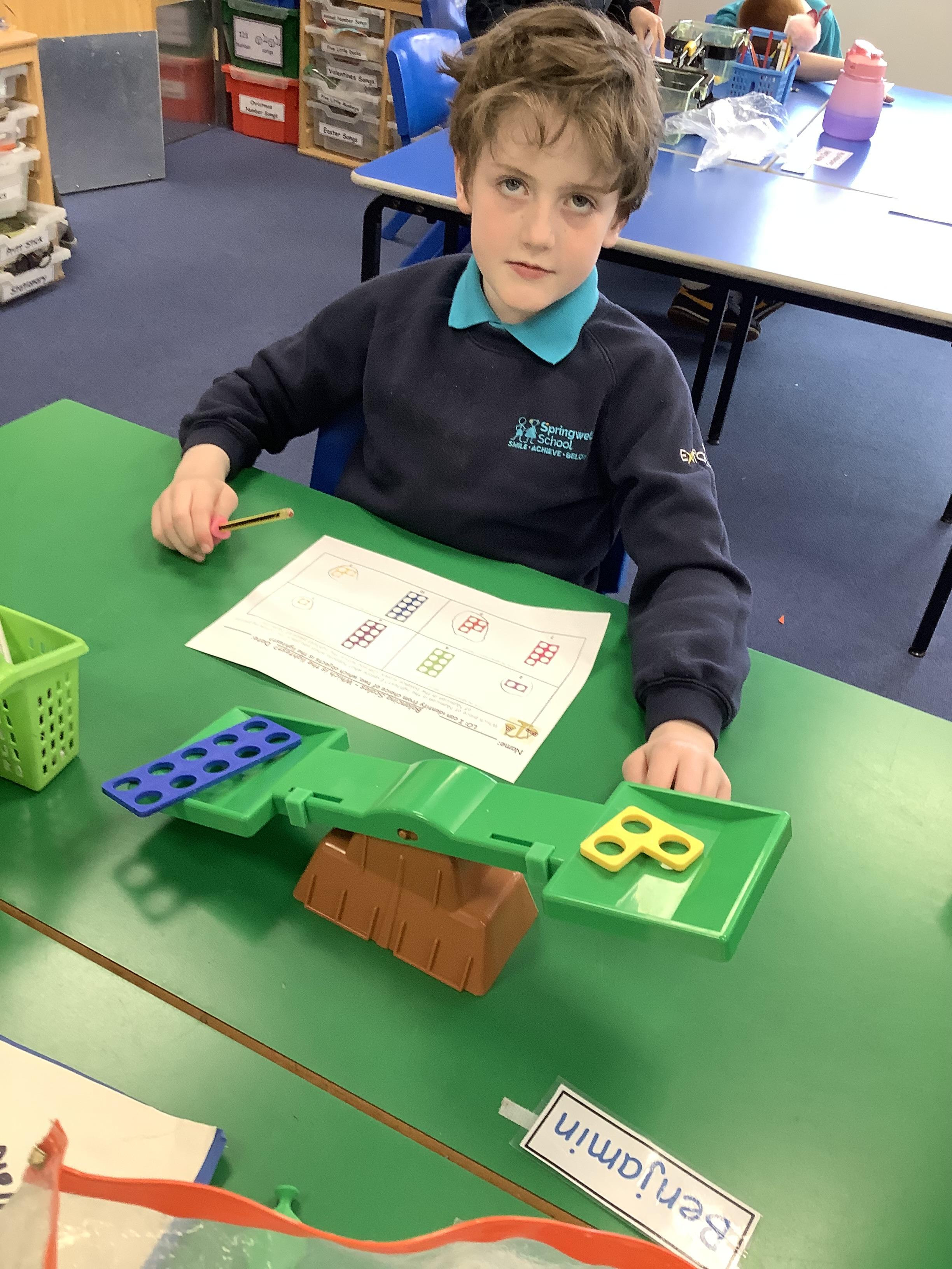07.04.25 MATHS: MASS The children have been using the balance scales to identify from choice of two, which piece of numicon is the heaviest and which piece is the lighest.