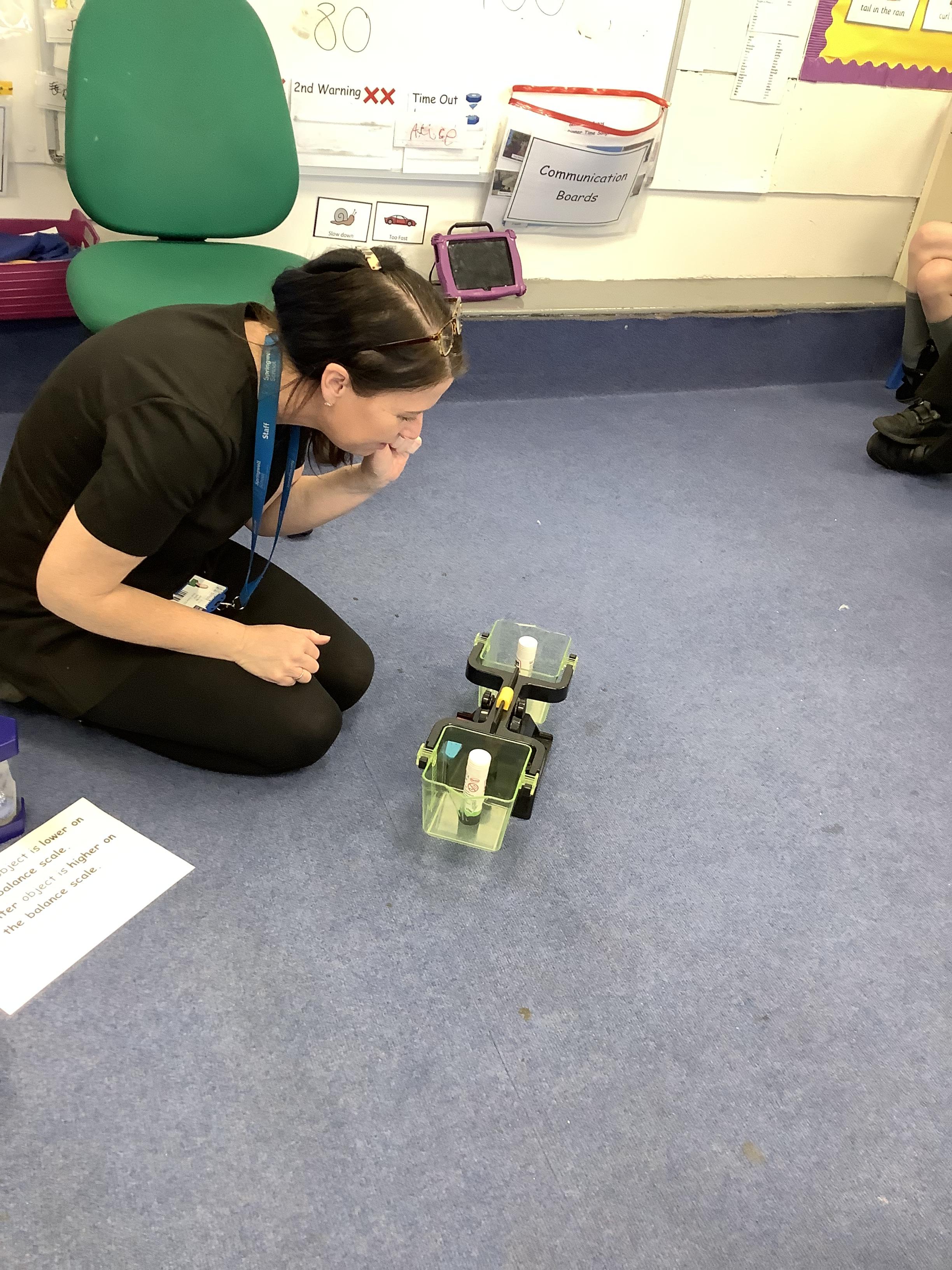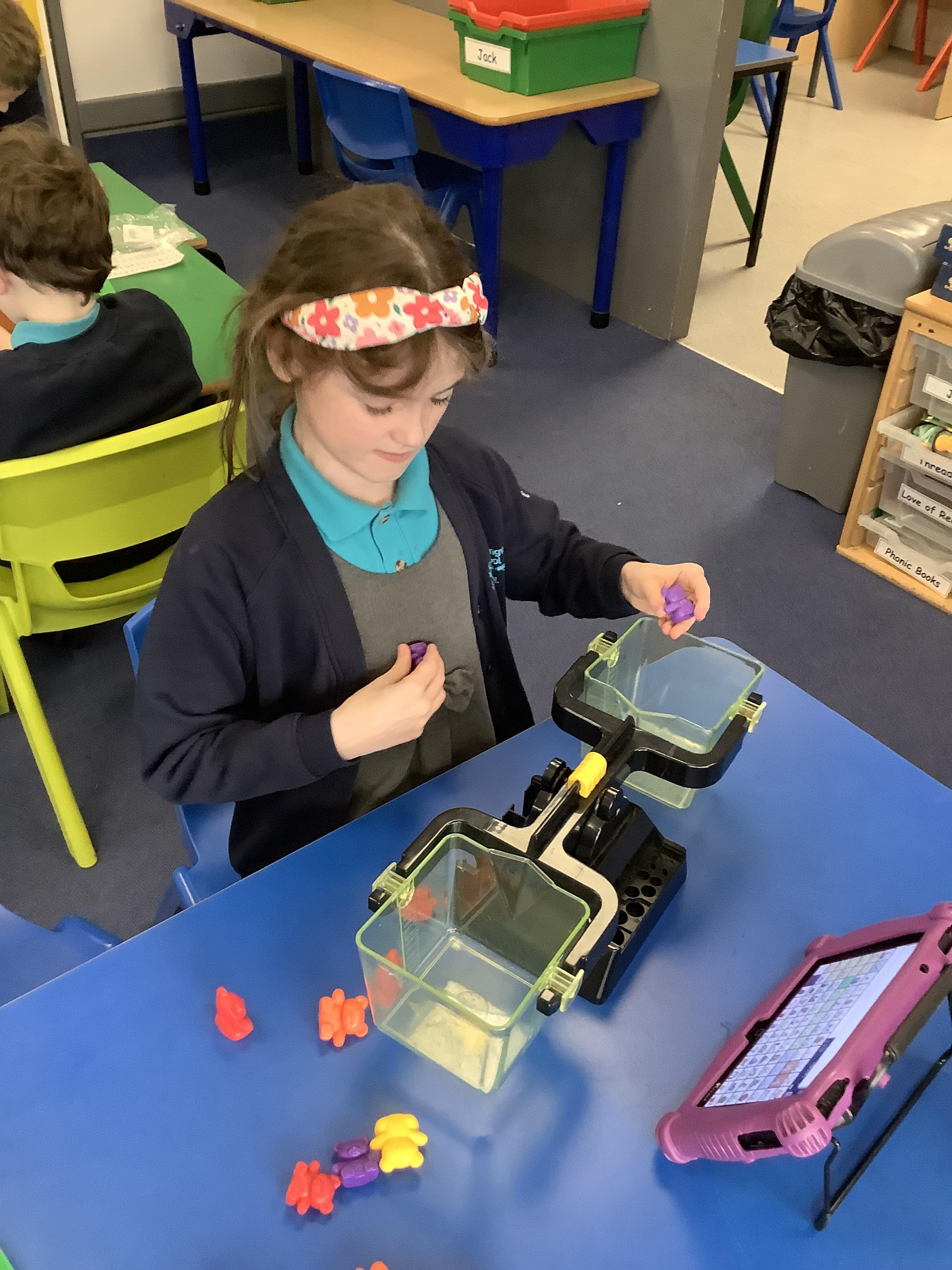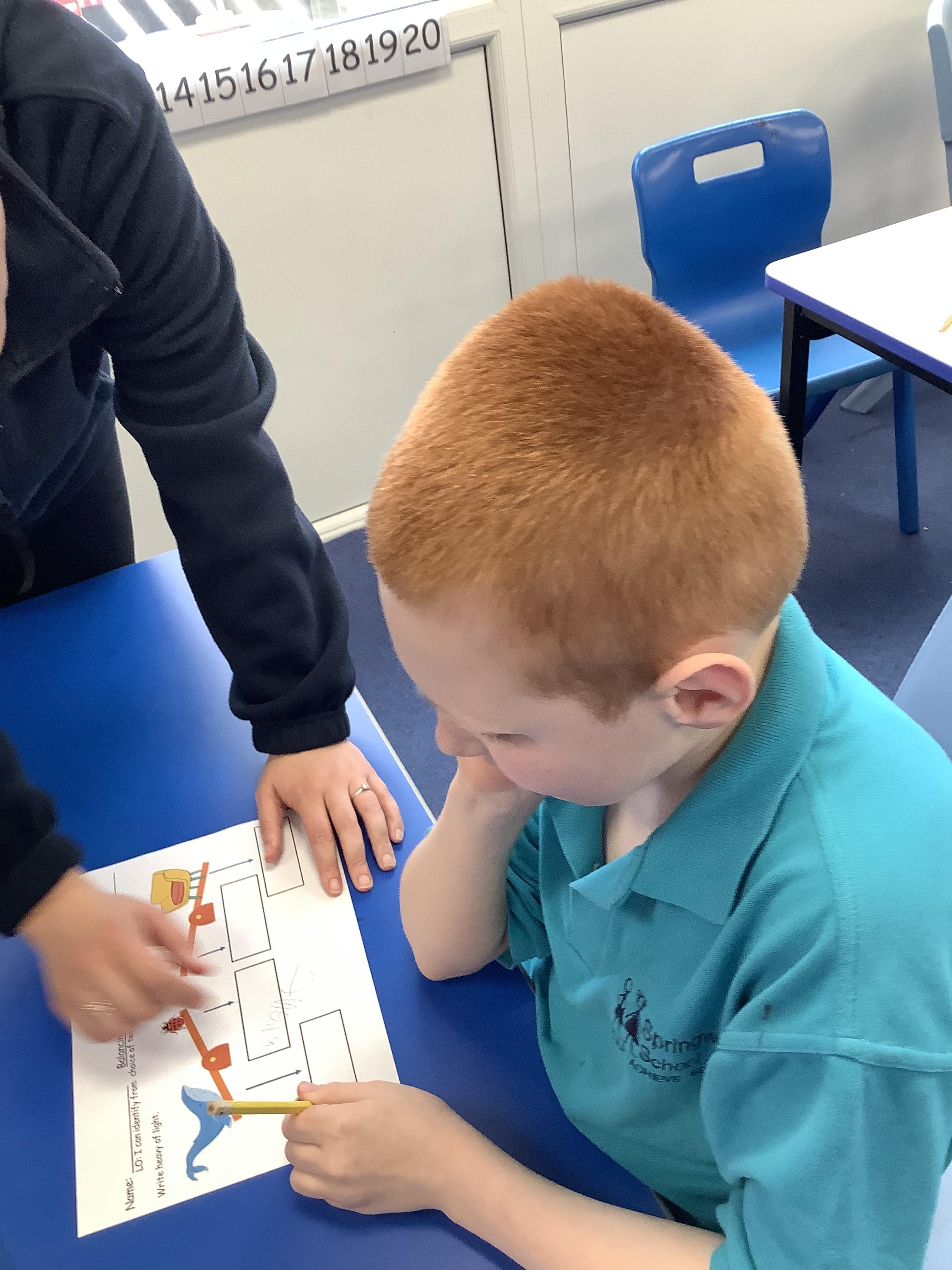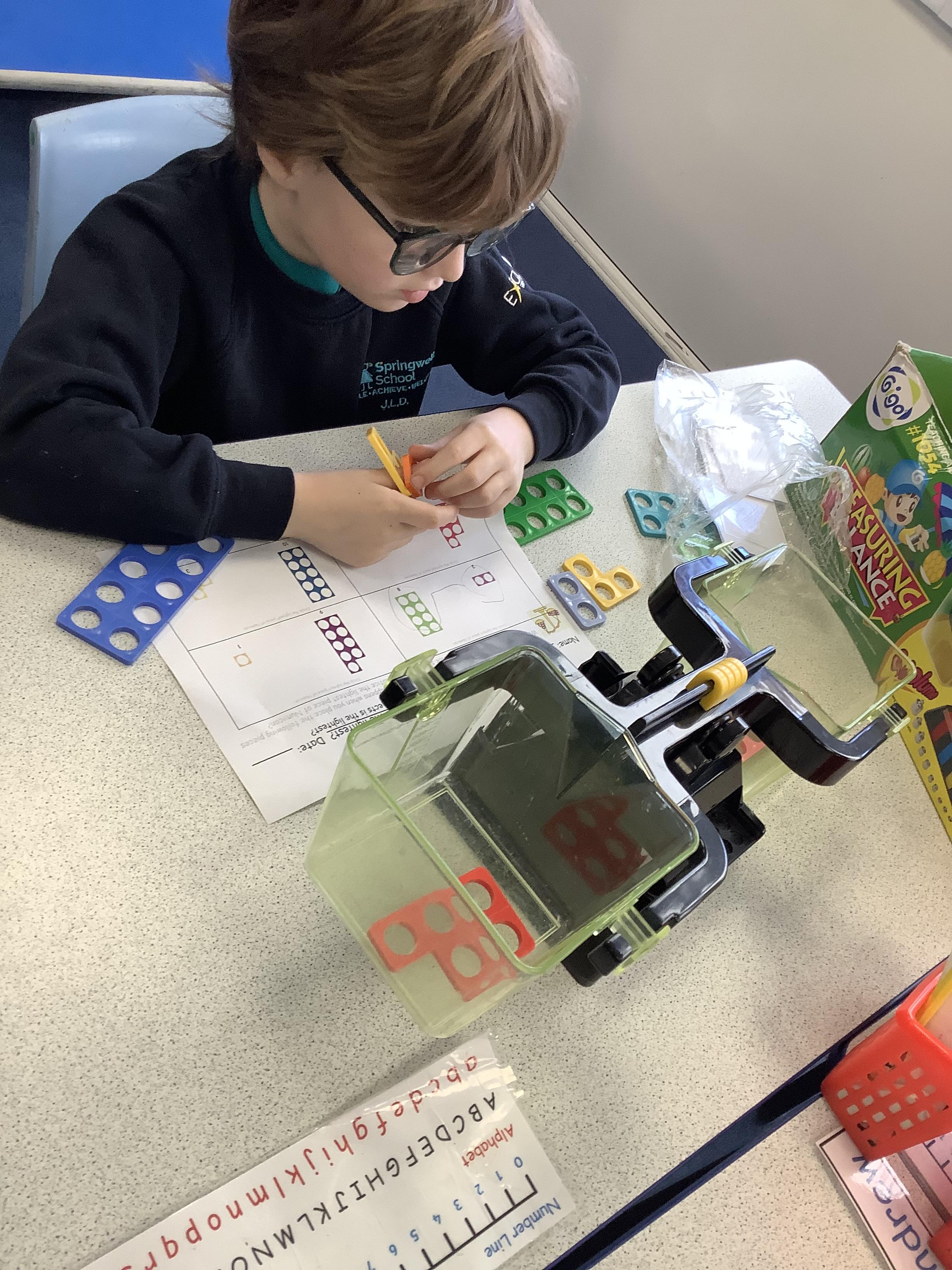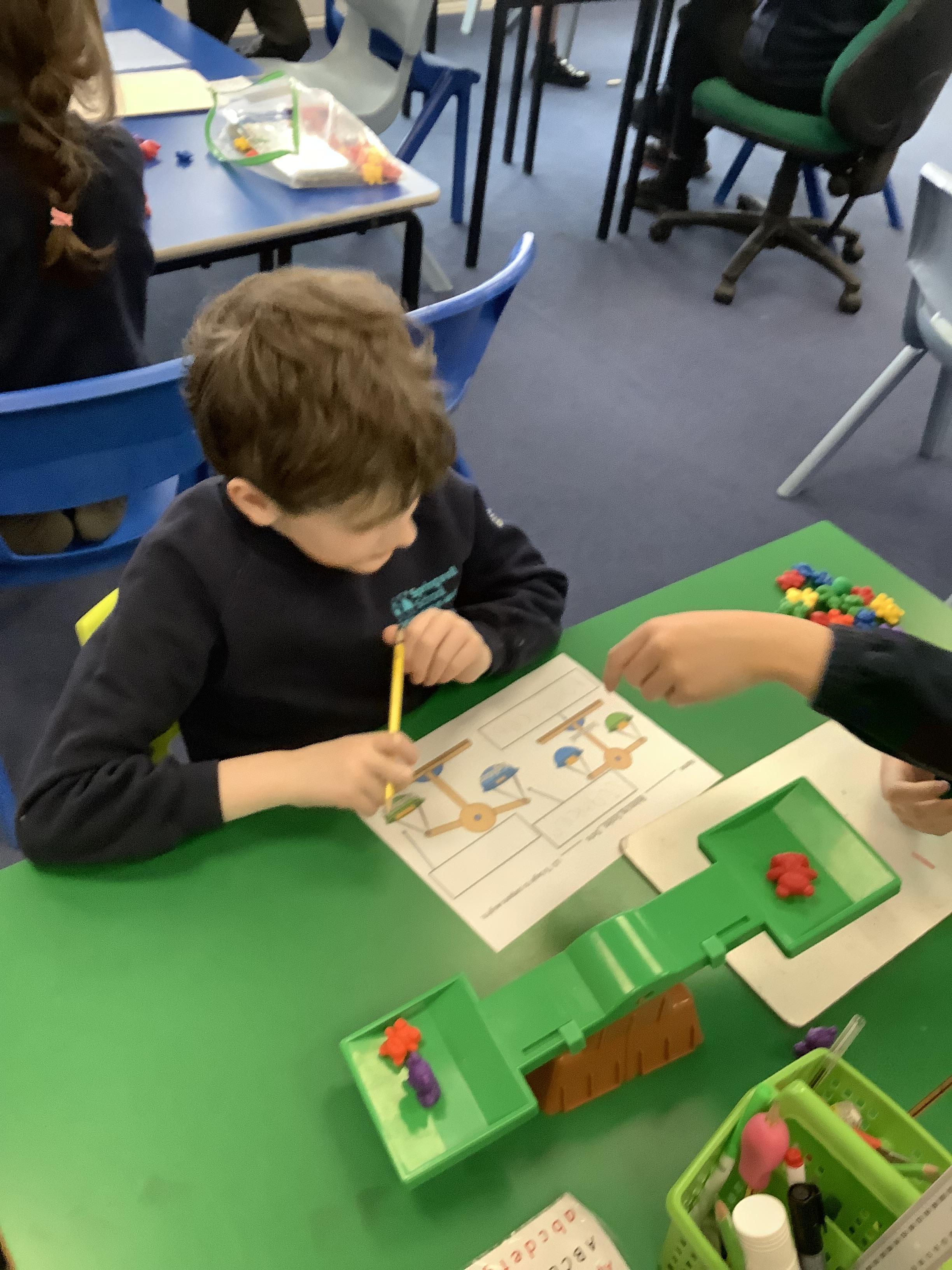 07.04.25 MATHS: MASS The children have been using the balance scales to identify from choice of two, which piece of numicon is the heaviest and which piece is the lighest.