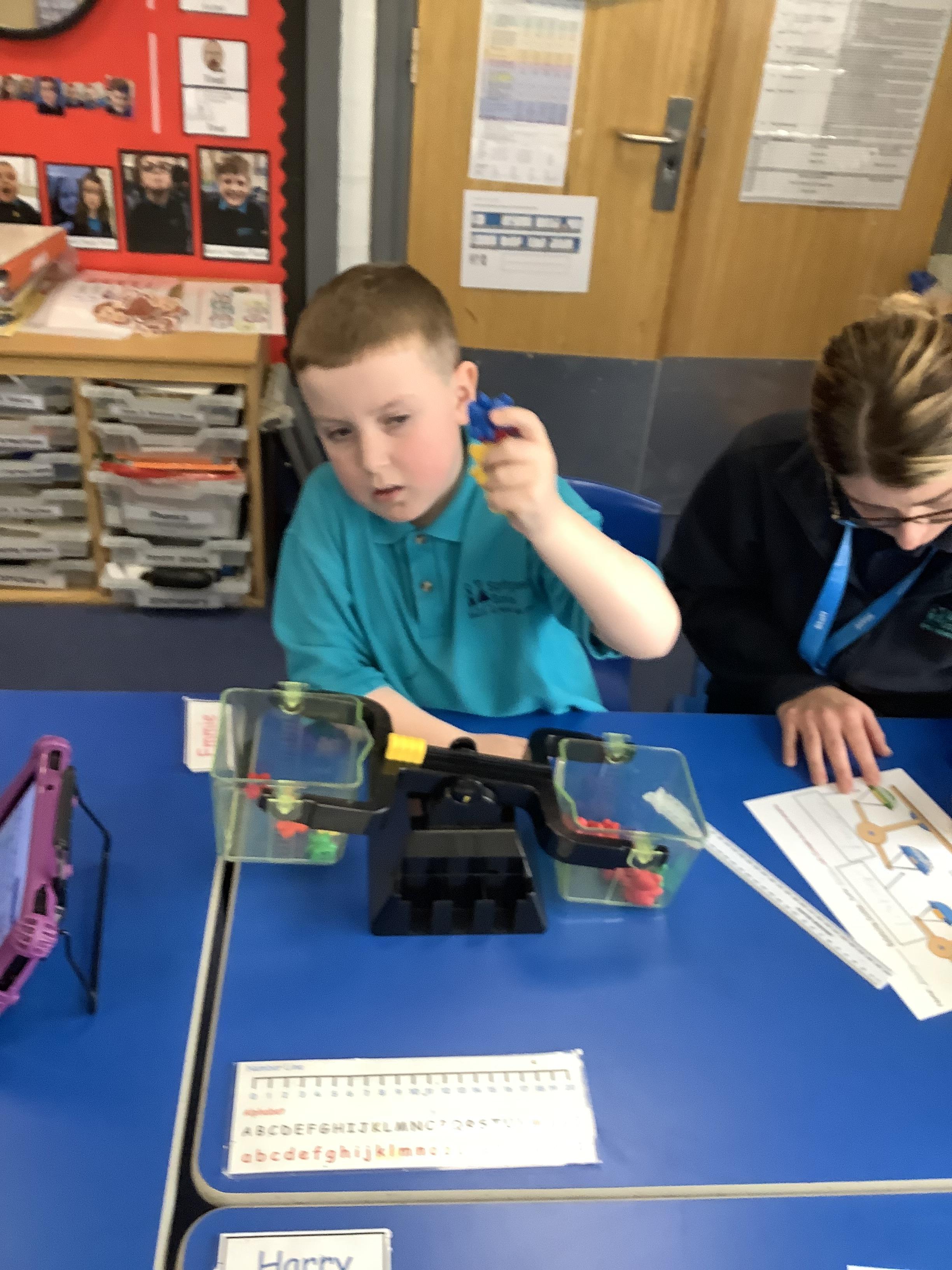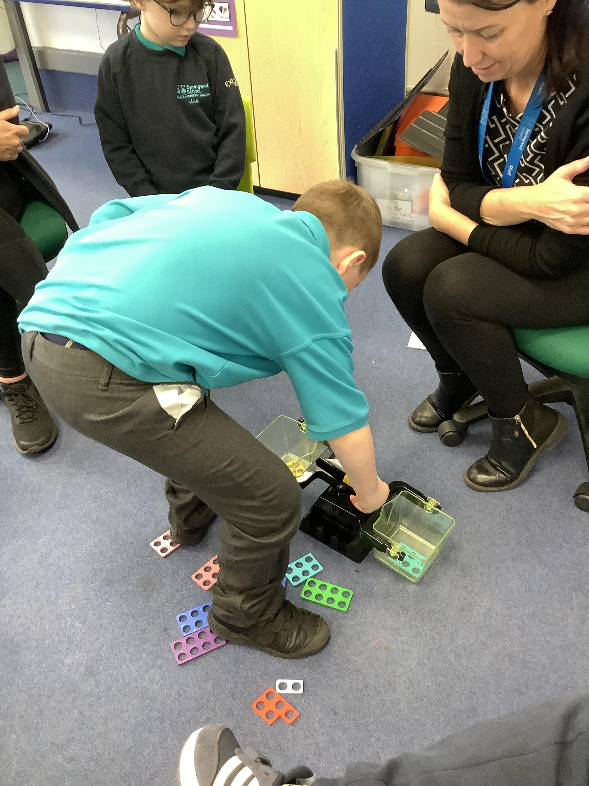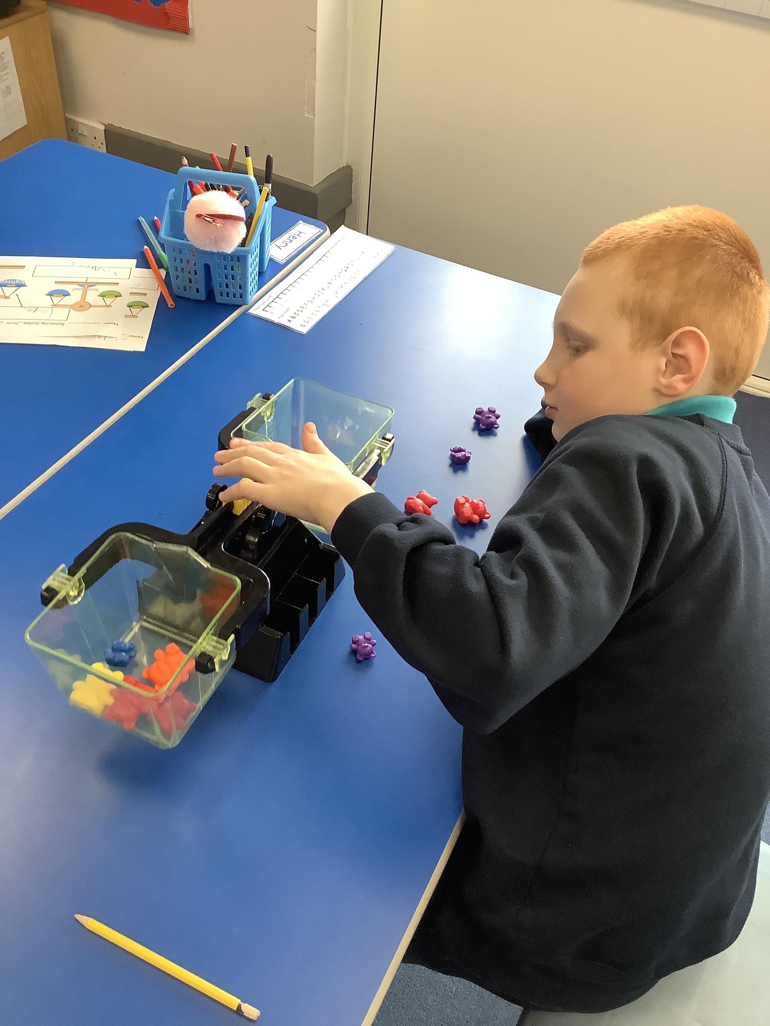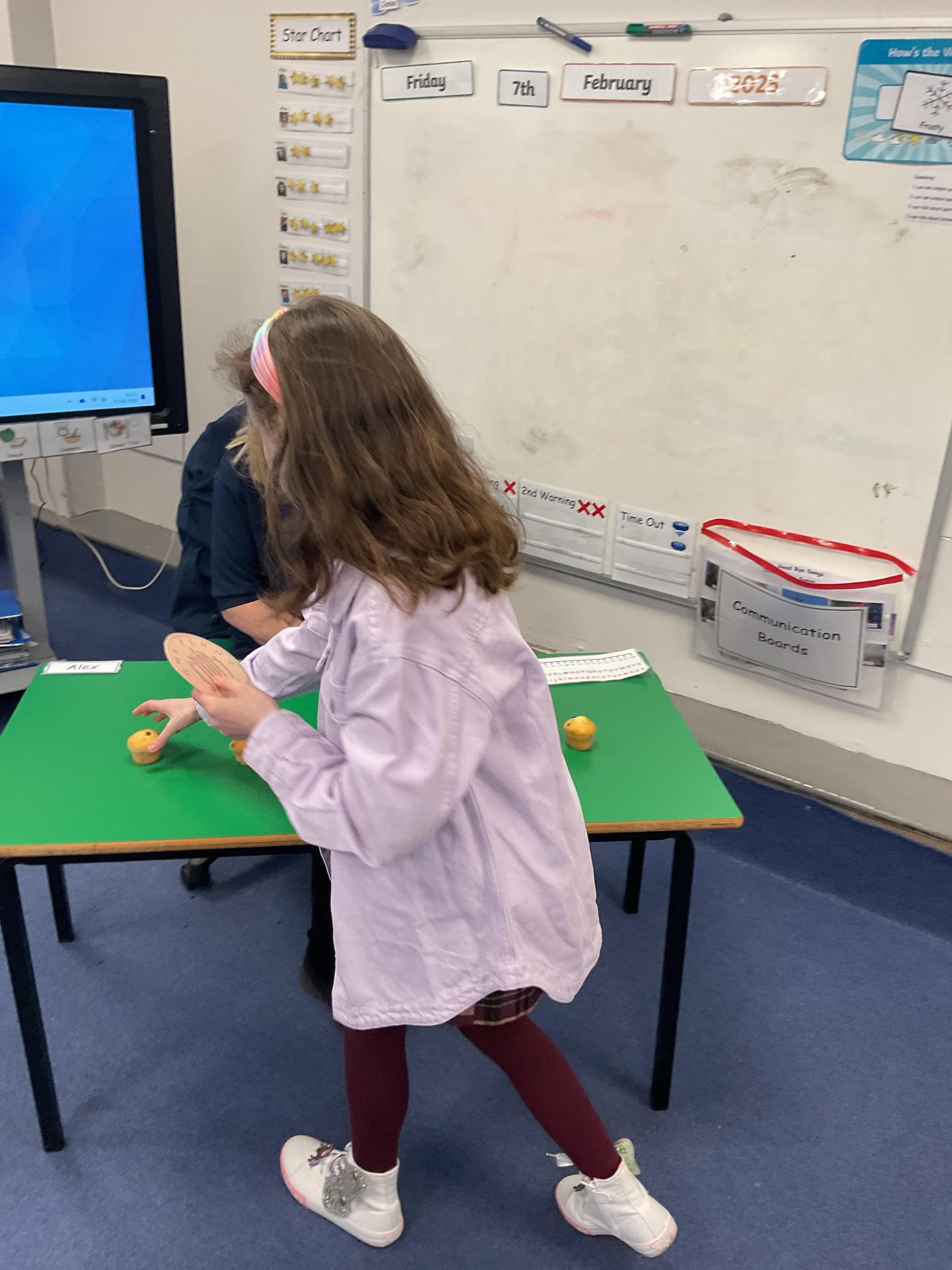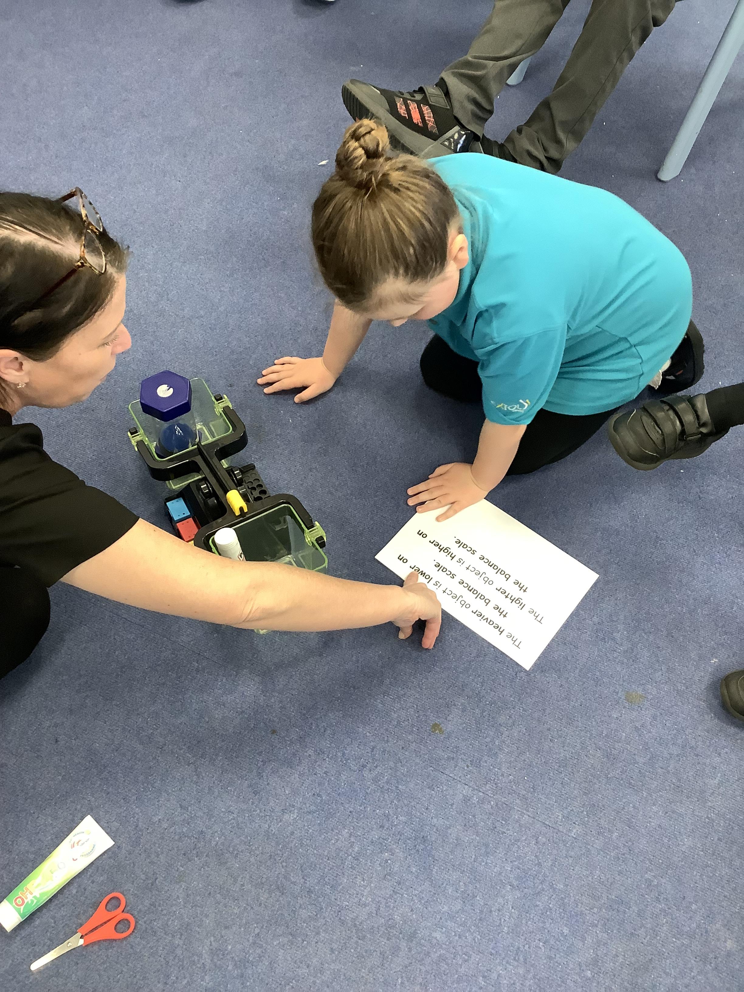 07.04.25 MATHS: MASS The children have been using the balance scales to identify from choice of two, which piece of numicon is the heaviest and which piece is the lighest.