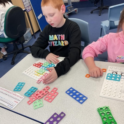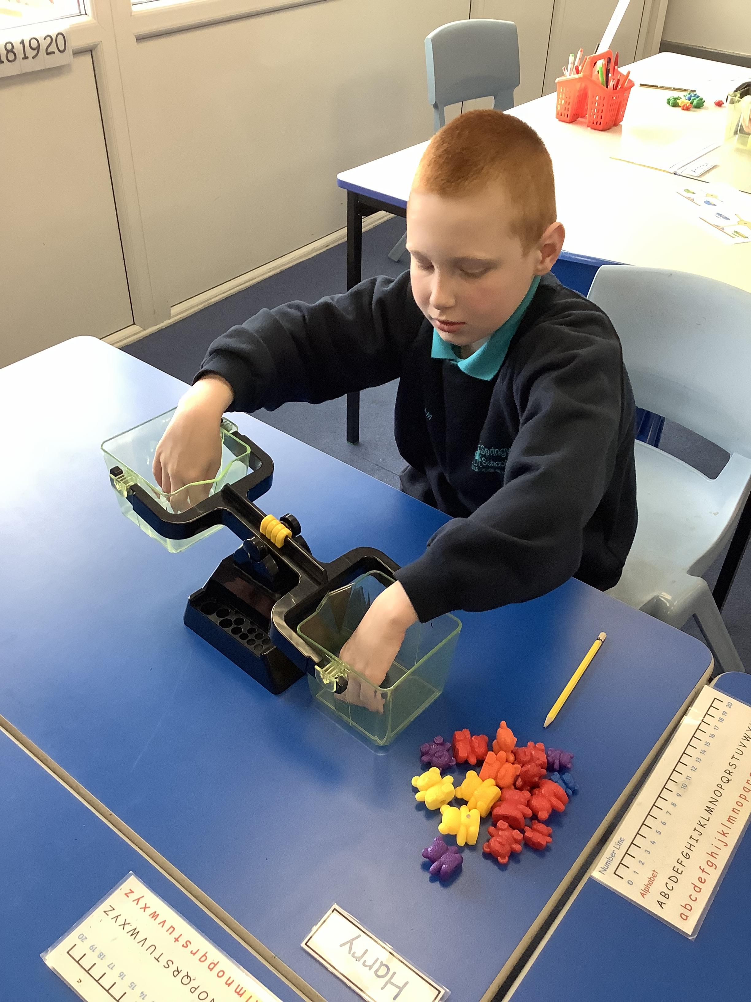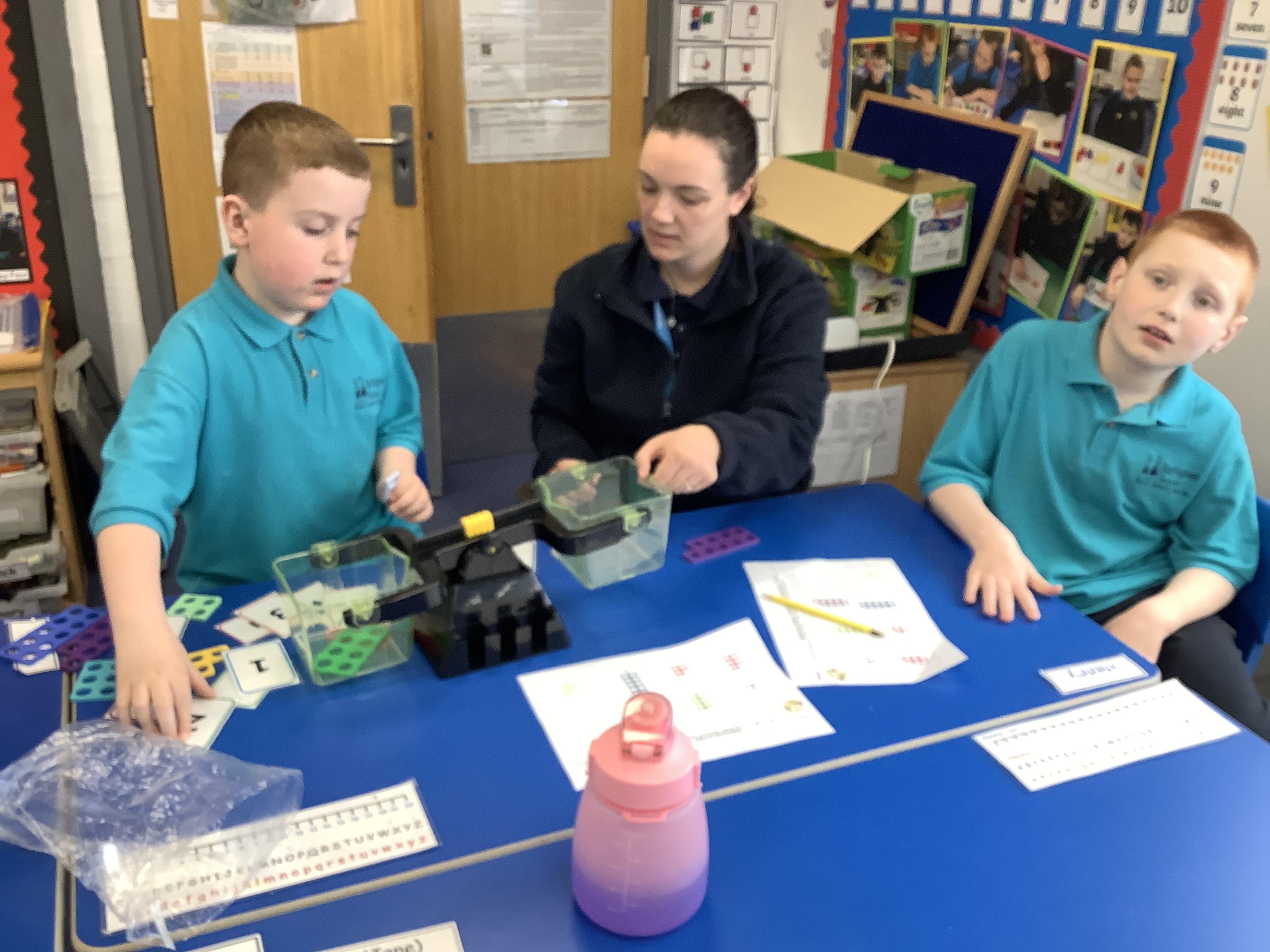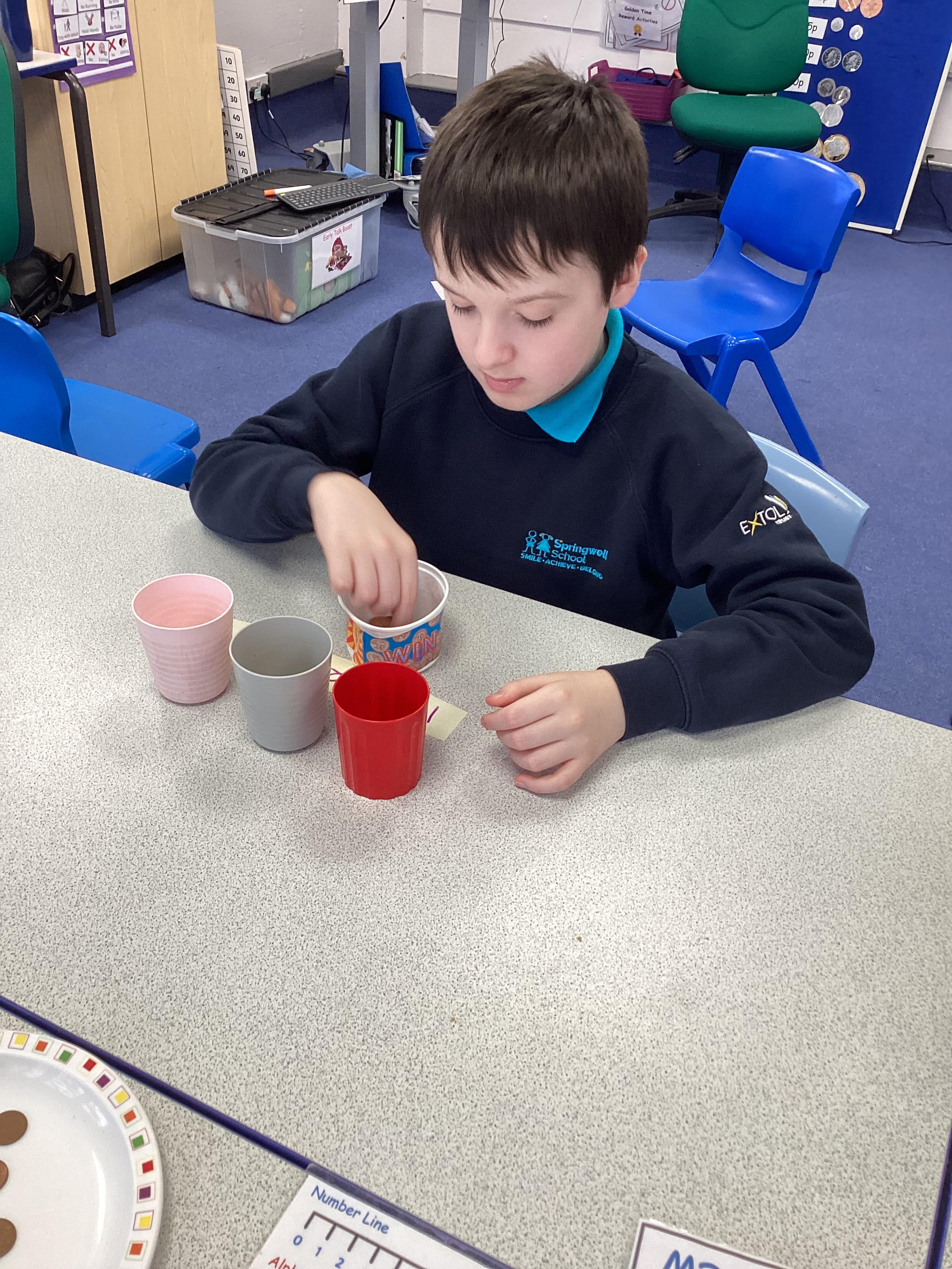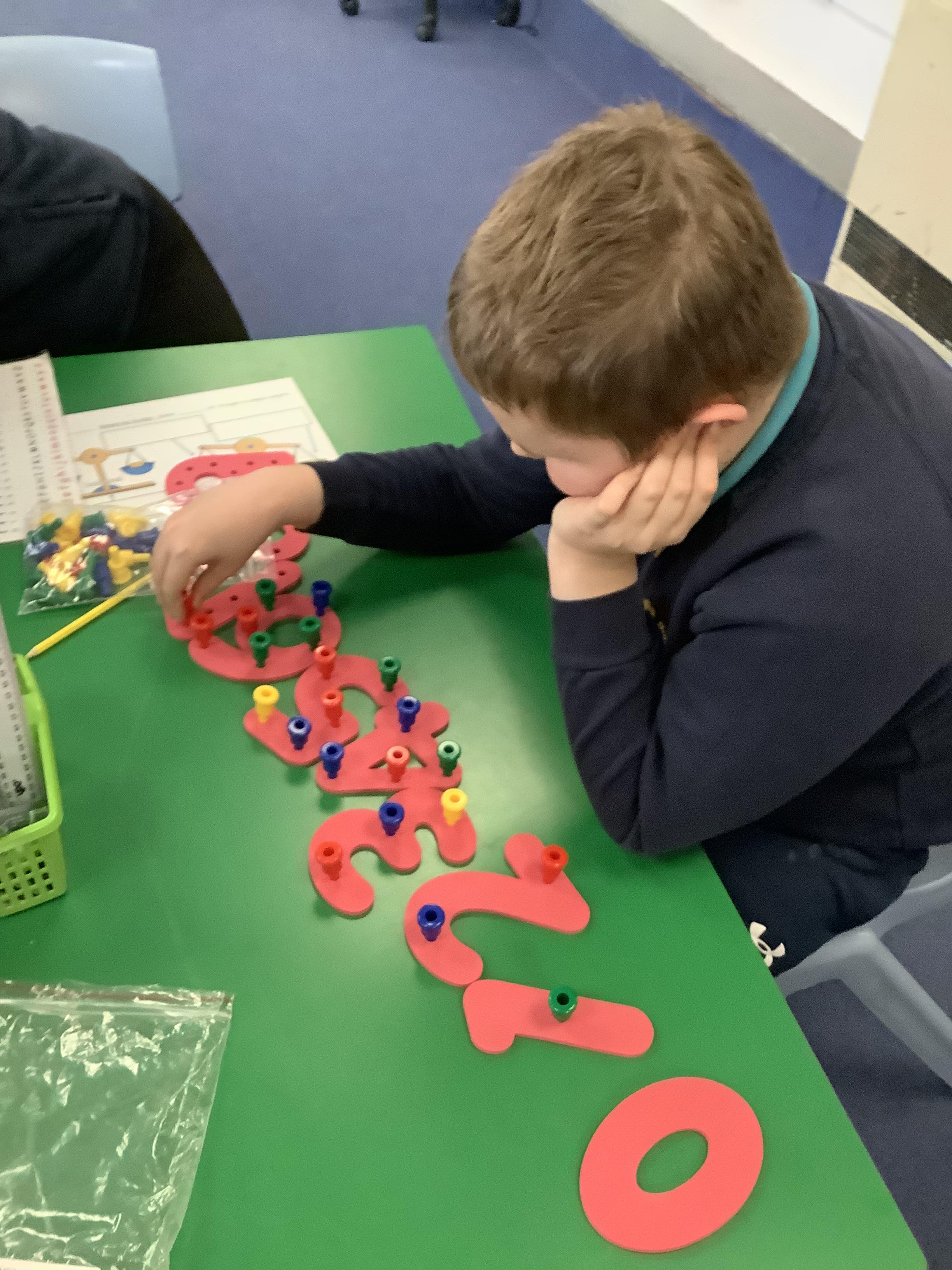 07.04.25 MATHS: MASS The children have been using the balance scales to identify from choice of two, which piece of numicon is the heaviest and which piece is the lighest.